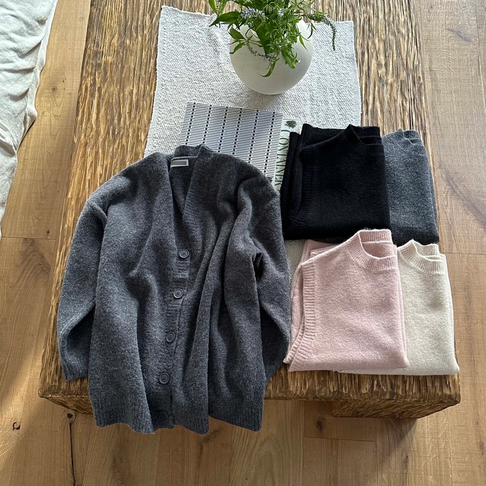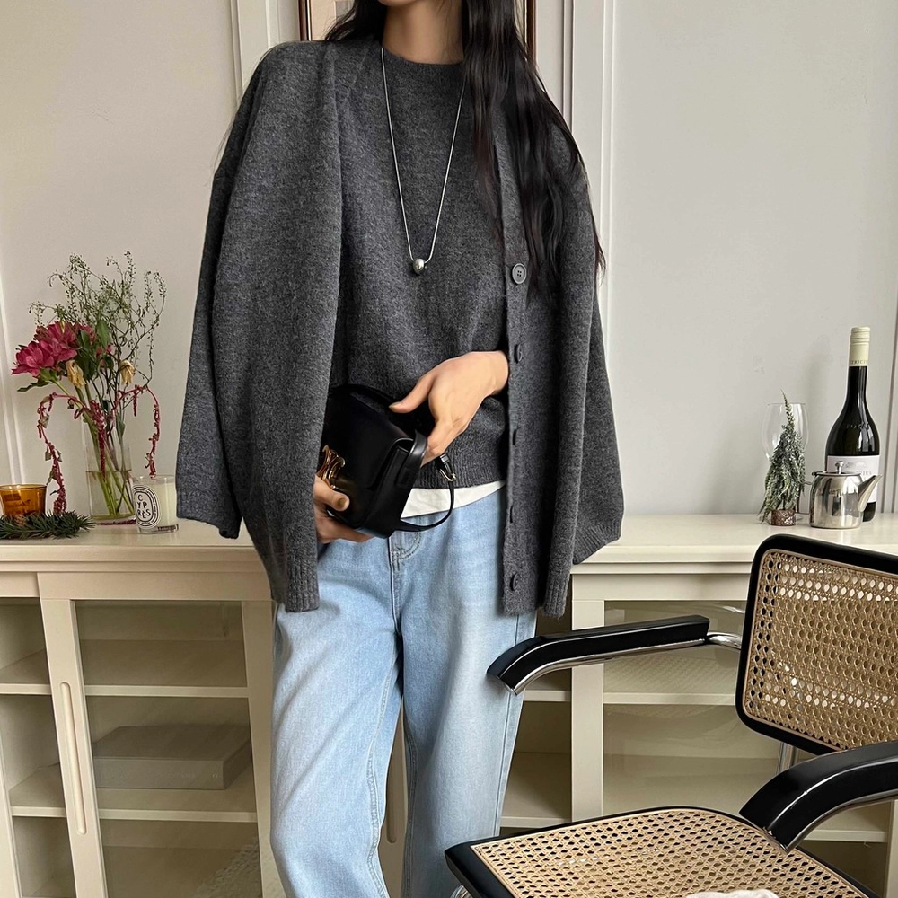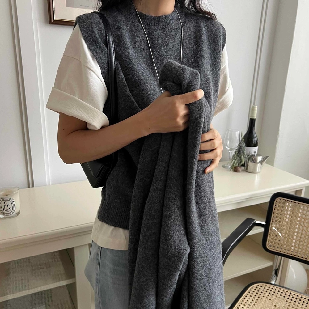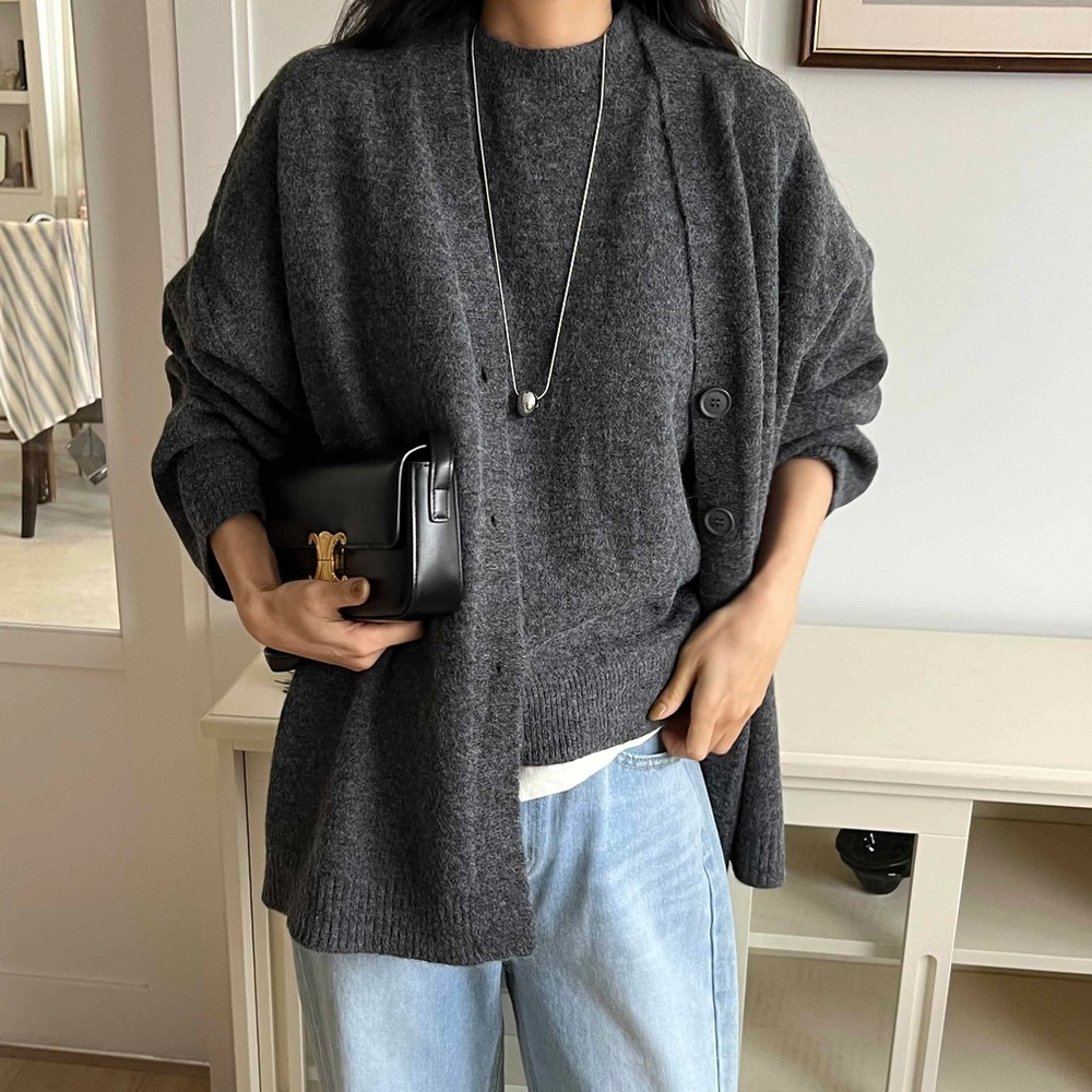 셔츠나 블라우스, 반팔, 목티 등 위에 조끼만 레이어드해서 착용하셔도 좋고, 조끼만 단독으로 입으신 뒤 가디건을 걸쳐 주셔도 좋아요. 가디건은 힙을 덮는 기장이라 세트로도 단품으로도 활용도가 아주 높습니다.