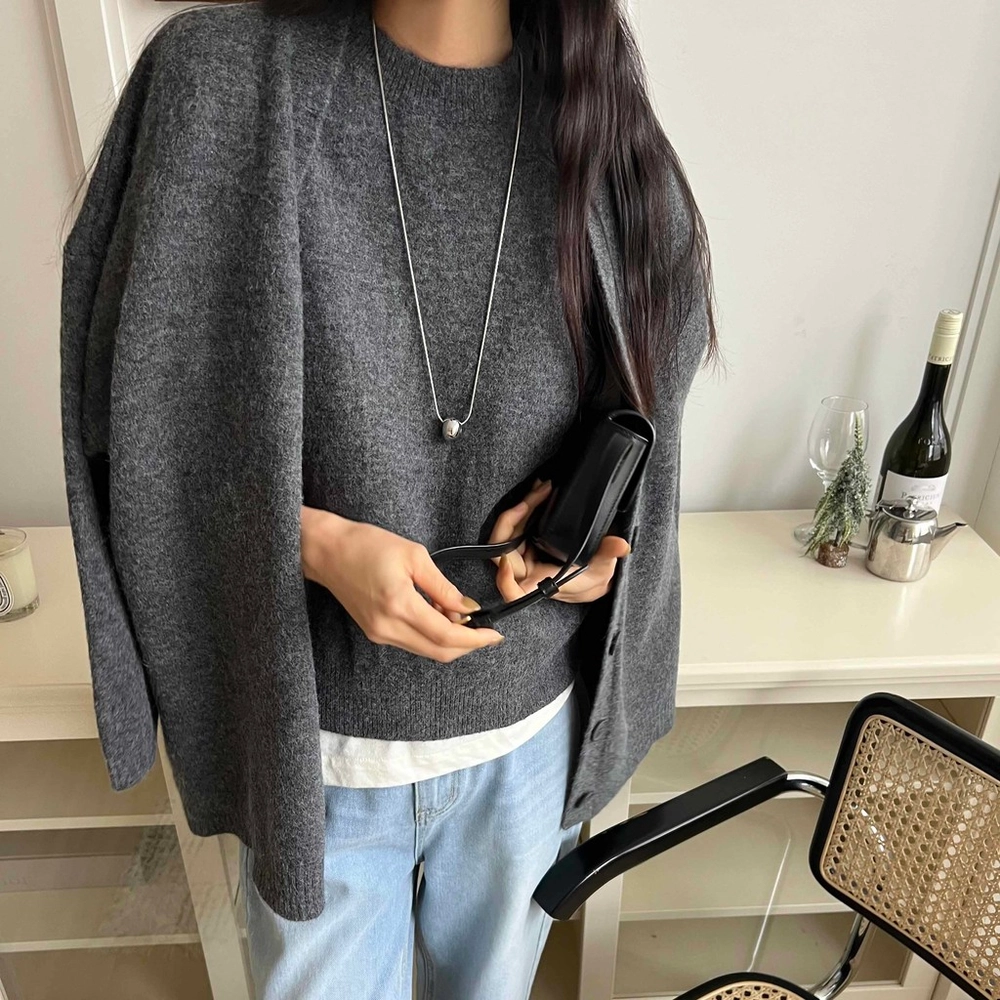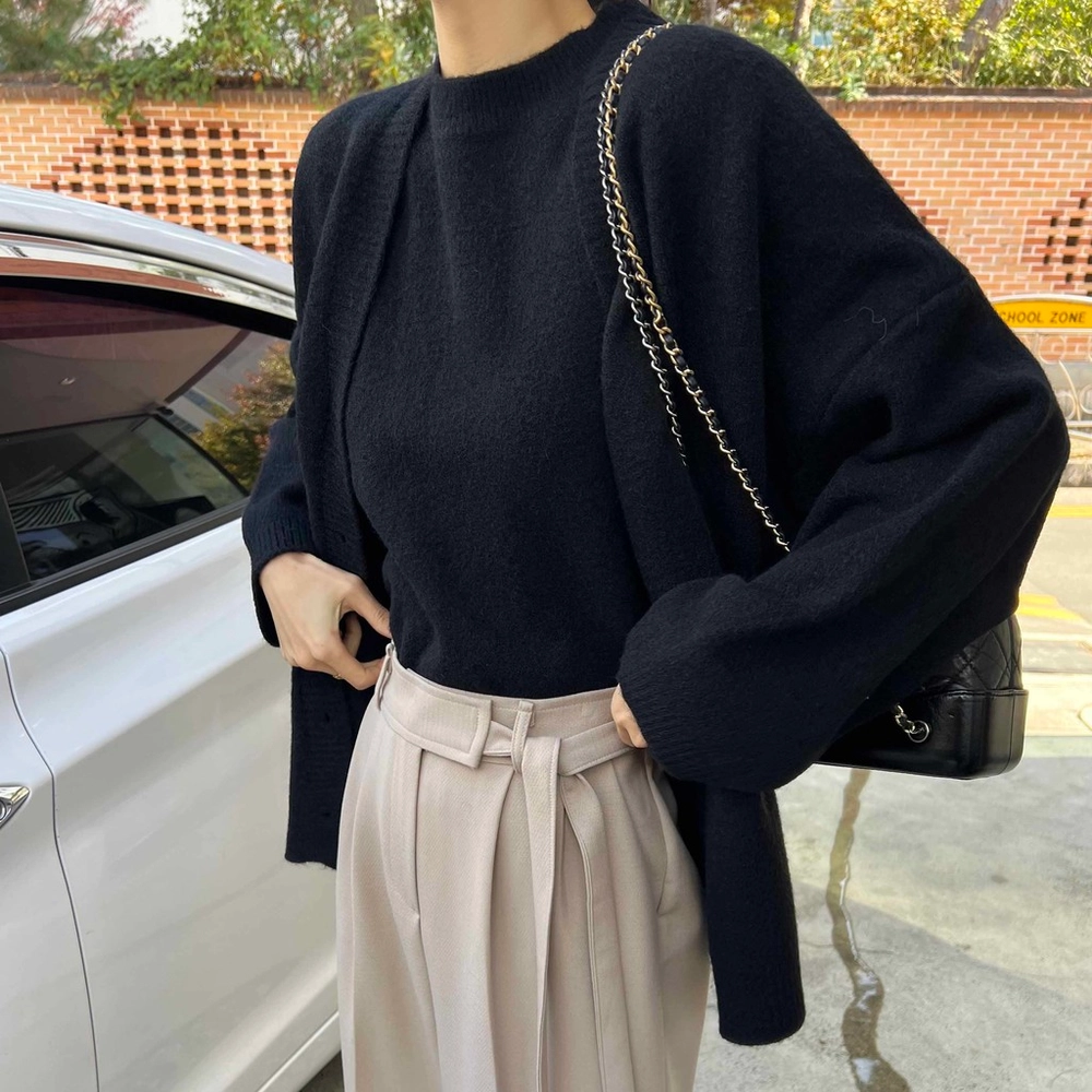 니트 조끼와 긴팔 가디건이 세트 구성인 투피스 상품입니다.