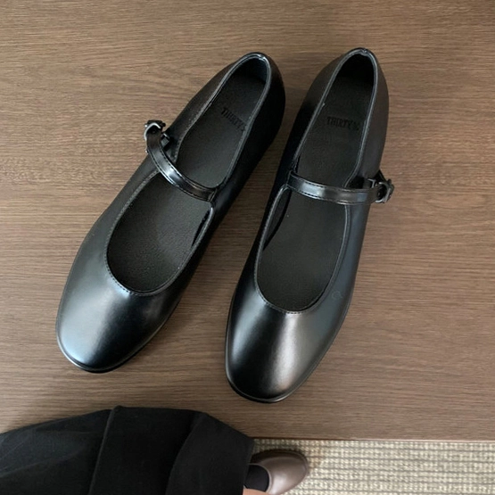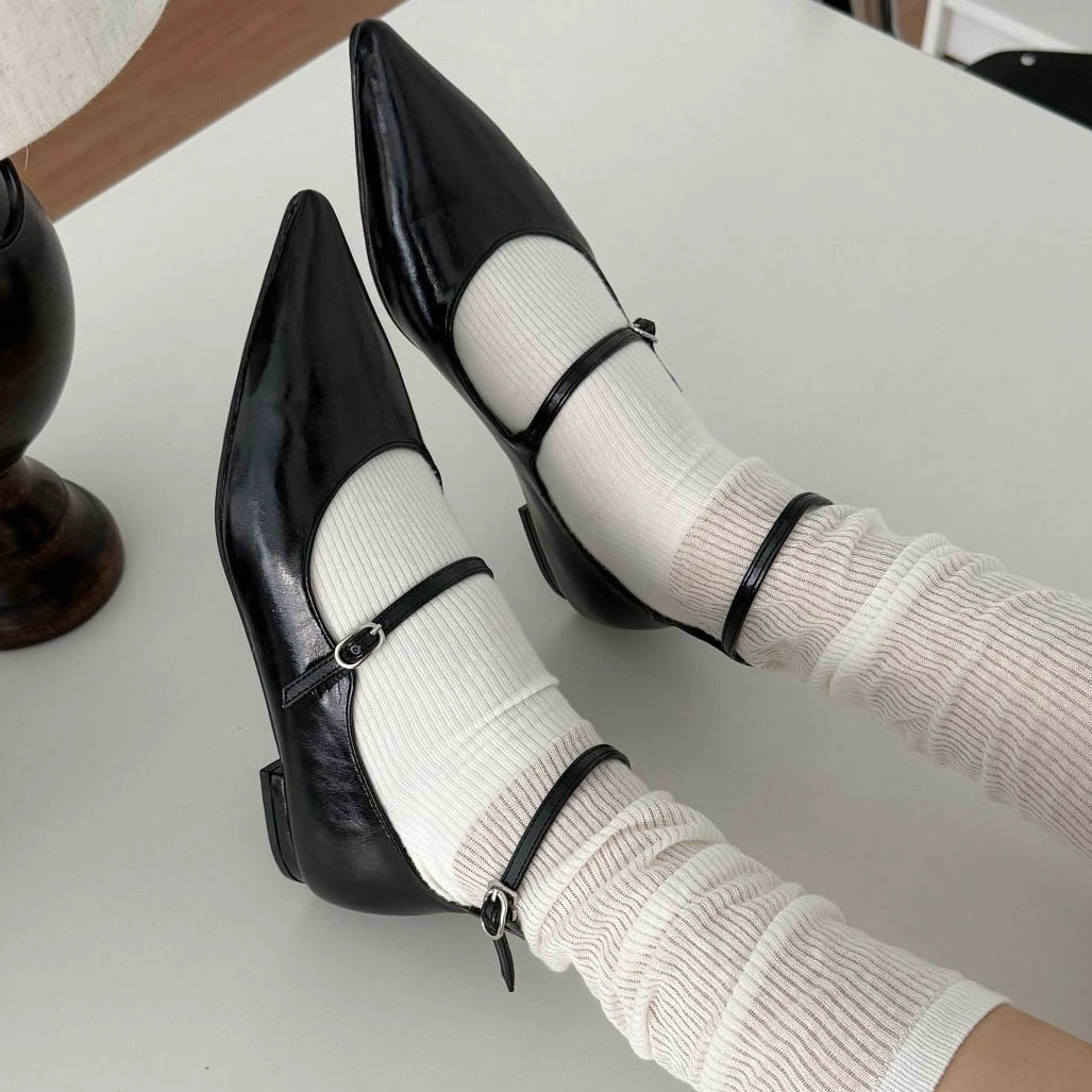 포인트 스텔레토 메리제인 스트랩 가을 레더 플랫슈즈 | 1color