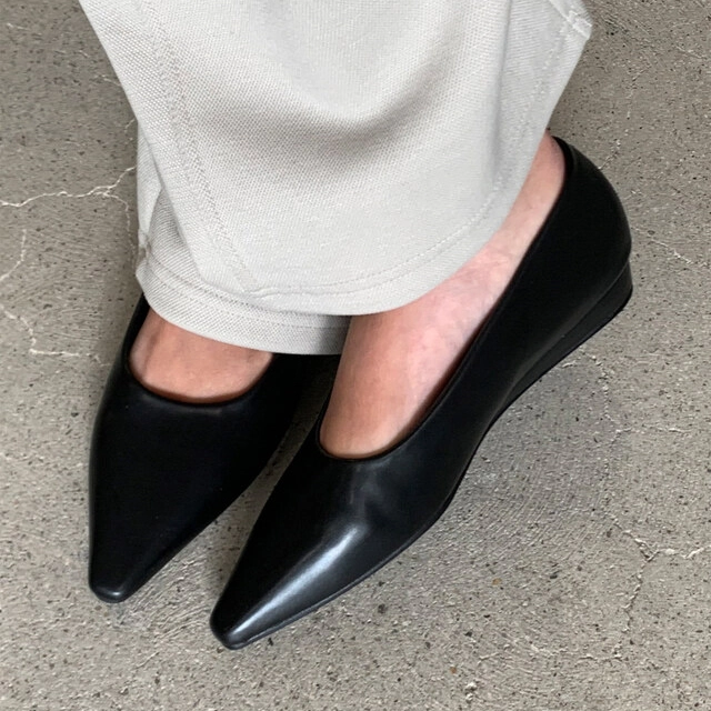 스틸레토 레더 발편한 키높이 2.5cm 로우 웨지힐 플랫슈즈 | 3color