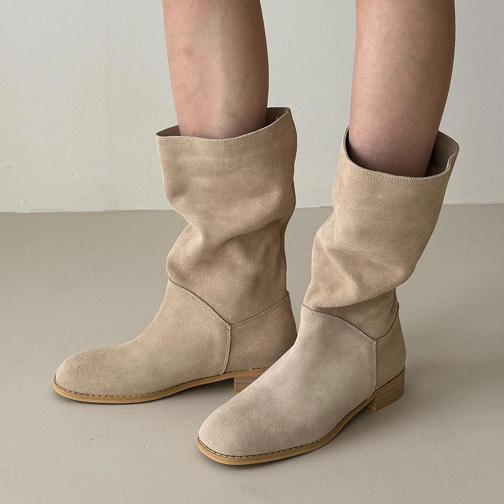 천연소가죽 스웨이드 셔링 심플 가을 3cm 발편한 미들 부츠 | 3color