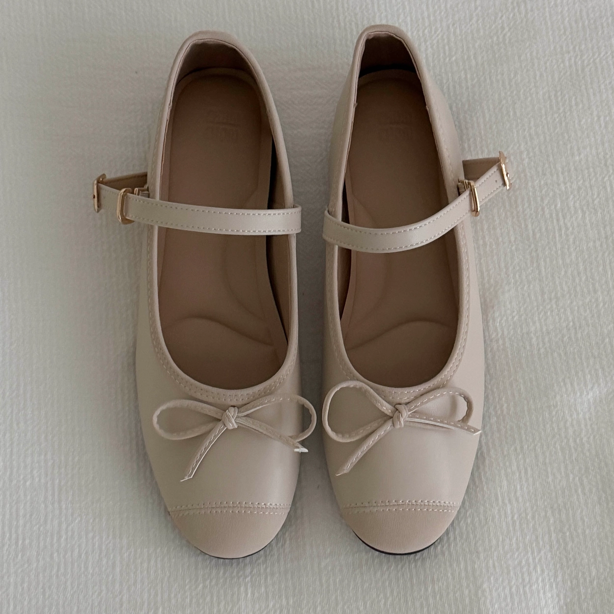 리본 메리제인 레더 쿠션 속굽 3cm 키높이 가을 플랫슈즈 | 2color
