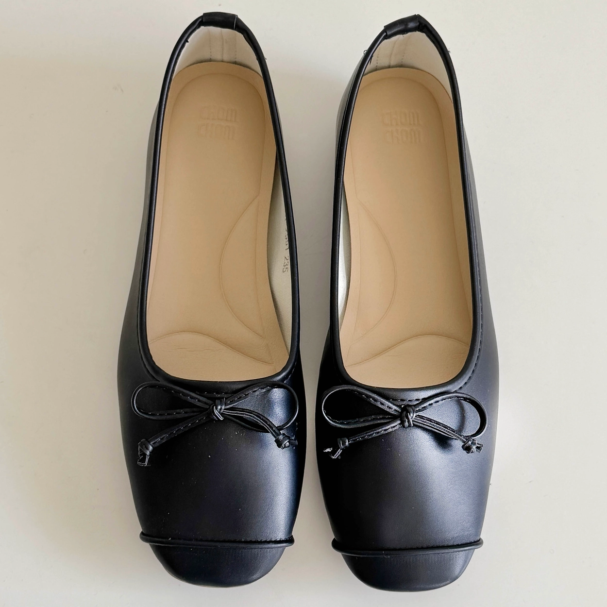 리본 레더 스퀘어토 쿠션 키높이 속굽 3cm 플랫슈즈 | 3color