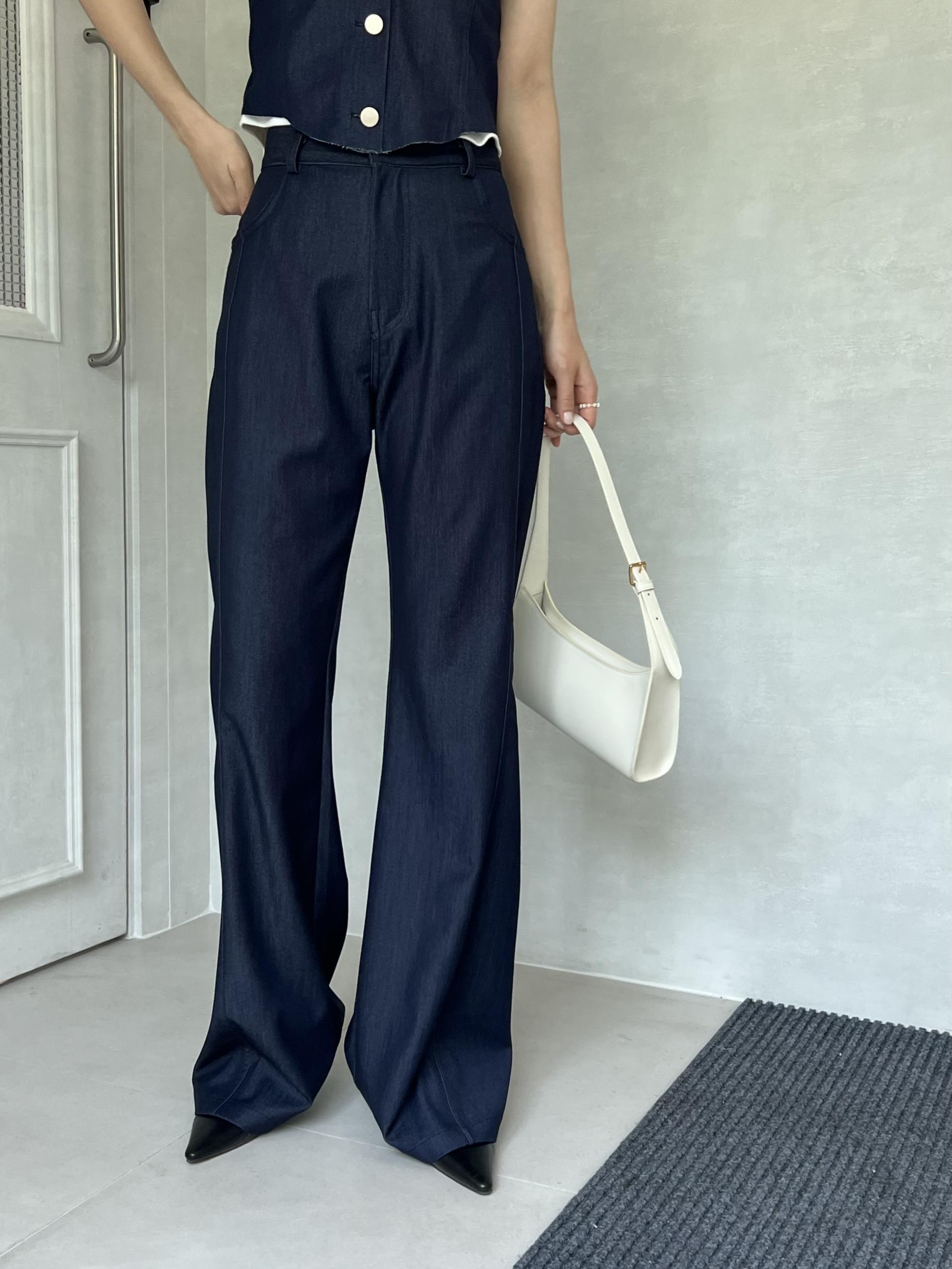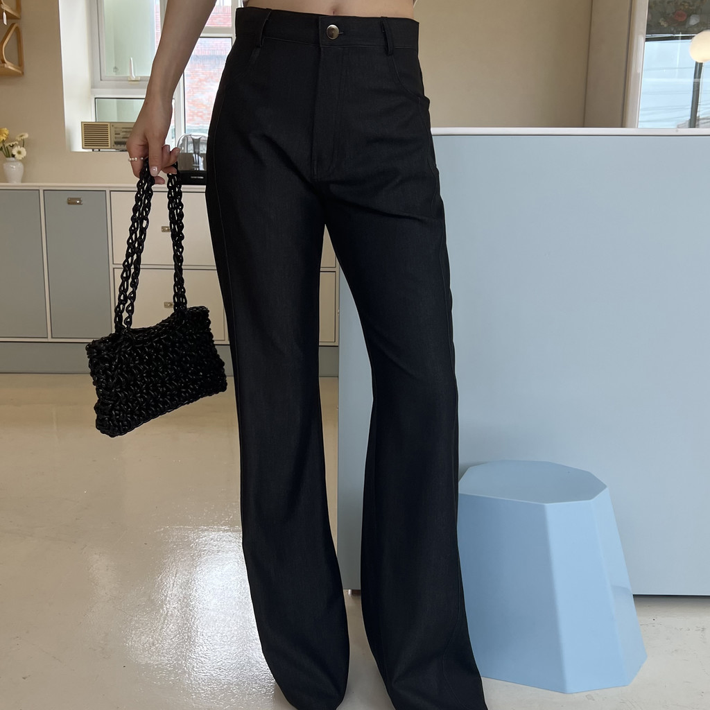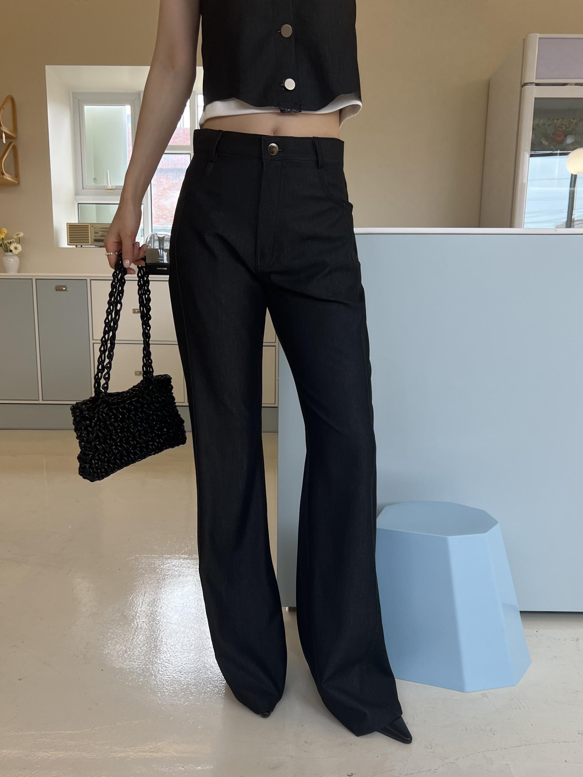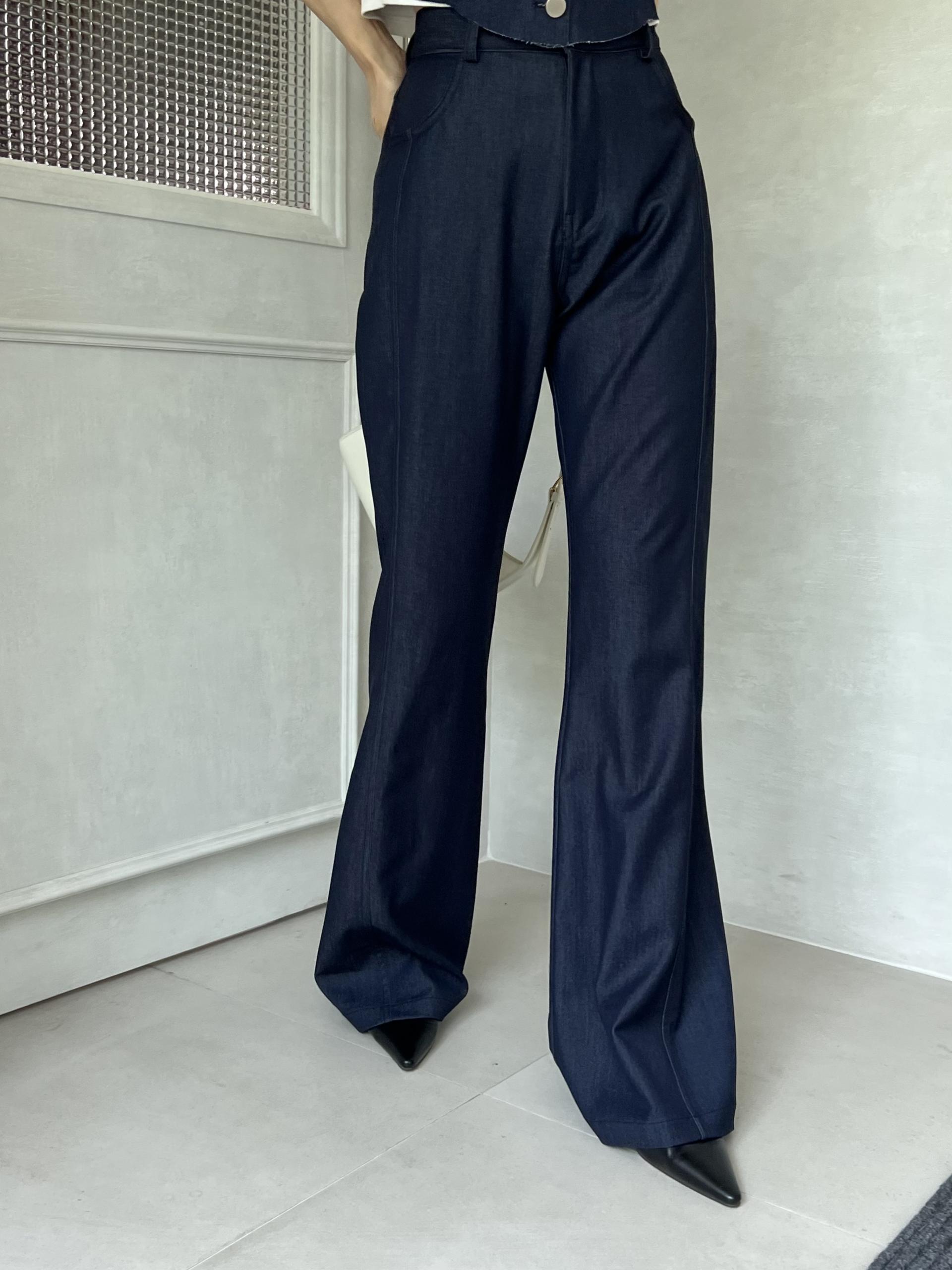 완벽한 절개 라인으로 볼륨감 있는 실루엣의 롱 부츠컷 팬츠입니다.