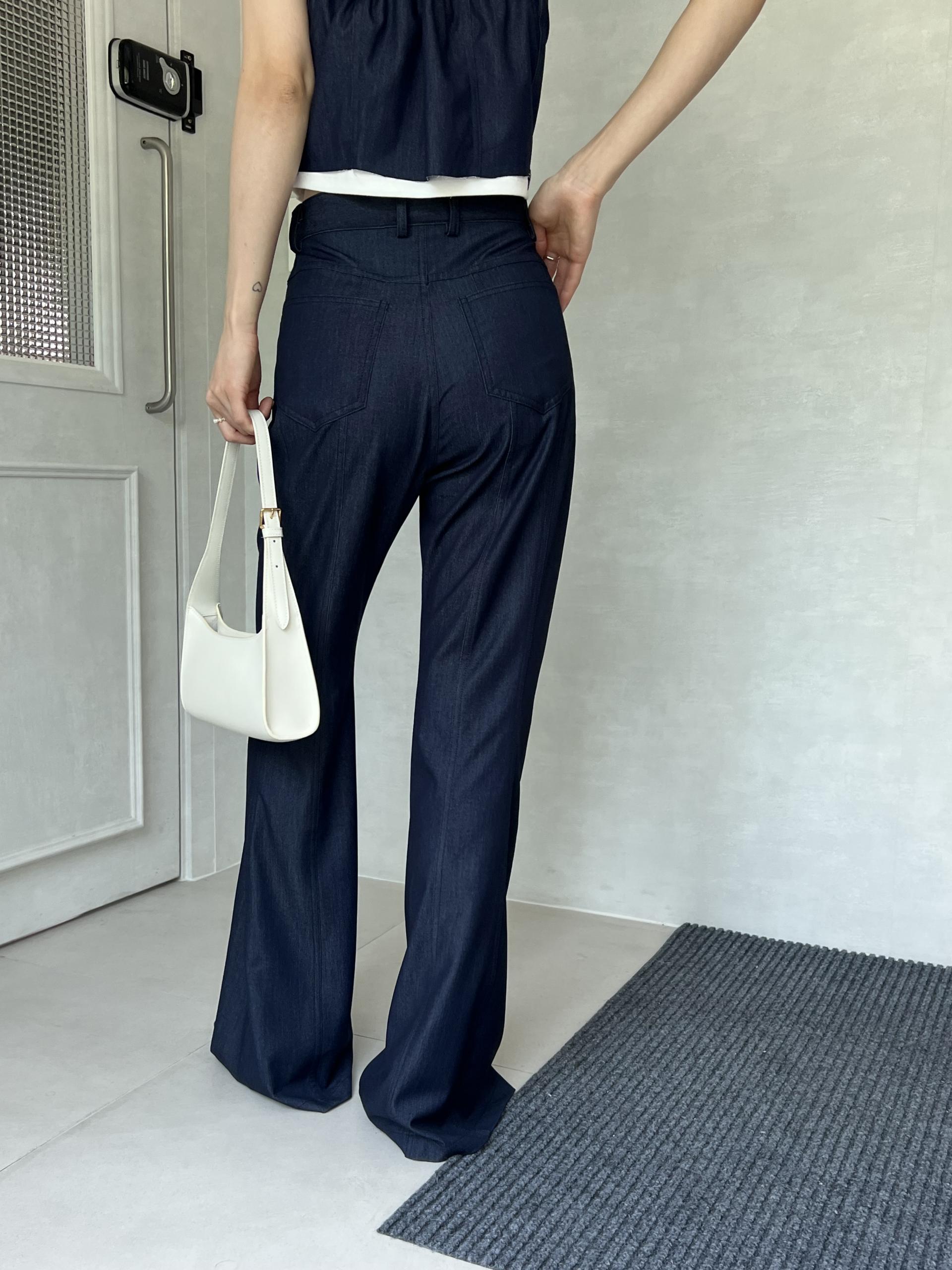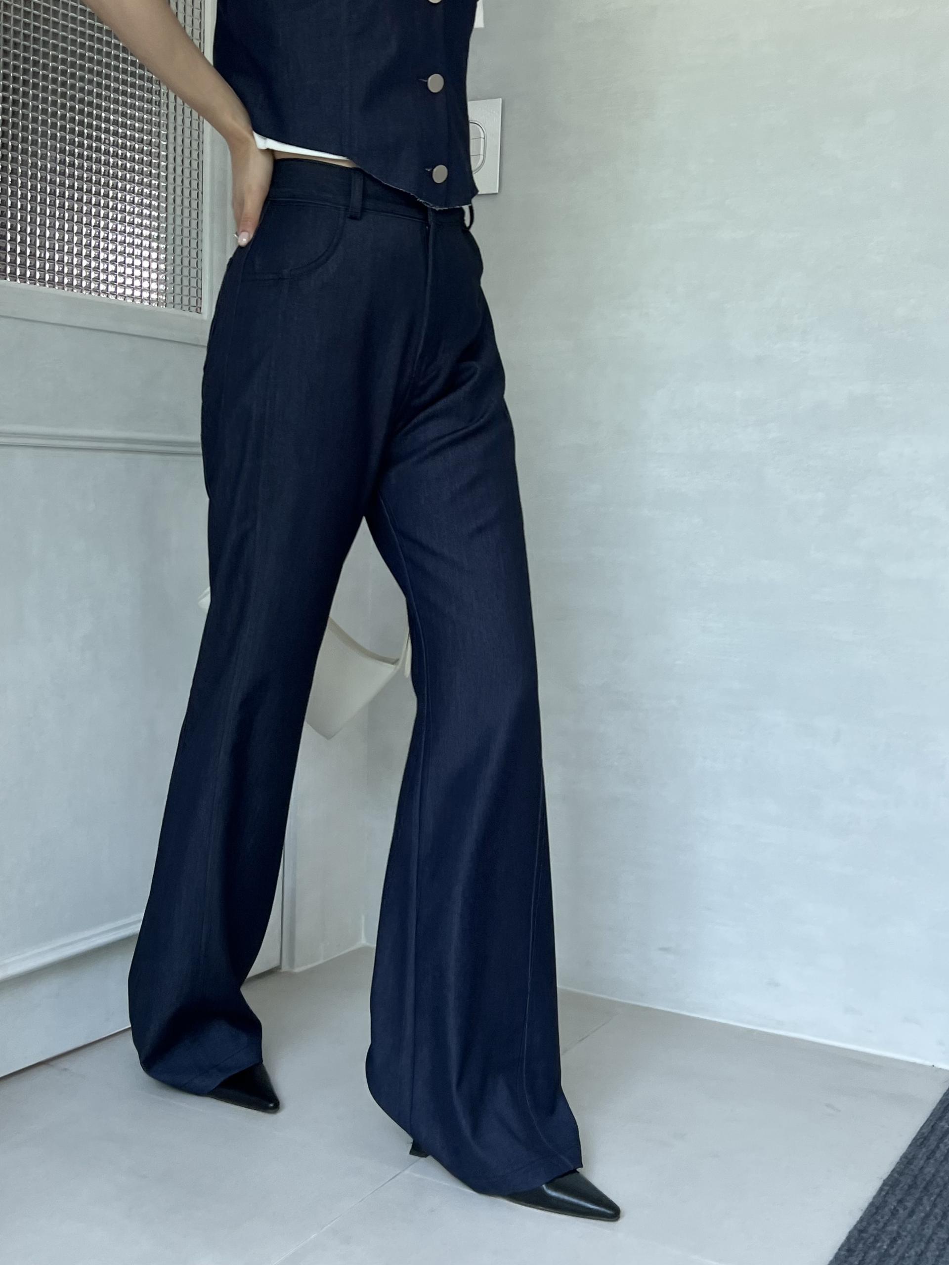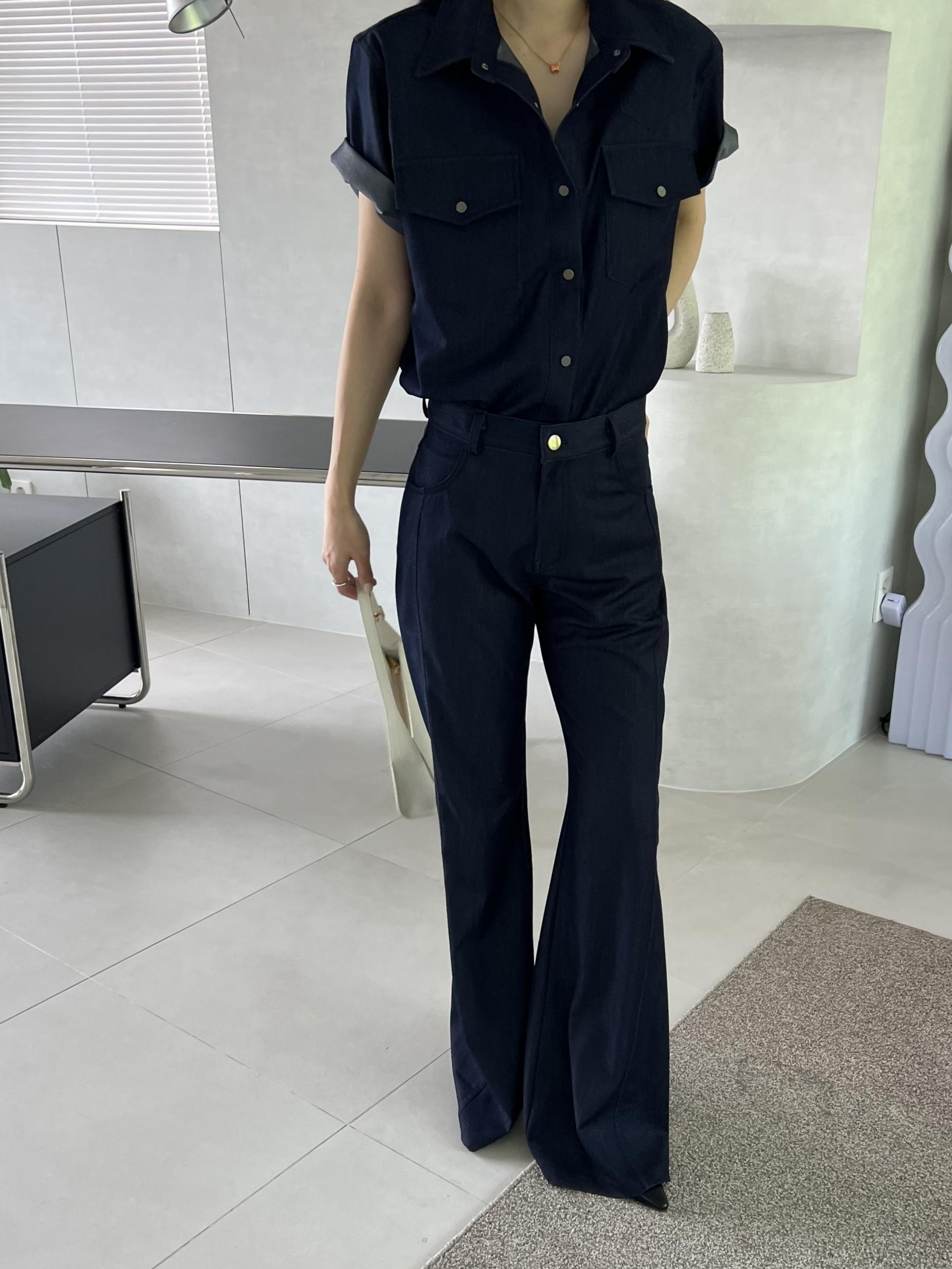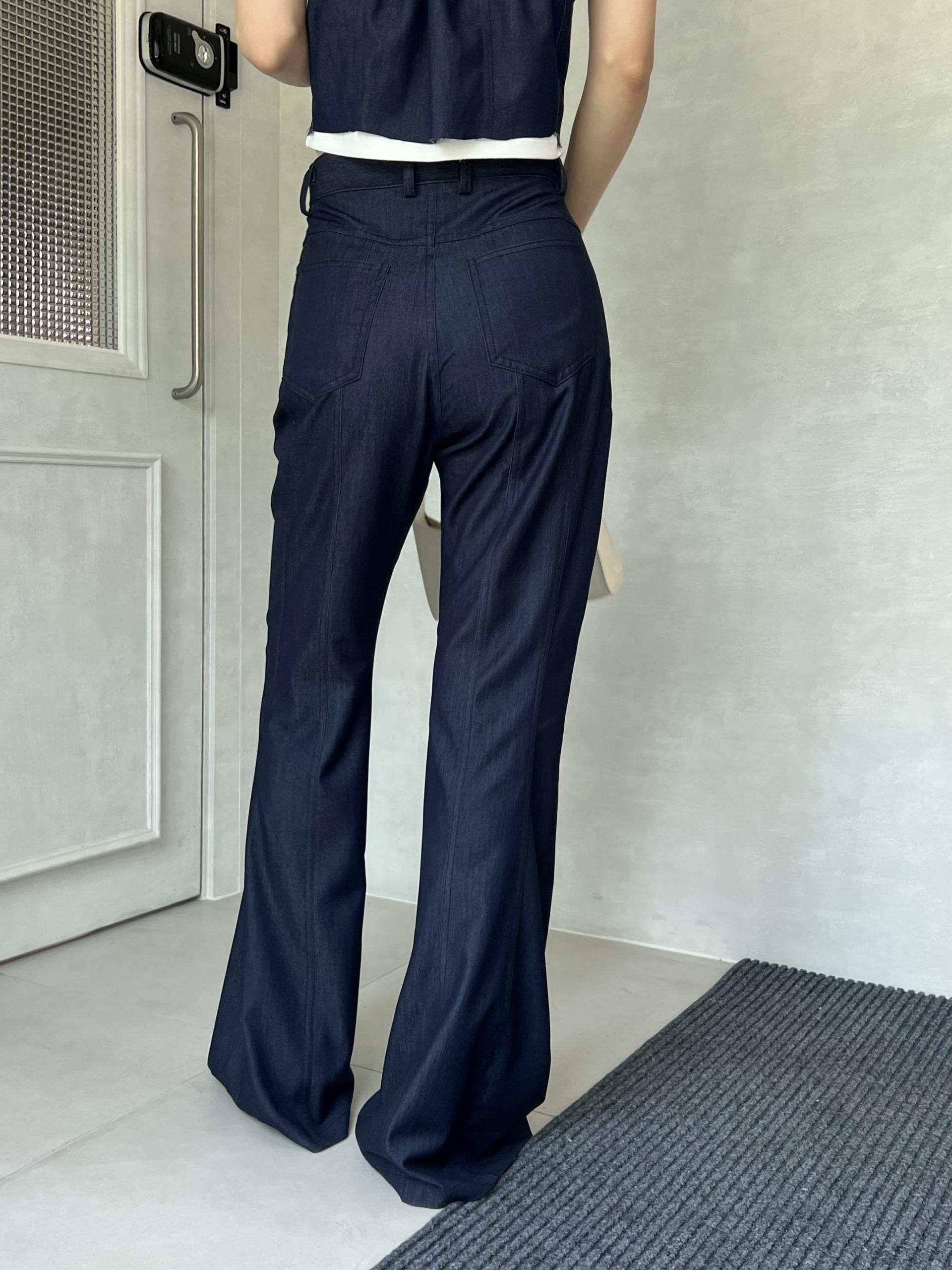 완벽한 절개 라인으로 볼륨감 있는 실루엣의 롱 부츠컷 팬츠입니다.