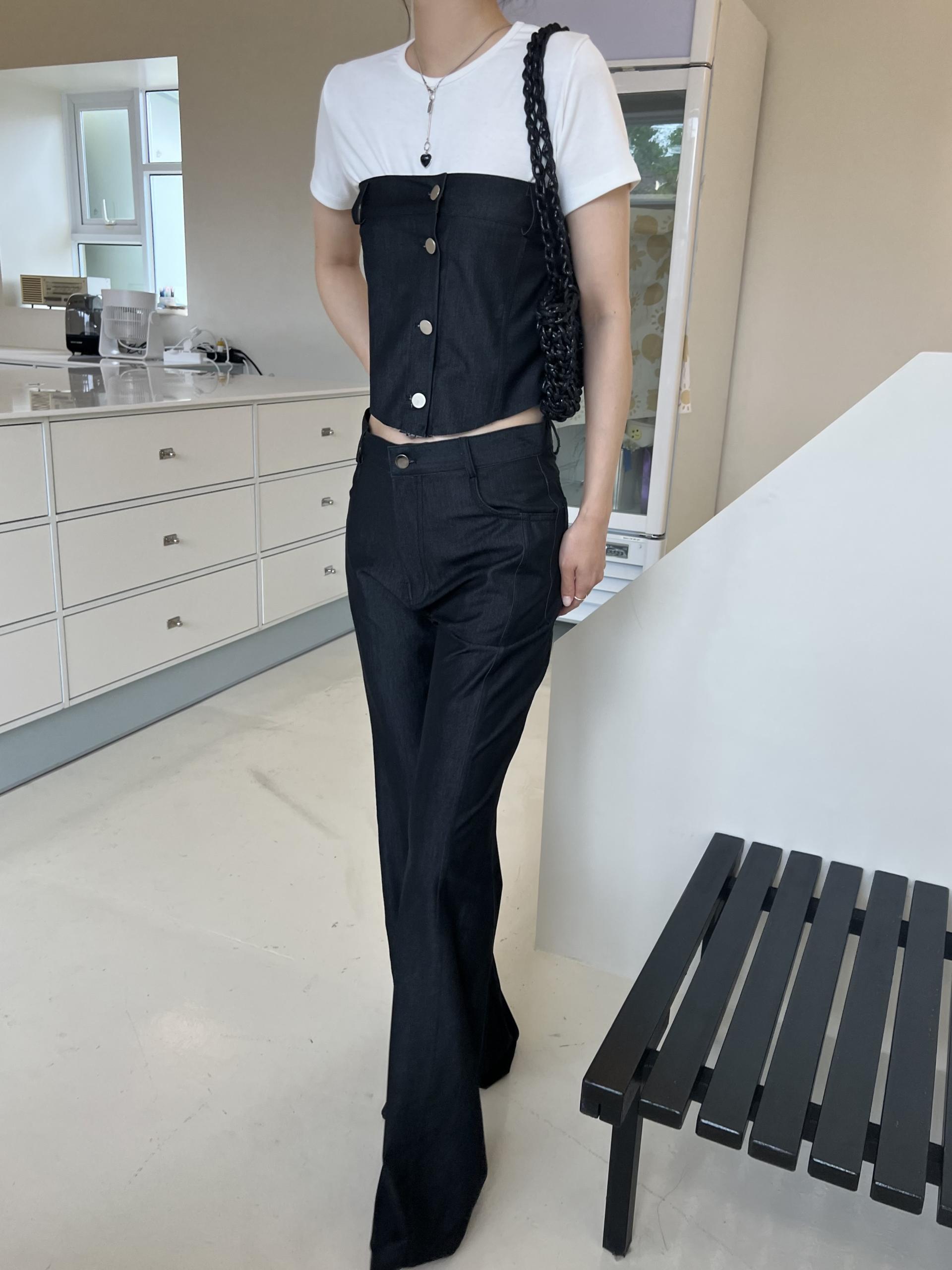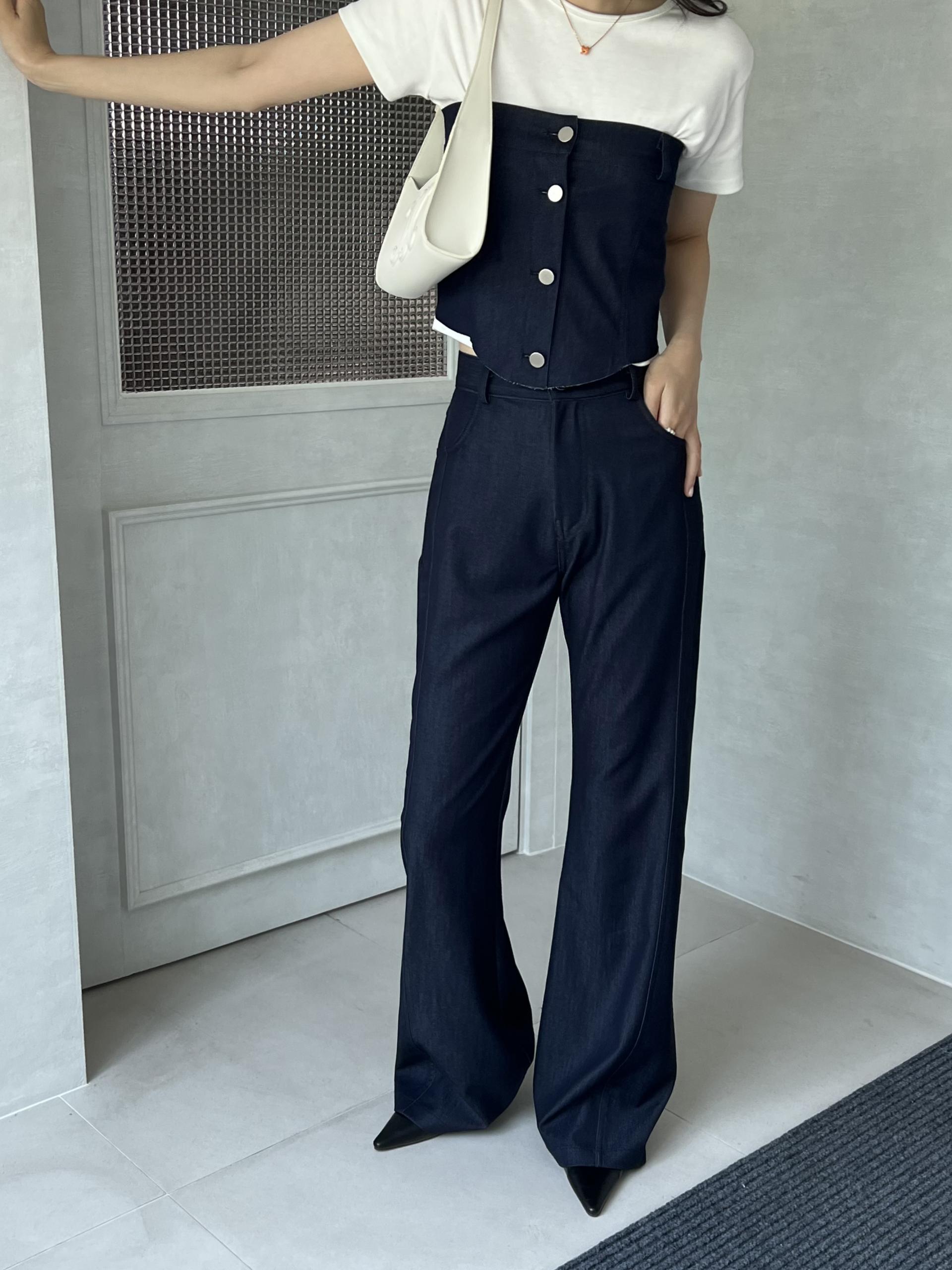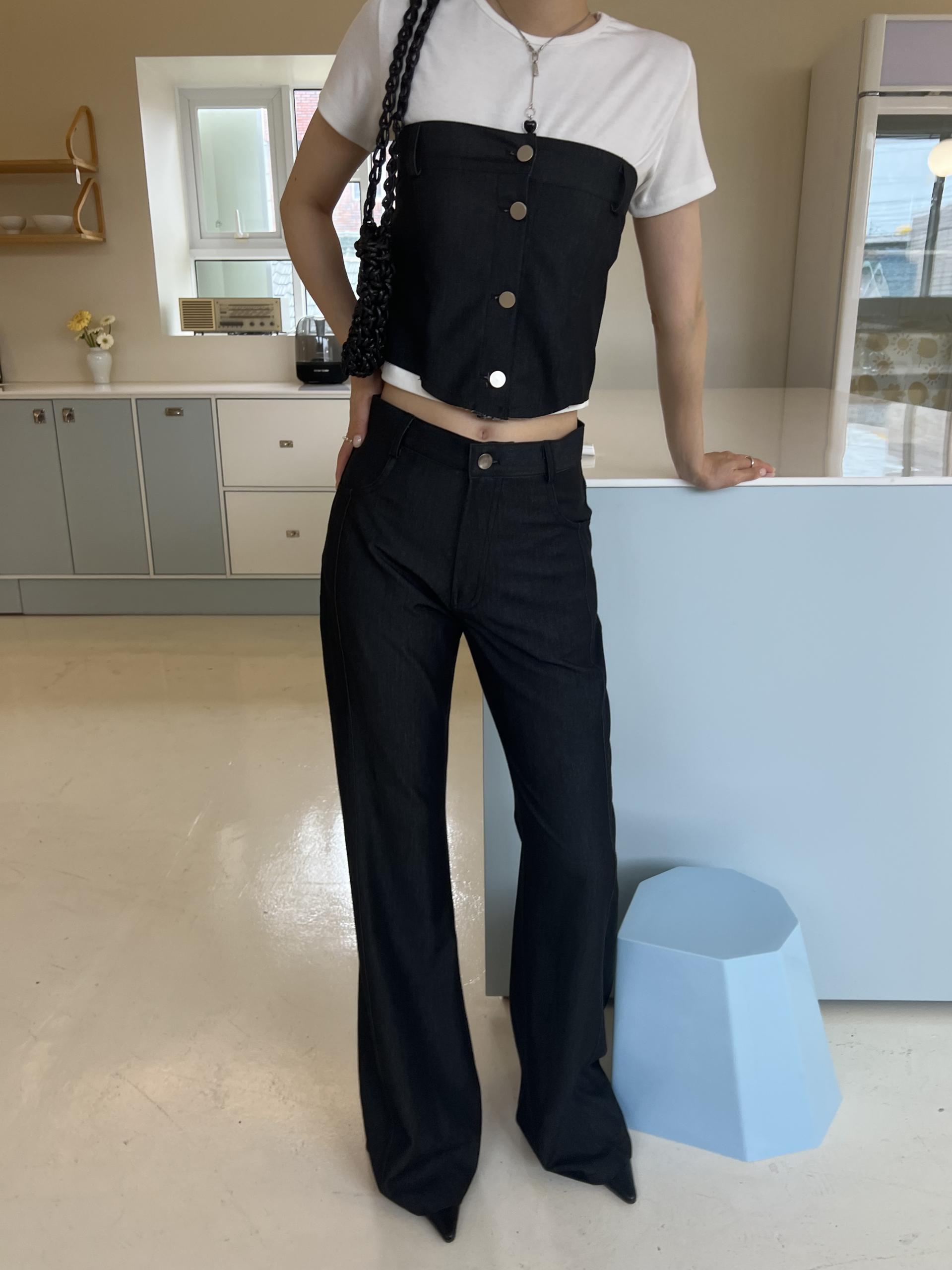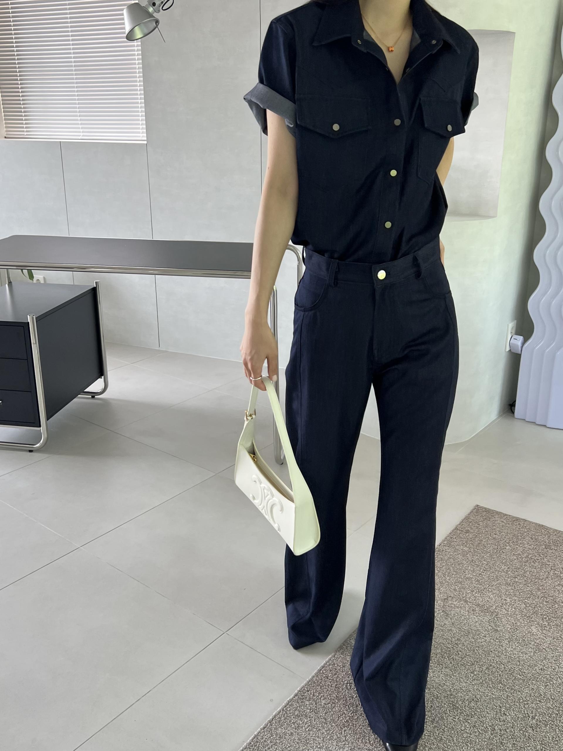 완벽한 절개 라인으로 볼륨감 있는 실루엣의 롱 부츠컷 팬츠입니다.
