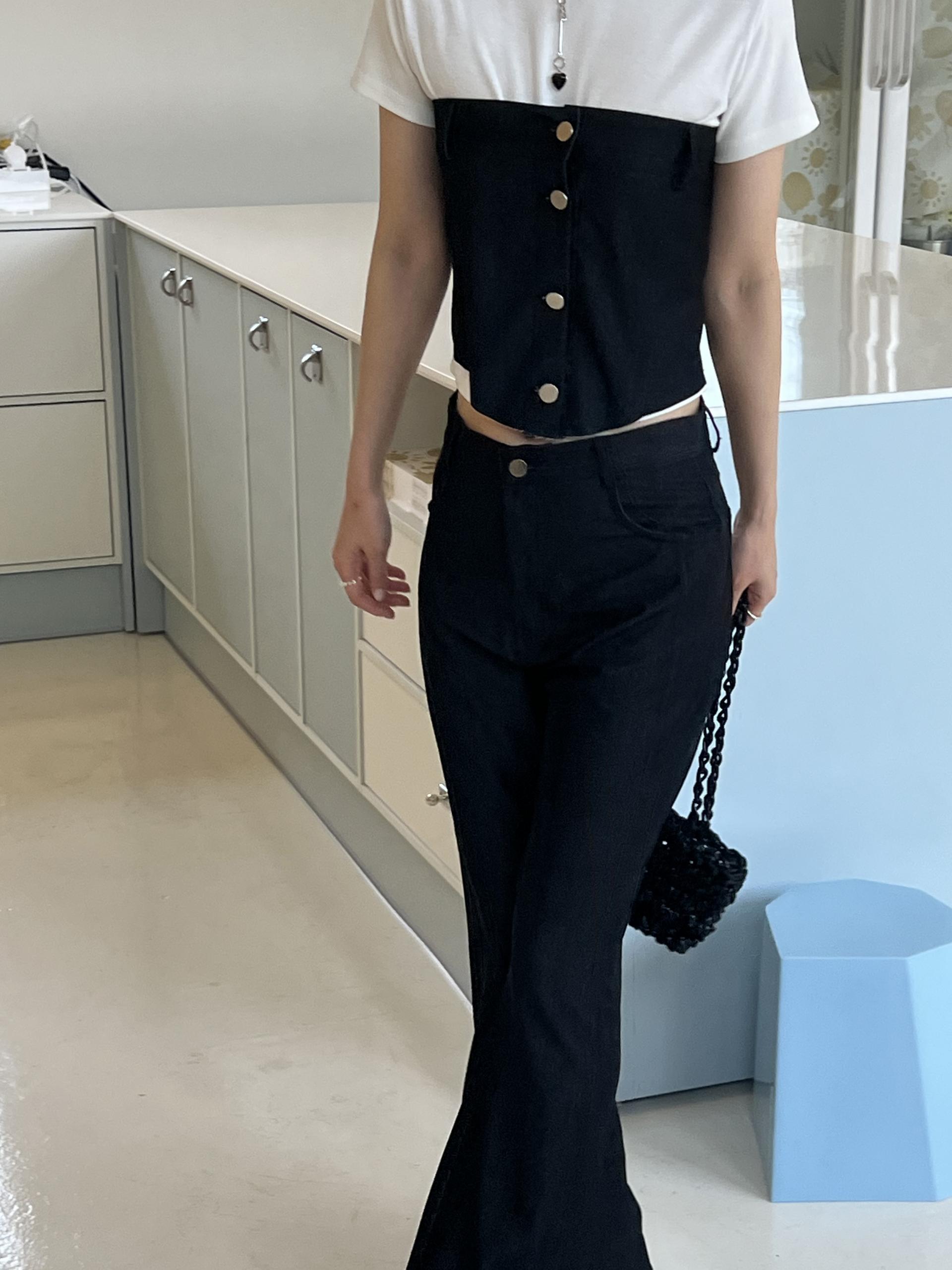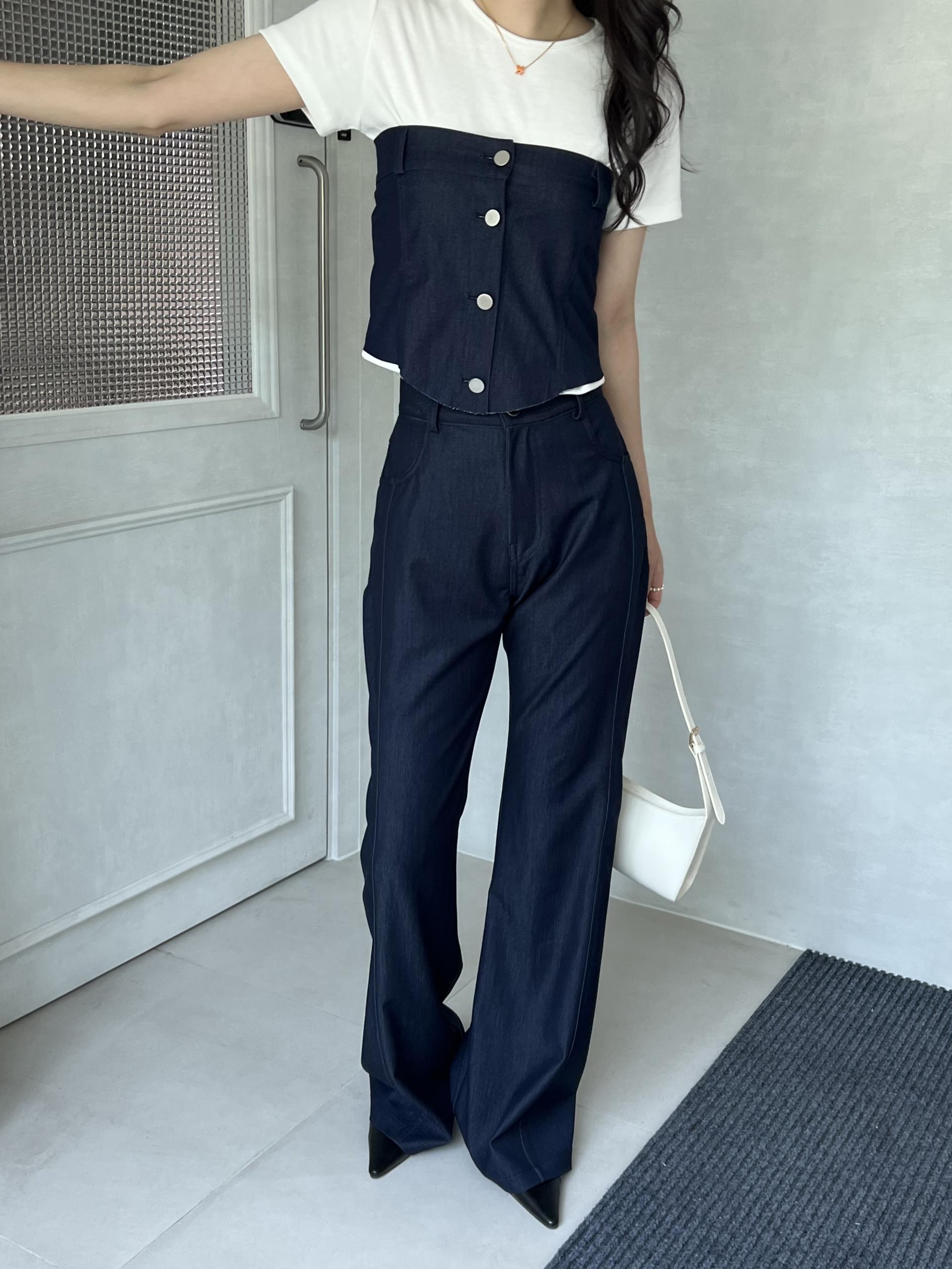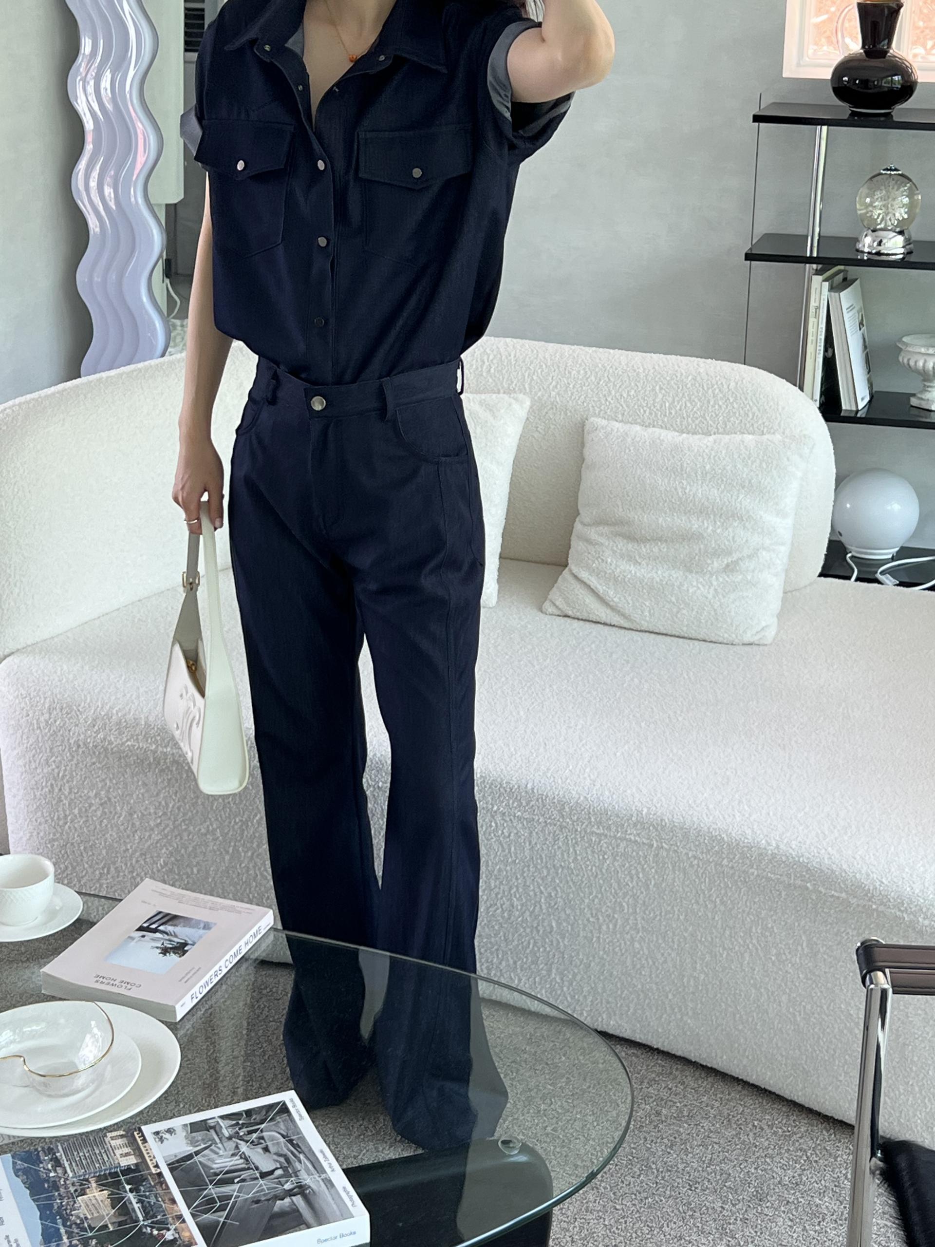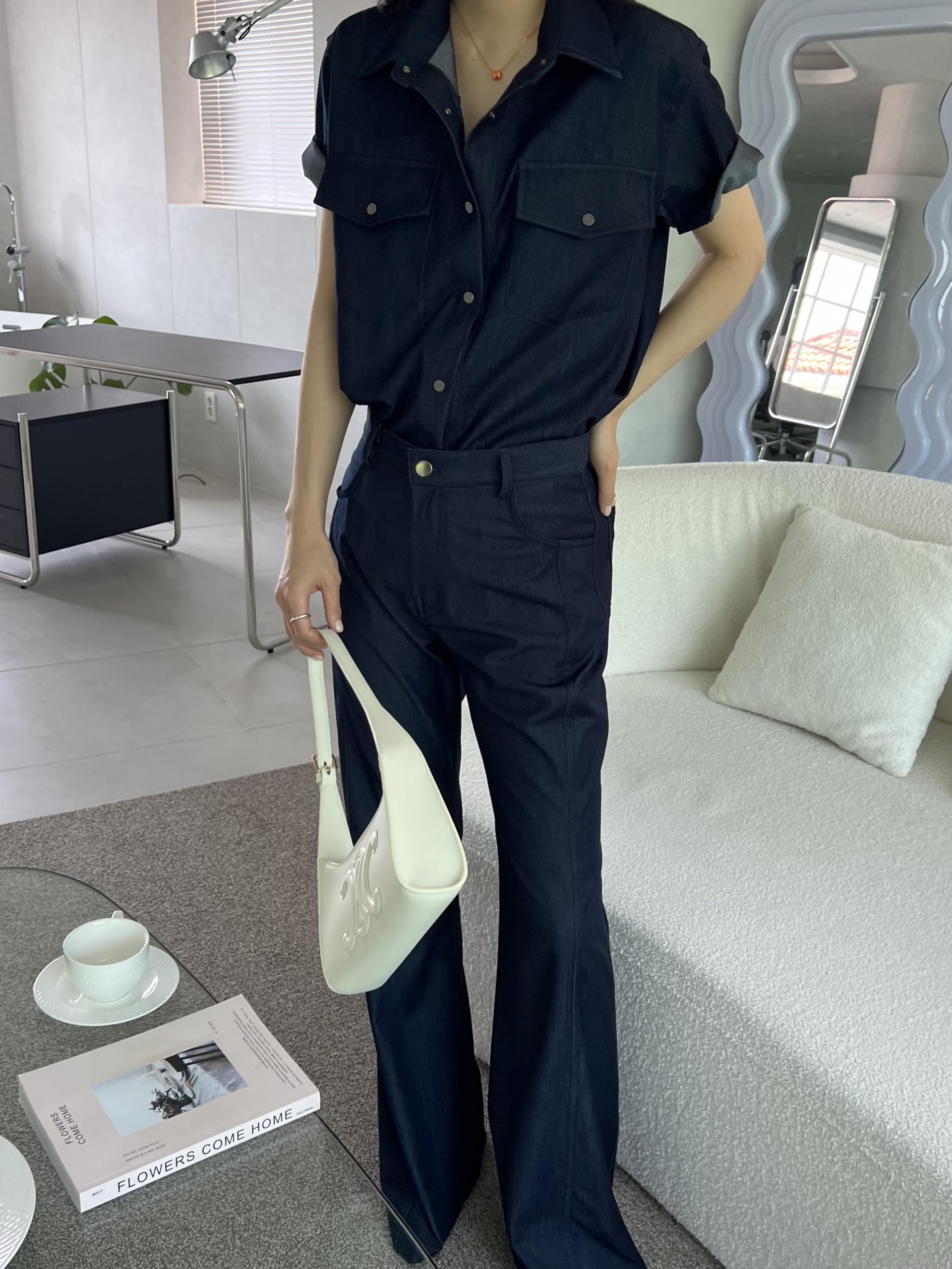 완벽한 절개 라인으로 볼륨감 있는 실루엣의 롱 부츠컷 팬츠입니다.