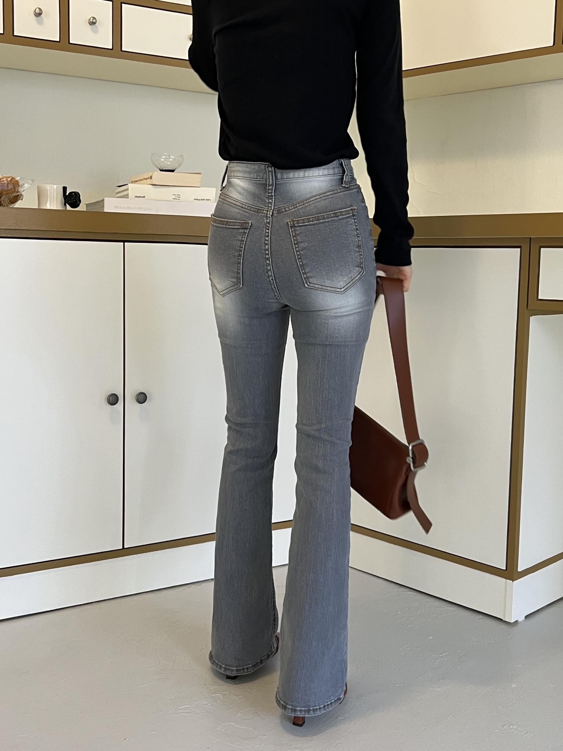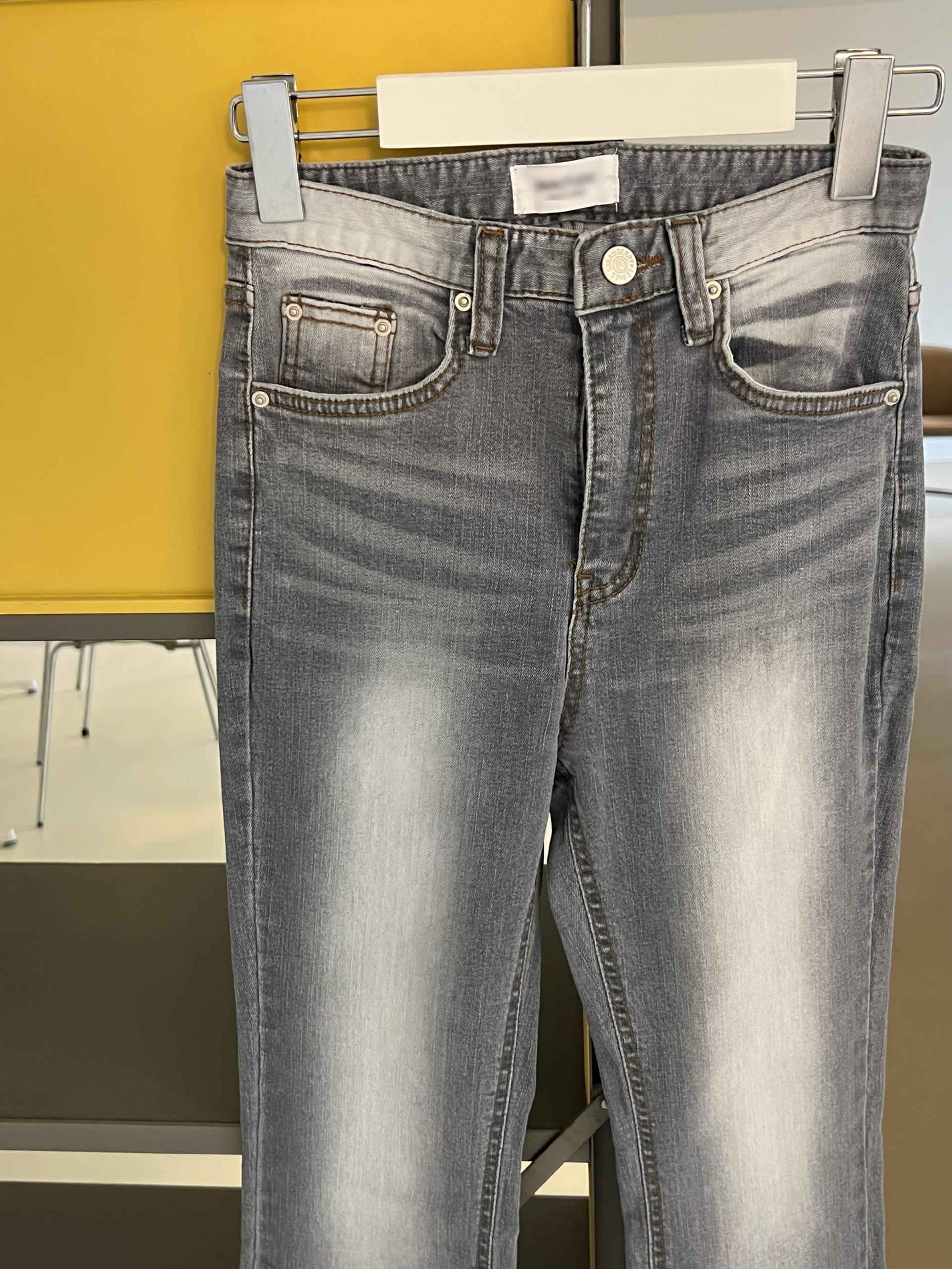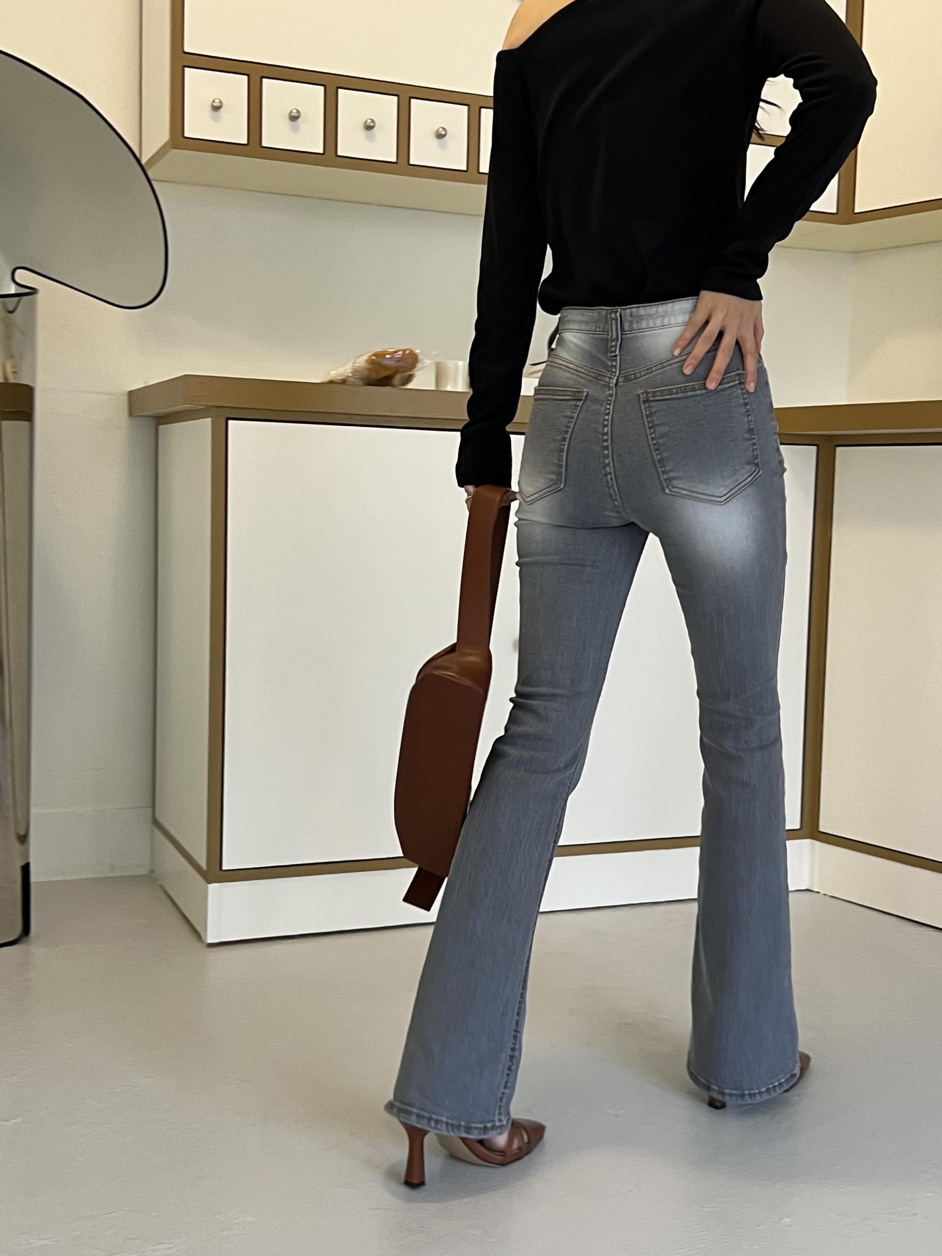 유니크한 워싱에 흔하지 않은 그레이 컬러와 과하지 않은 세미 부츠컷 핏으로 가을 시즌 데일리 데님으로 추천해요. 하이웨스트 밑위에 롱한 기장감으로 다리가 길고 날씬해 보이며, 운동화 같은 낮은 굽의 슈즈와 착용해도 핏이 너무 예뻤어요.