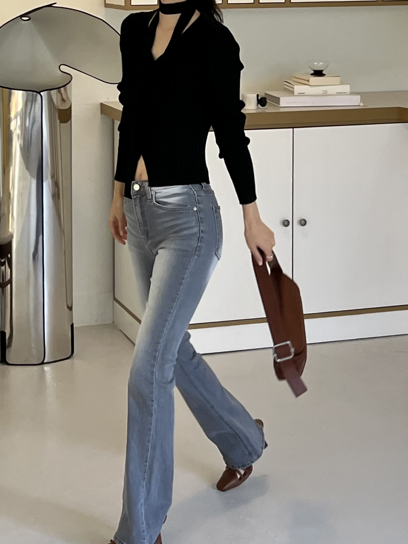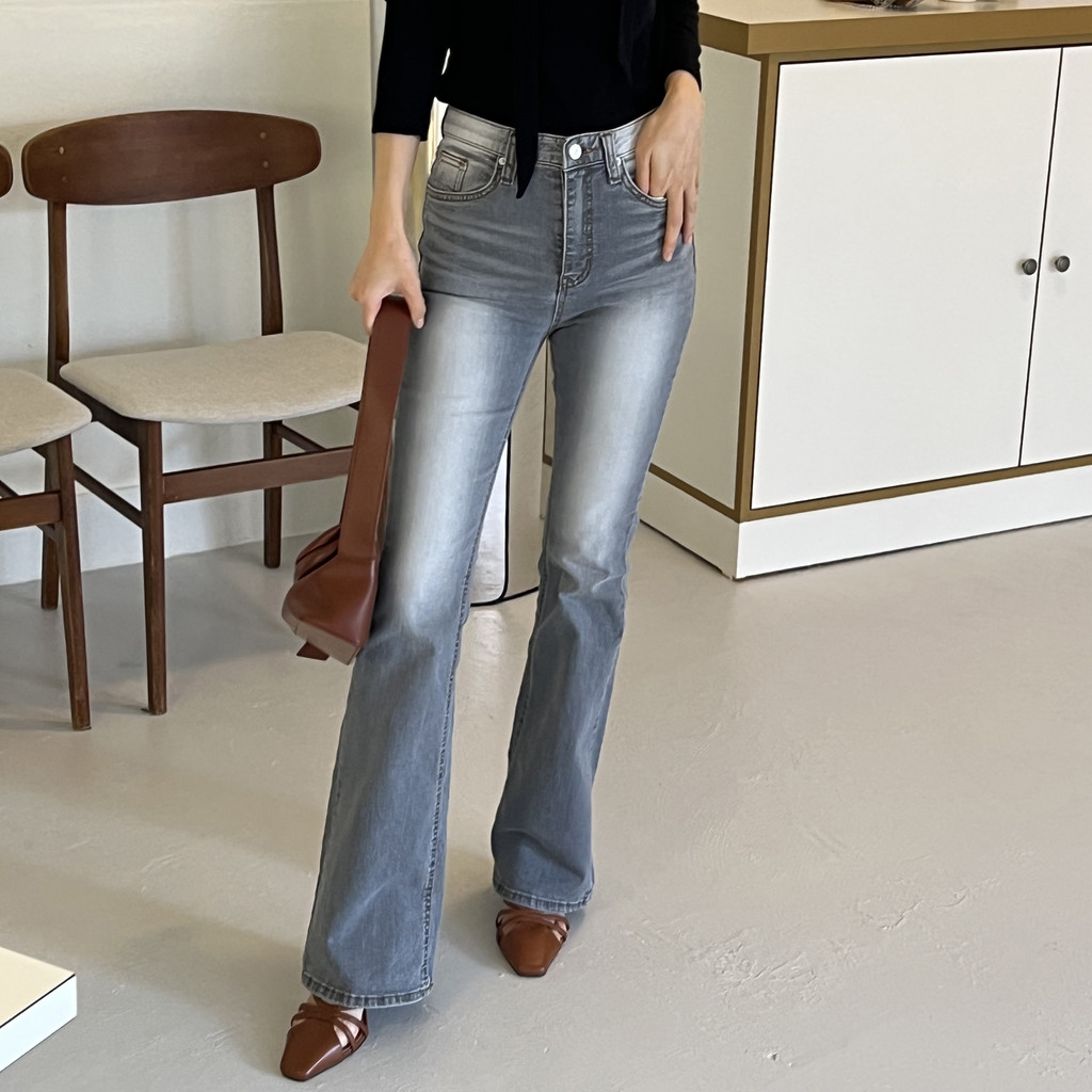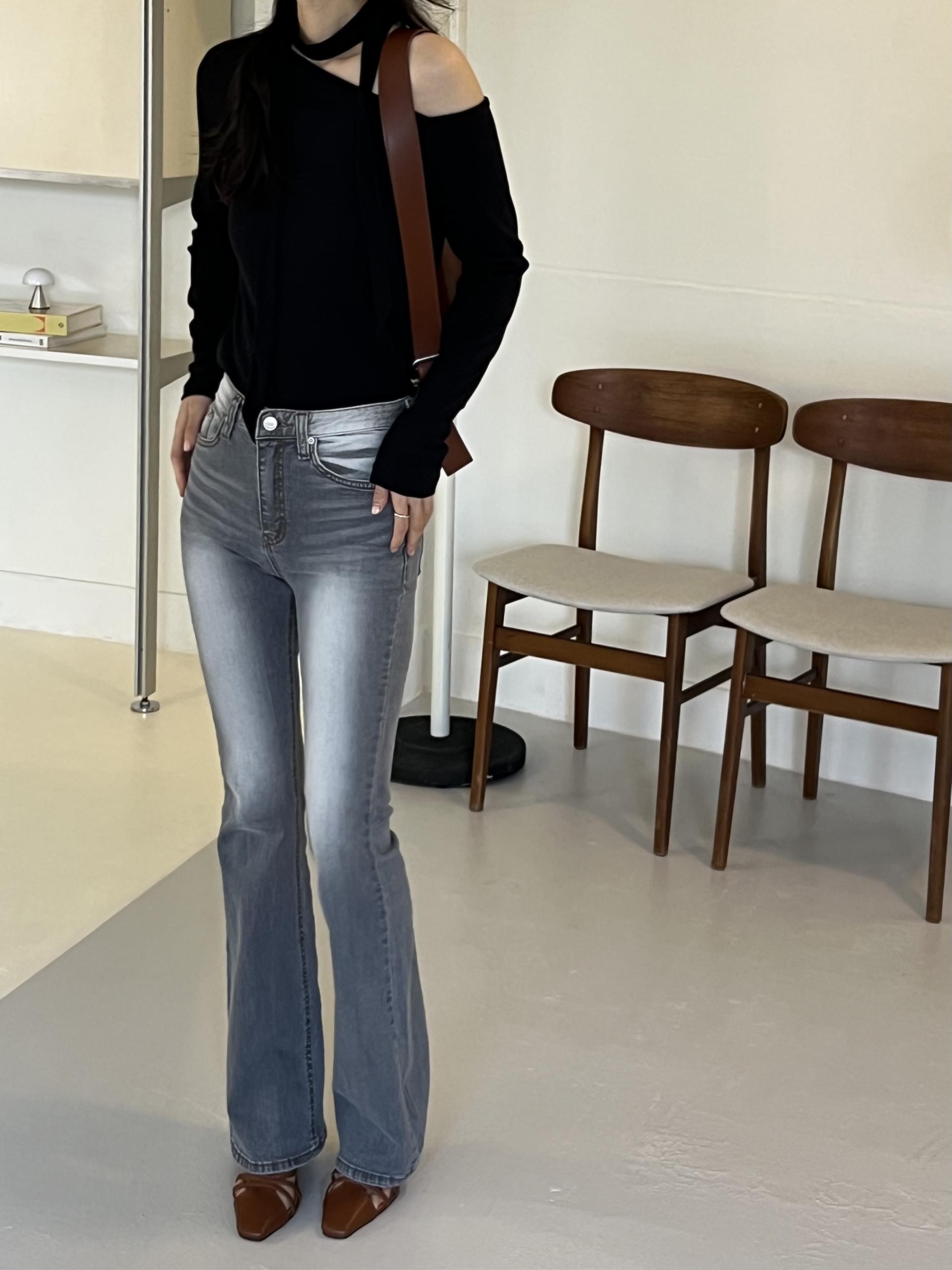 유니크한 워싱에 흔하지 않은 그레이 컬러와 과하지 않은 세미 부츠컷 핏으로 가을 시즌 데일리 데님으로 추천해요. 하이웨스트 밑위에 롱한 기장감으로 다리가 길고 날씬해 보이며, 운동화 같은 낮은 굽의 슈즈와 착용해도 핏이 너무 예뻤어요.