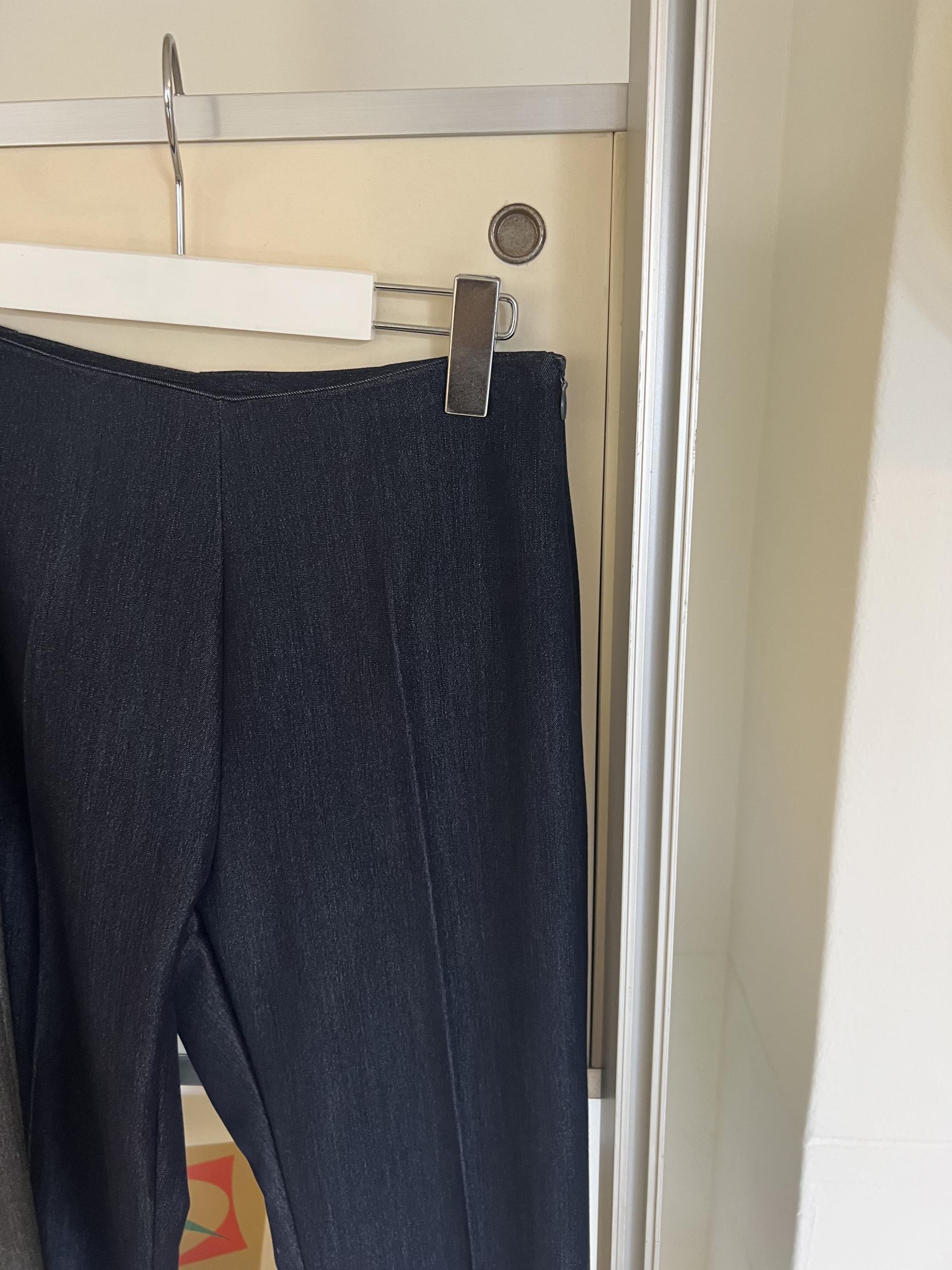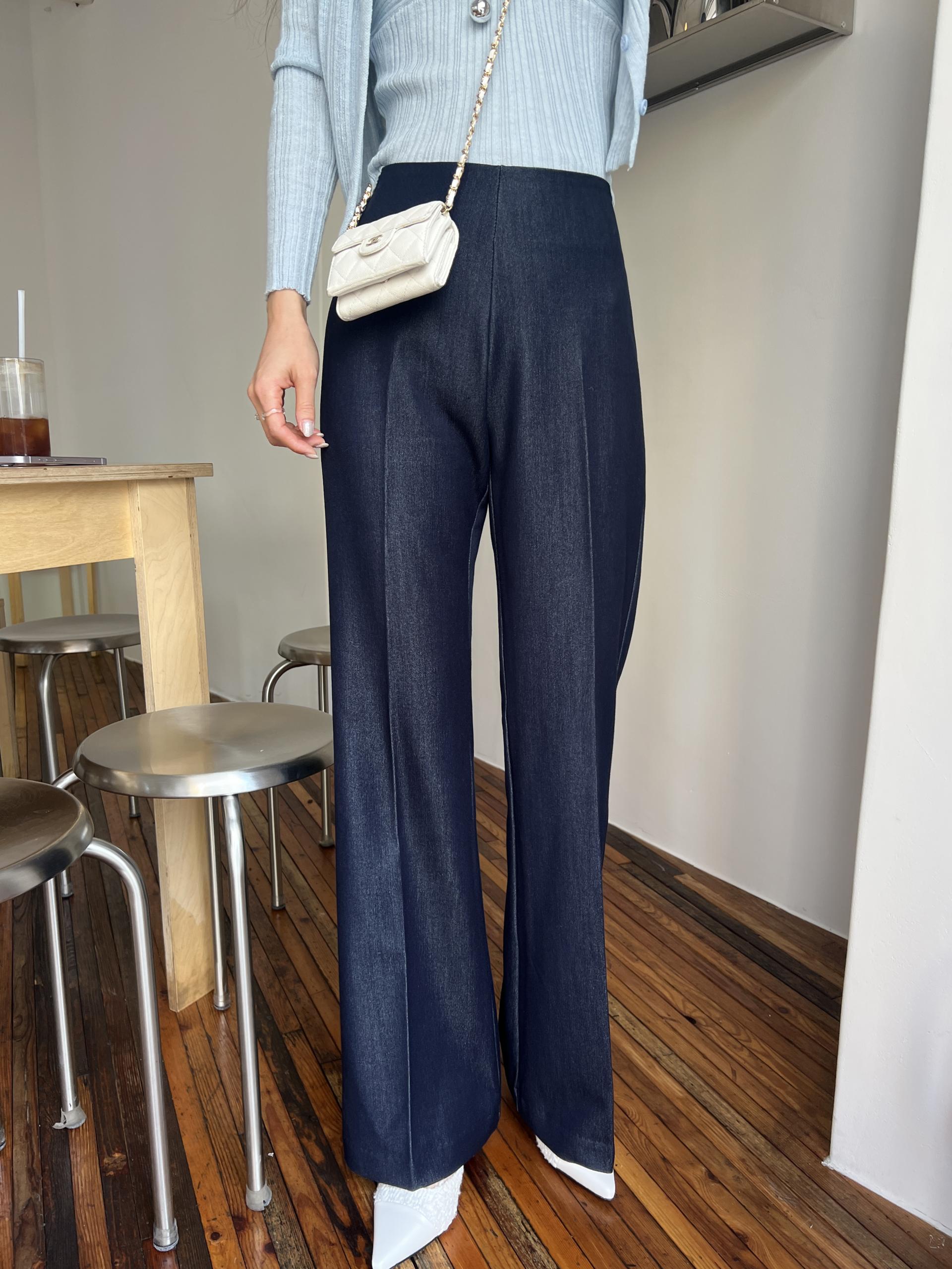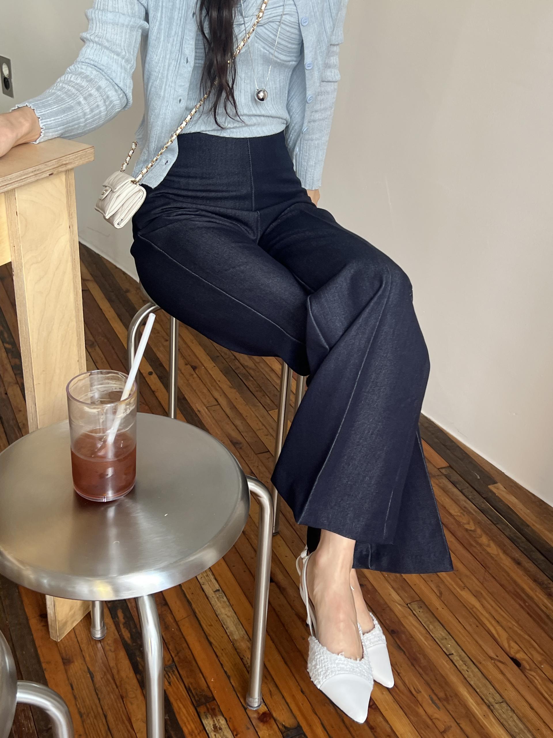 아주 탄탄한 소재로 어텀 실키 데님 슬랙스가 차르르 떨어지는 느낌이라면 이 팬츠는 탄탄하게 잡아주는 느낌의 원단이에요.