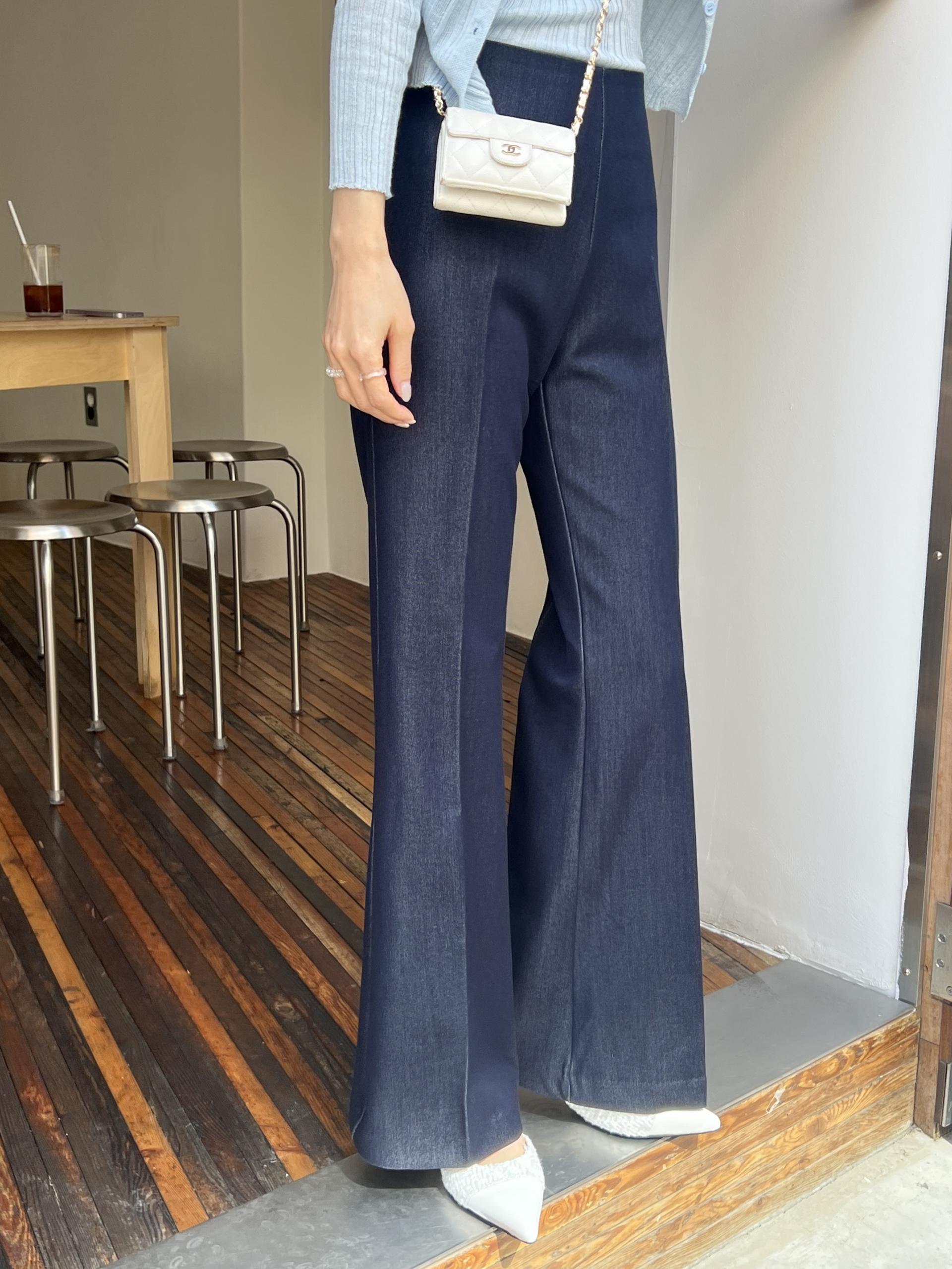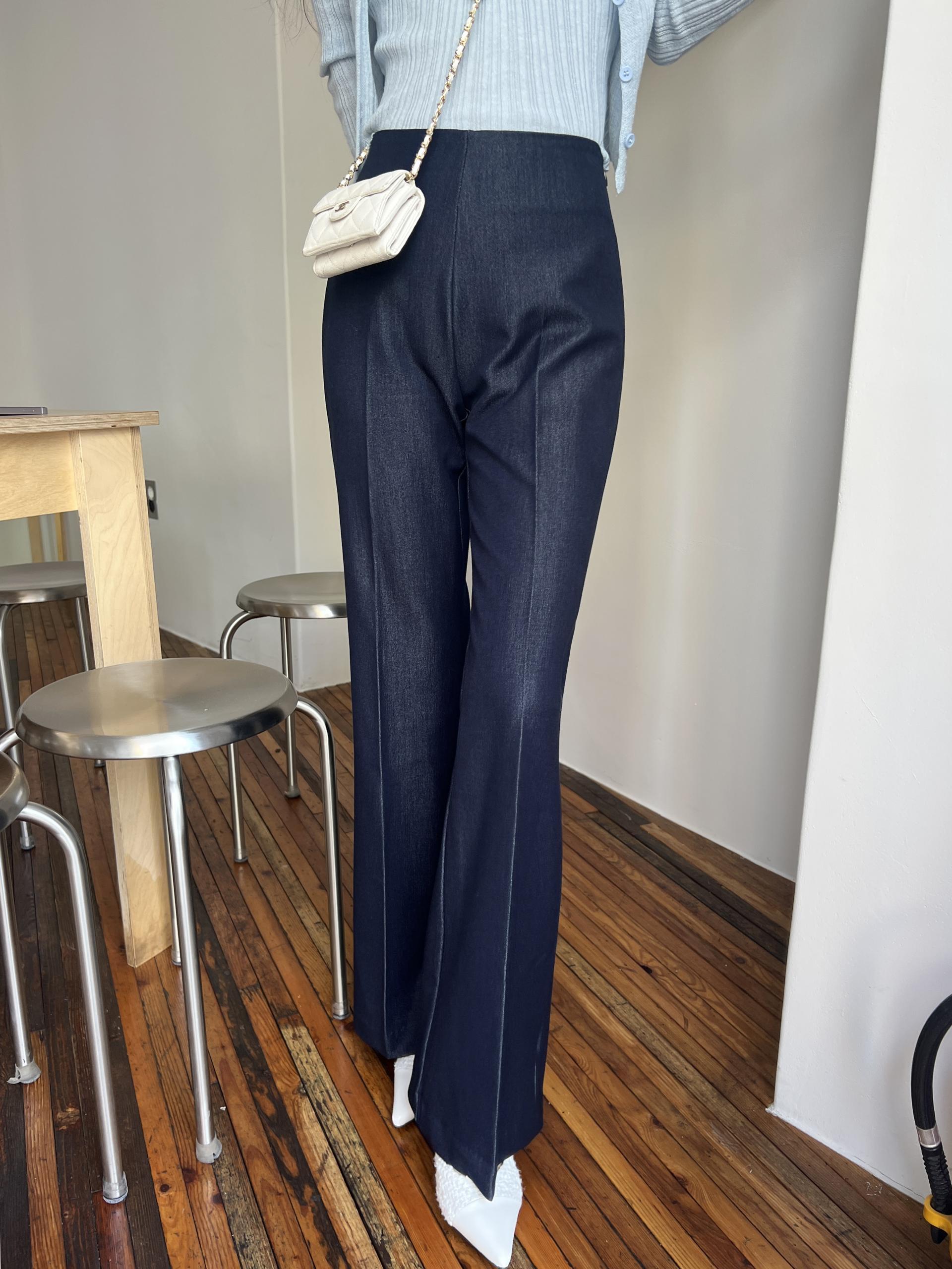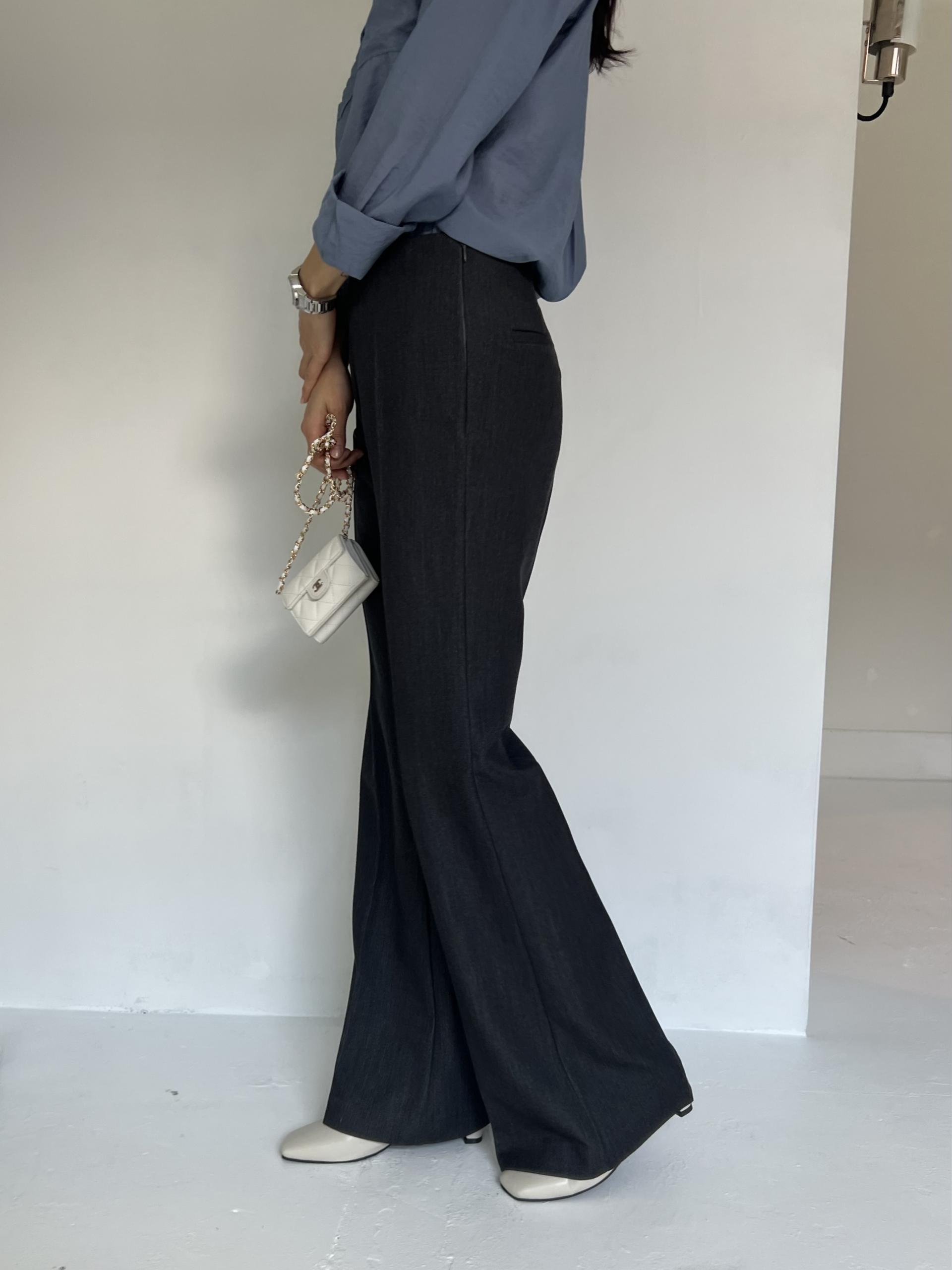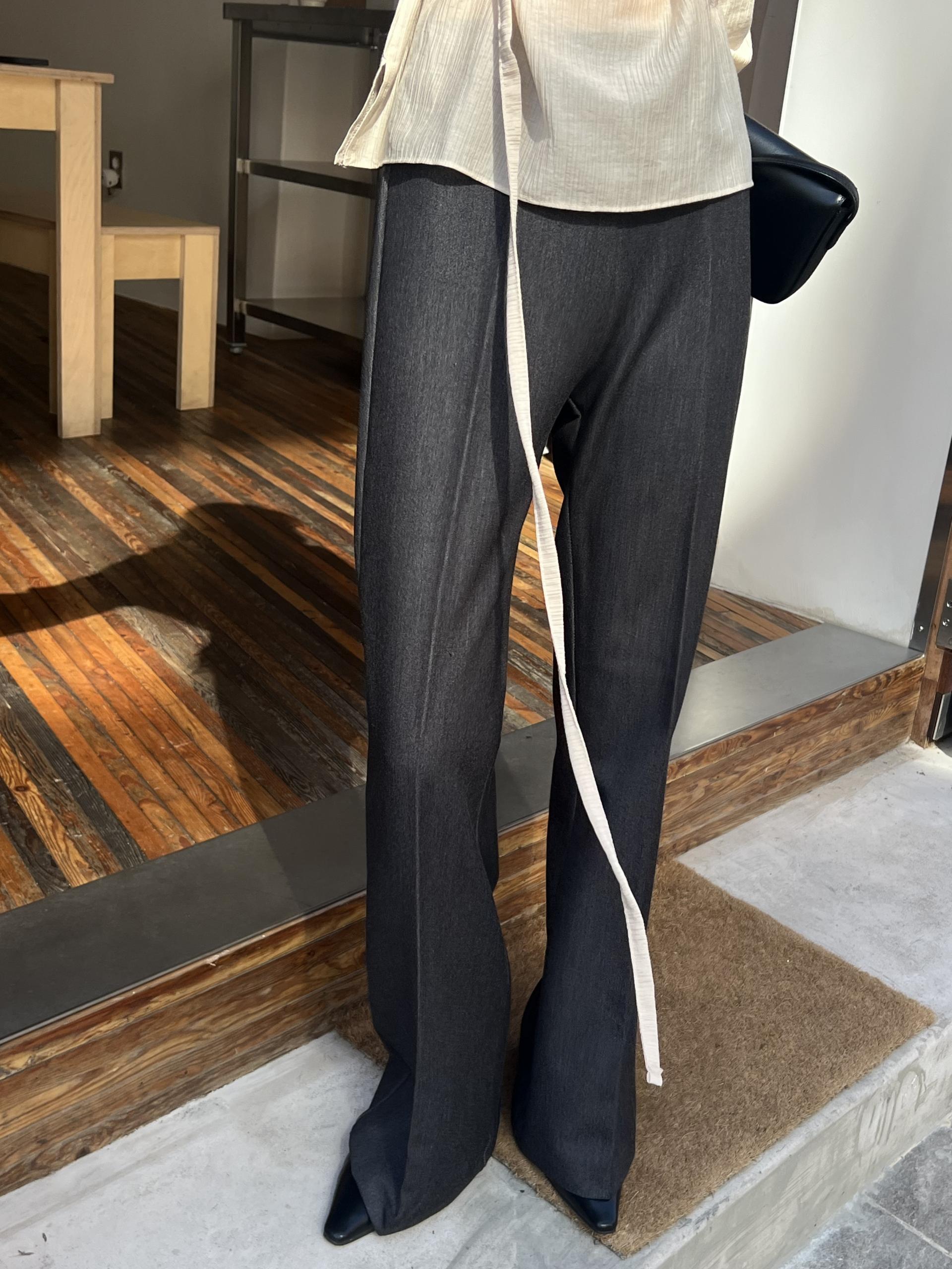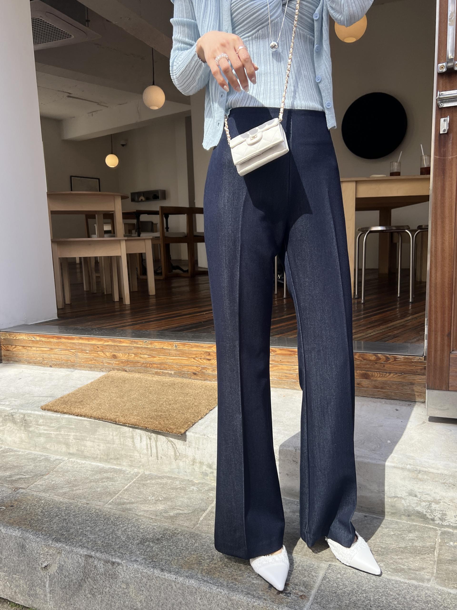 탄탄한 원단감에 데님 텍스처를 살린 세미 부츠컷 슬랙스입니다.