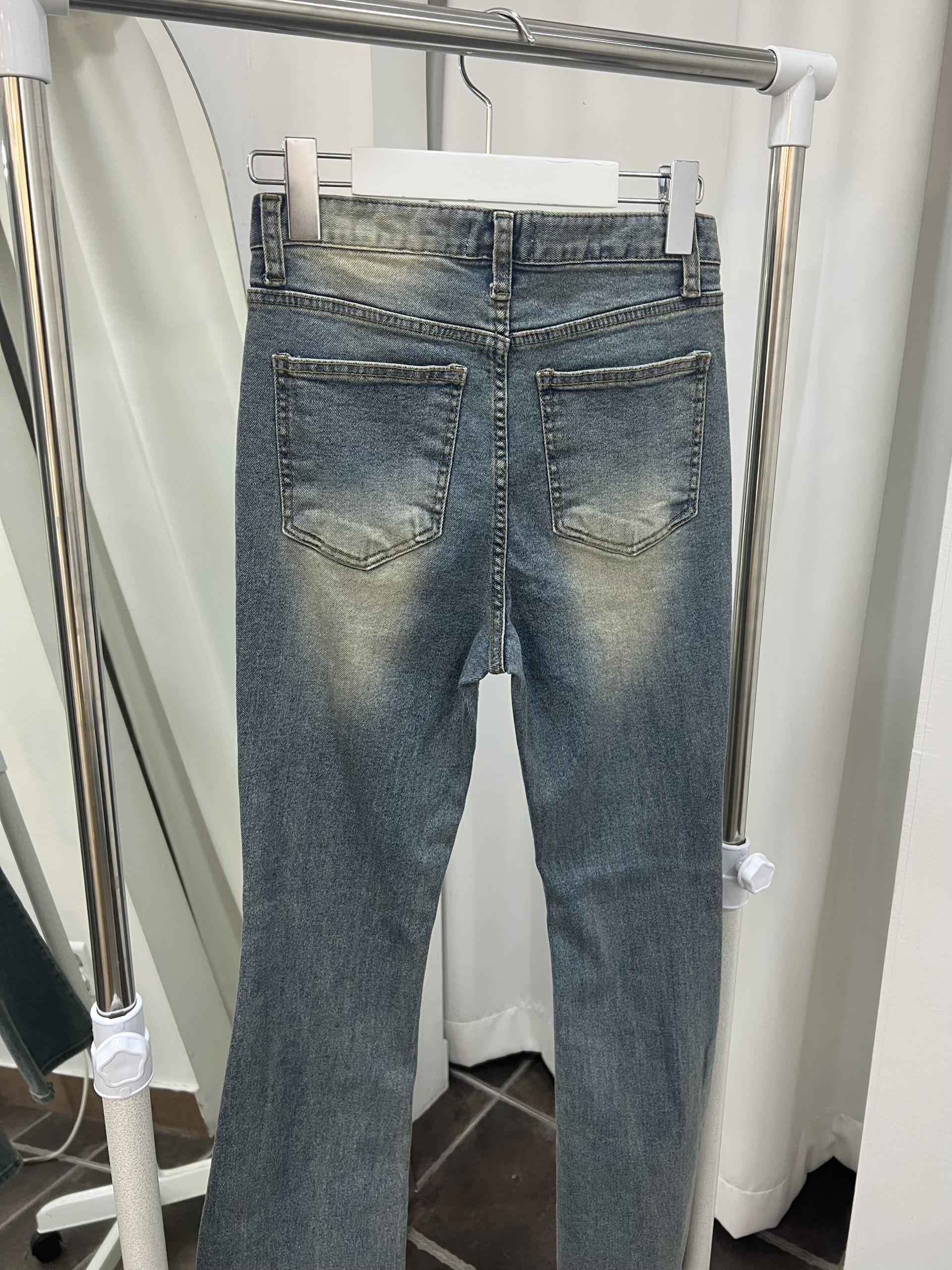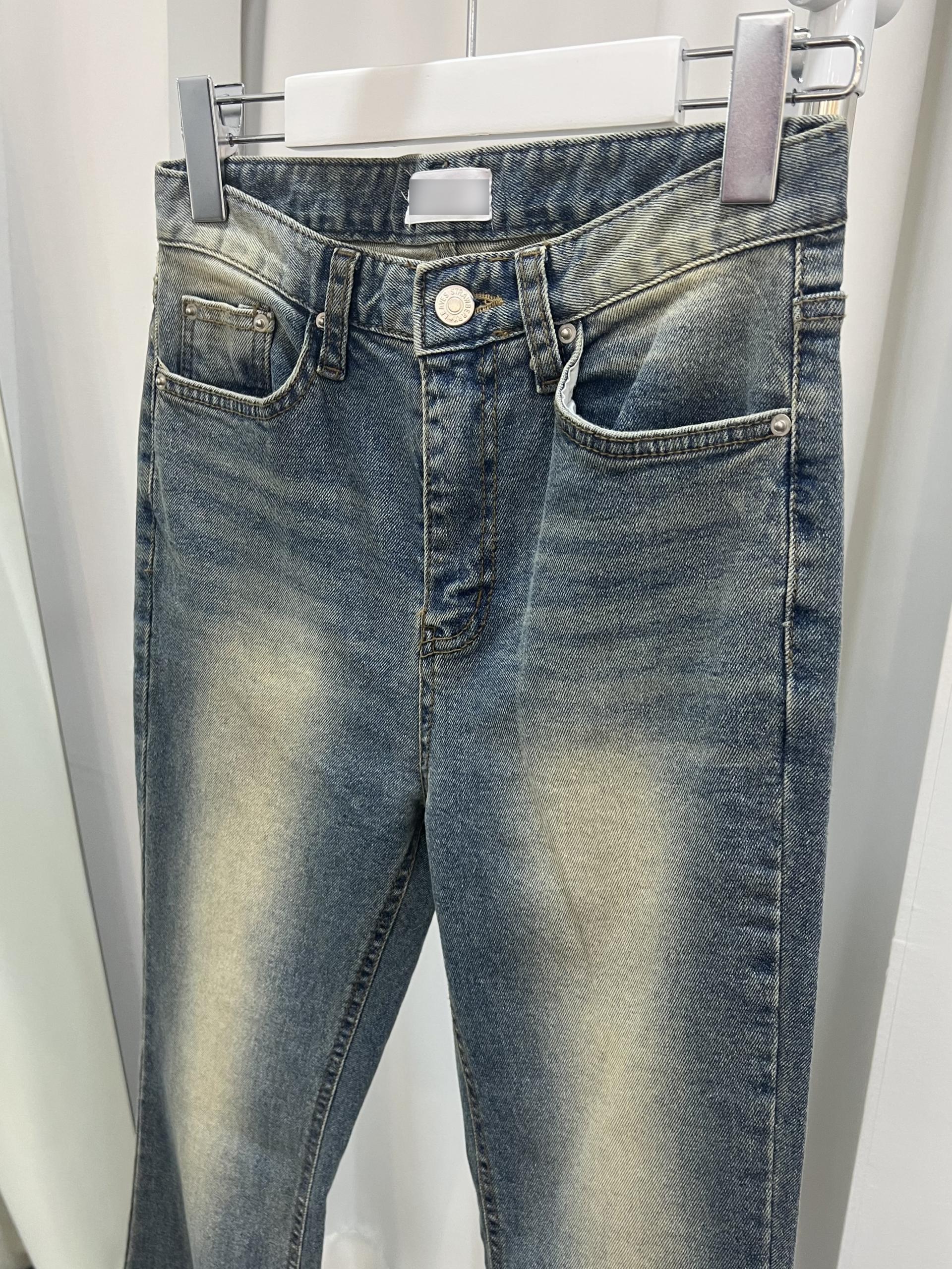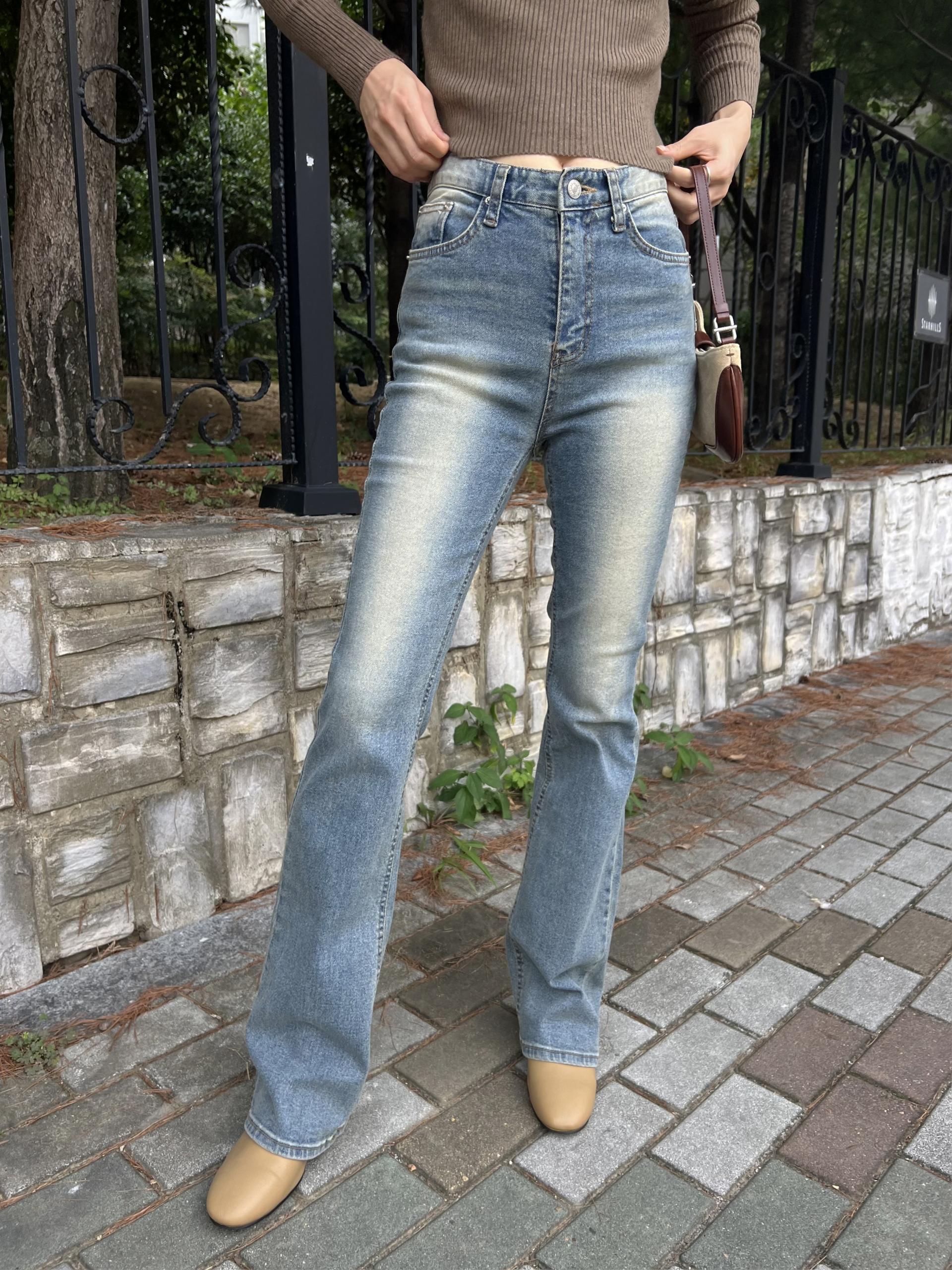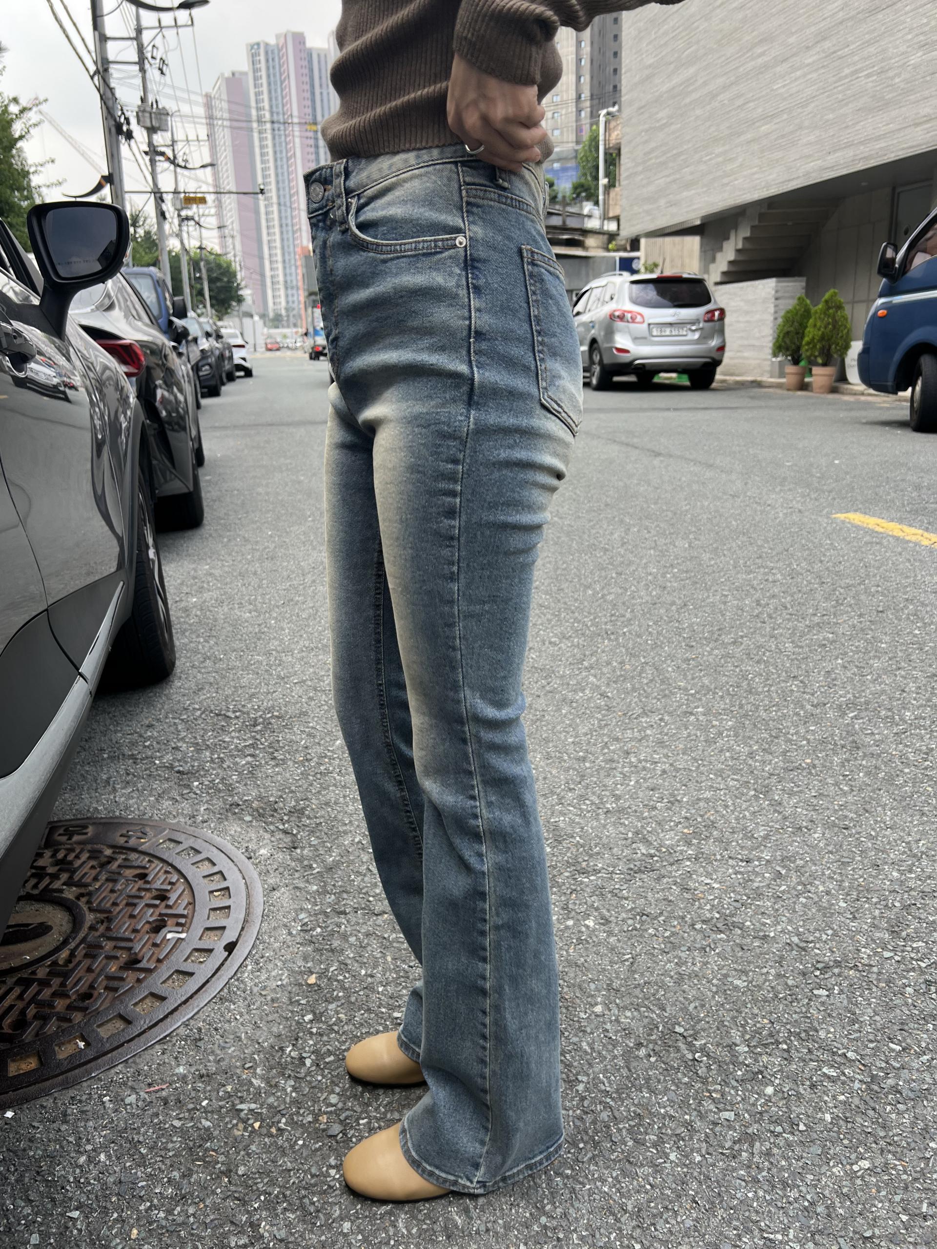 묘한 컬러감과 워싱의 세미 부츠컷 데님입니다.