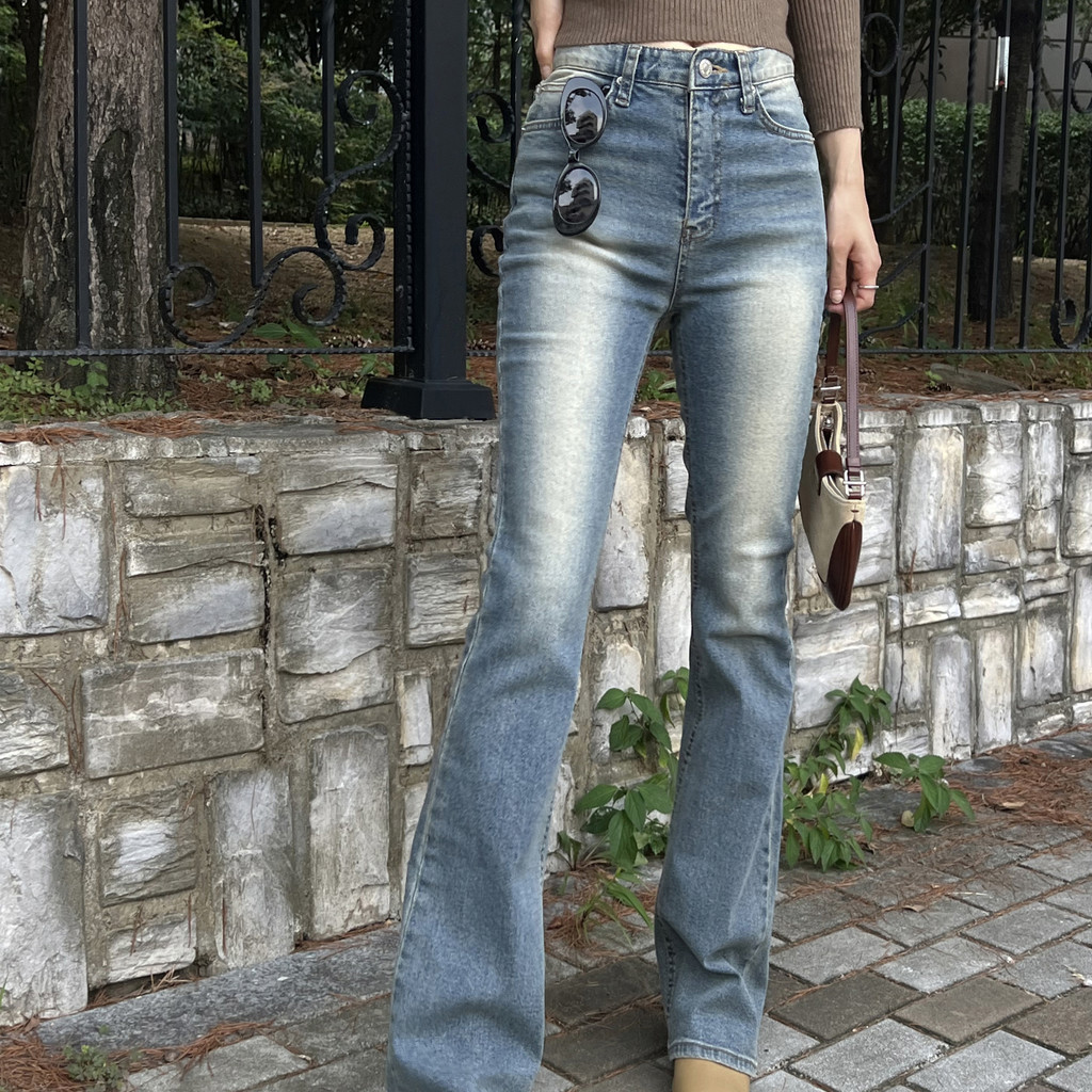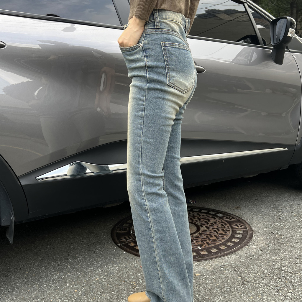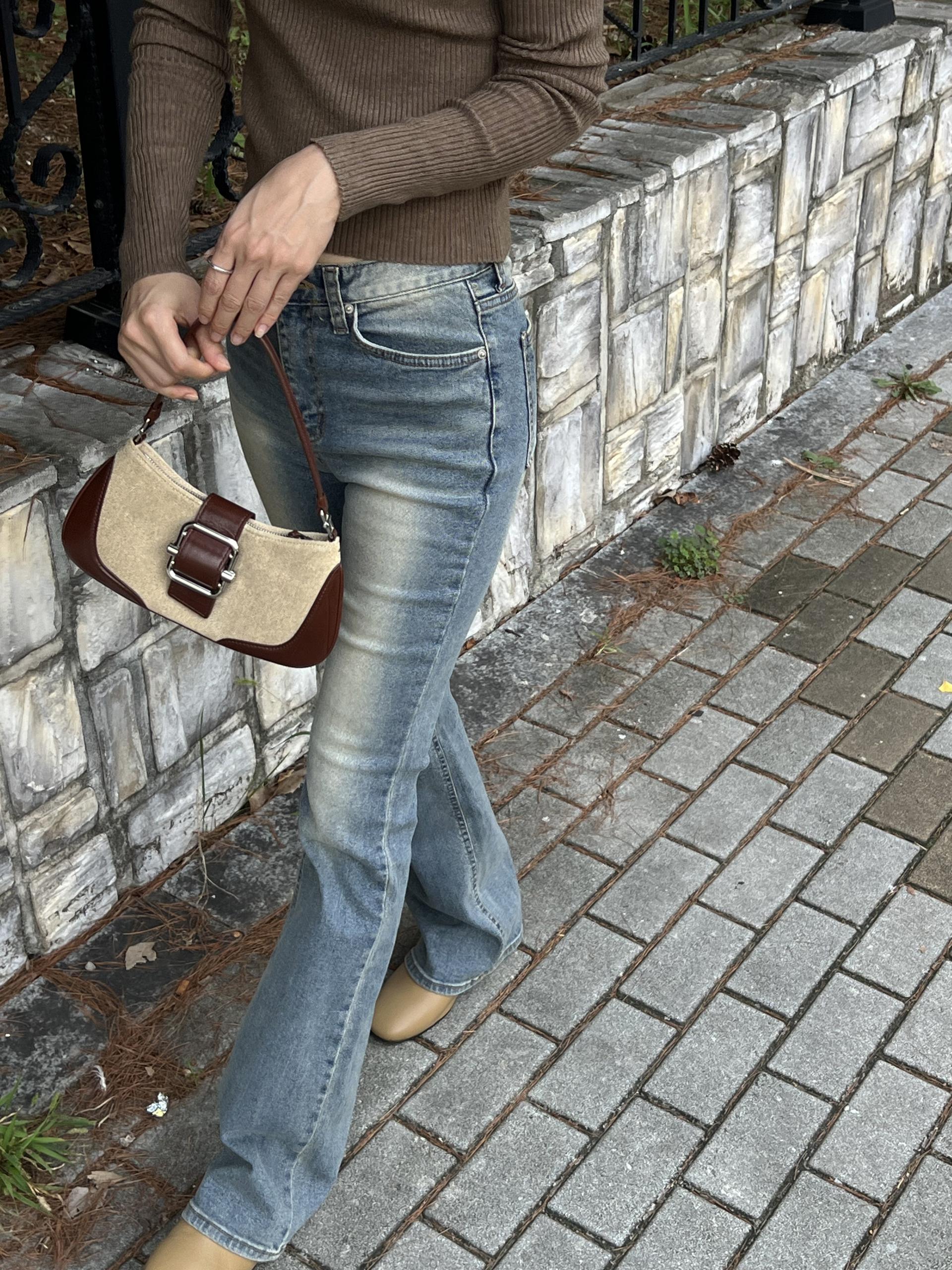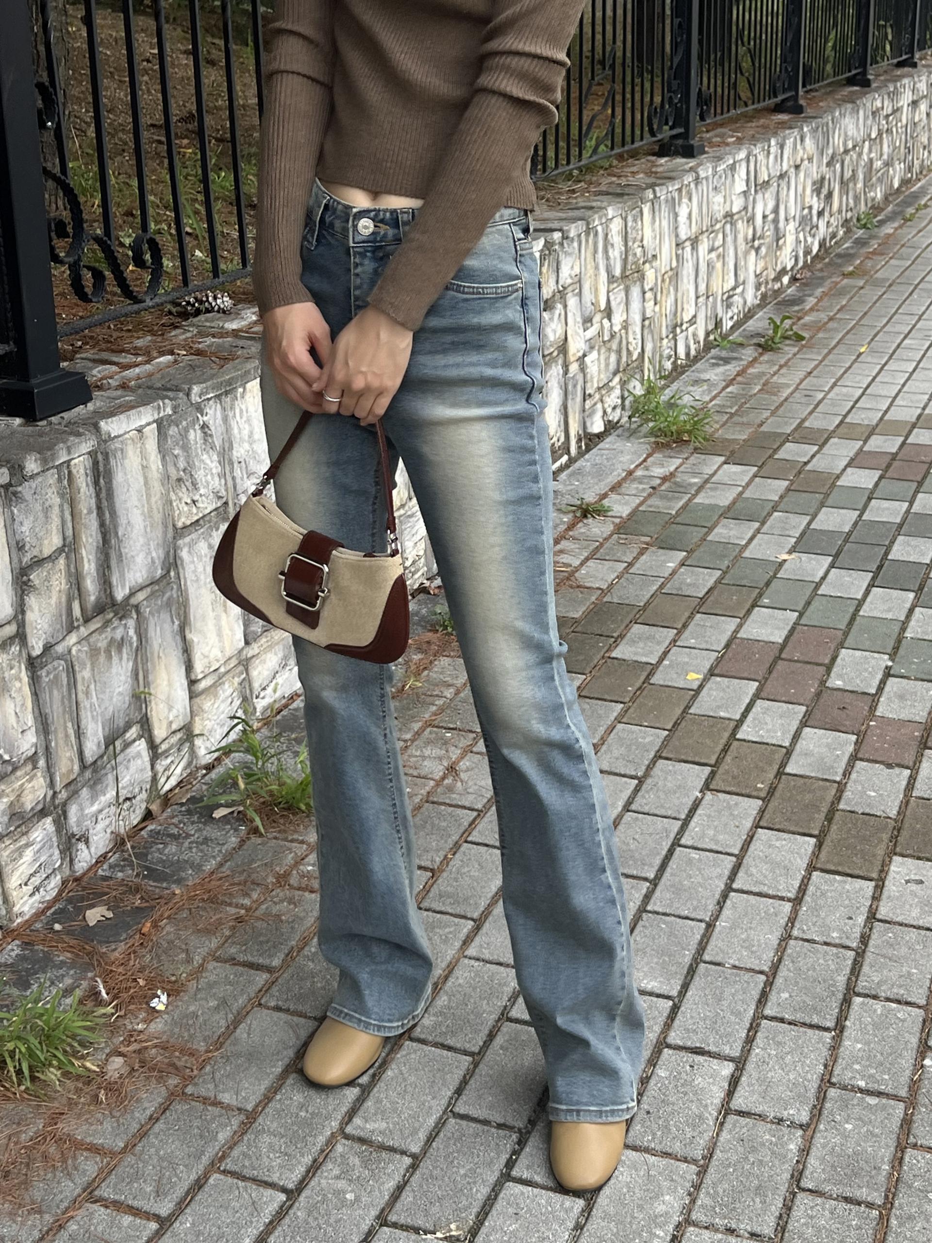 묘한 컬러감과 워싱의 세미 부츠컷 데님입니다.