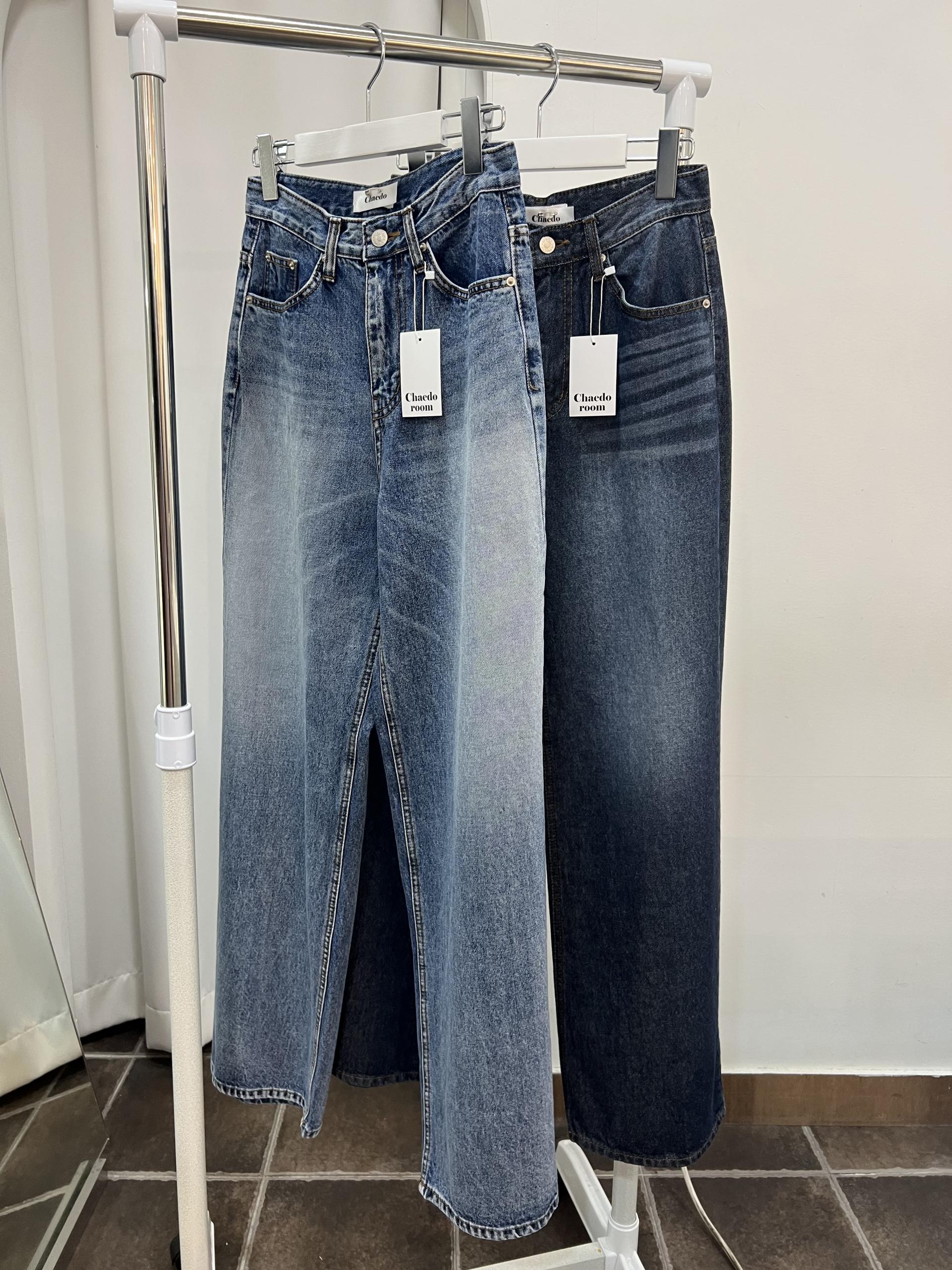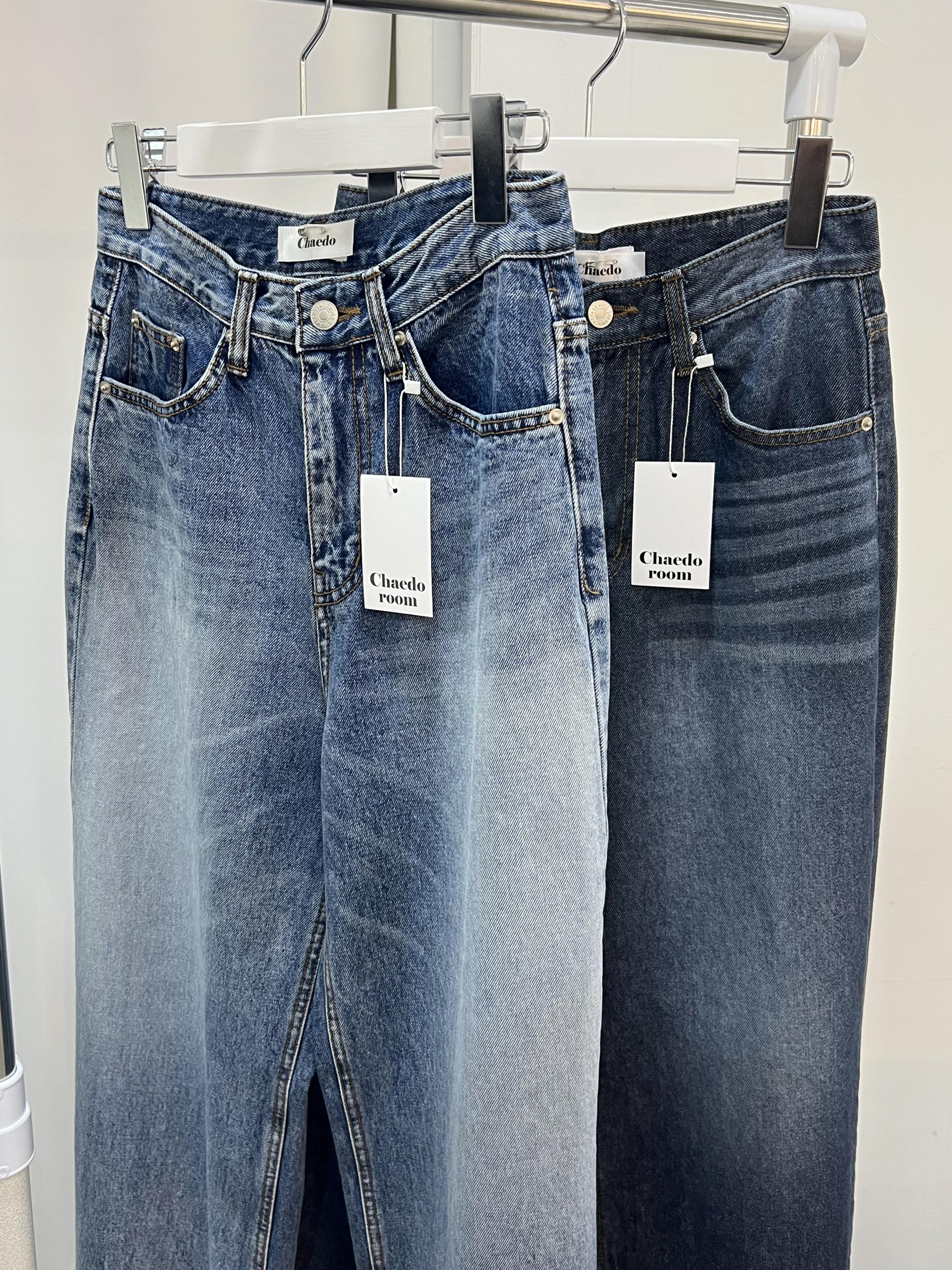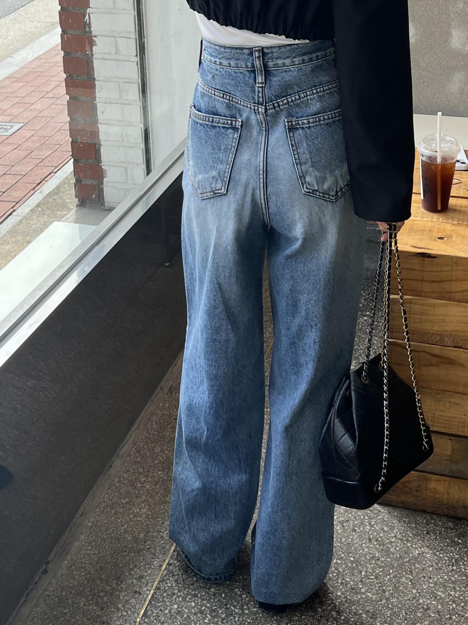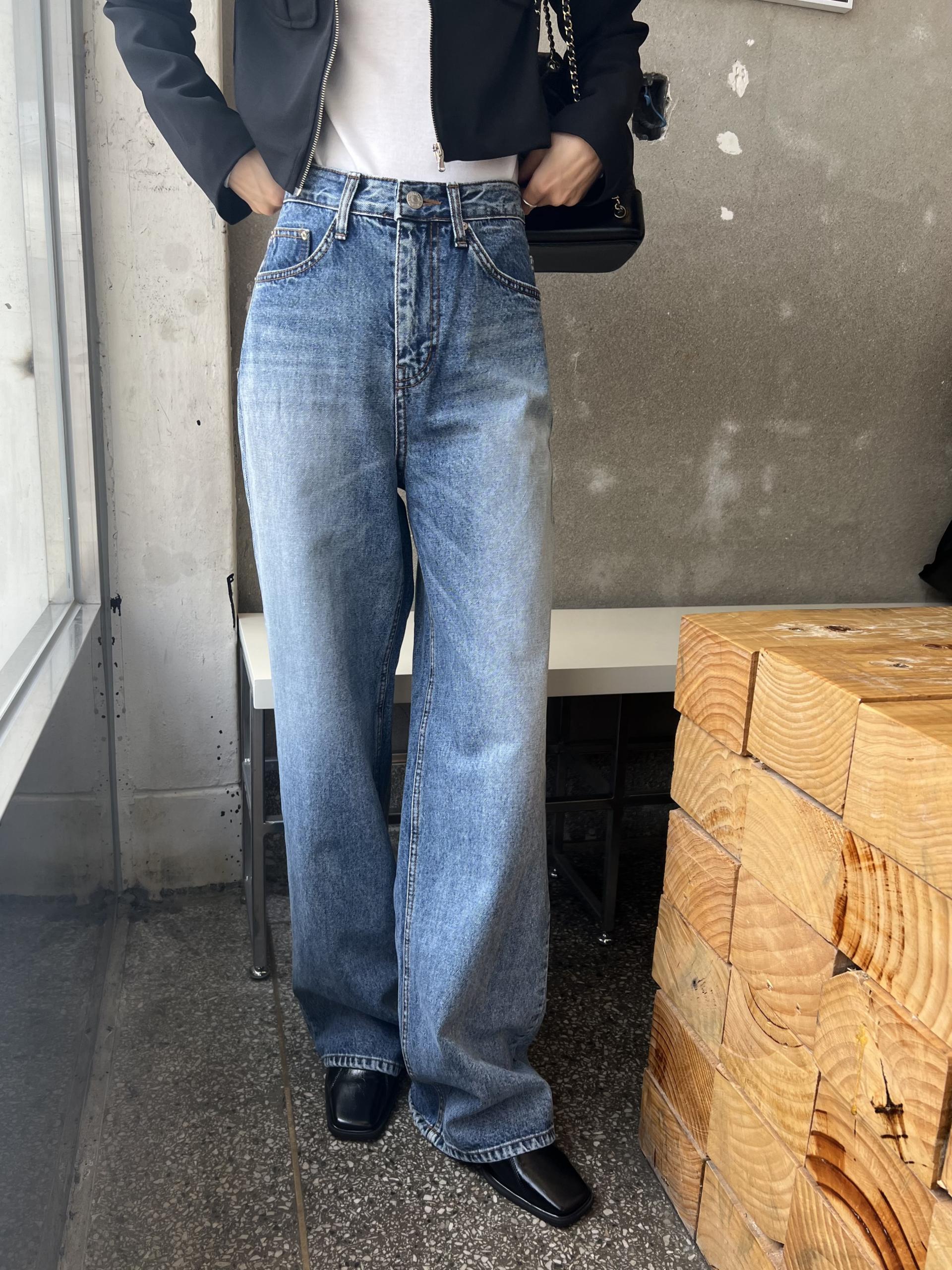 멋스러운 스트레이트핏 실루엣의 하이웨스트 와이드 데님입니다.