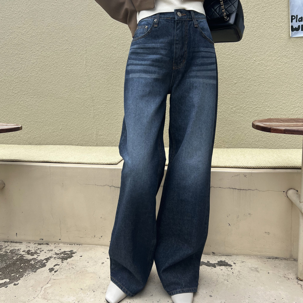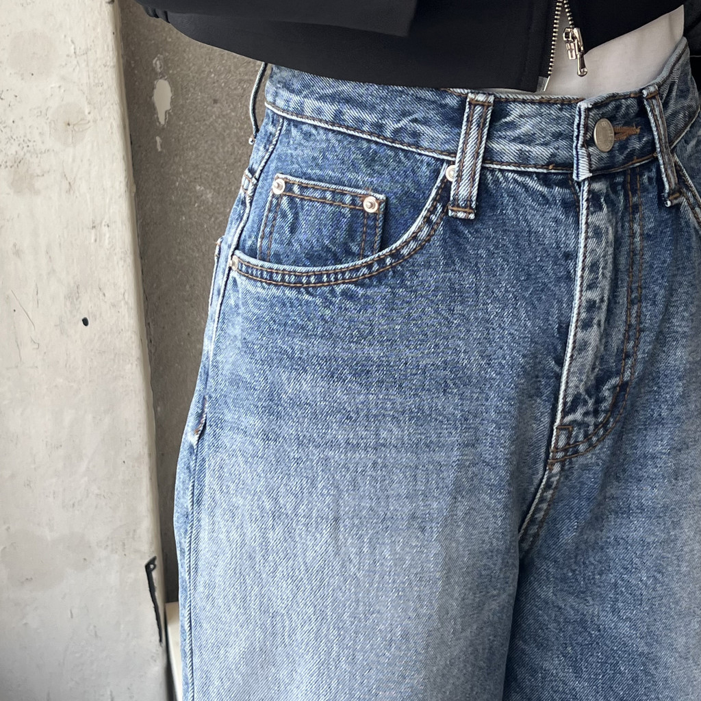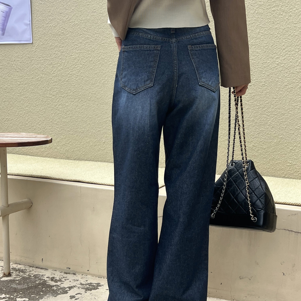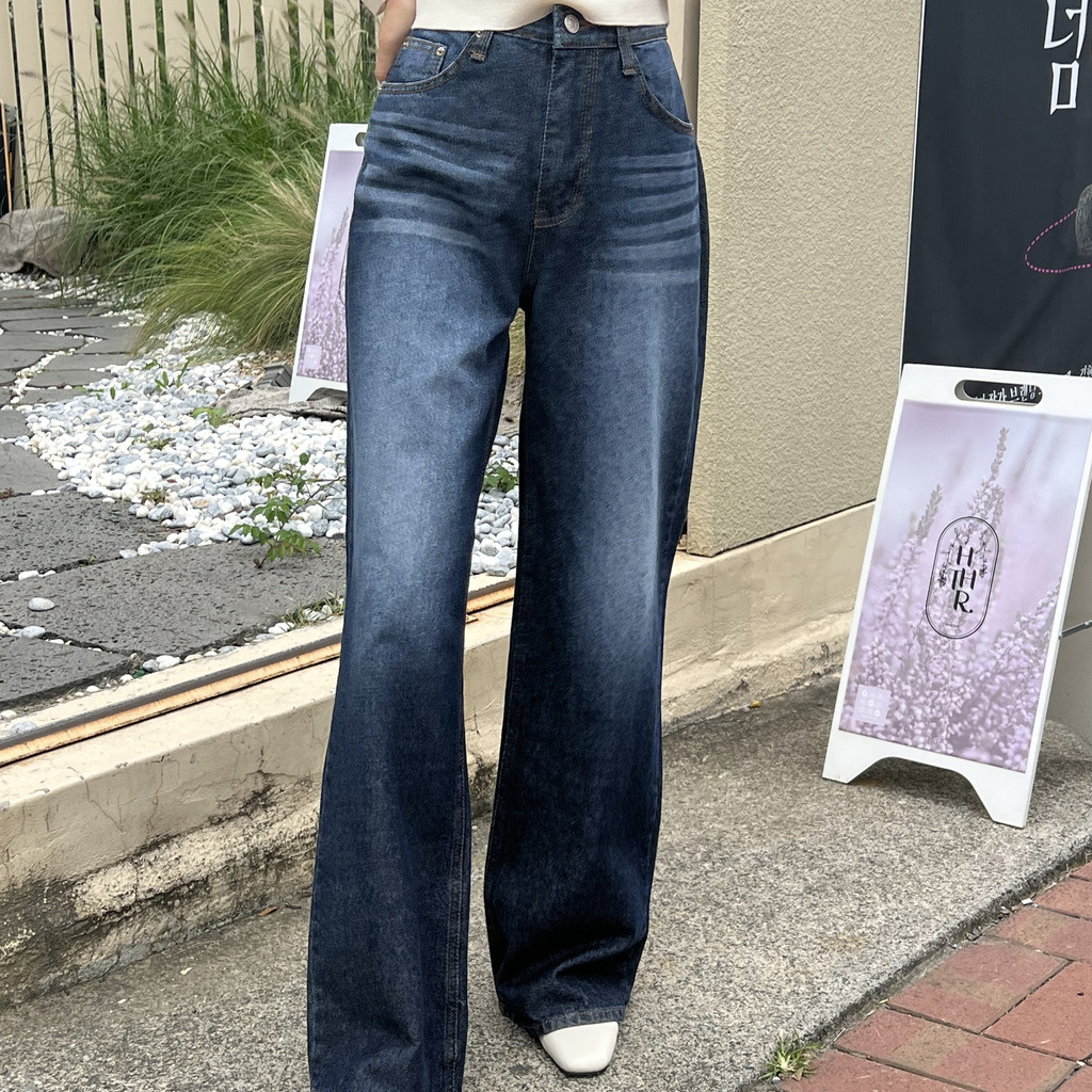 멋스러운 스트레이트핏 실루엣의 하이웨스트 와이드 데님입니다.
