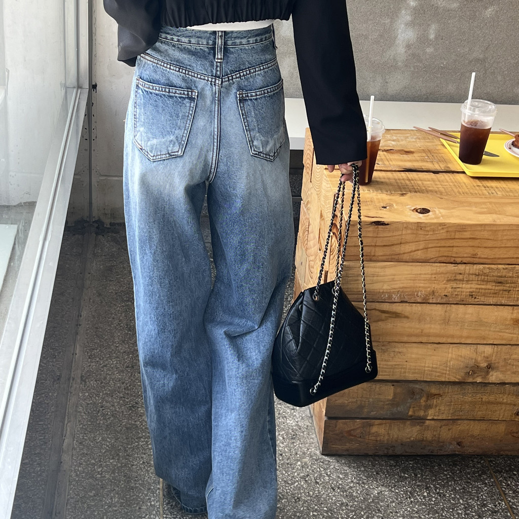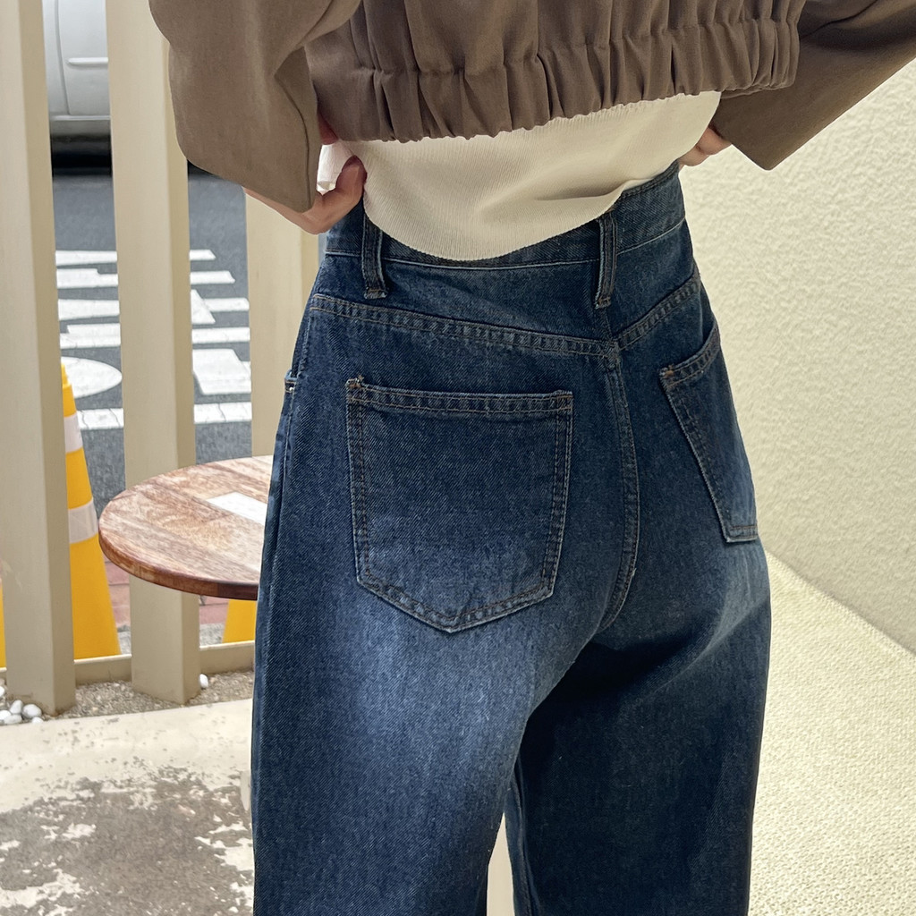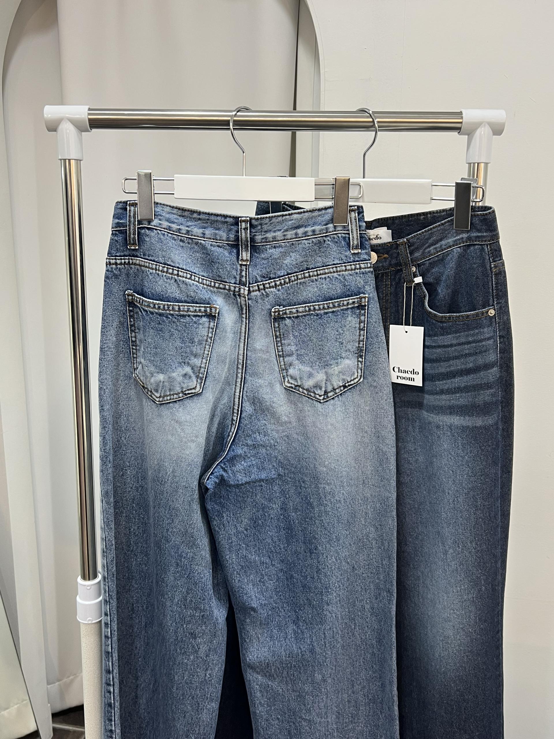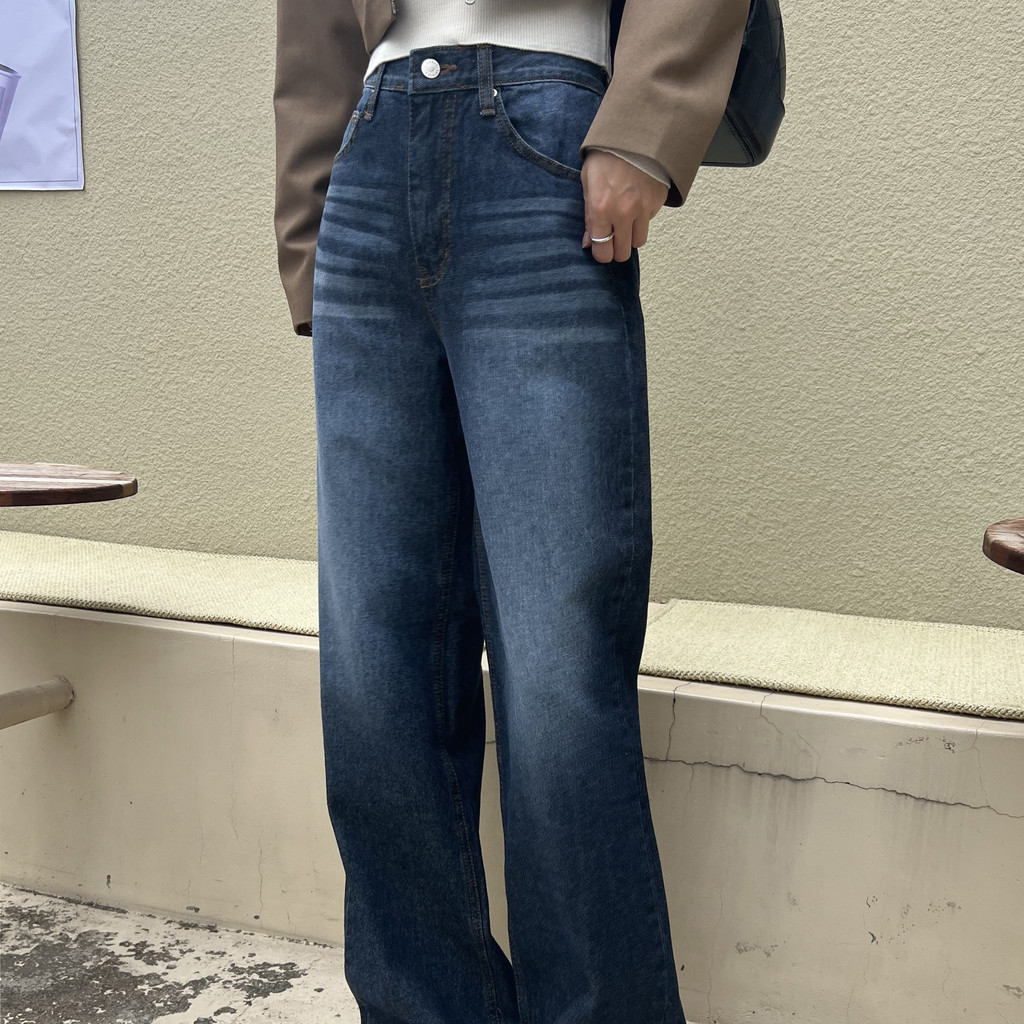 멋스러운 스트레이트핏 실루엣의 하이웨스트 와이드 데님입니다.