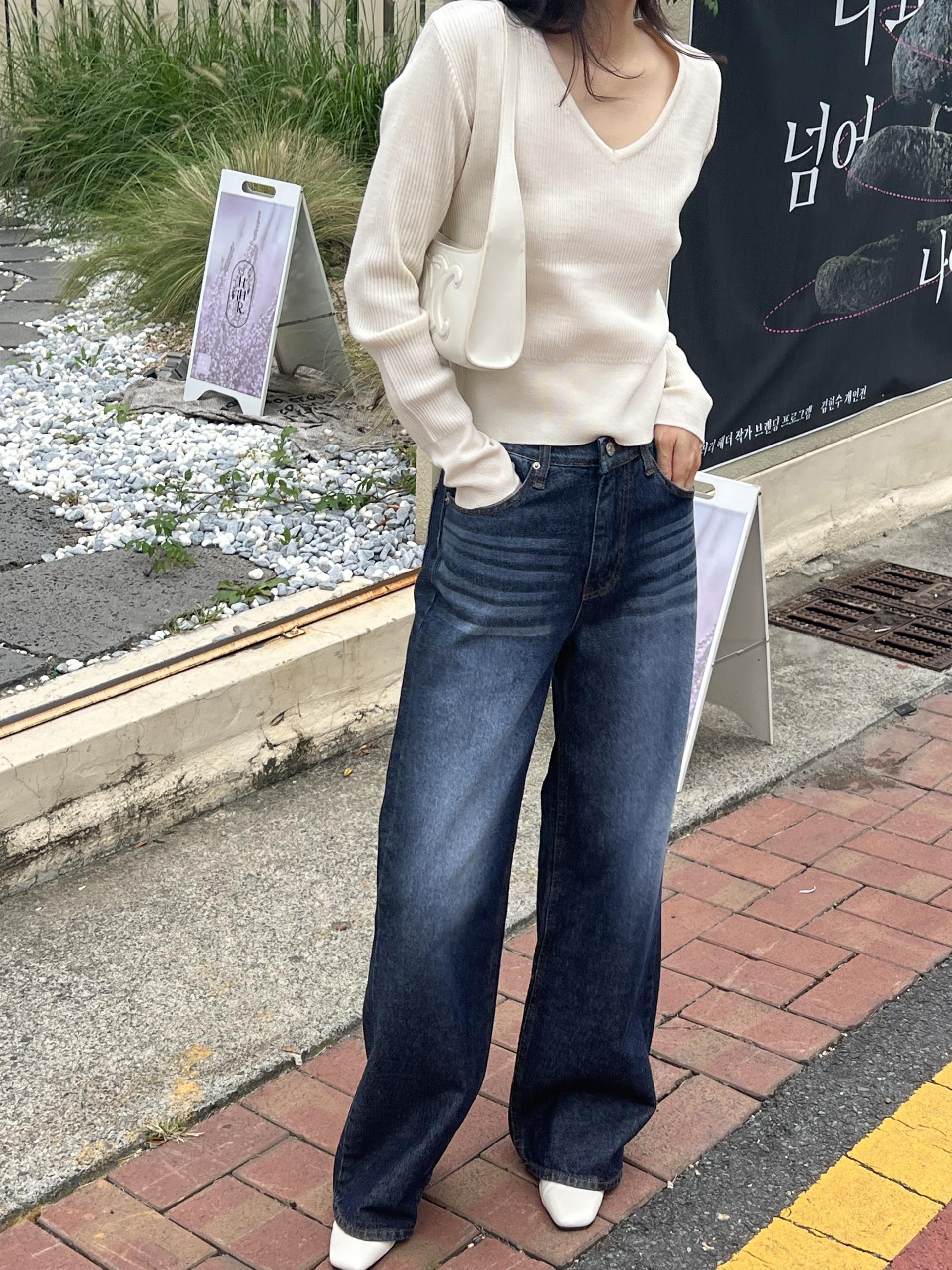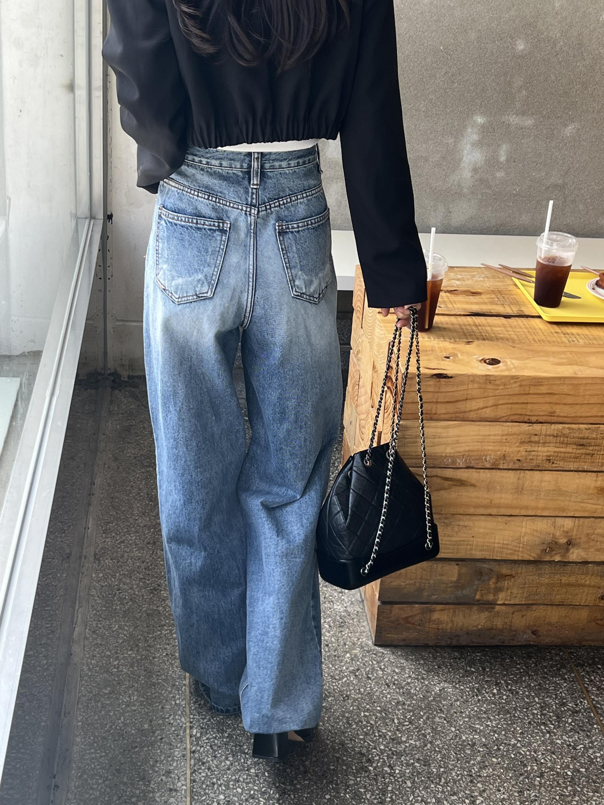 과한 와이드 핏이 아니라 어떤 상의, 아우터든 무난하게 매치할 수 있는 깔끔한 느낌의 와이드 데님을 찾다가 발견한 팬츠에요.