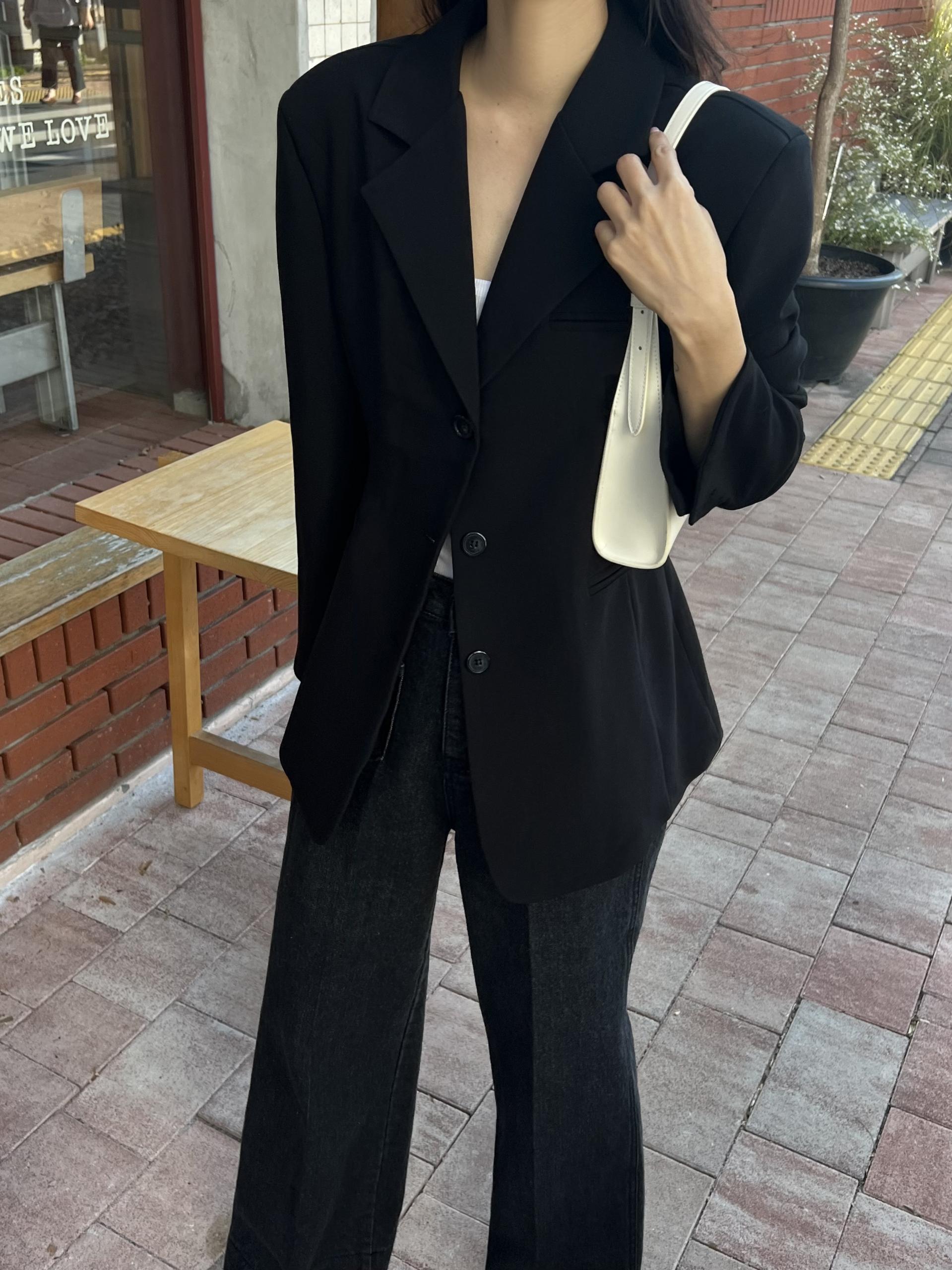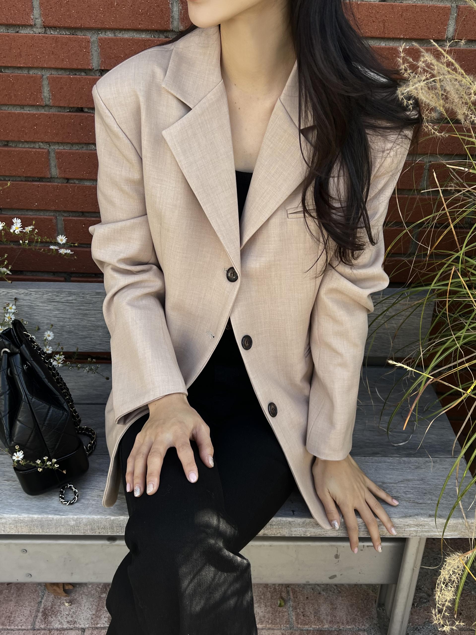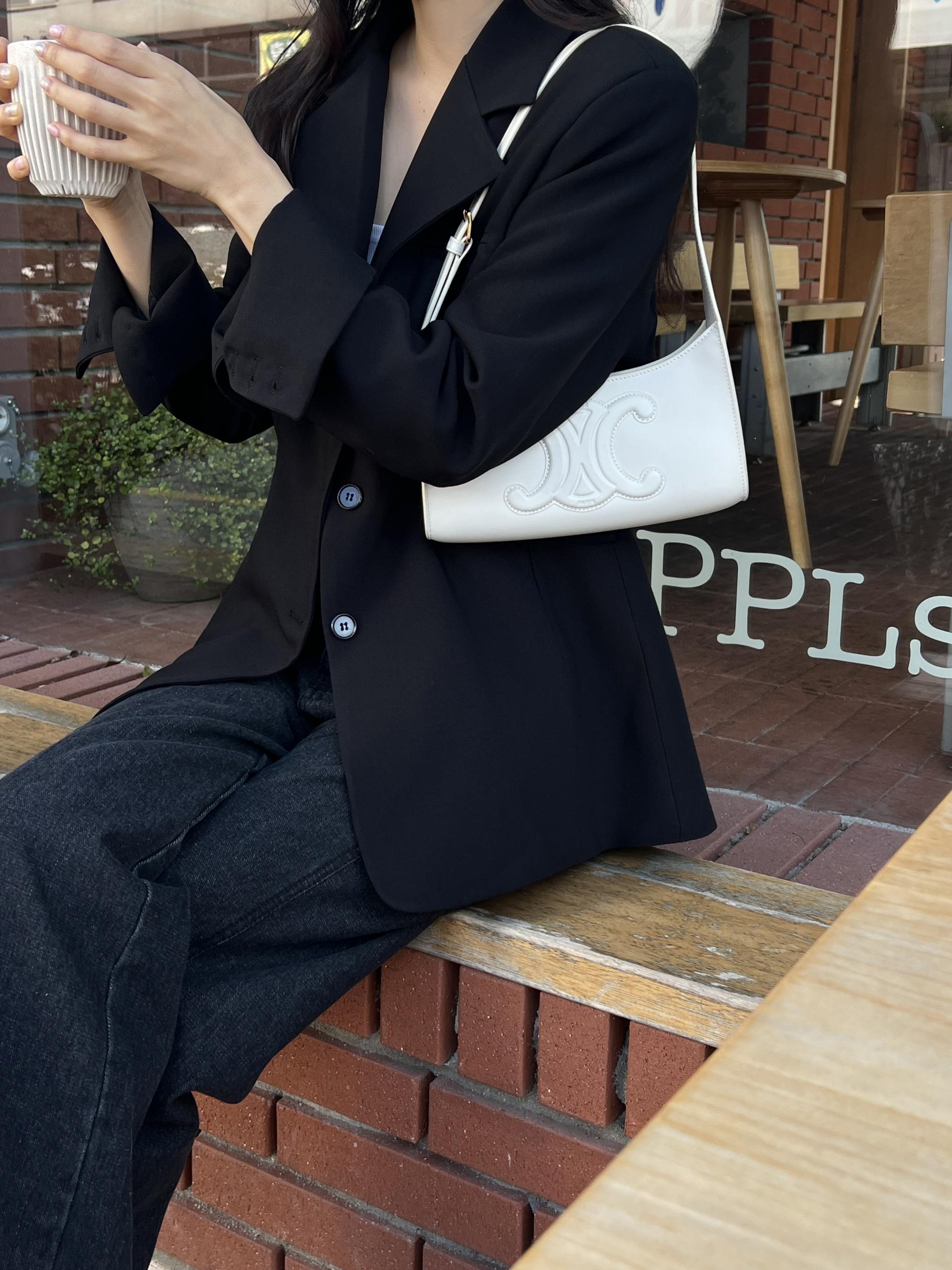 클래식한 정석의 카라와 싱글 버튼으로 오피스룩이나 하객룩 등 격식이 필요한 자리에도 무난하게 활용하기 좋으며 데님과 함께 세미 캐주얼룩으로 착용하셔도 좋습니다.