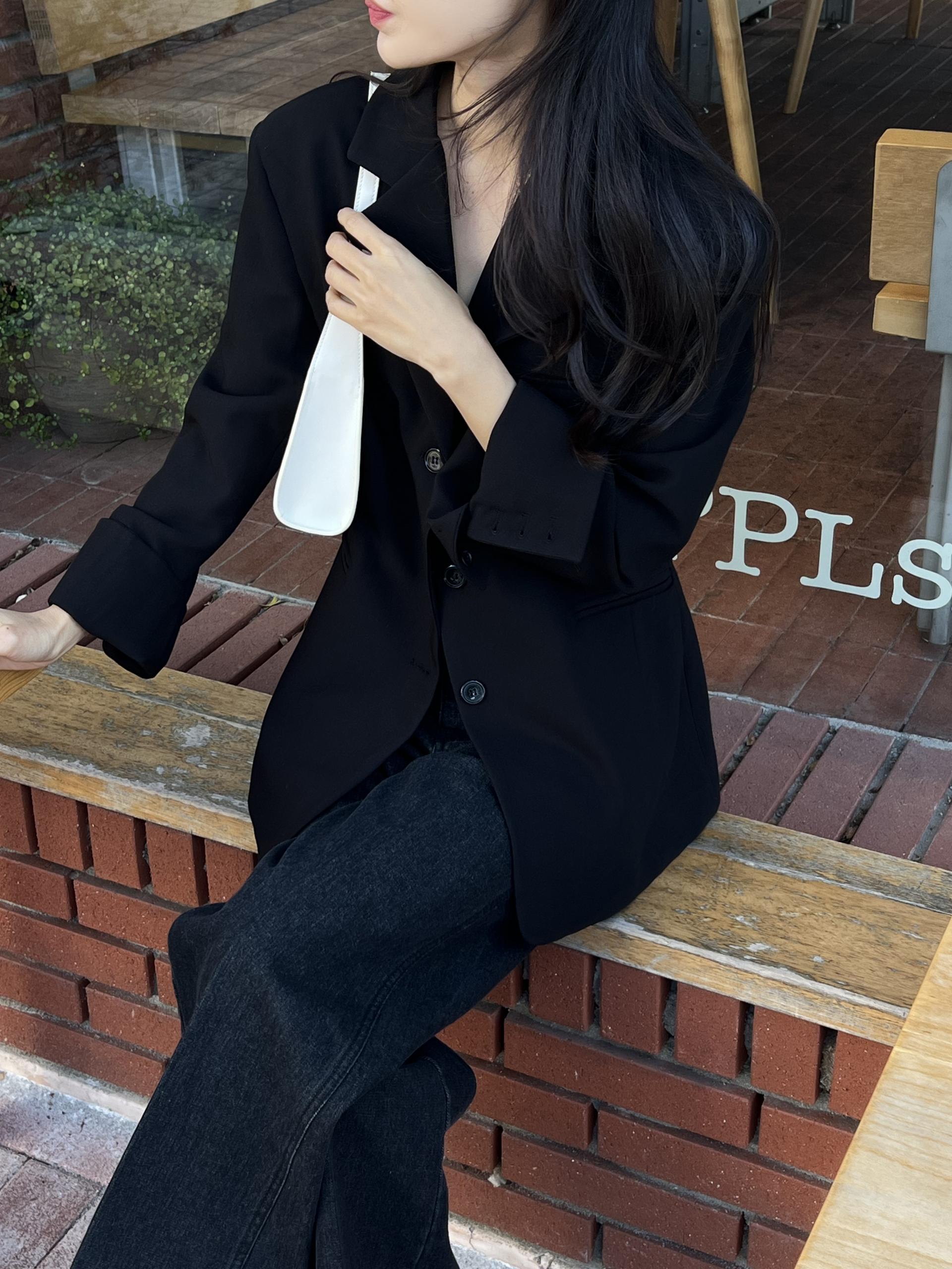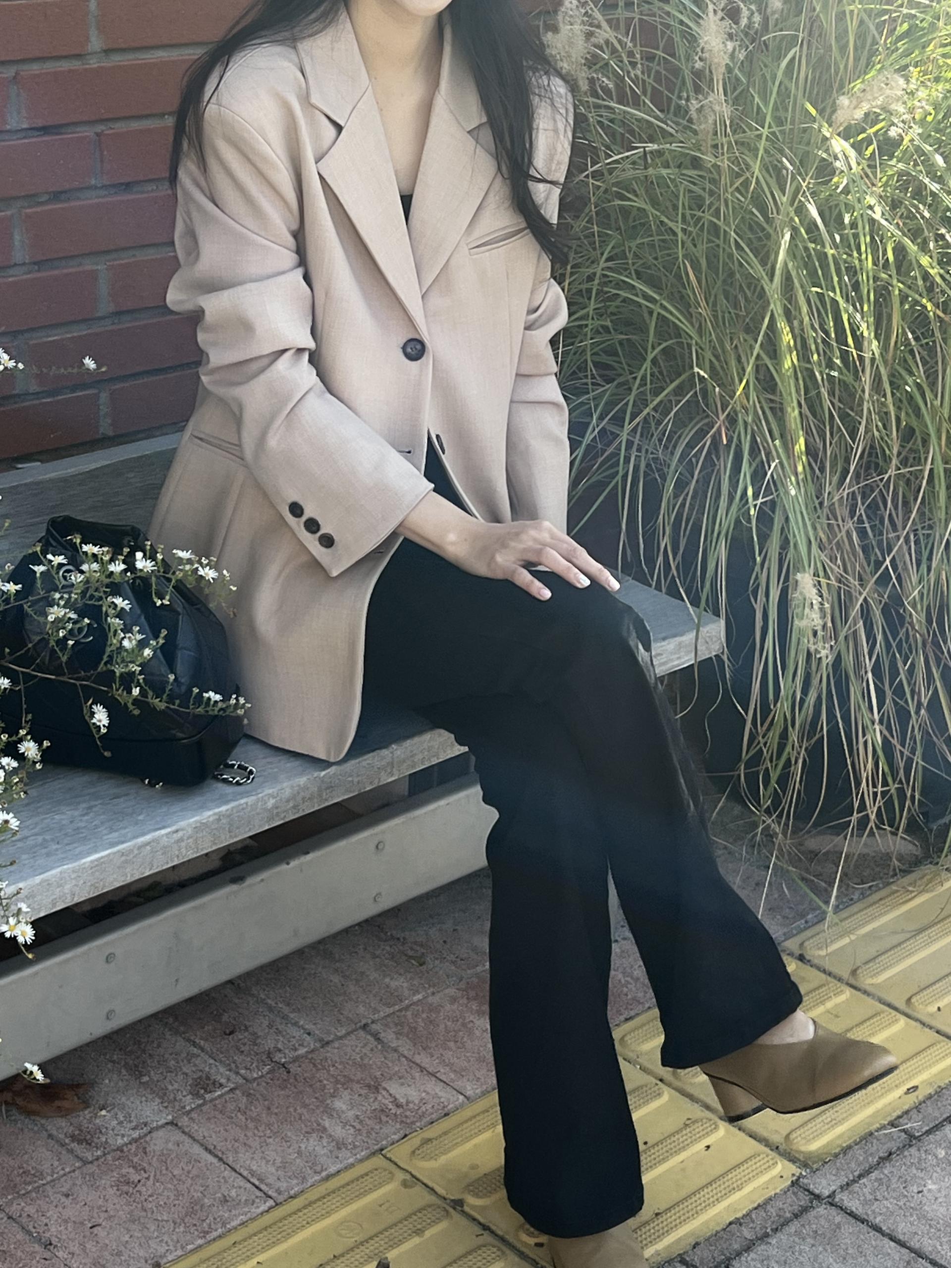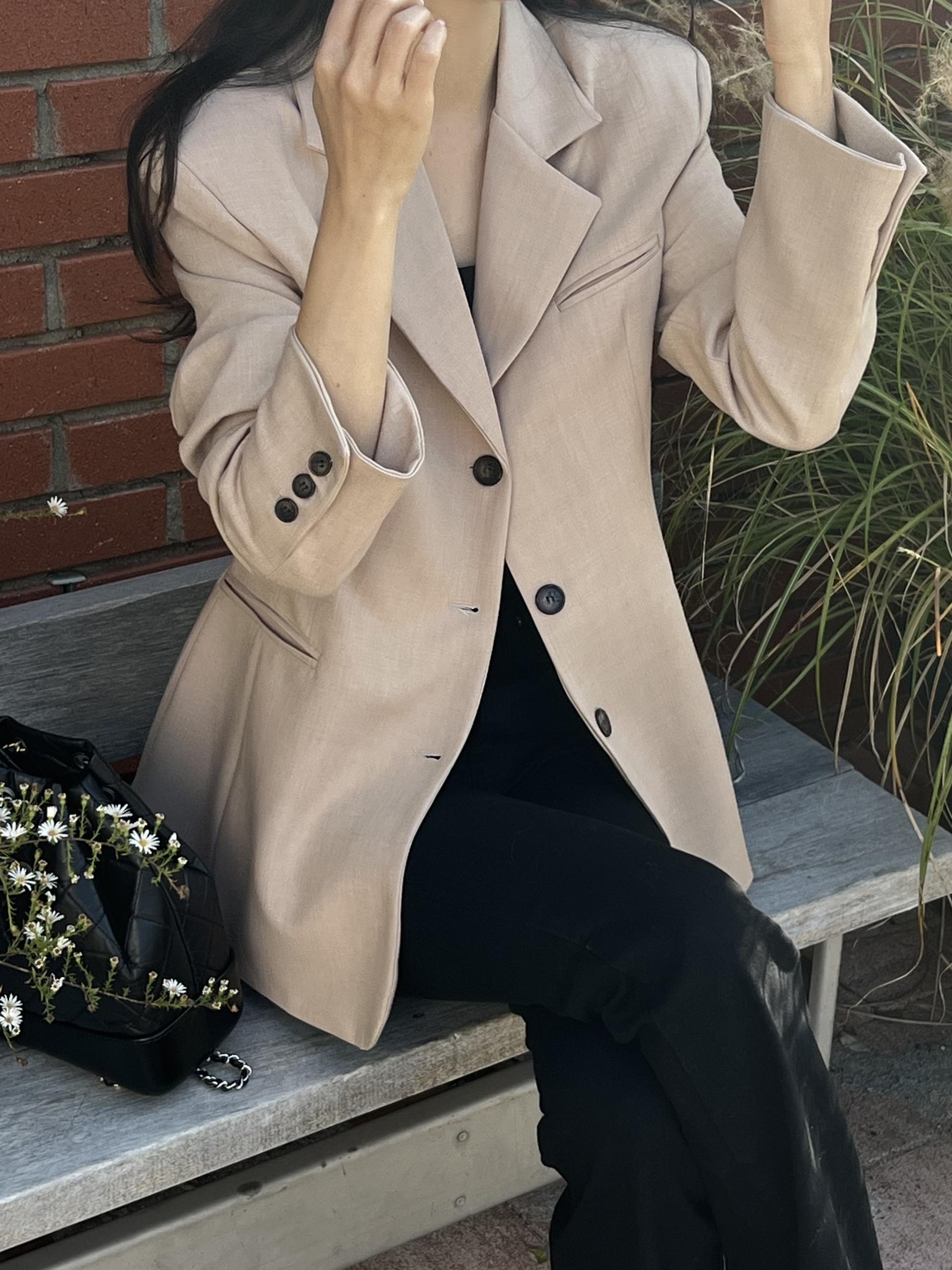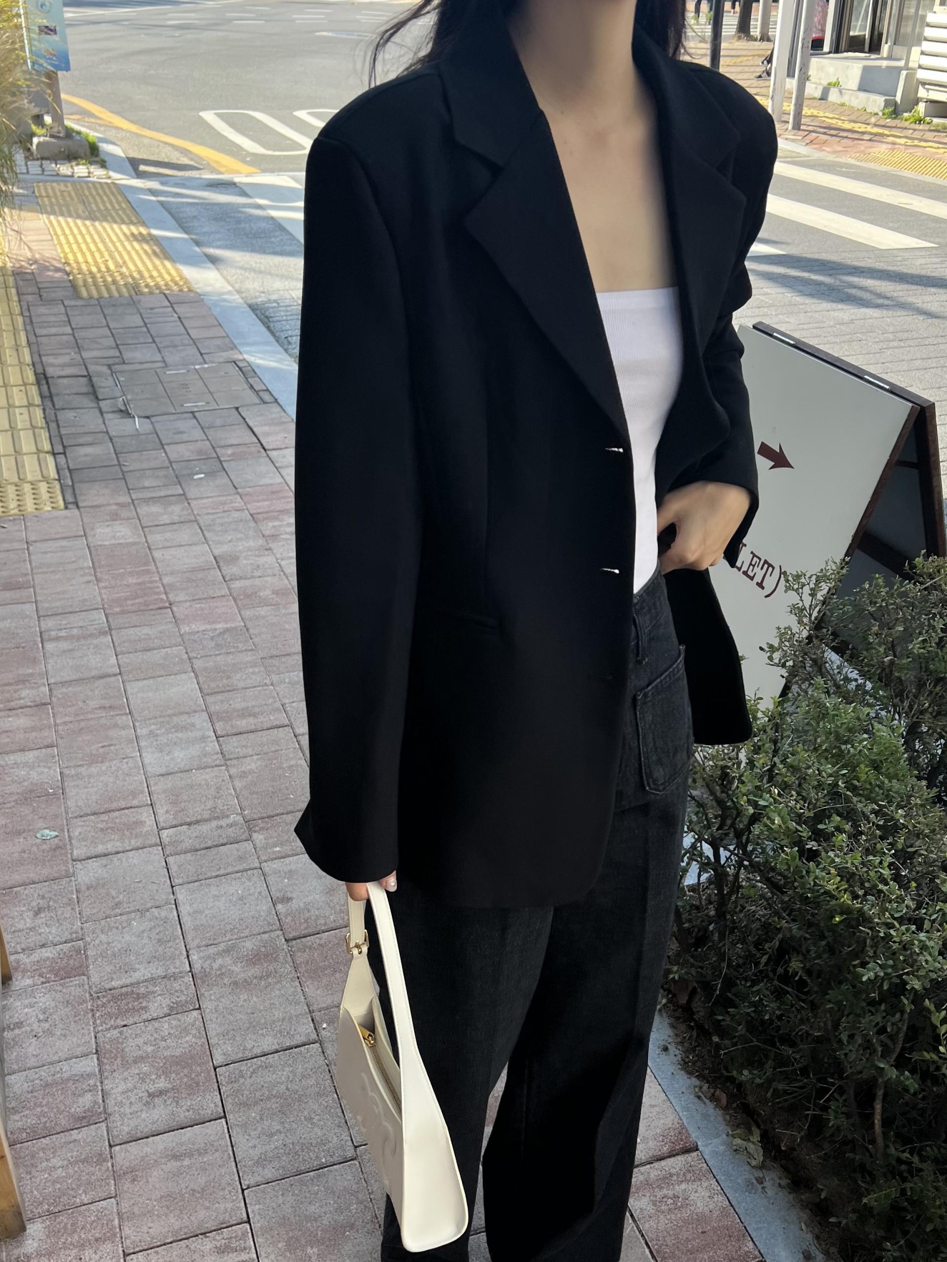 클래식한 정석의 카라와 싱글 버튼으로 오피스룩이나 하객룩 등 격식이 필요한 자리에도 무난하게 활용하기 좋으며 데님과 함께 세미 캐주얼룩으로 착용하셔도 좋습니다.