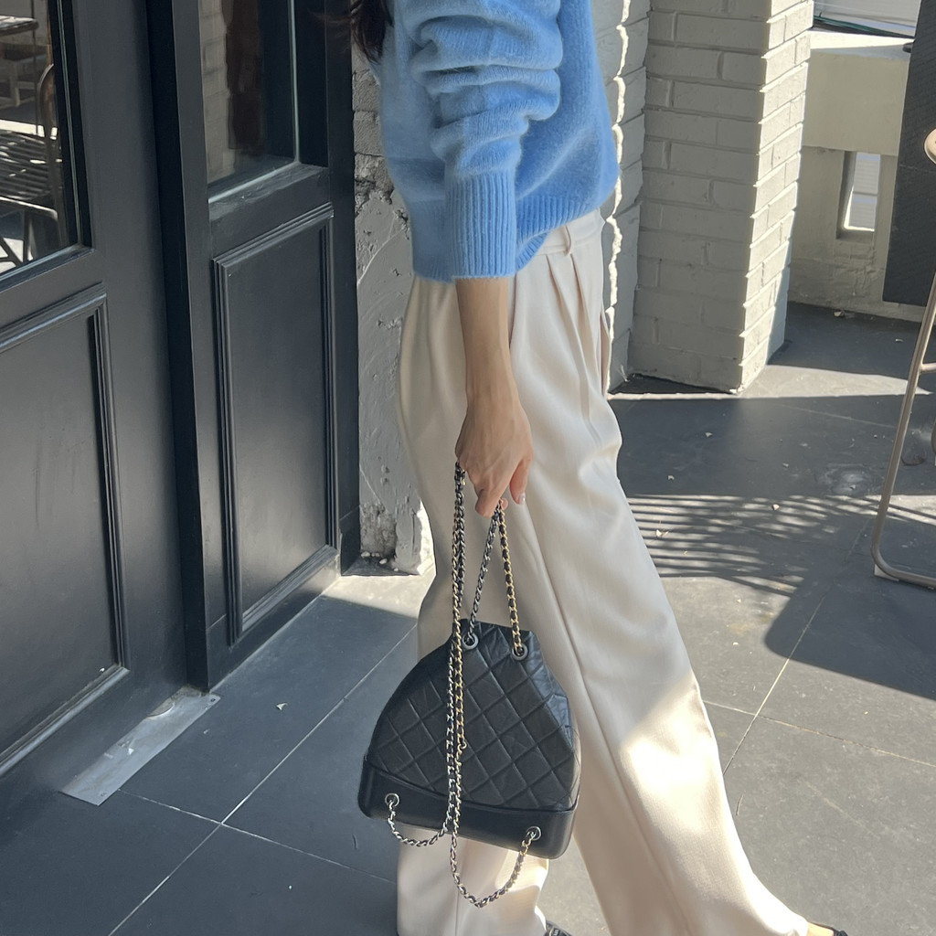 폴리 스판 혼용으로 착용감이 아주 좋고 가을뿐 아니라 겨울 내내 입을 수 있는 탄탄한 두께감이에요. 소재 퀄리티가 좋아 핀턱이 더 힘 있게 잡히고 핏이 더 날씬하게 떨어지는 팬츠입니다.
