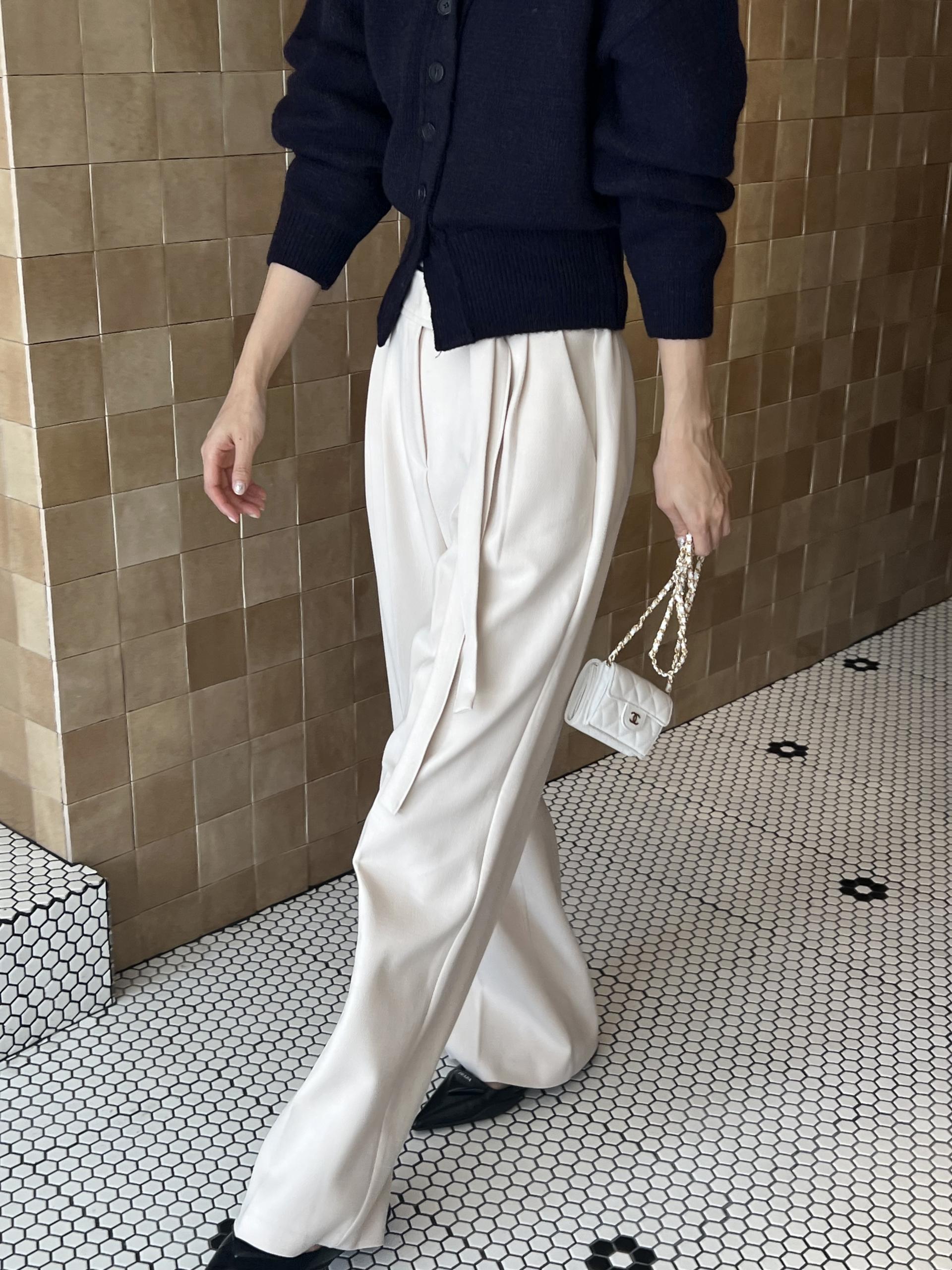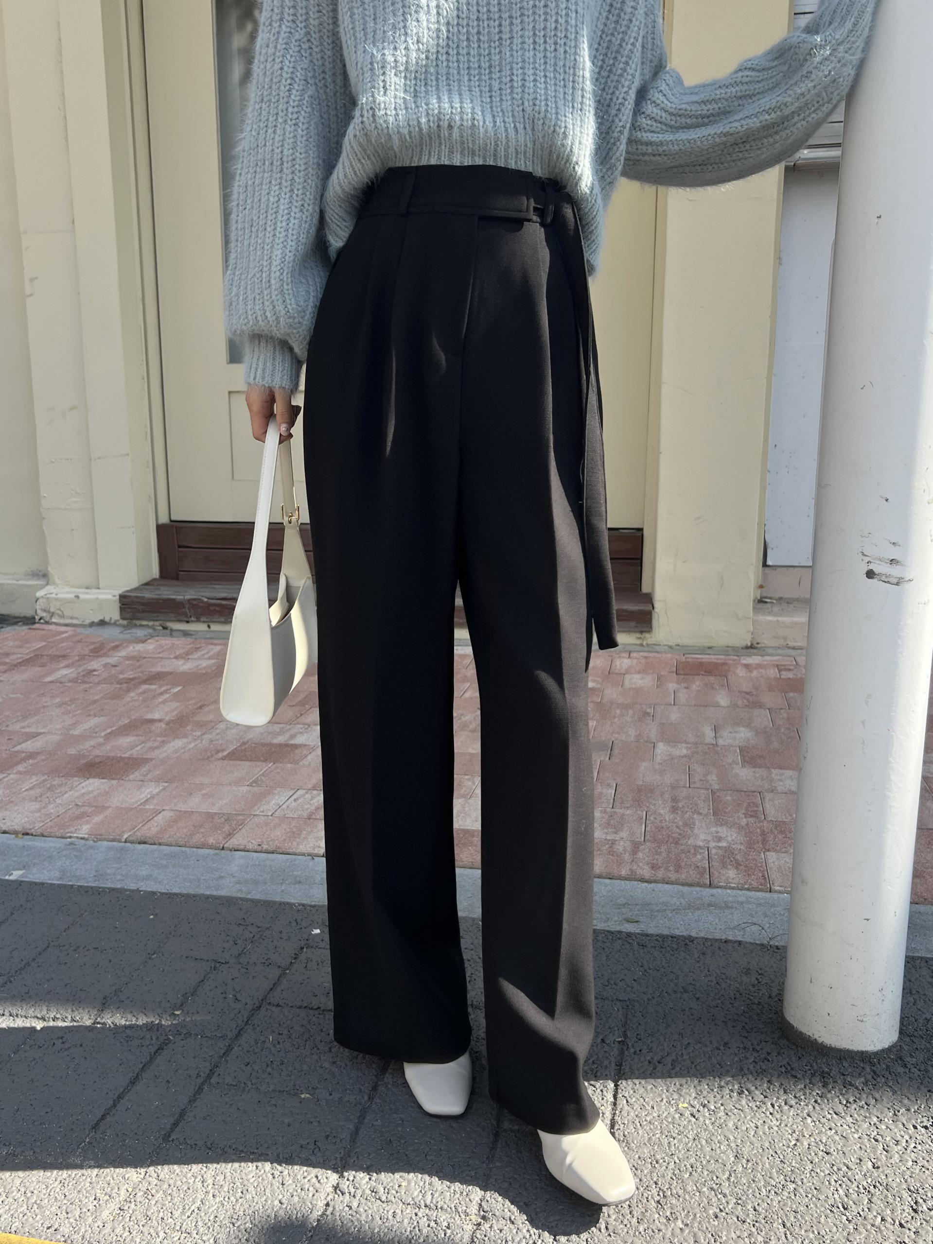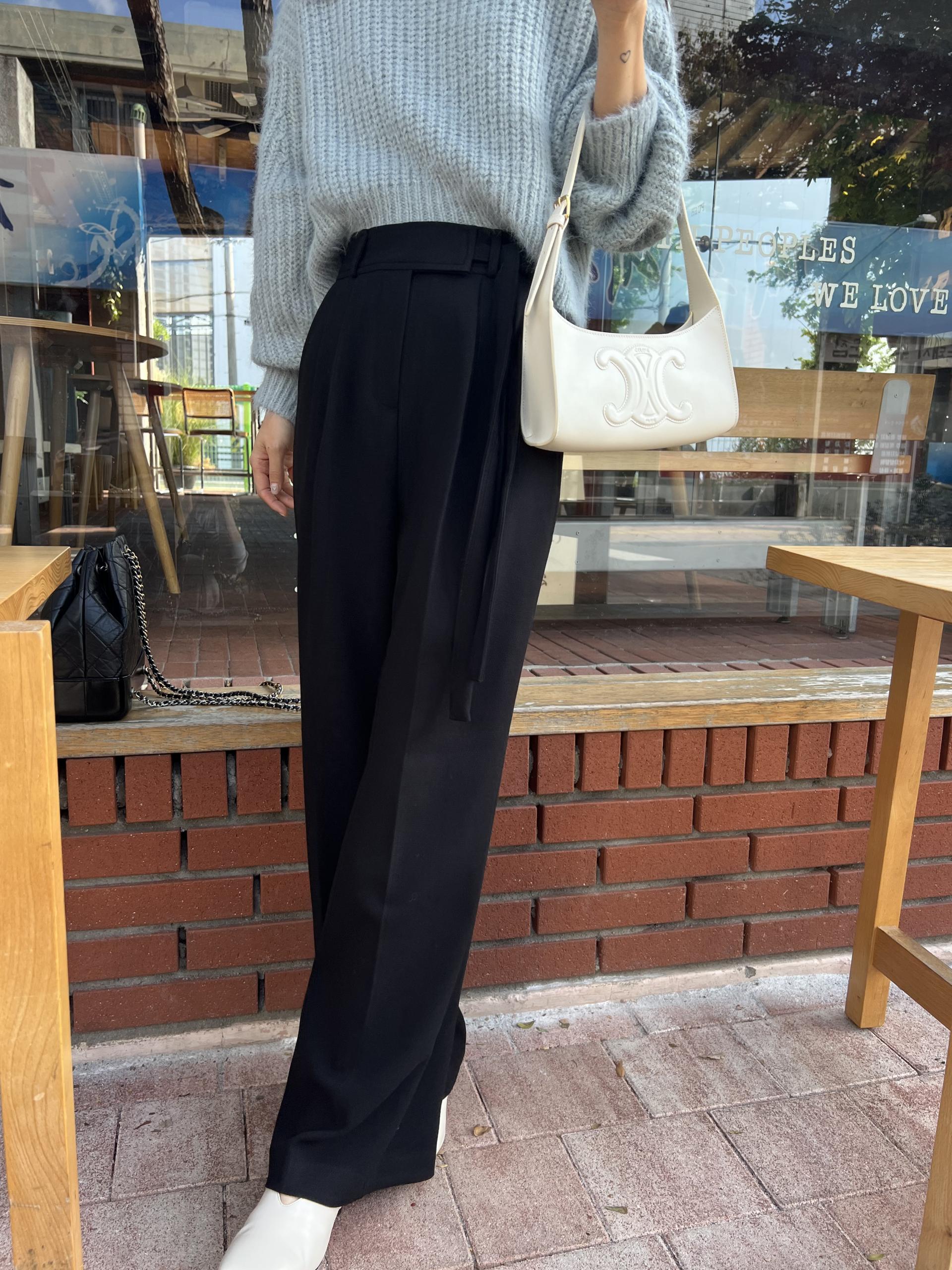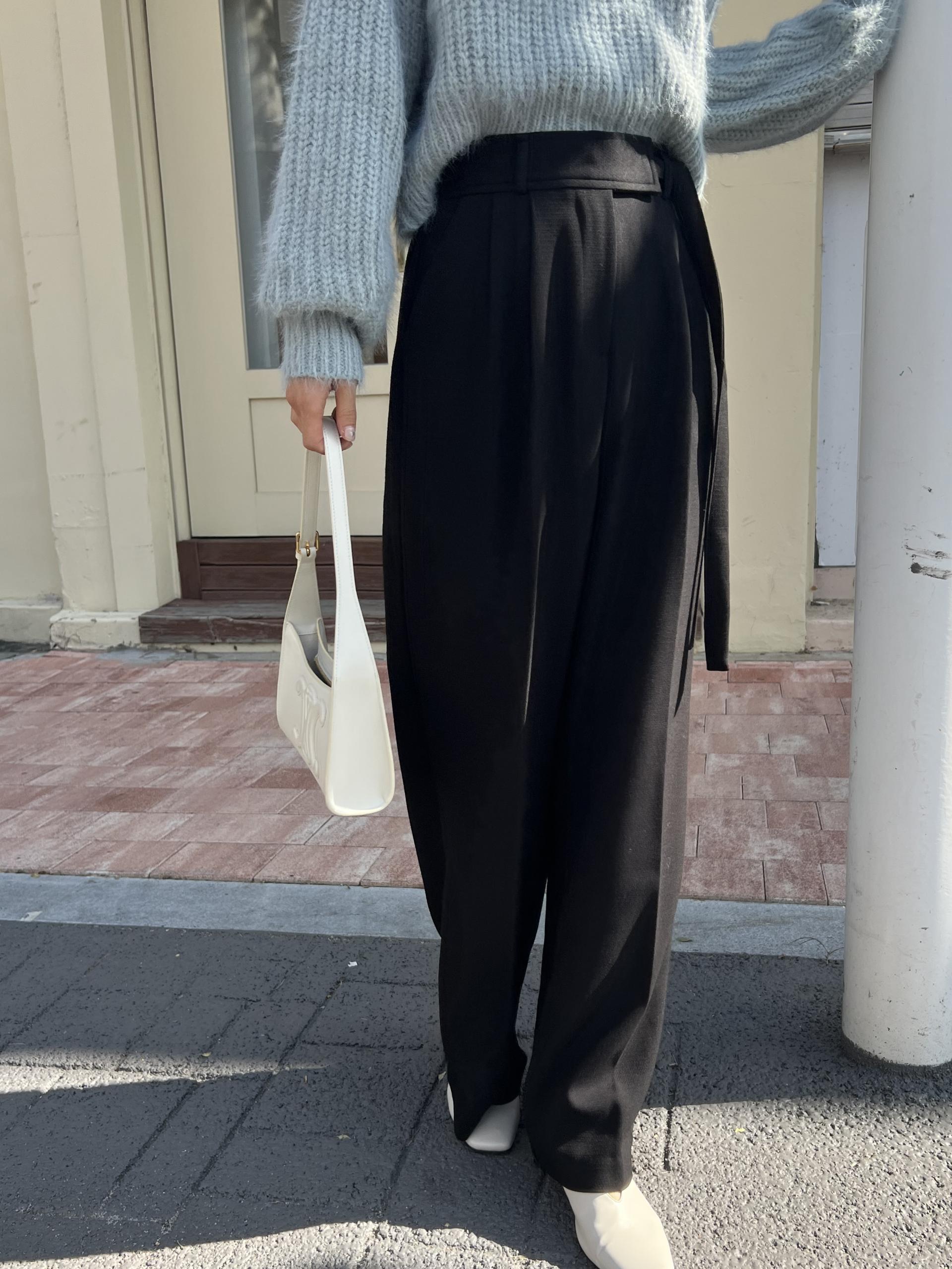 웨이스트 밴드의 디테일이 특히 예쁜 팬츠에요. 사이드에 스트랩을 묶을 수 있는 디테일이 있어 심플한 상의를 착용해도 센스 있는 코디가 되는 것 같아 좋았어요.