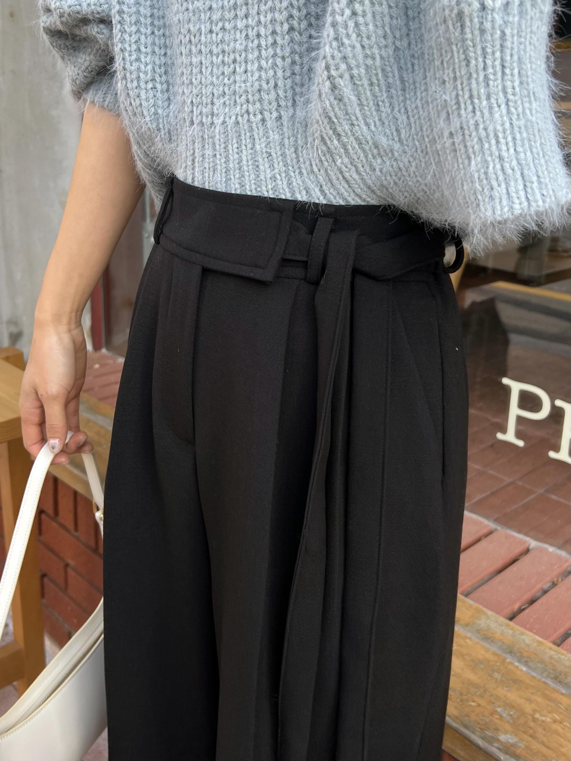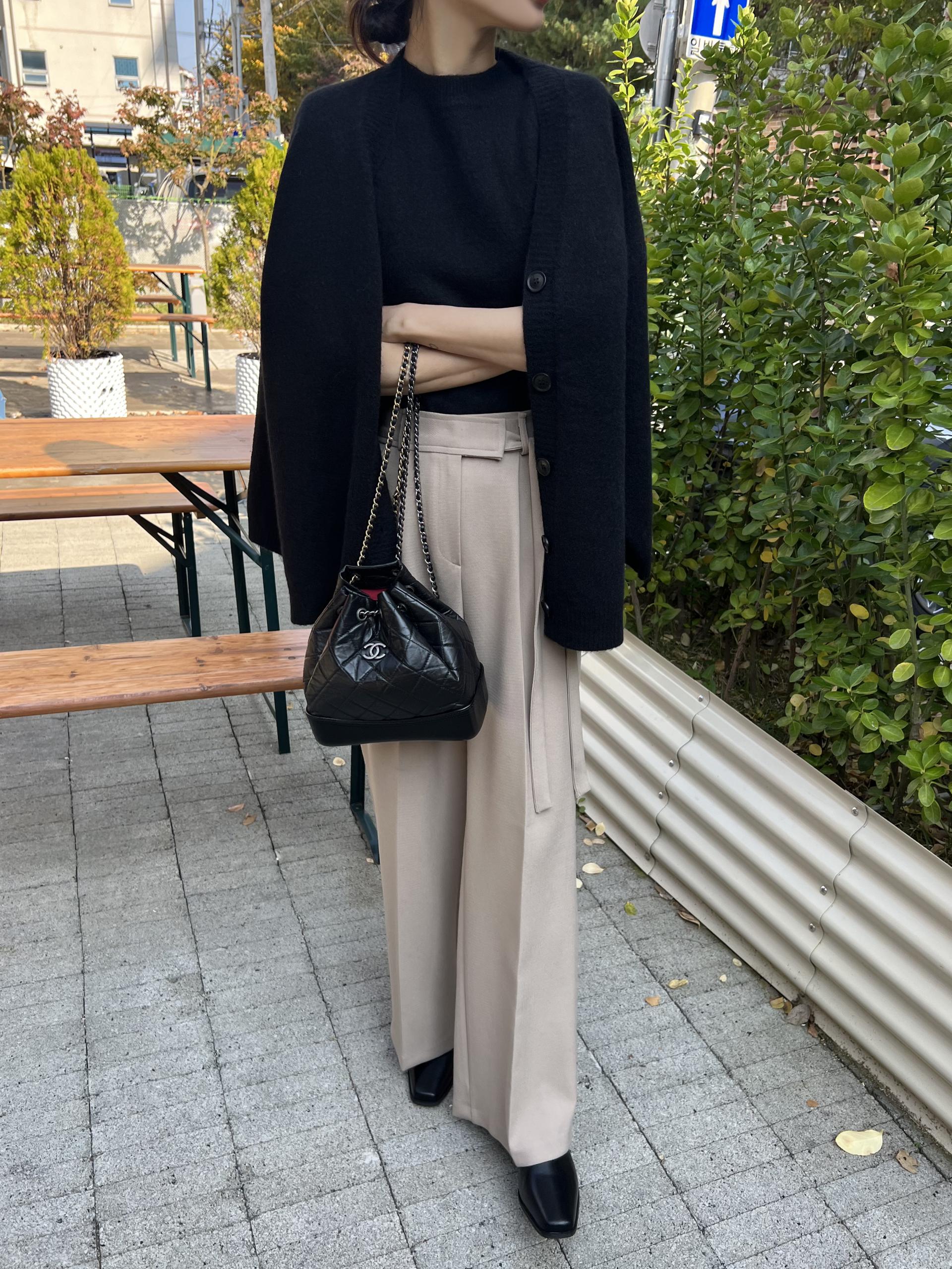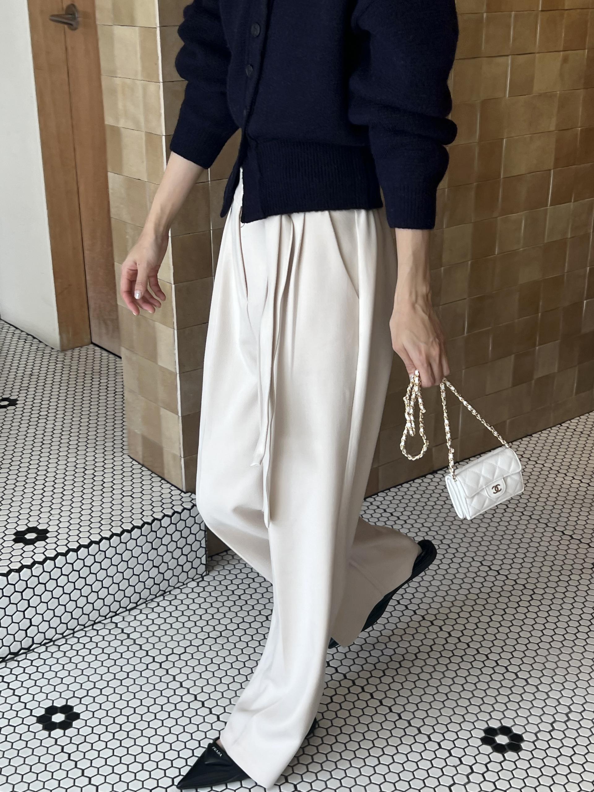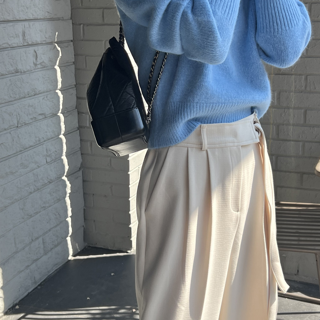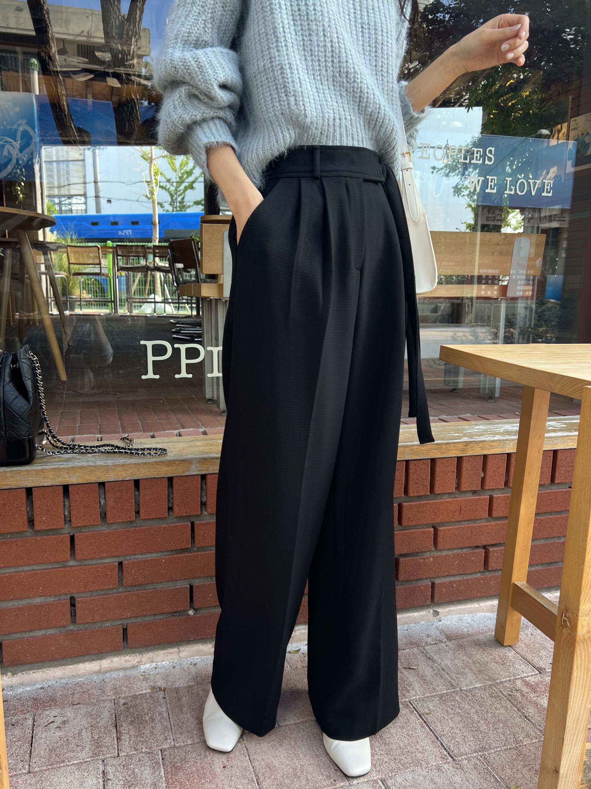 웨이스트 밴드의 디테일이 특히 예쁜 팬츠에요. 사이드에 스트랩을 묶을 수 있는 디테일이 있어 심플한 상의를 착용해도 센스 있는 코디가 되는 것 같아 좋았어요.