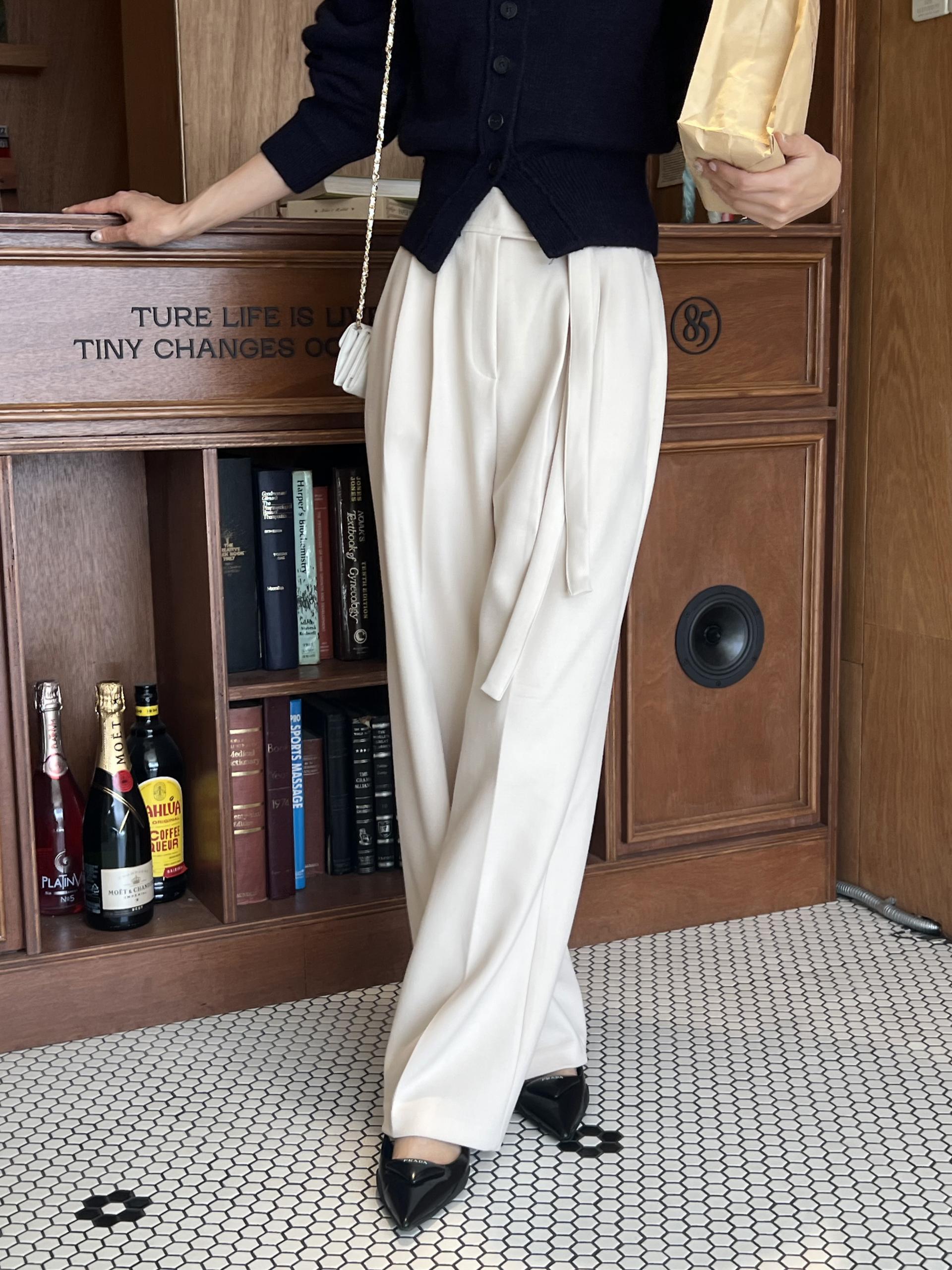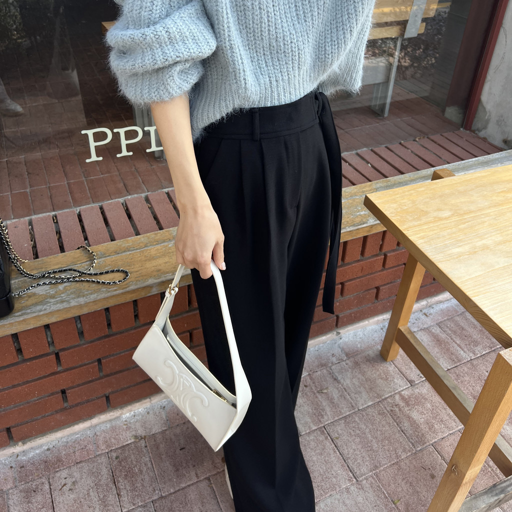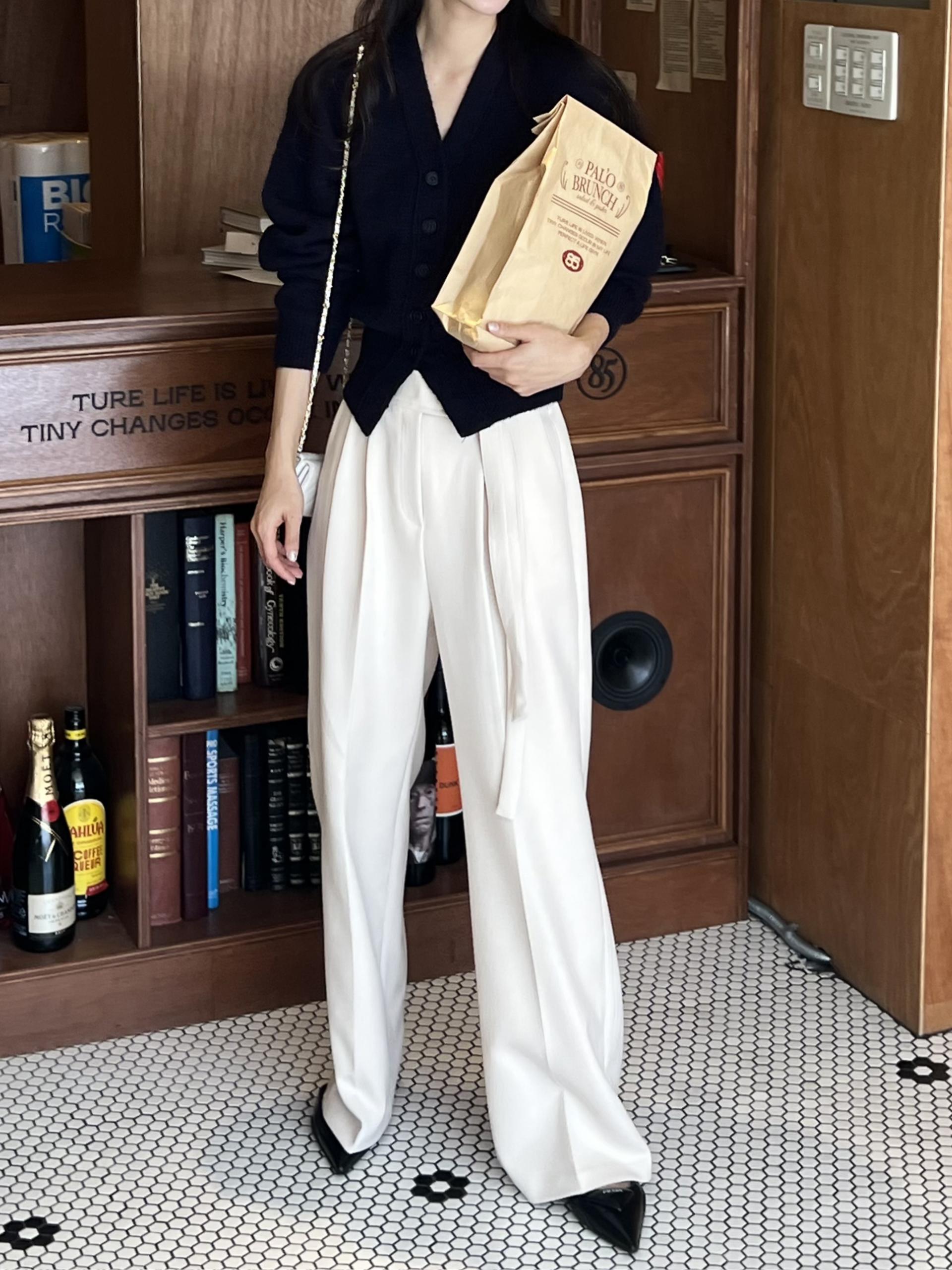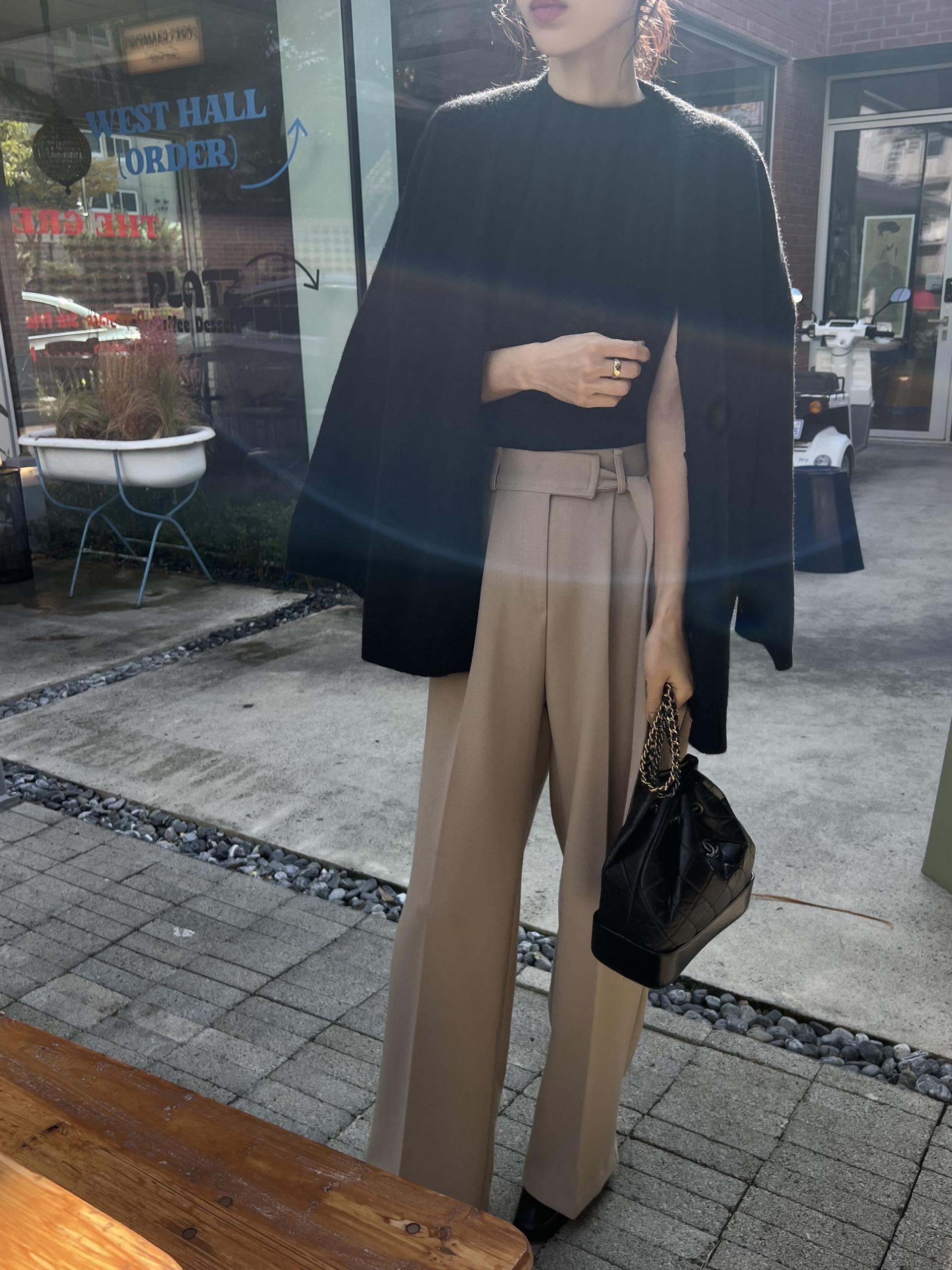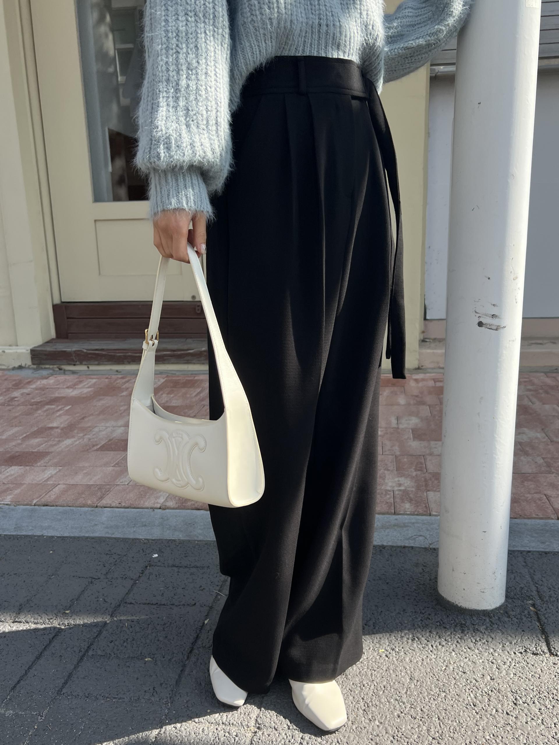 웨이스트 밴드의 디테일이 특히 예쁜 팬츠에요. 사이드에 스트랩을 묶을 수 있는 디테일이 있어 심플한 상의를 착용해도 센스 있는 코디가 되는 것 같아 좋았어요.