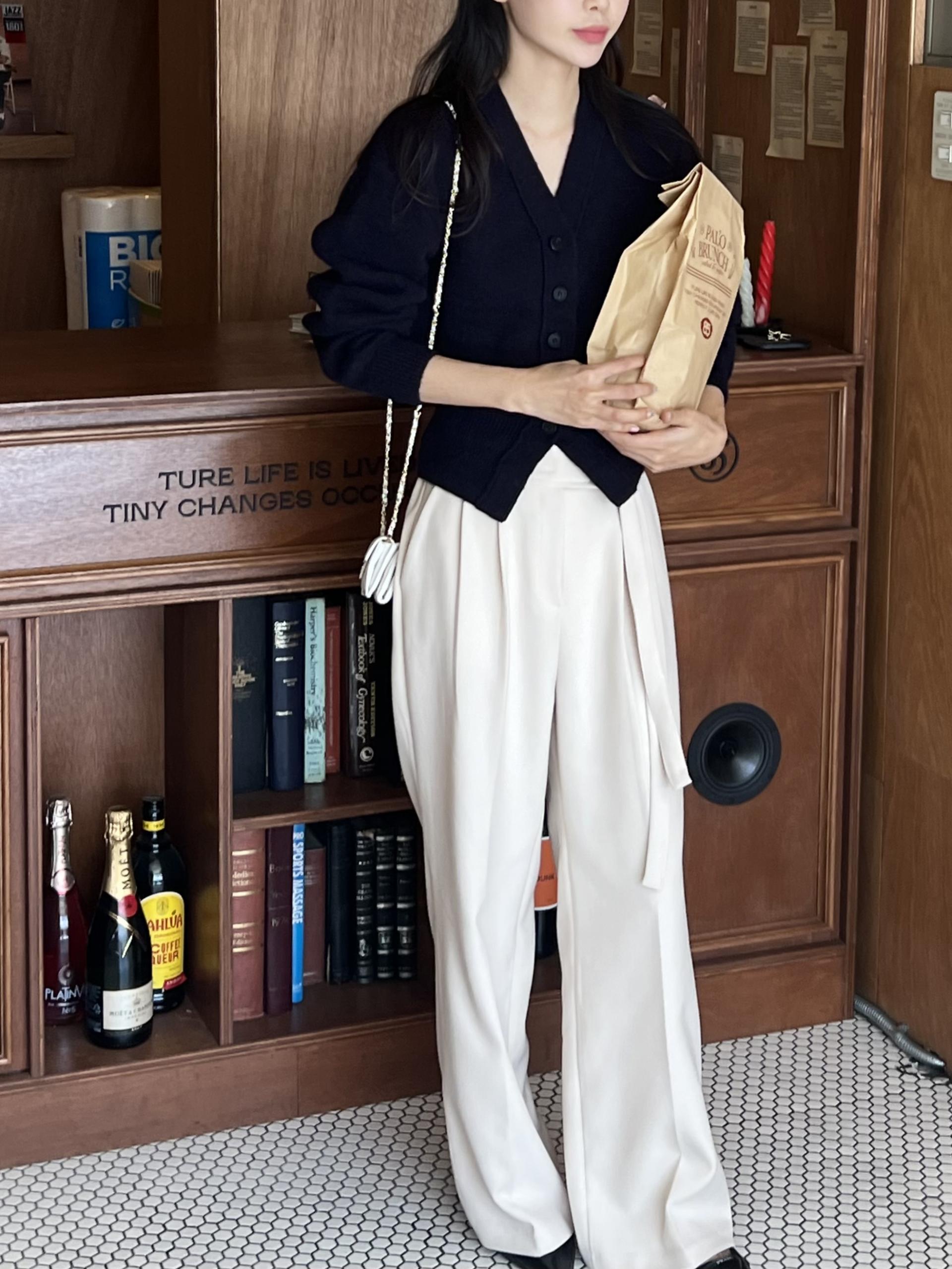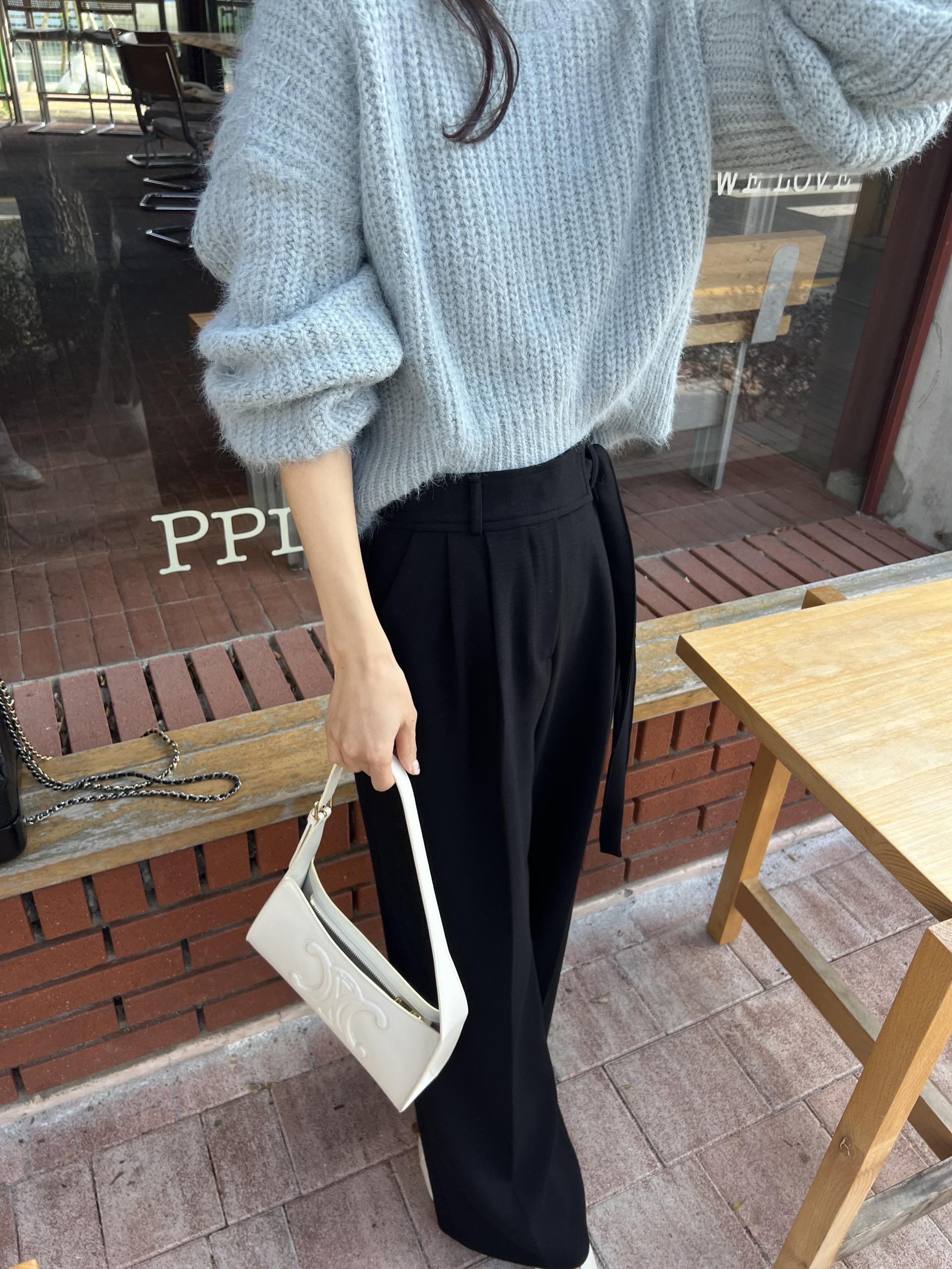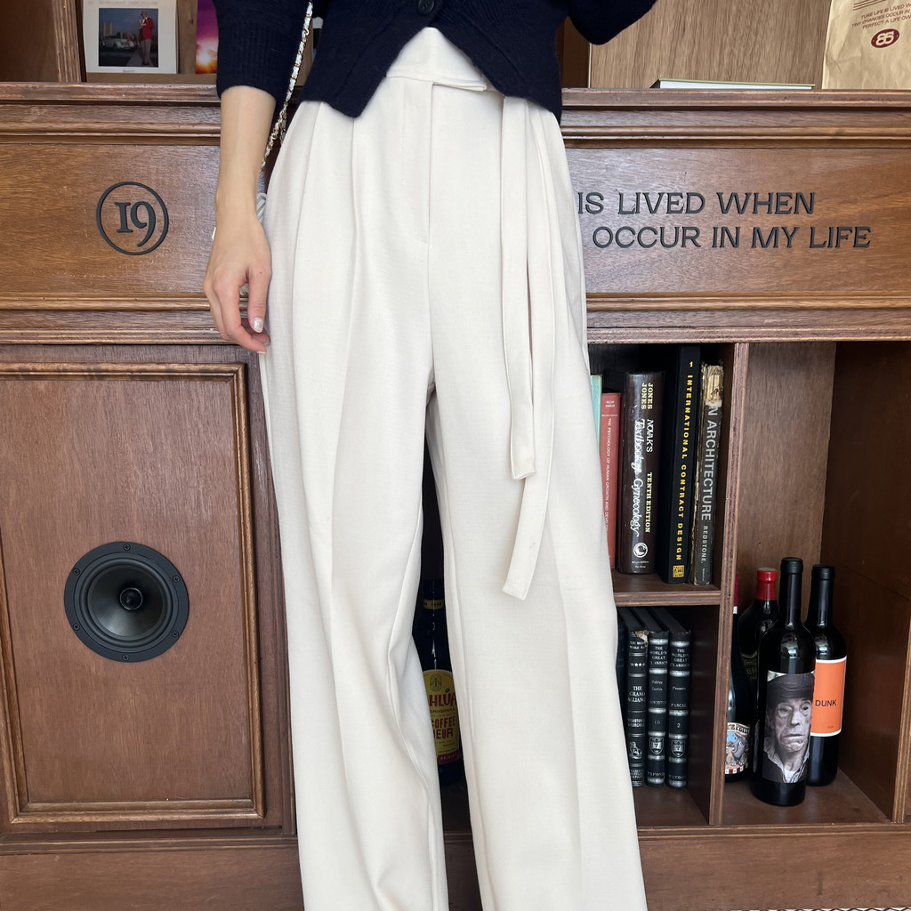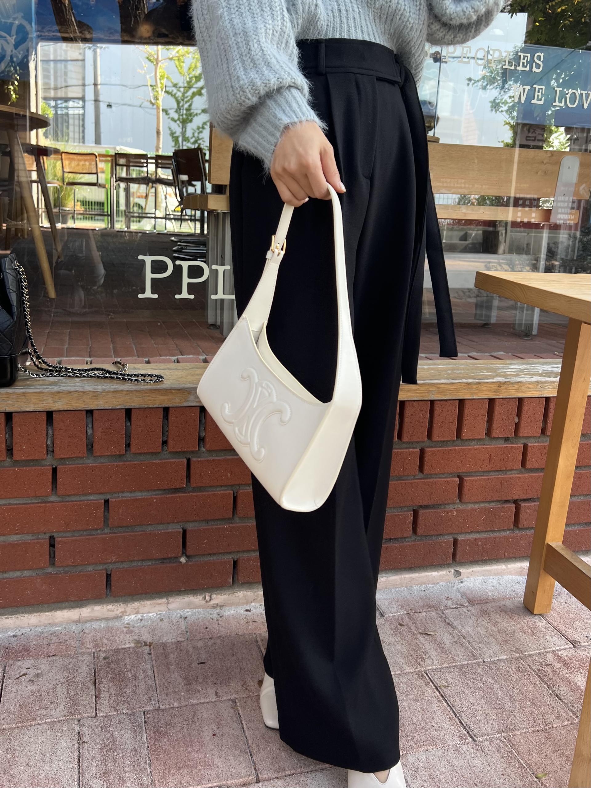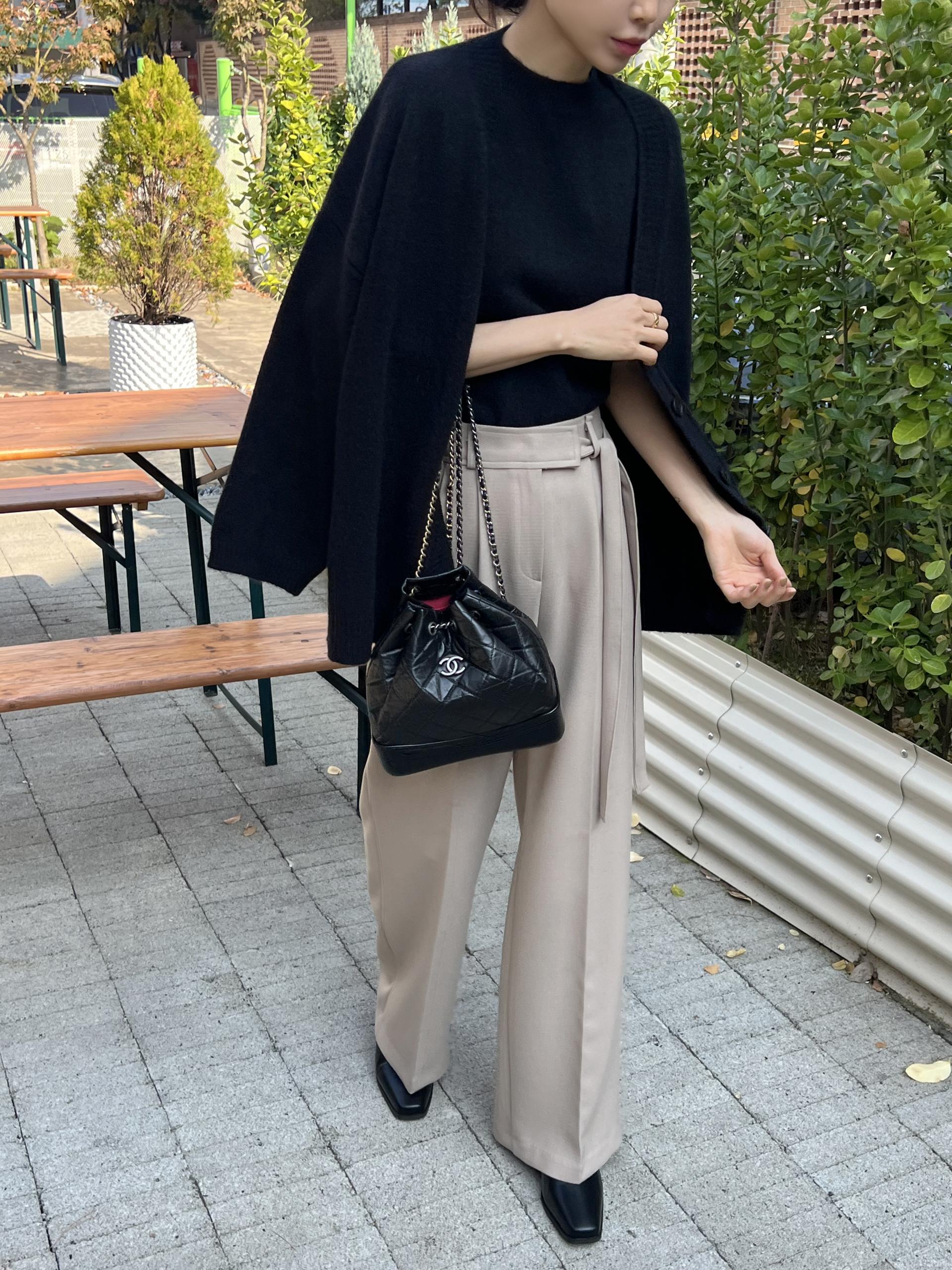 웨이스트 밴드의 디테일이 특히 예쁜 팬츠에요. 사이드에 스트랩을 묶을 수 있는 디테일이 있어 심플한 상의를 착용해도 센스 있는 코디가 되는 것 같아 좋았어요.