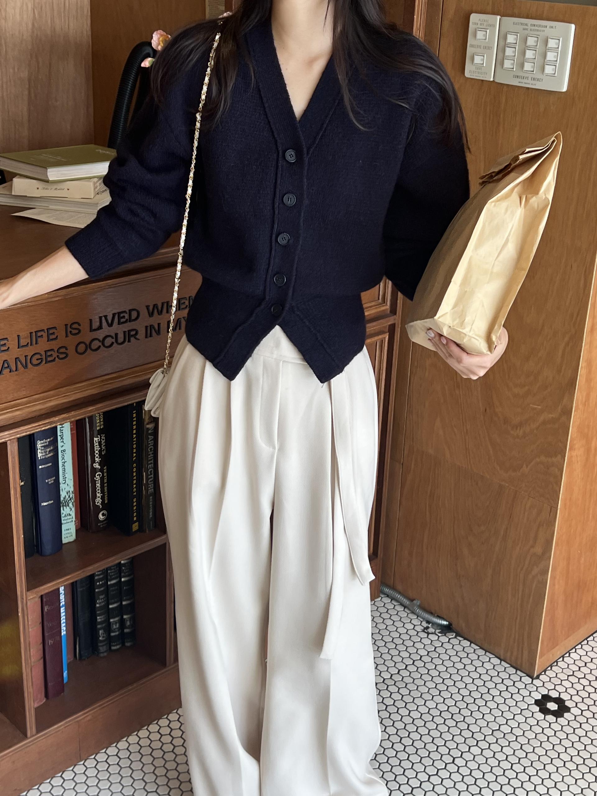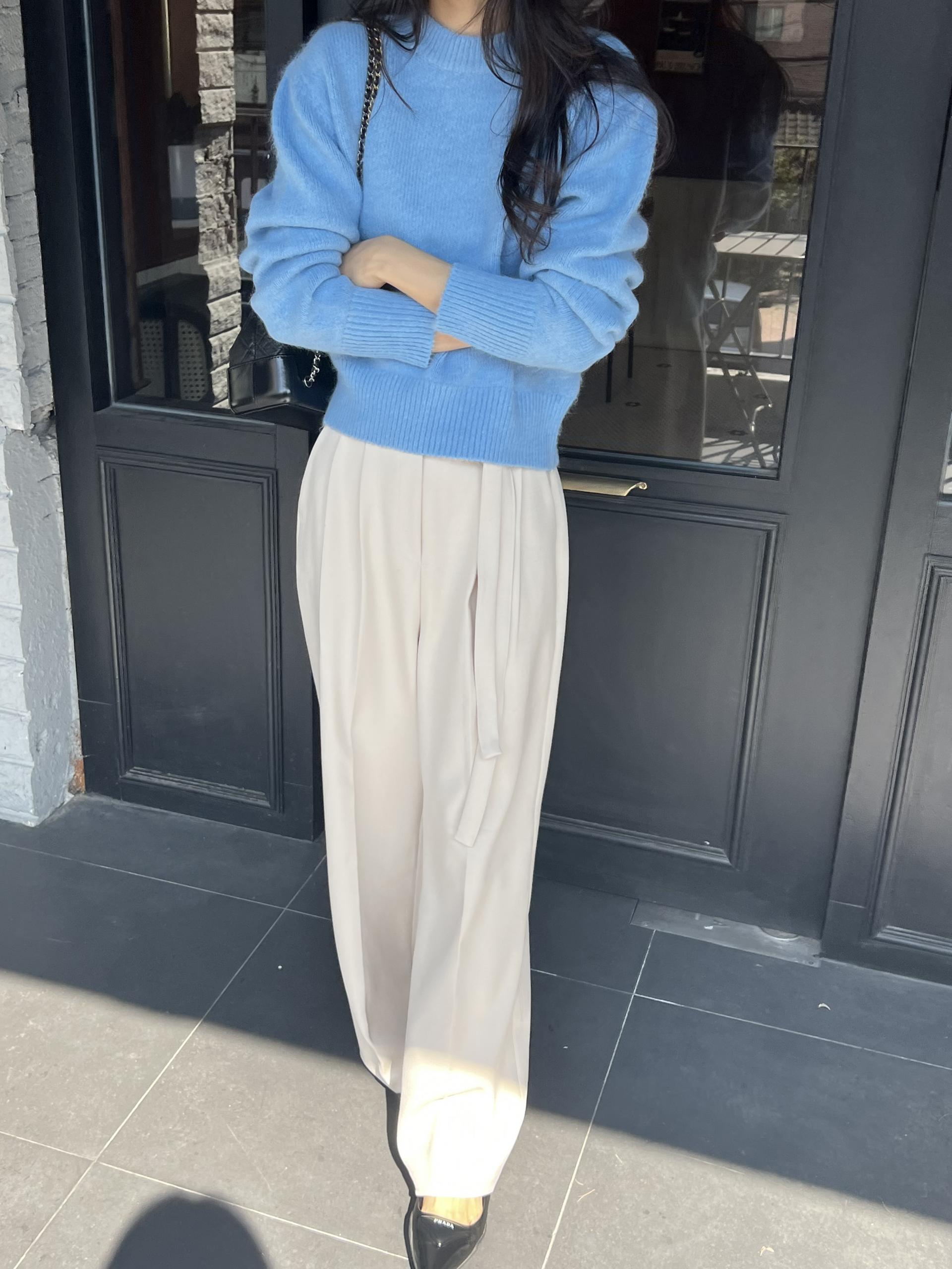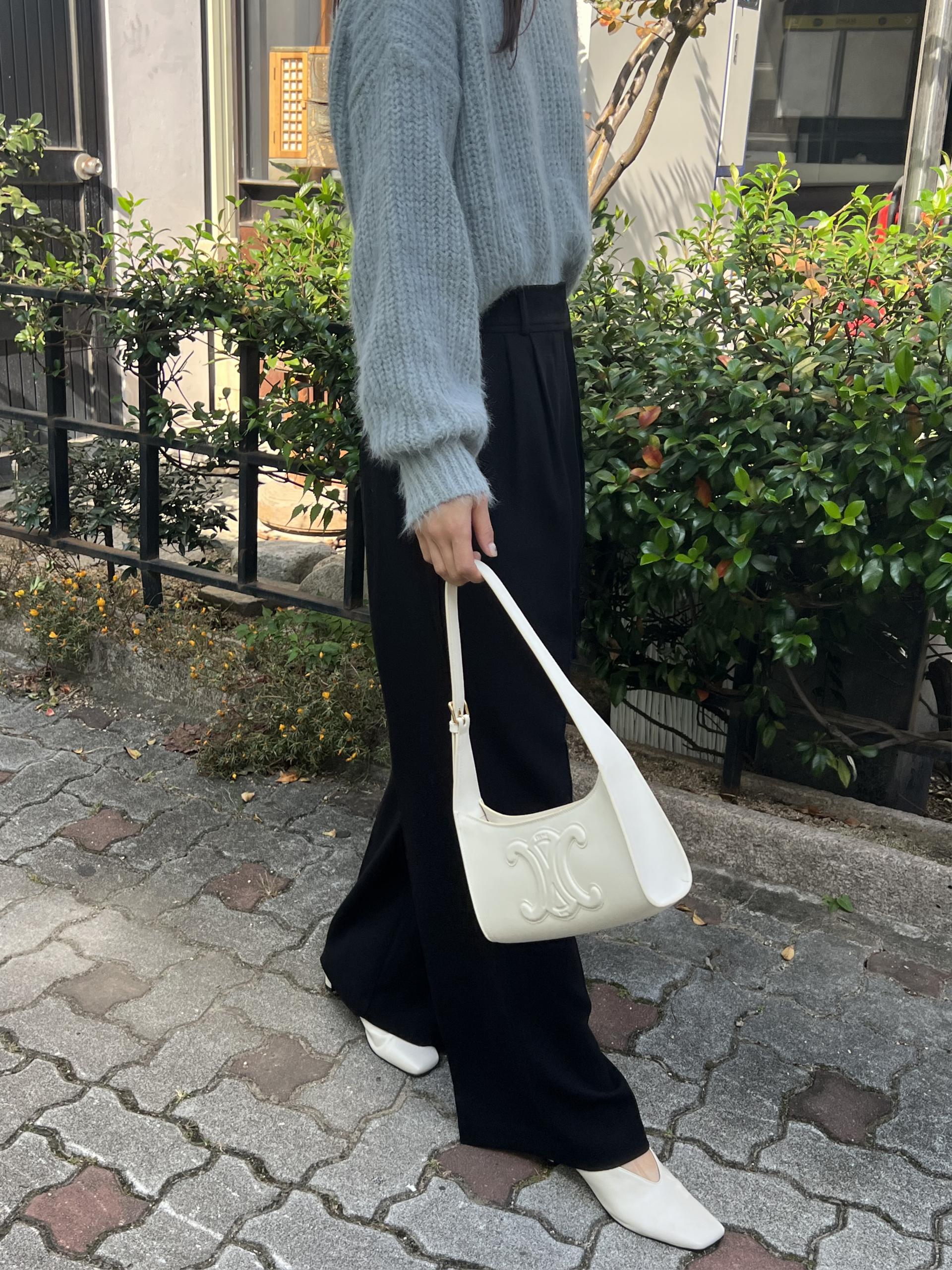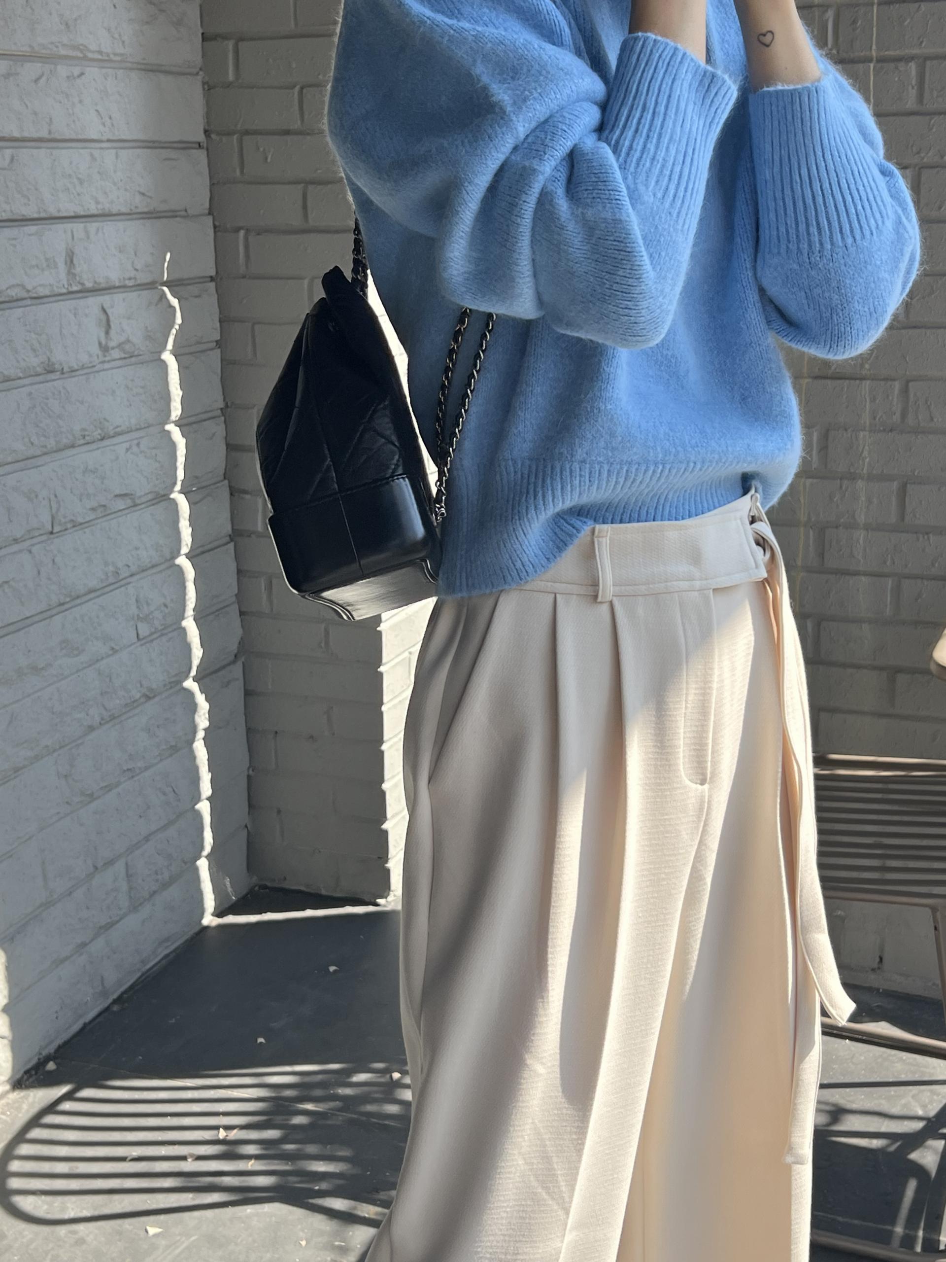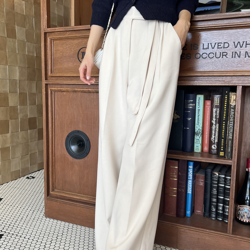 웨이스트 밴드의 디테일이 특히 예쁜 팬츠에요. 사이드에 스트랩을 묶을 수 있는 디테일이 있어 심플한 상의를 착용해도 센스 있는 코디가 되는 것 같아 좋았어요.