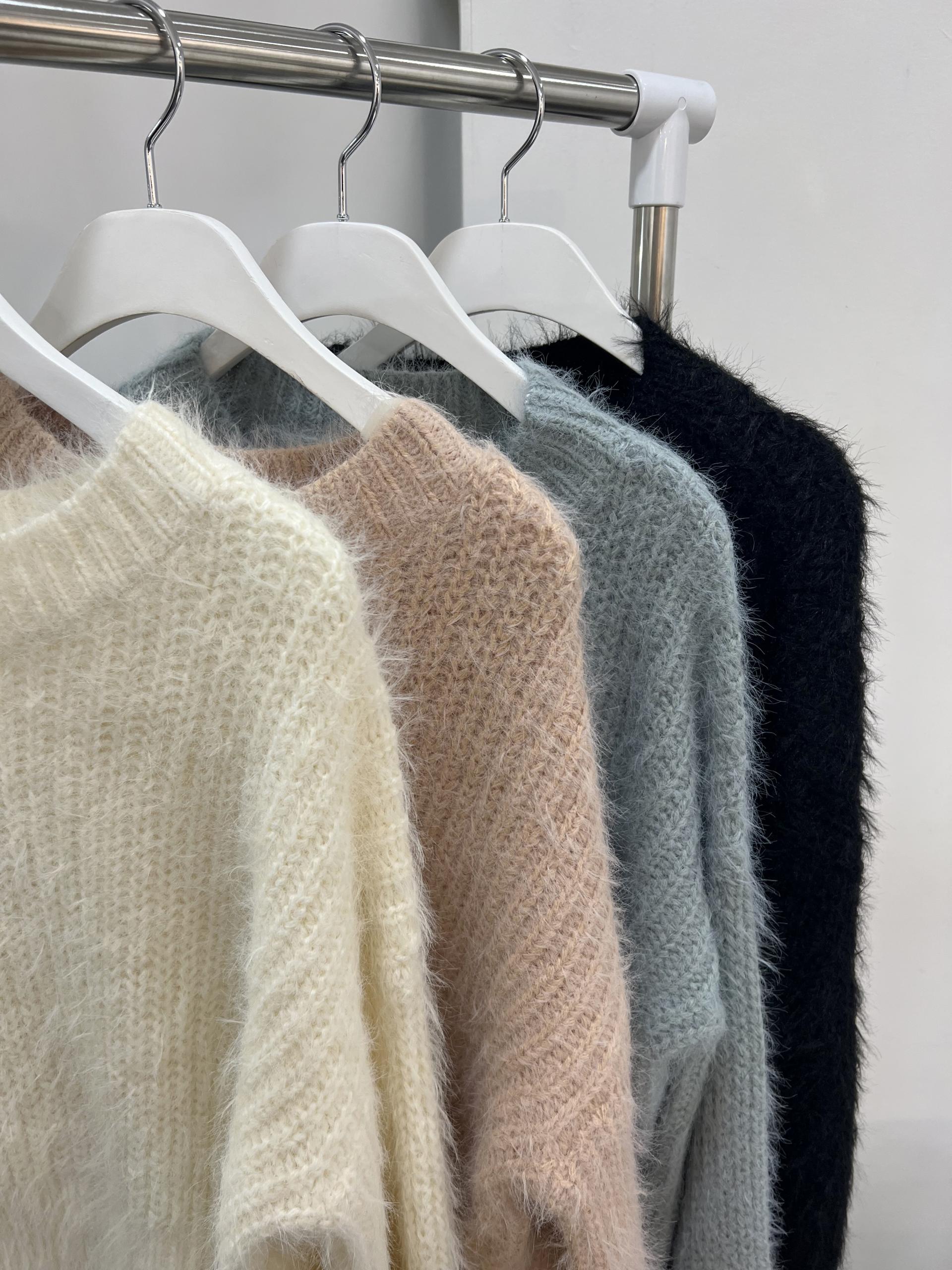 다양한 아우터와 코디하기 좋은 깔끔한 라운드넥으로 코트부터 점퍼, 패딩까지 모두 잘 어울리는 니트에요.