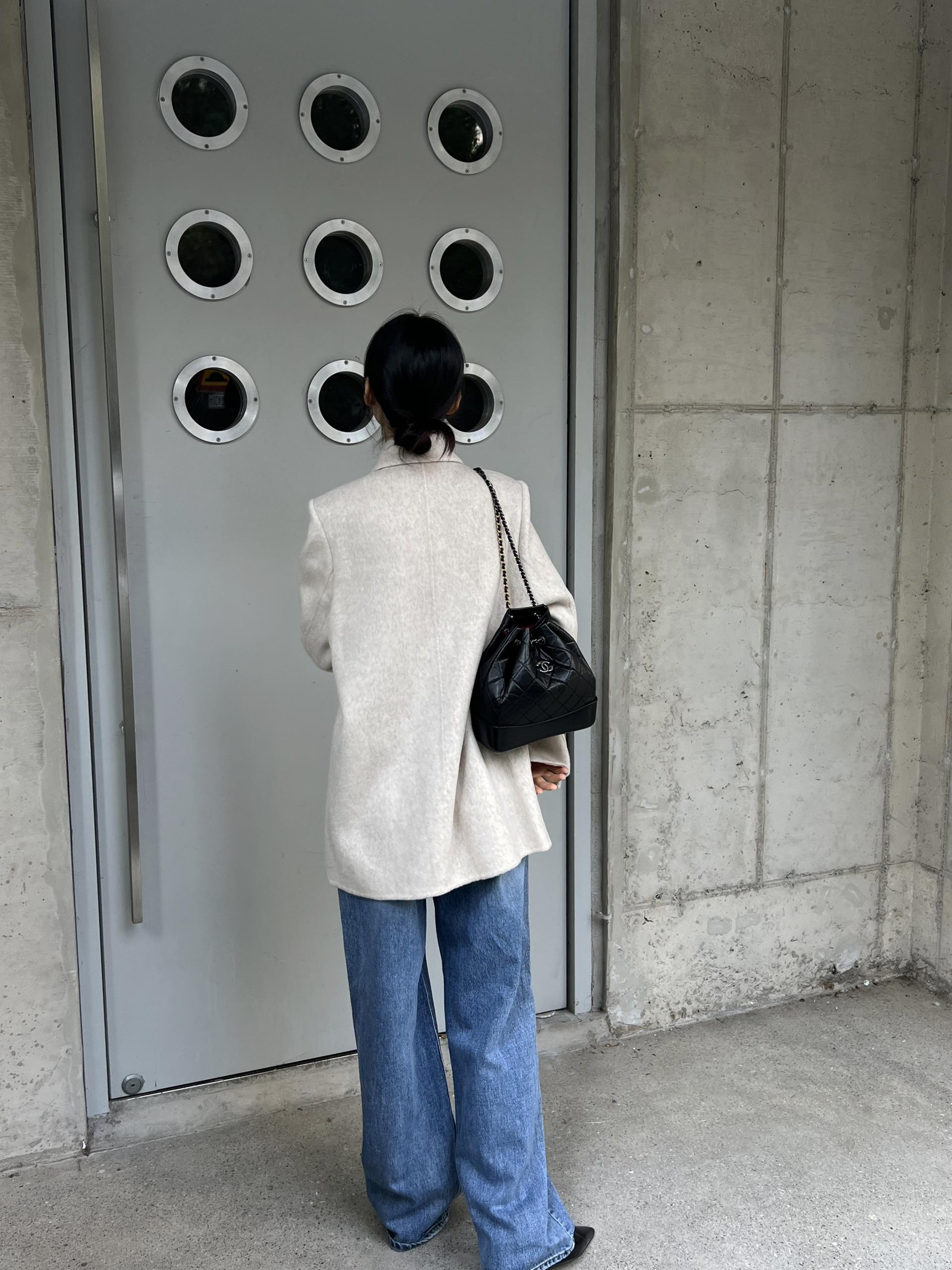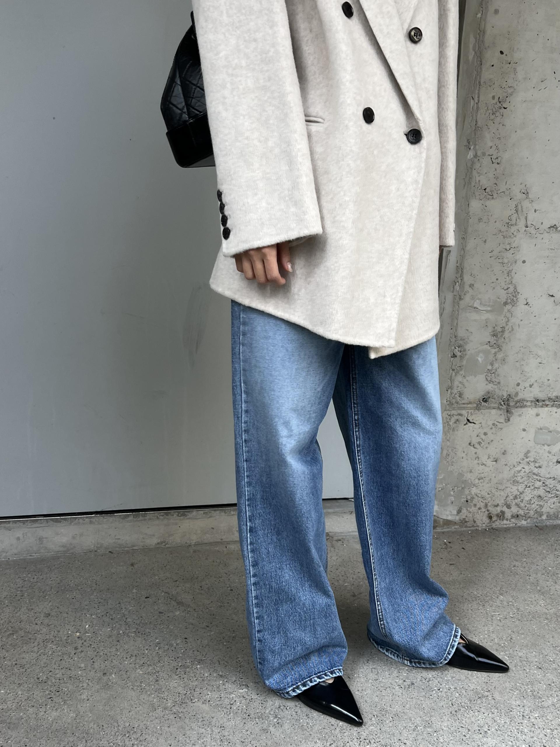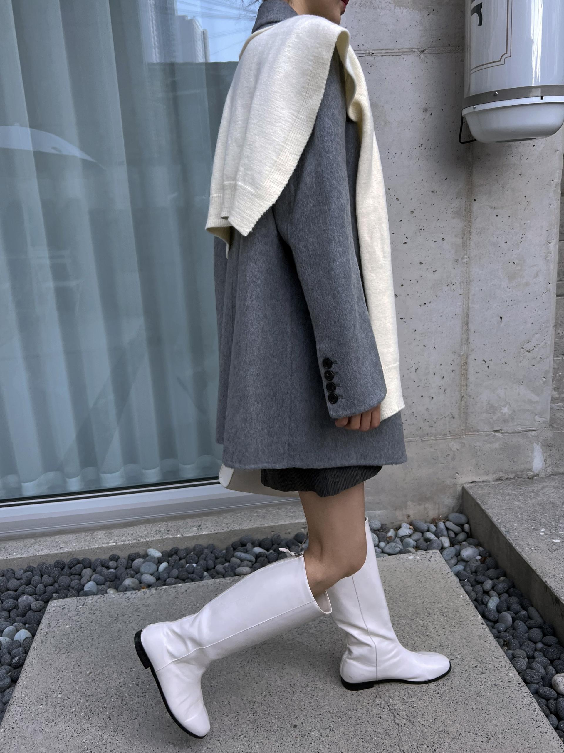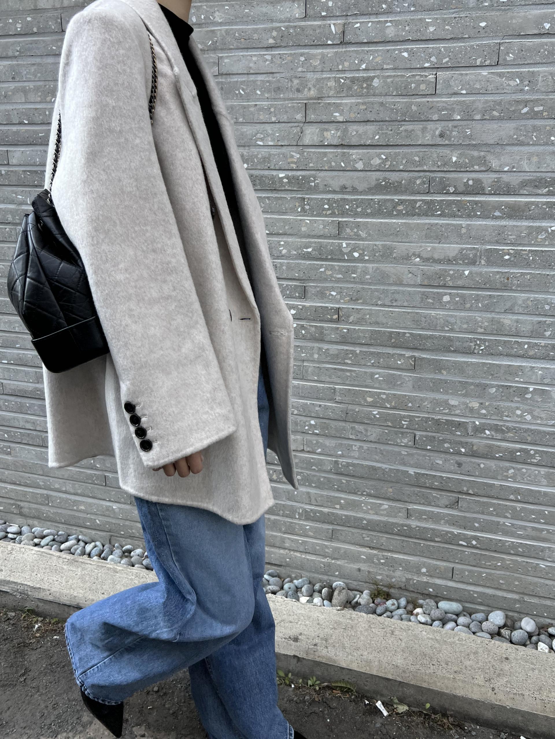 더블 버튼과 각 잡힌 어깨 라인으로 더욱 클래식한 디자인의 하프 자켓이며, 루즈한 실루엣과 엉덩이를 덮는 기장감으로 겨울 시즌 활용도가 높은 아우터입니다.