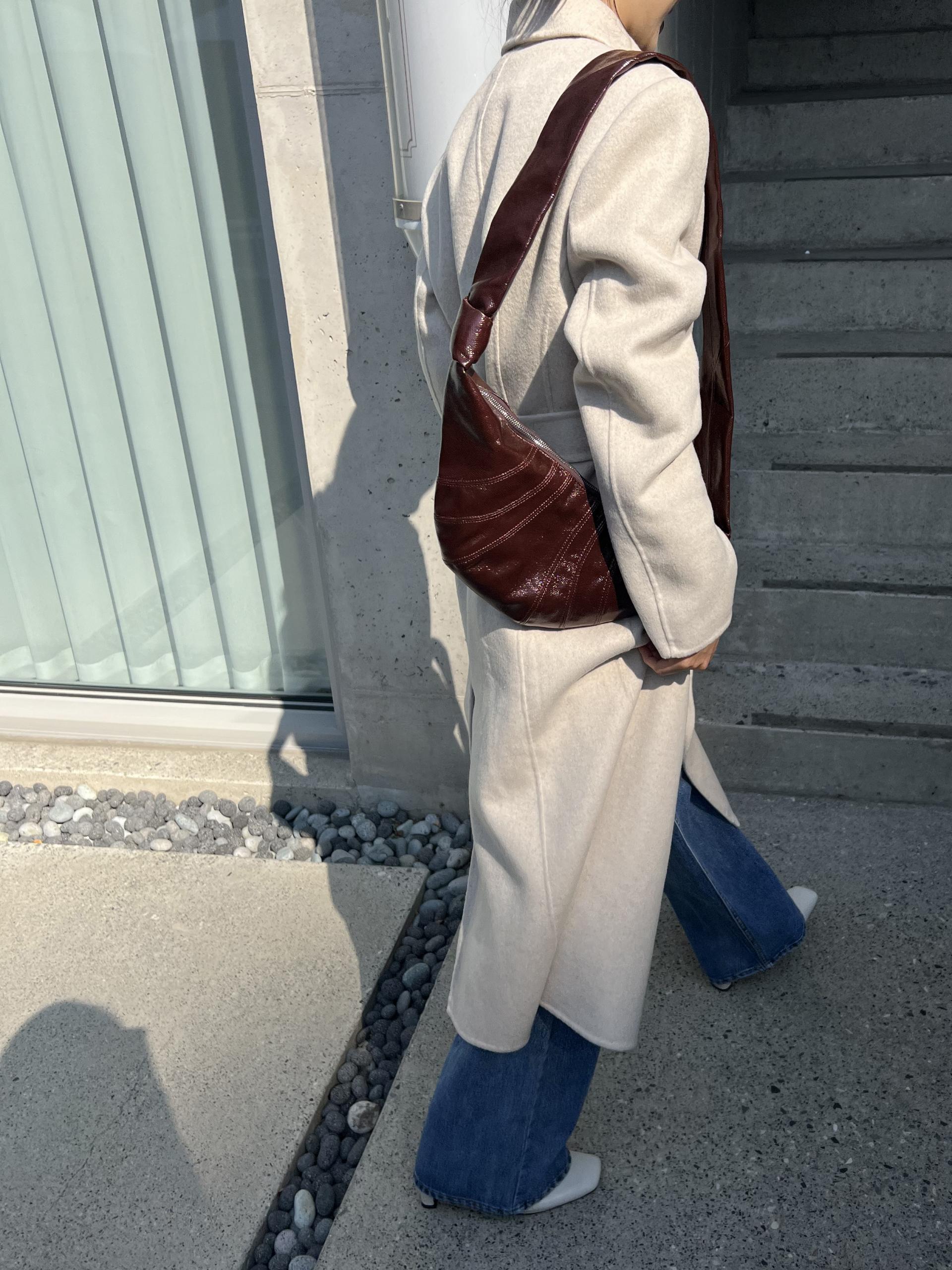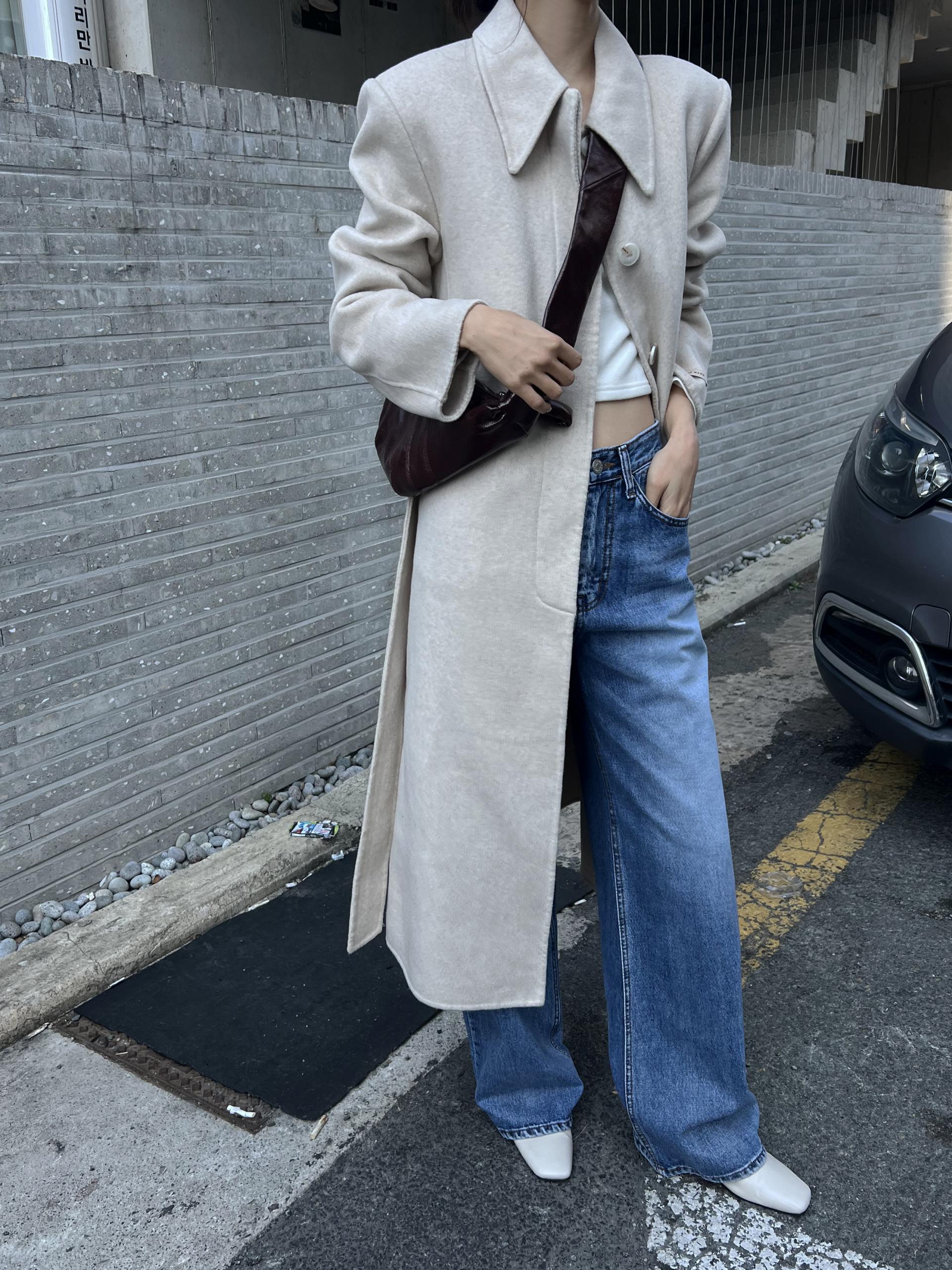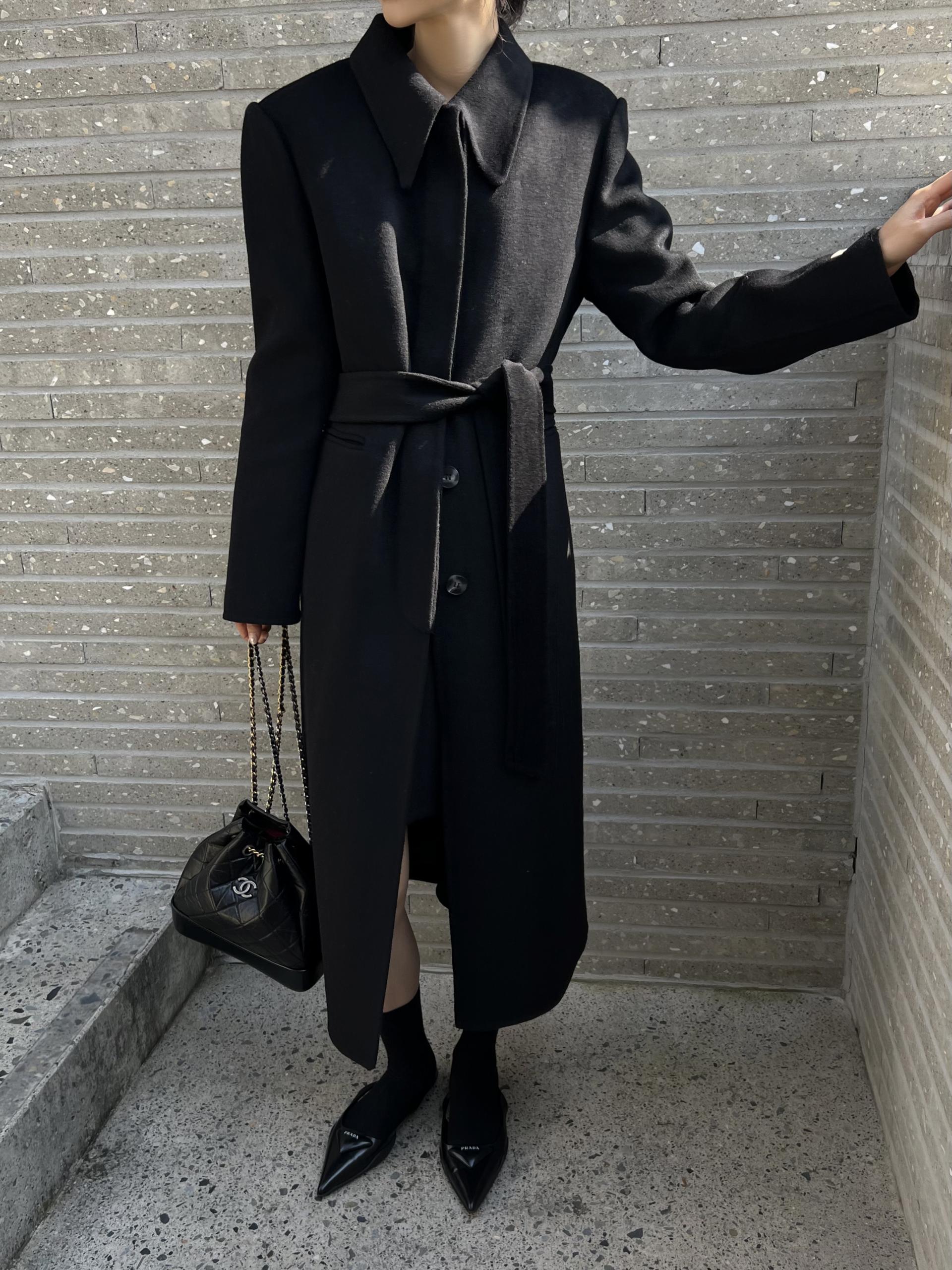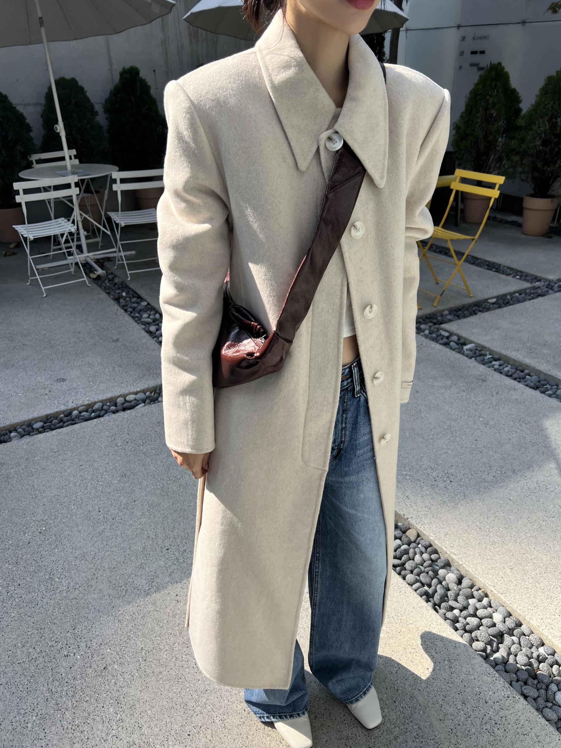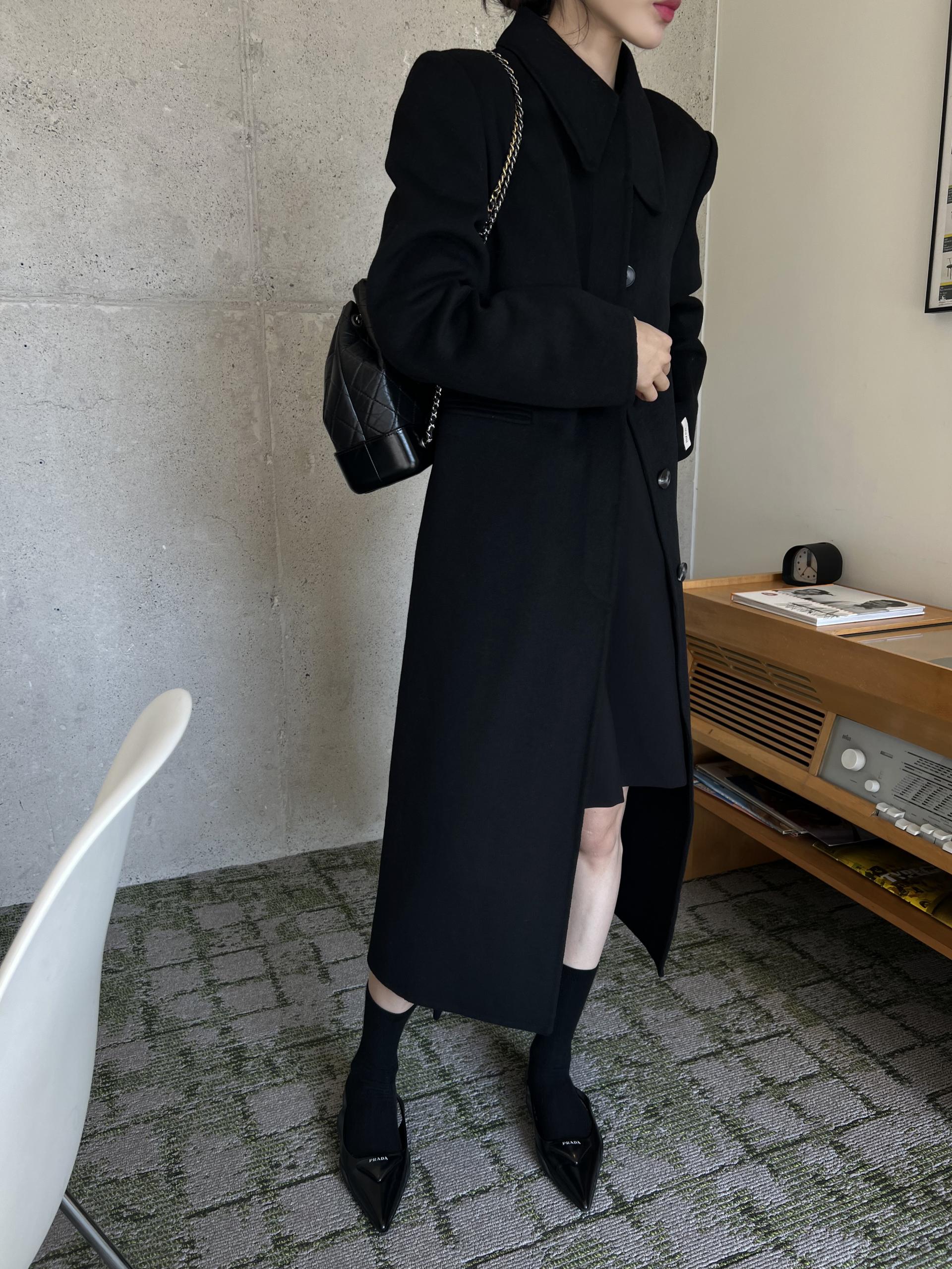 어깨 패드가 있어 더욱 도시적으로 연출되는 실루엣과 맥시한 기장감의 밸런스가 좋습니다.