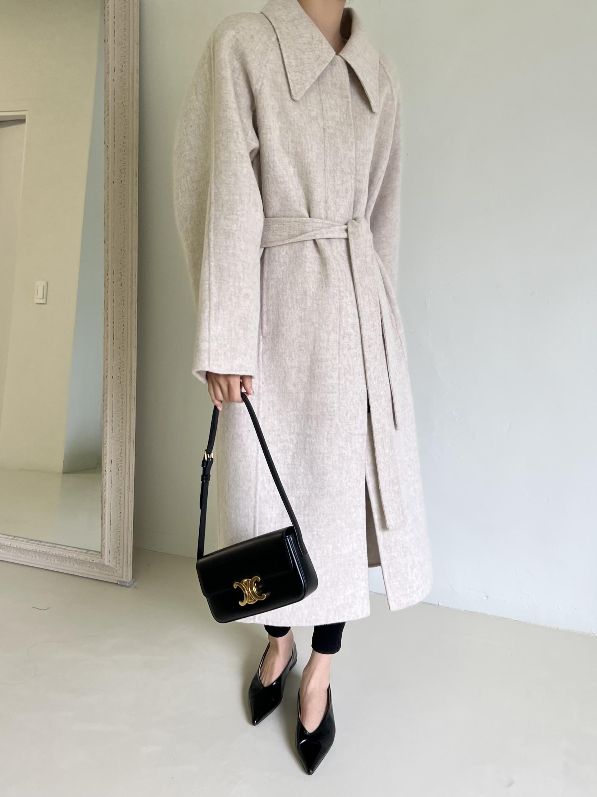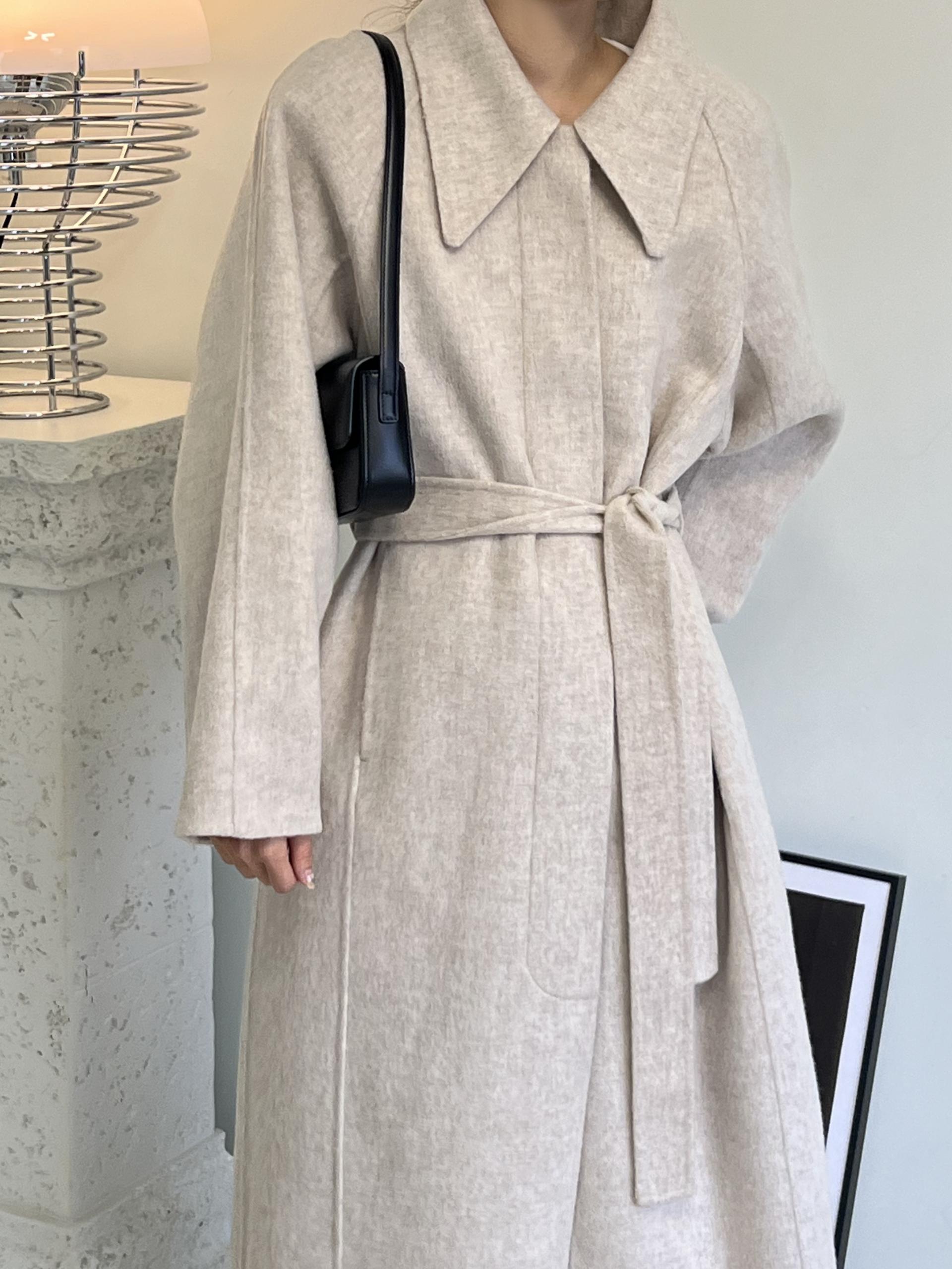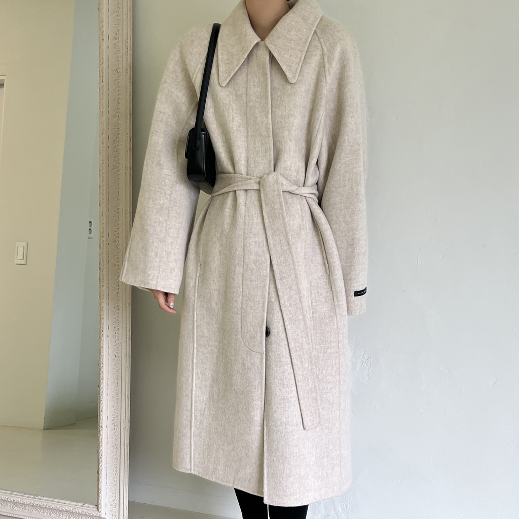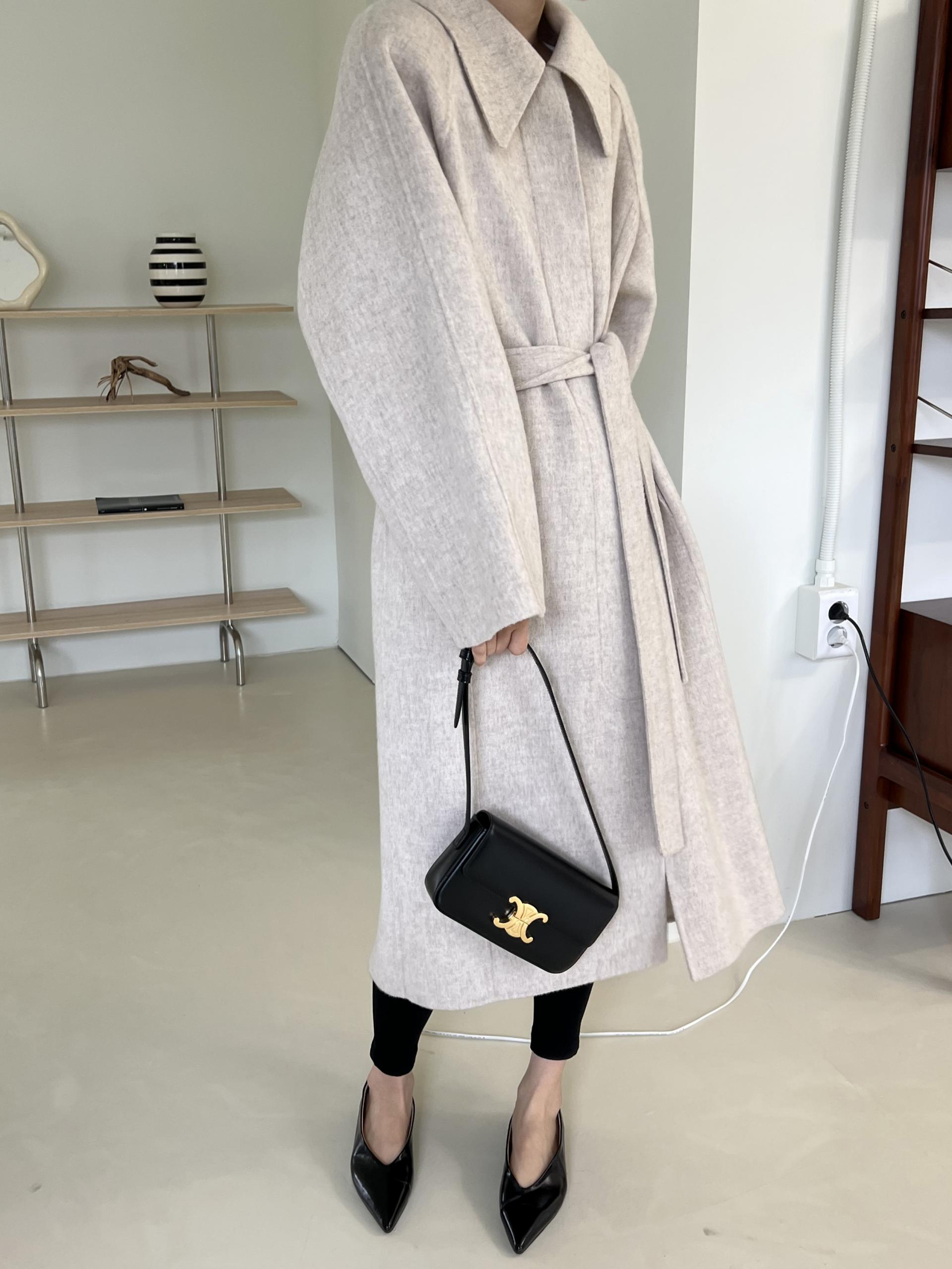 가볍고 부드러운 착용감과 한 올 한 올 결이 살아있어 고급스러운 느낌이 물씬 드는 코트이며, 유연하게 떨어지는 나그랑 소매와 과하지도 너무 작지도 않은 적당한 사이즈의 카라가 데일리하면서도 여성스러운 느낌이에요.