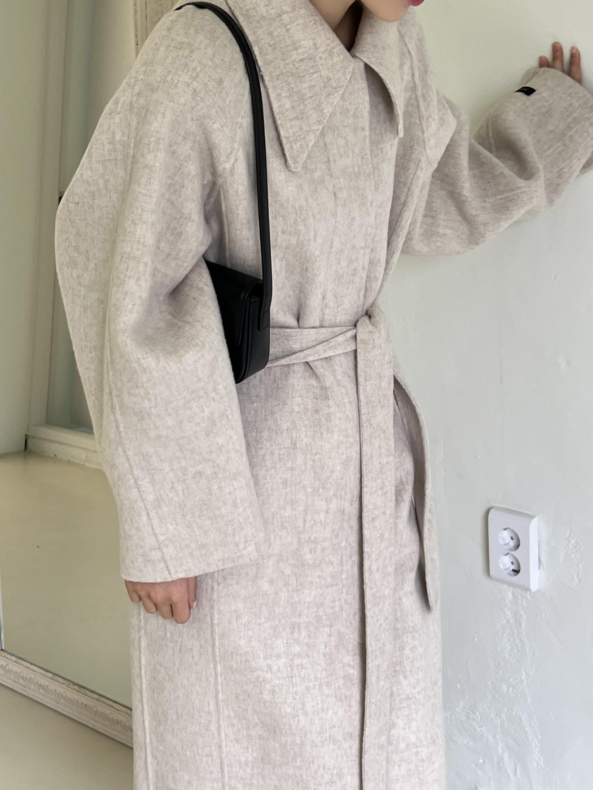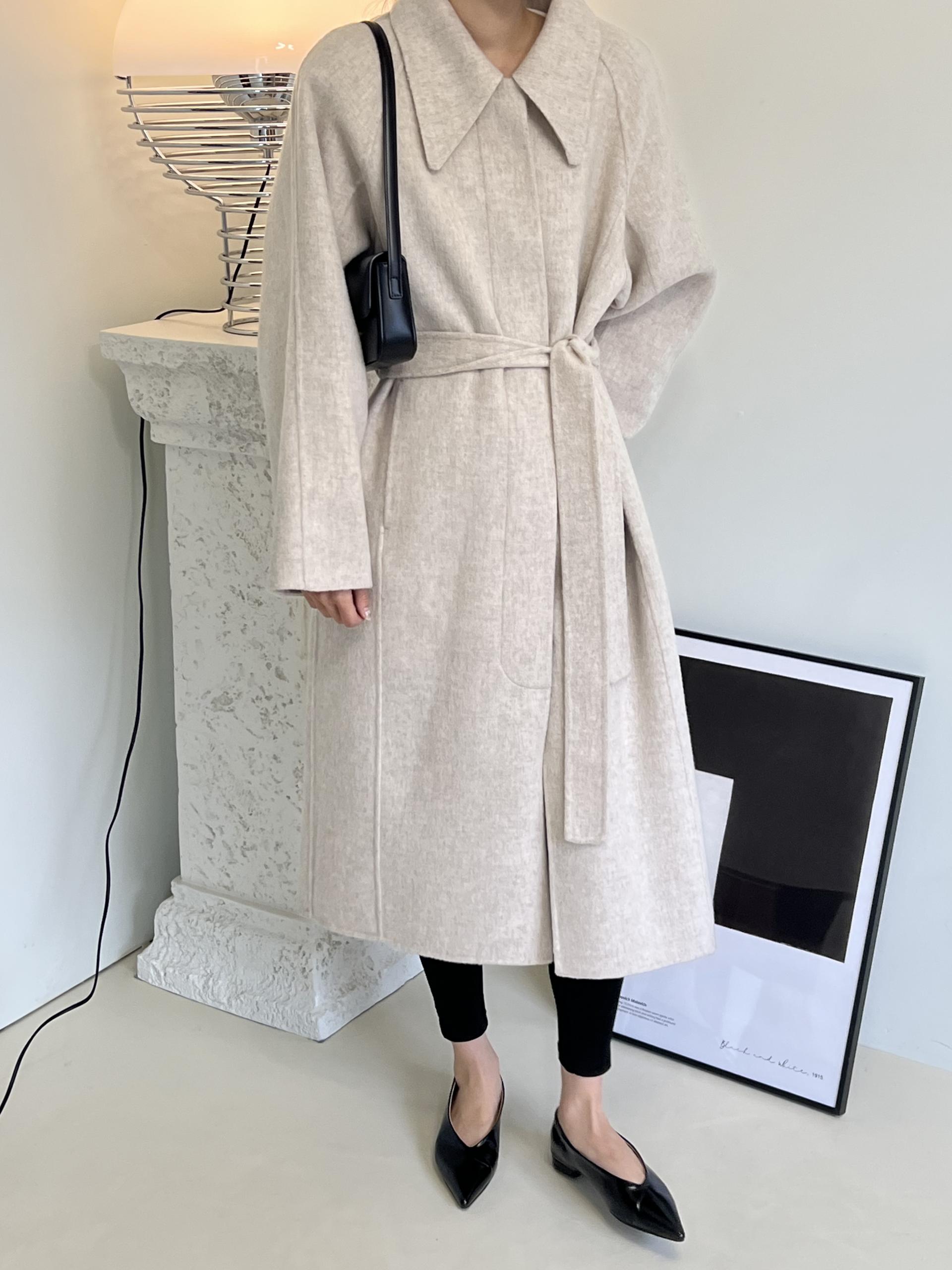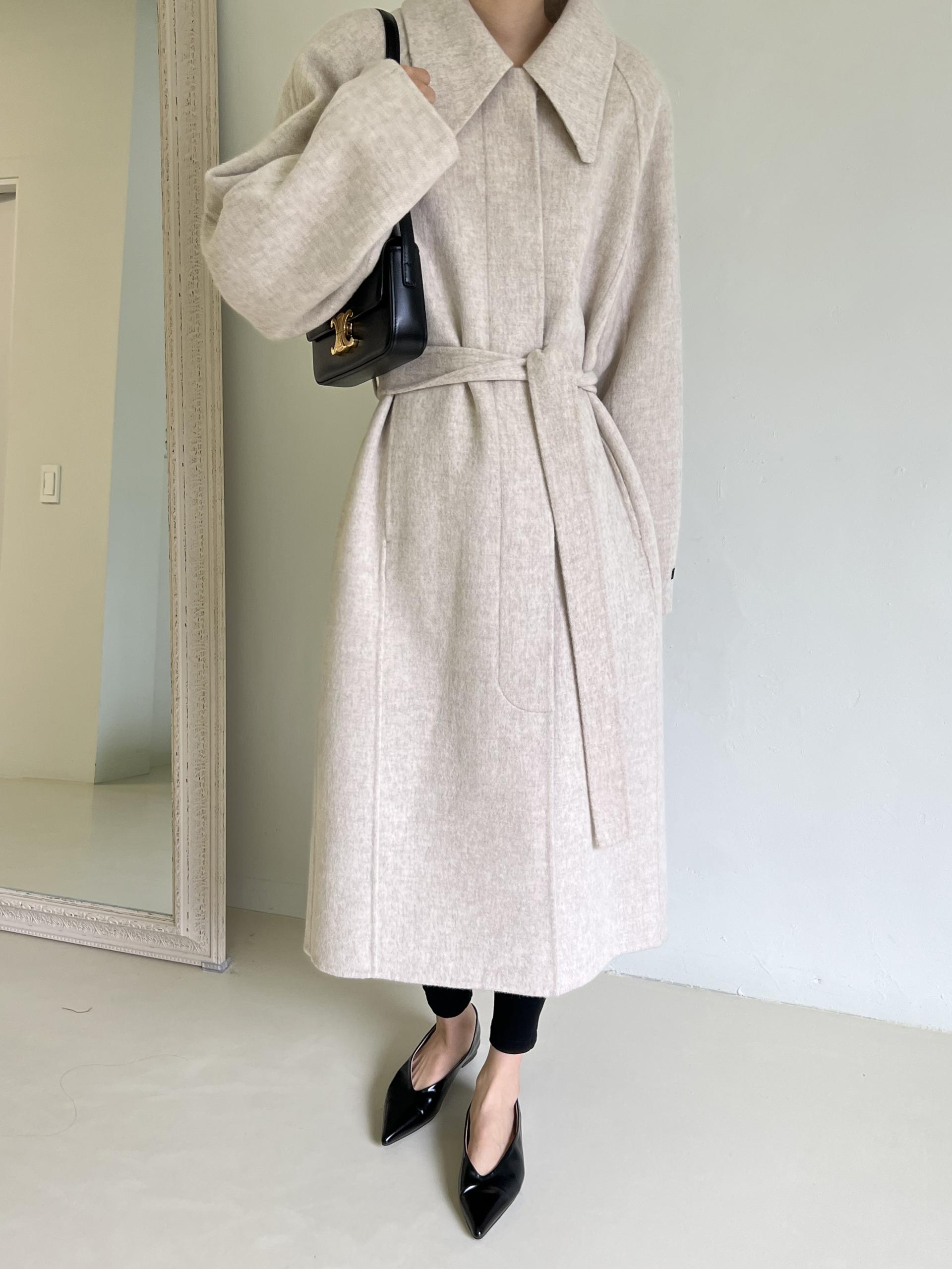 가볍고 부드러운 착용감과 한 올 한 올 결이 살아있어 고급스러운 느낌이 물씬 드는 코트이며, 유연하게 떨어지는 나그랑 소매와 과하지도 너무 작지도 않은 적당한 사이즈의 카라가 데일리하면서도 여성스러운 느낌이에요.