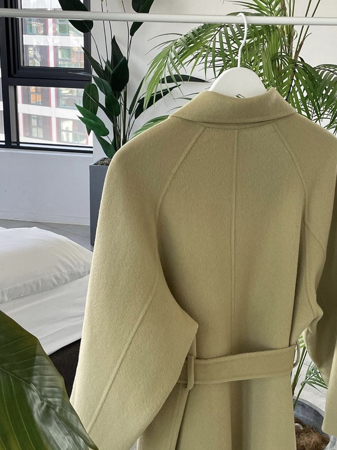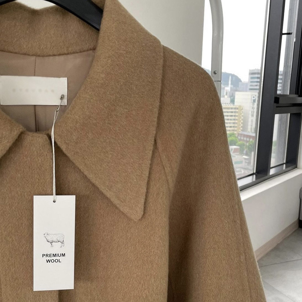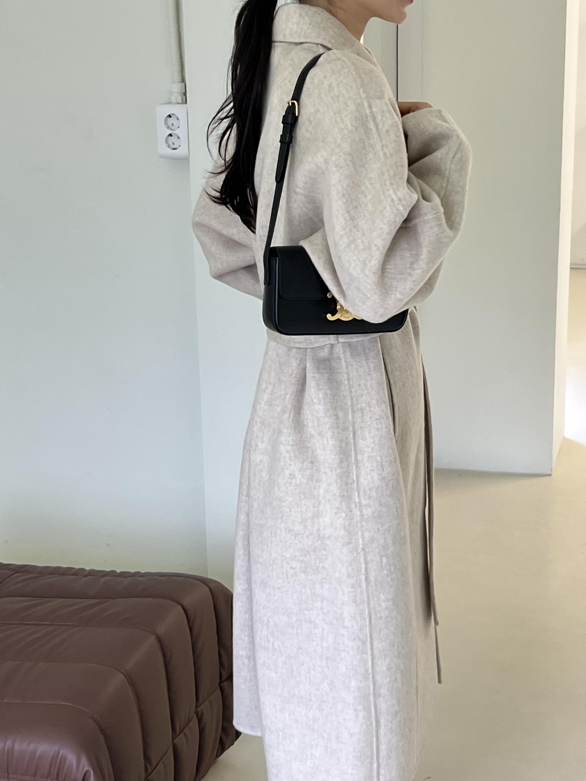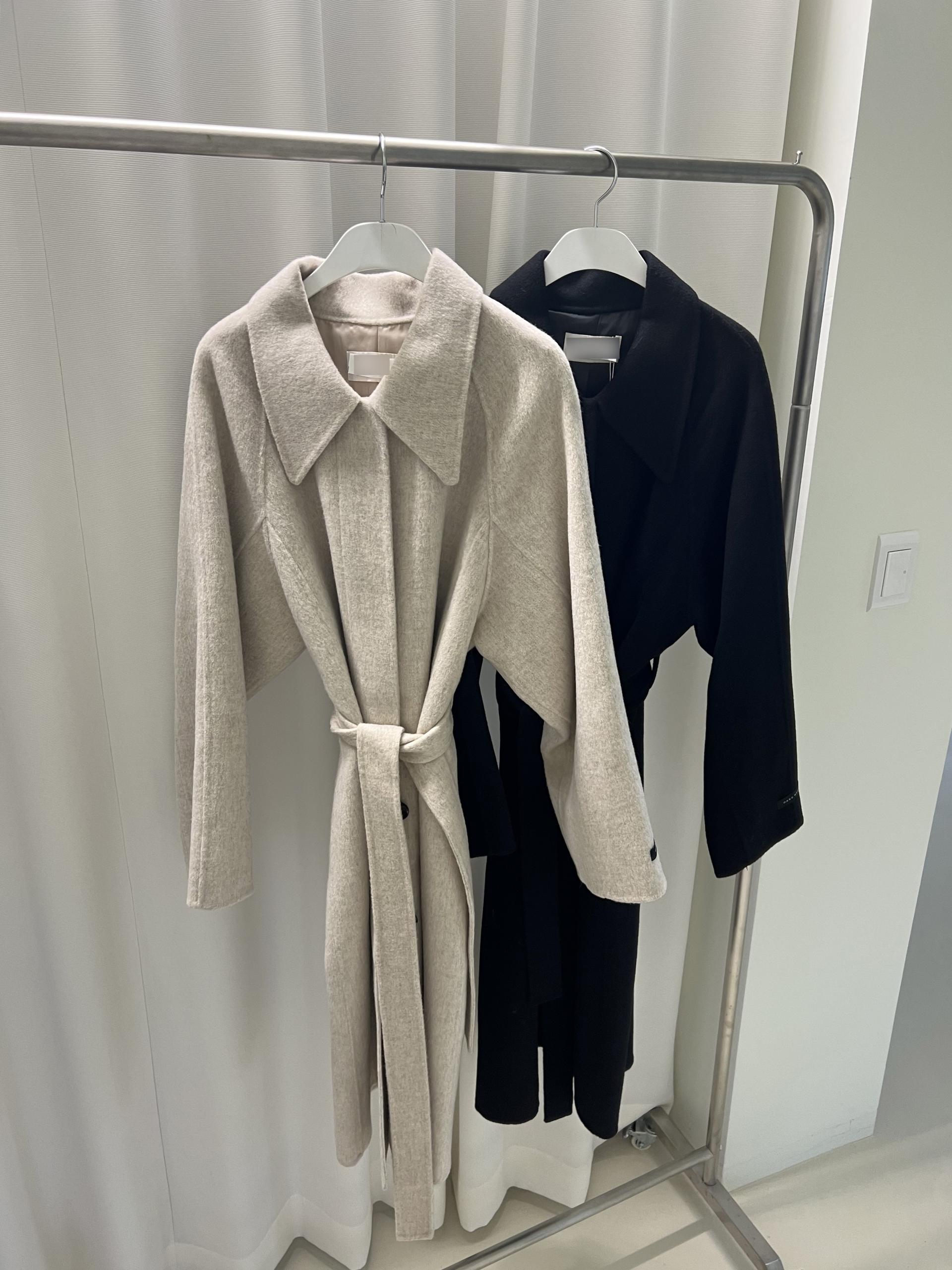 가볍고 부드러운 착용감과 한 올 한 올 결이 살아있어 고급스러운 느낌이 물씬 드는 코트이며, 유연하게 떨어지는 나그랑 소매와 과하지도 너무 작지도 않은 적당한 사이즈의 카라가 데일리하면서도 여성스러운 느낌이에요.