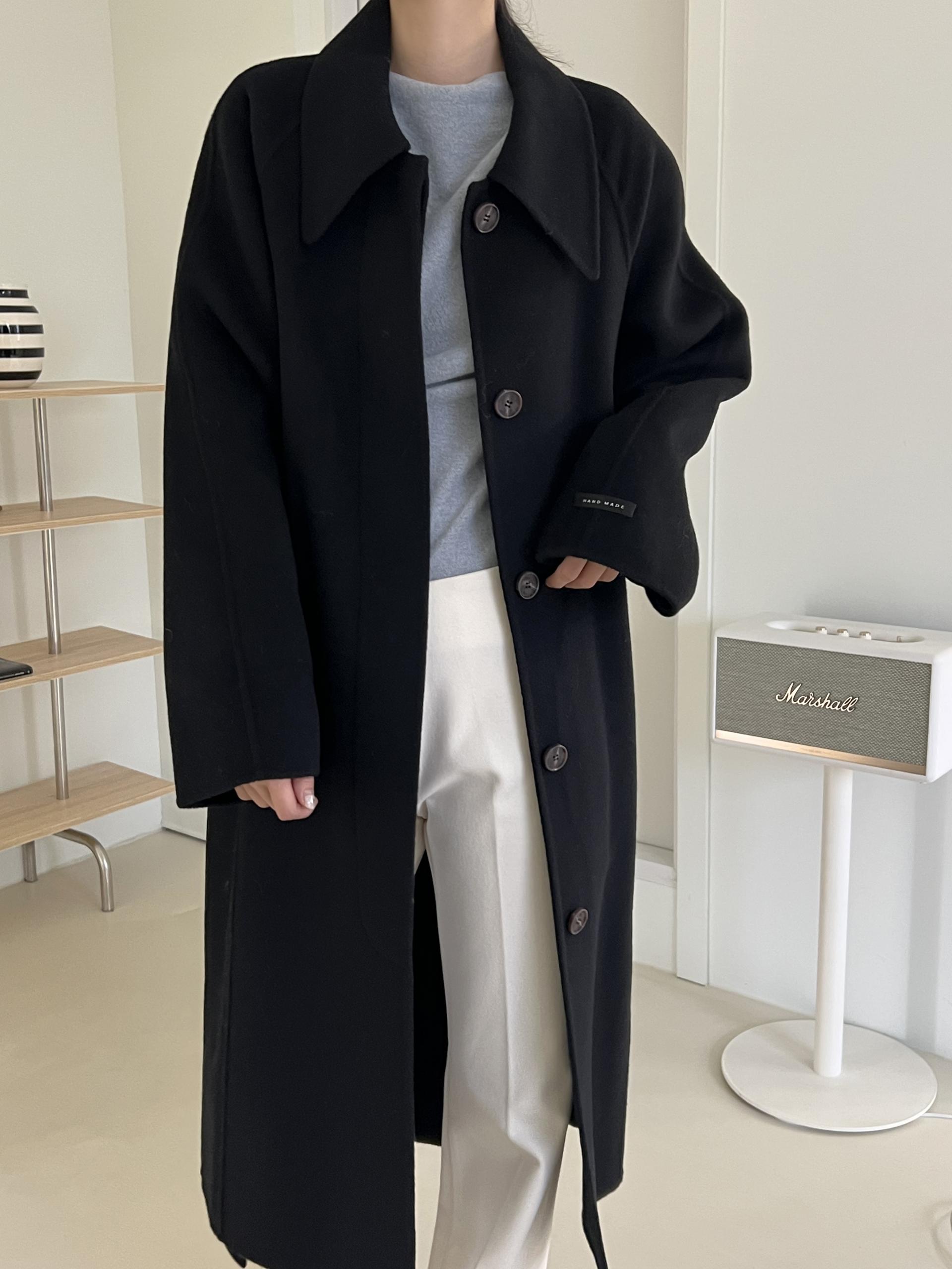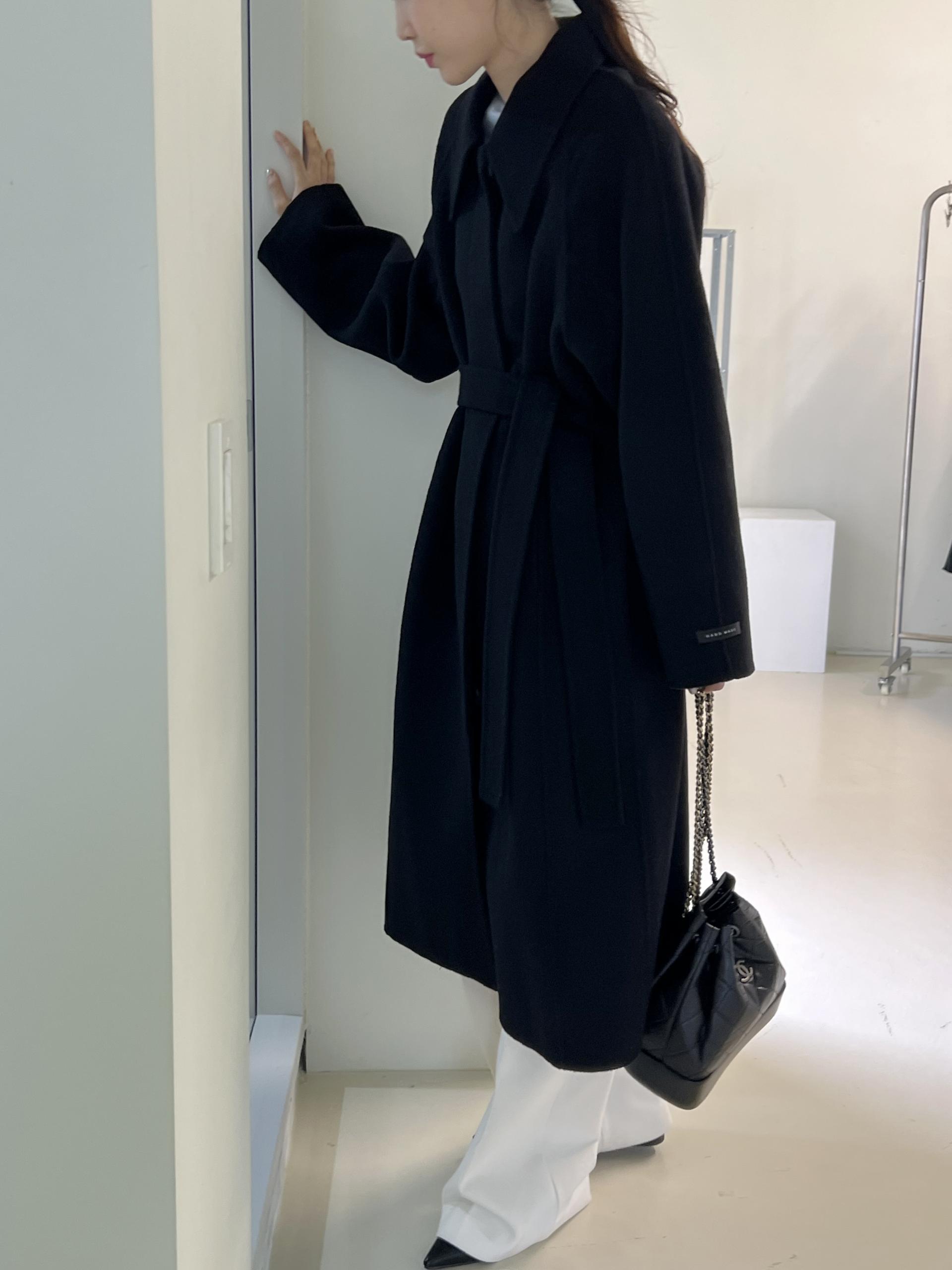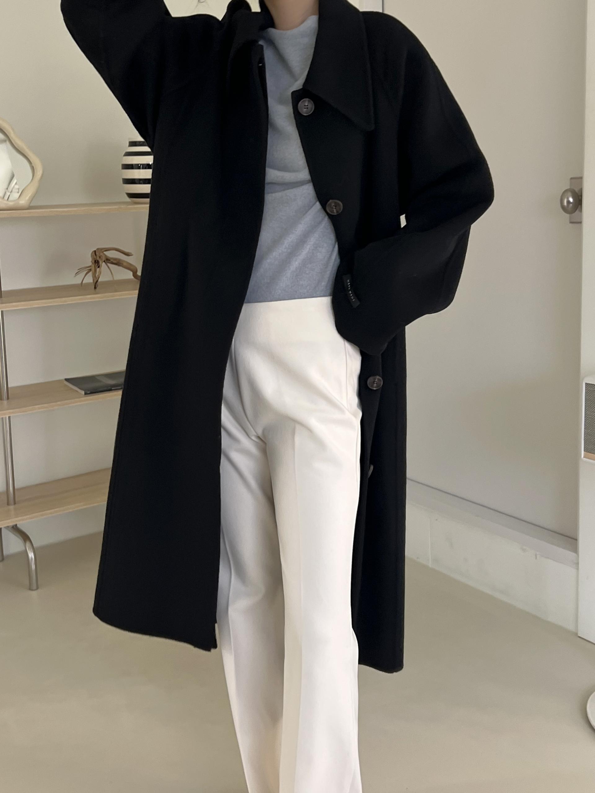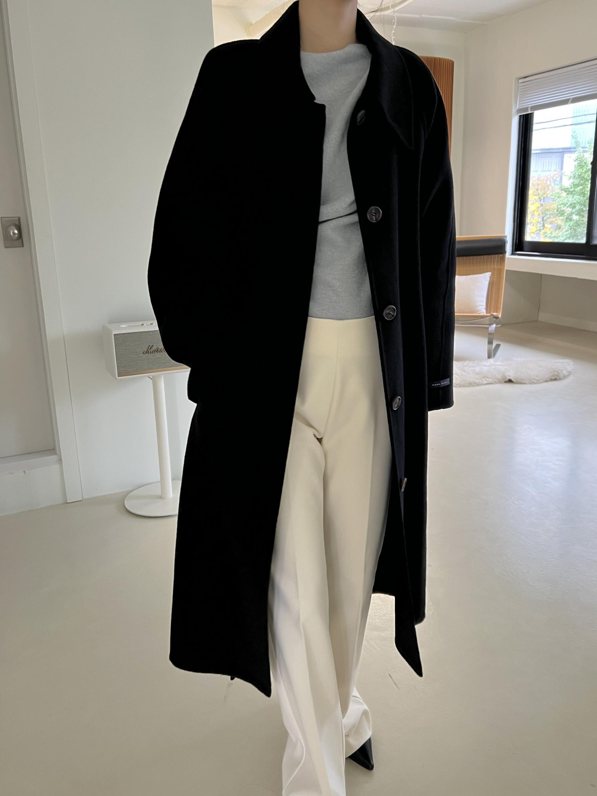 훌륭한 소재감의 프리미엄 울 90 핸드메이드 롱 코트입니다.