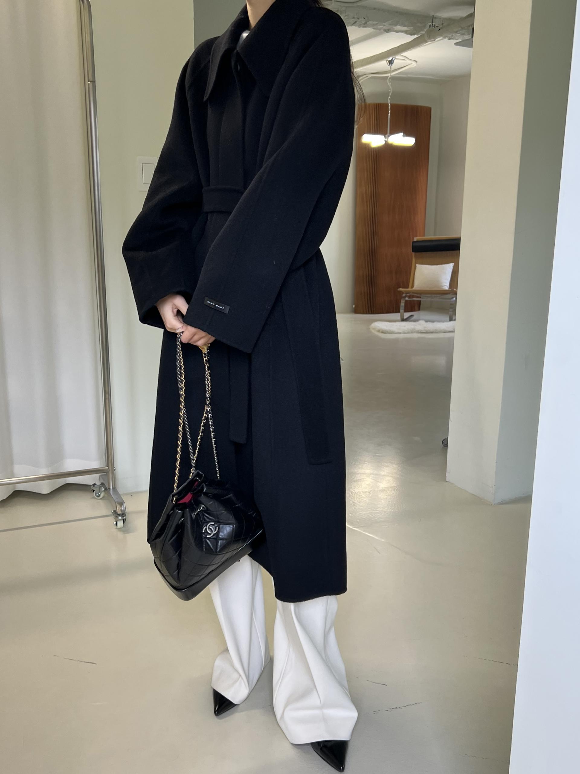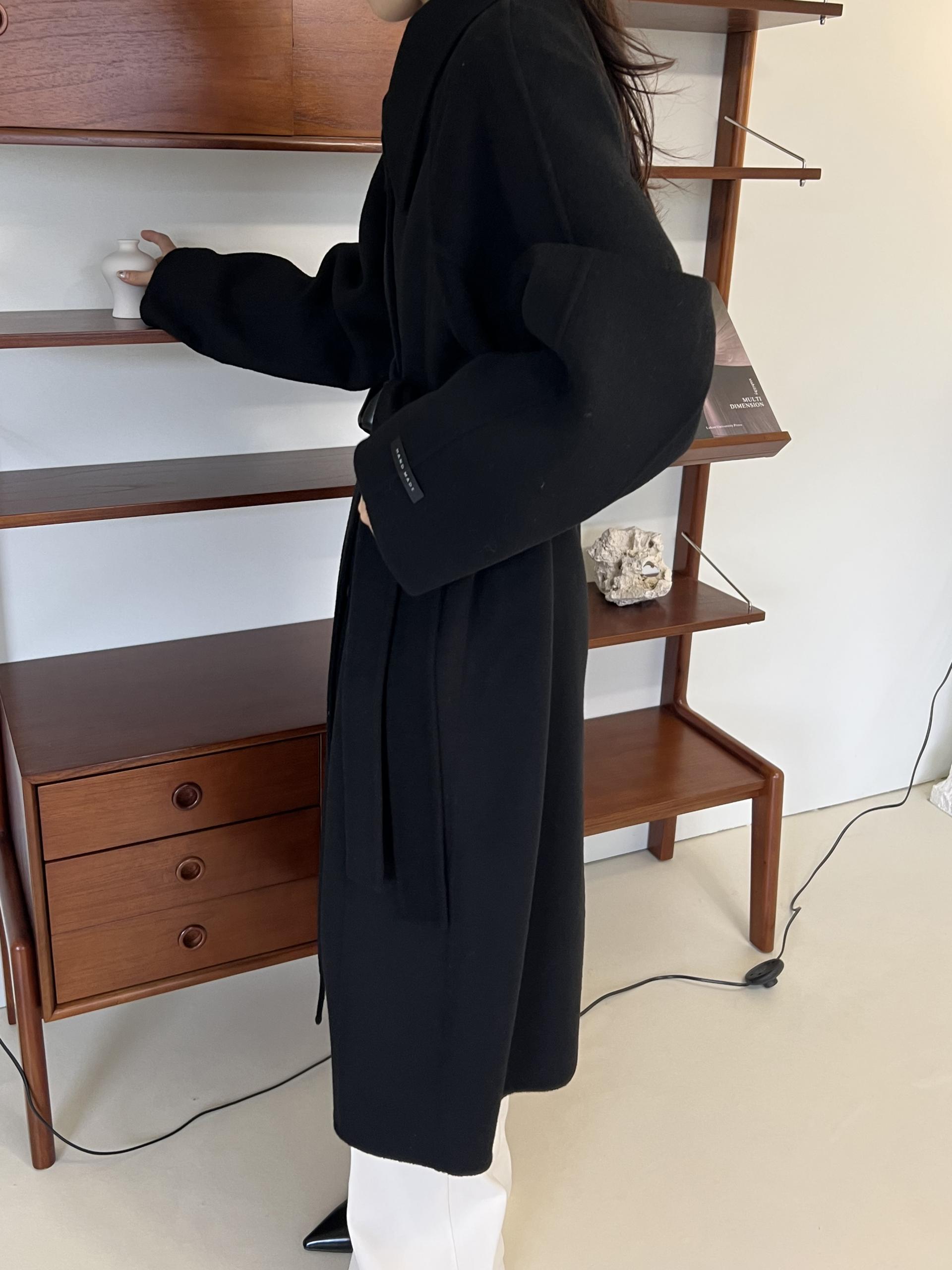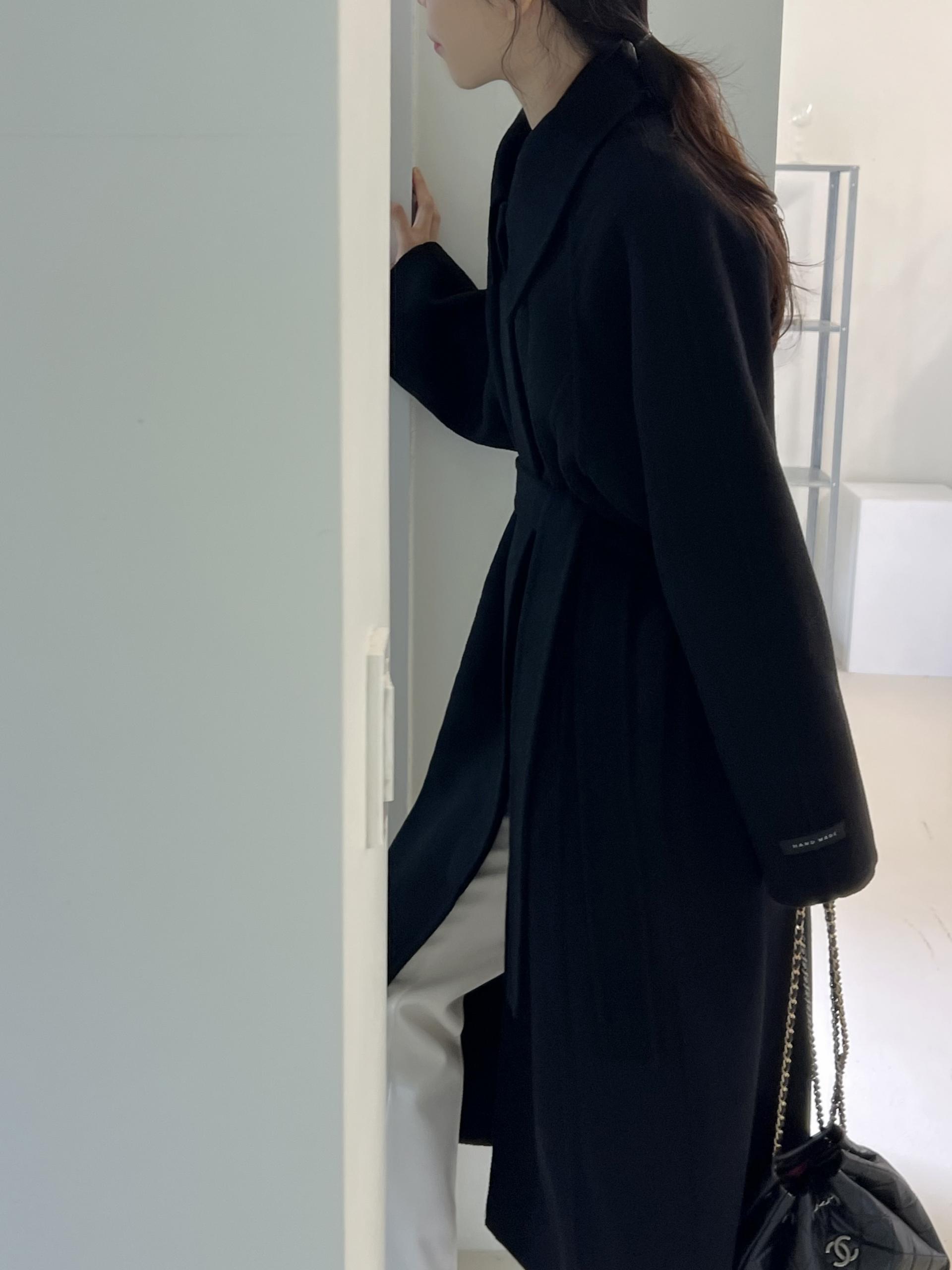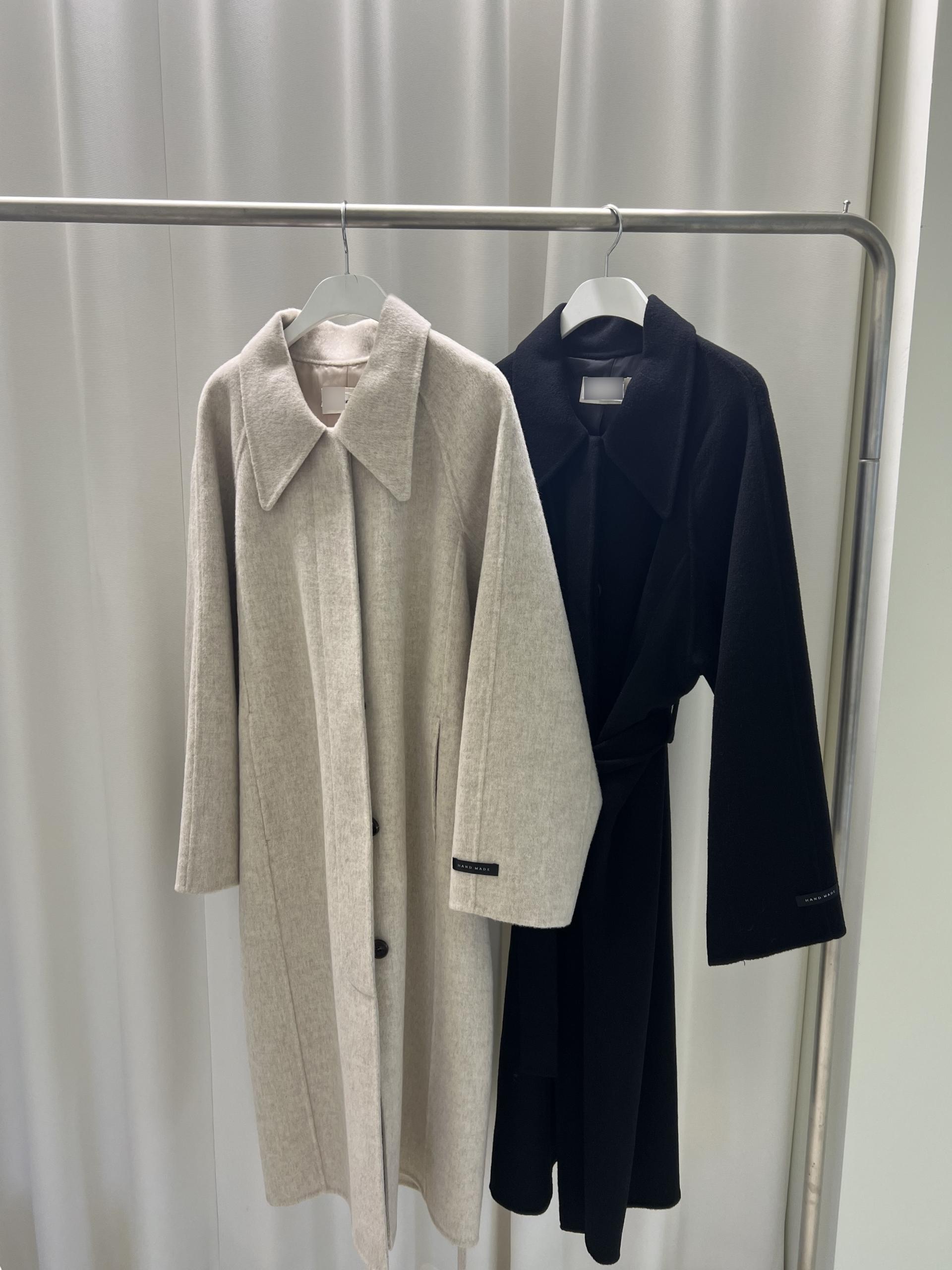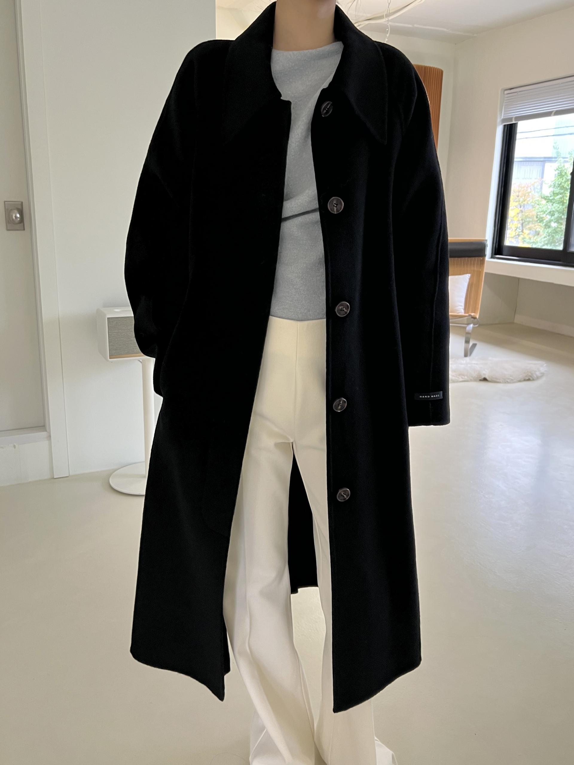 훌륭한 소재감의 프리미엄 울 90 핸드메이드 롱 코트입니다.