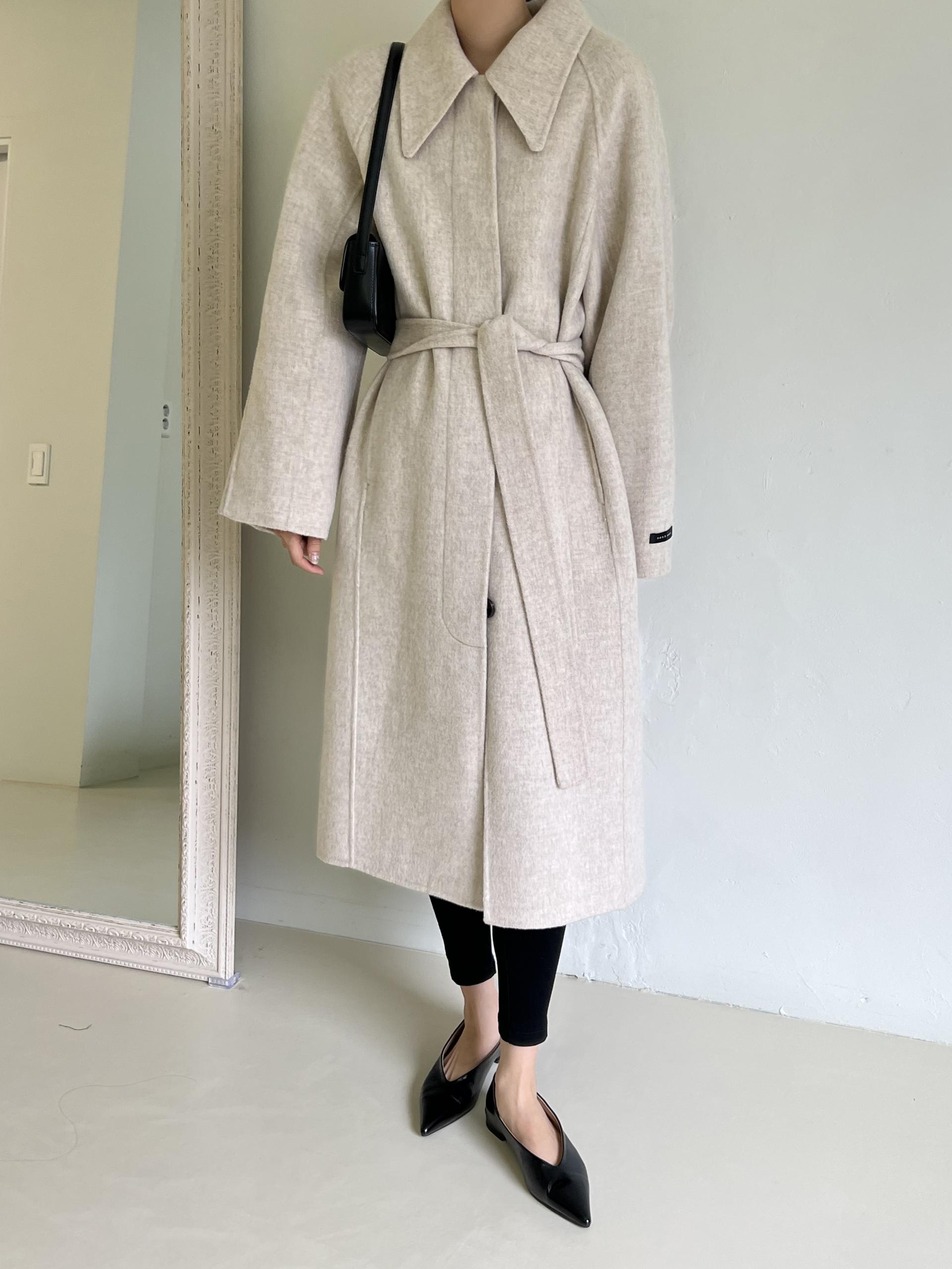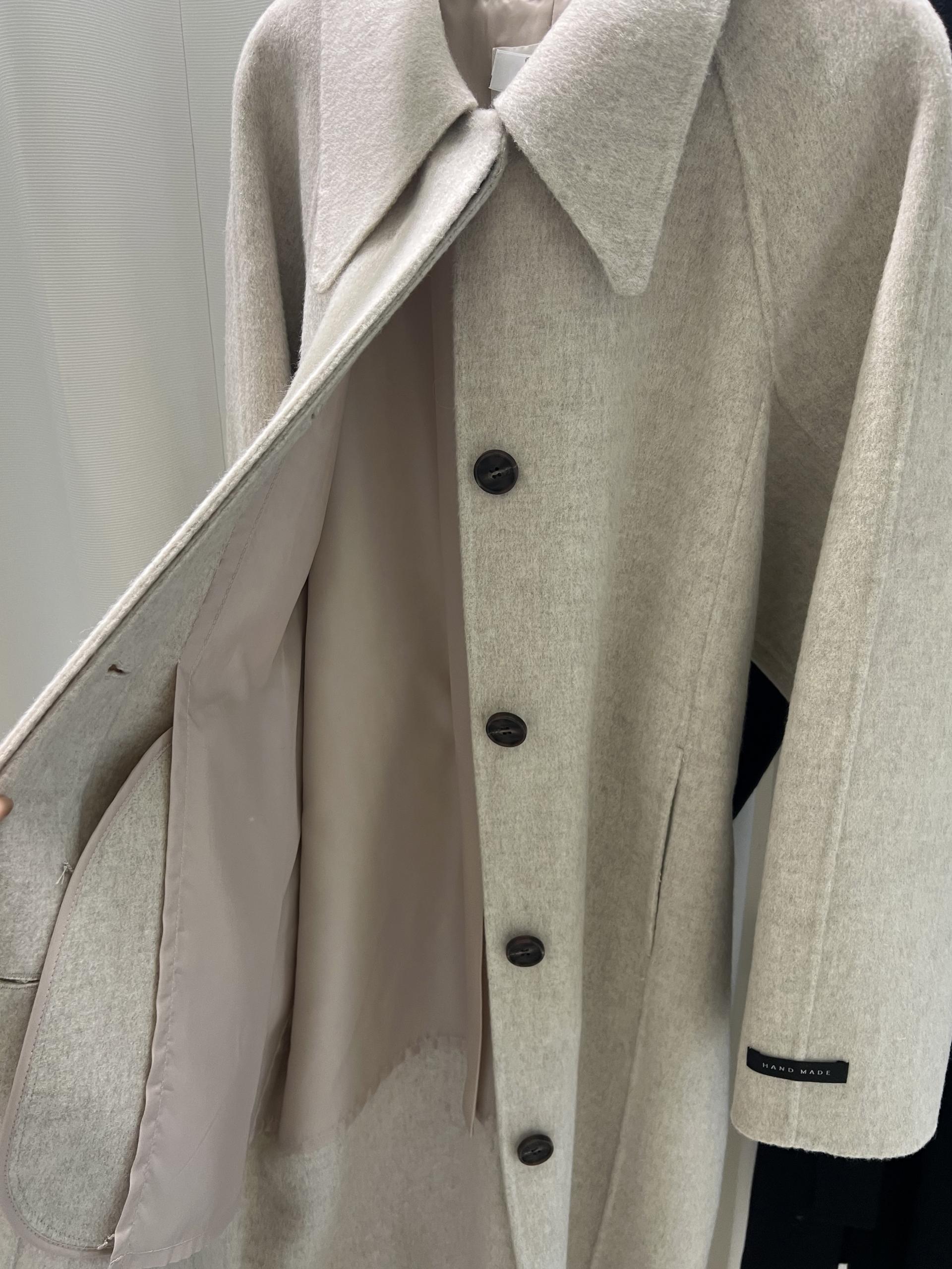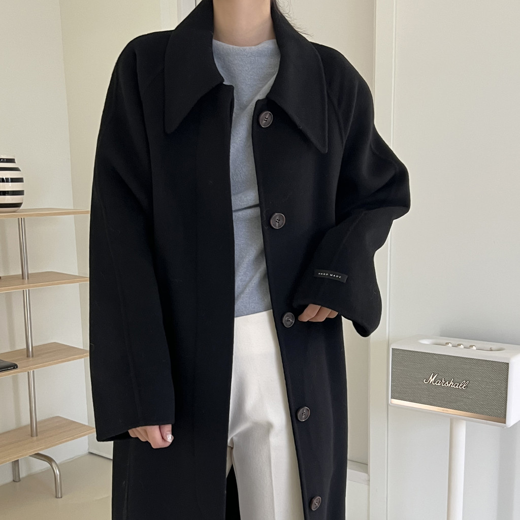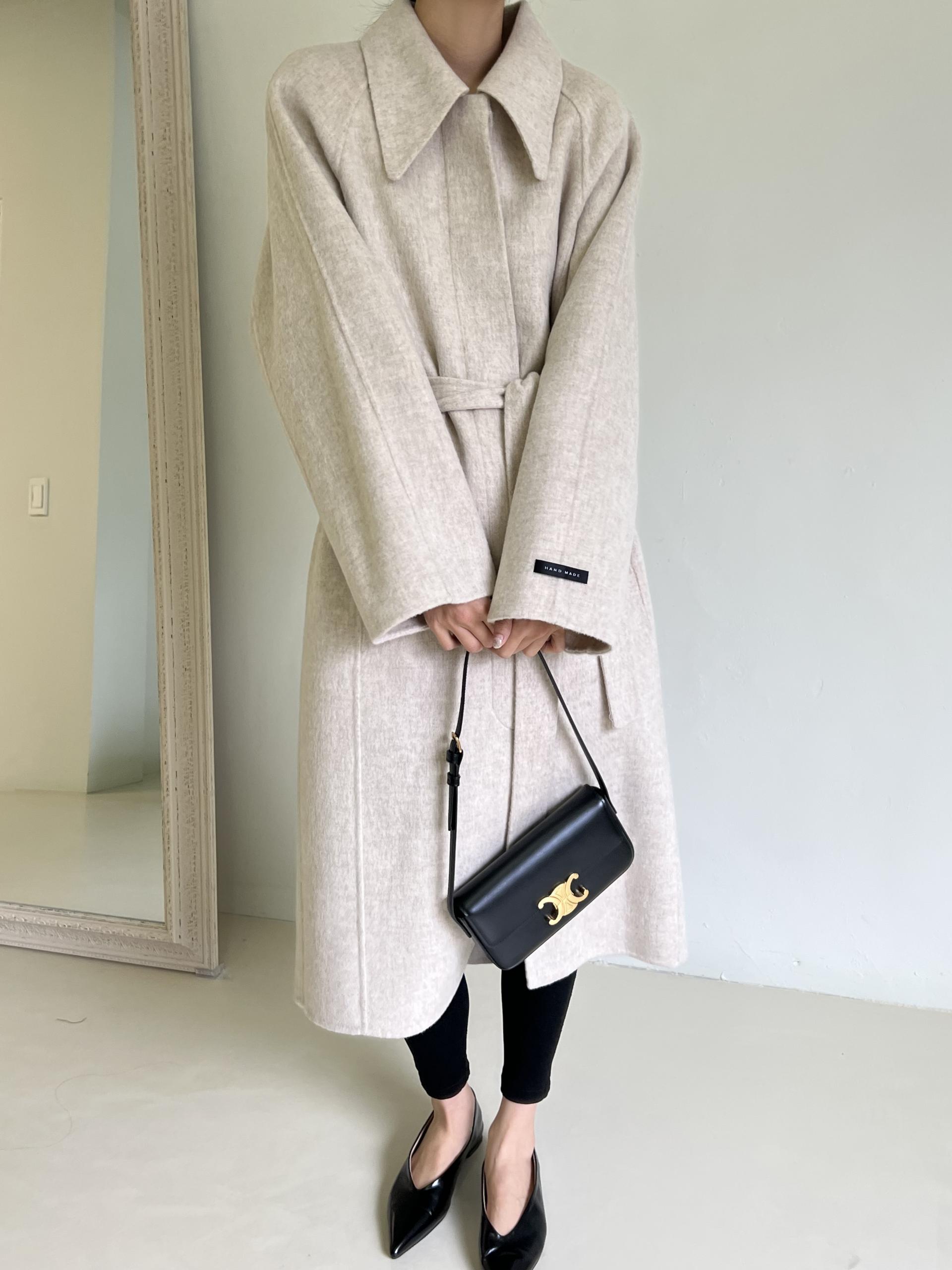 훌륭한 소재감의 프리미엄 울 90 핸드메이드 롱 코트입니다.