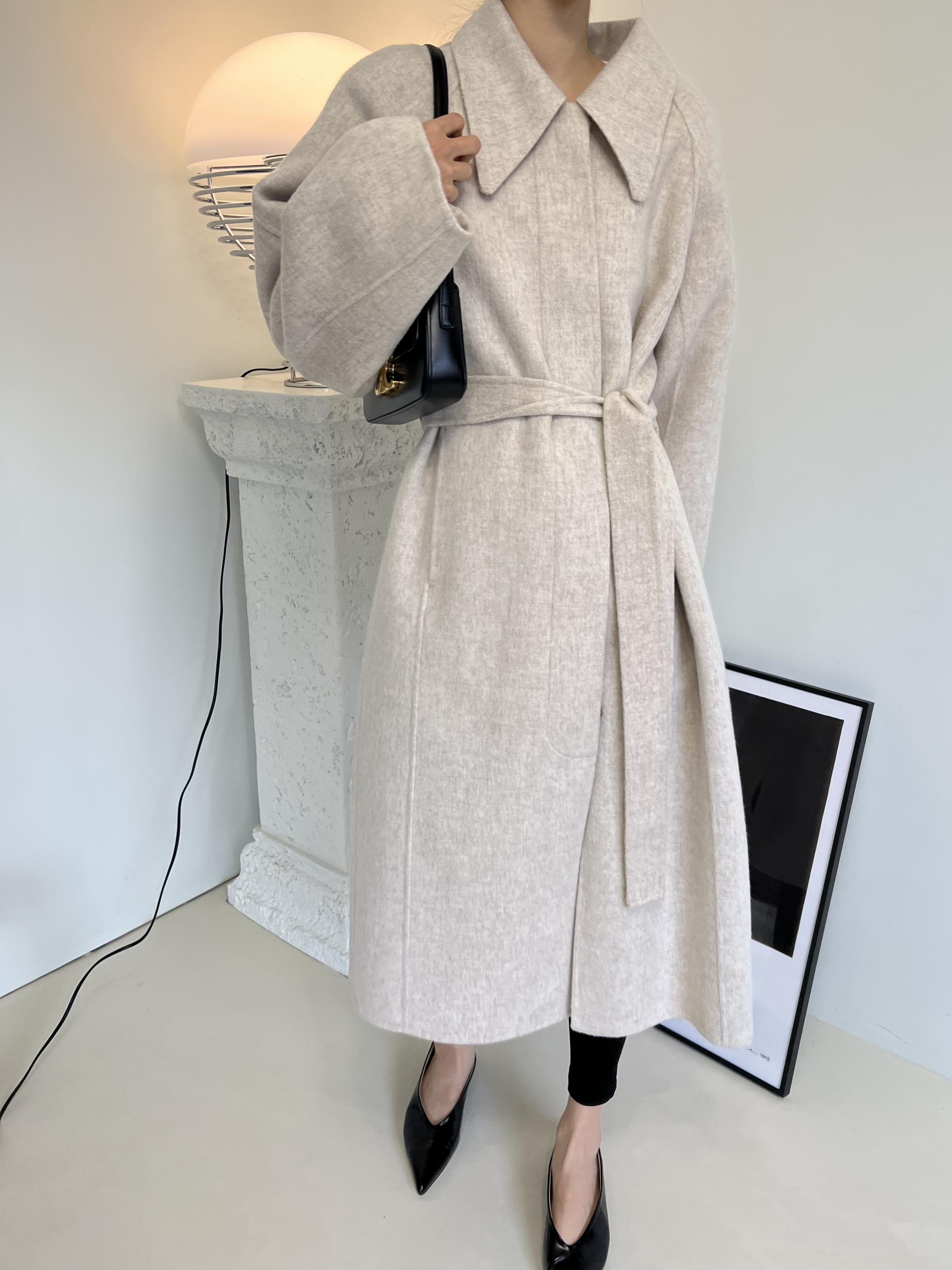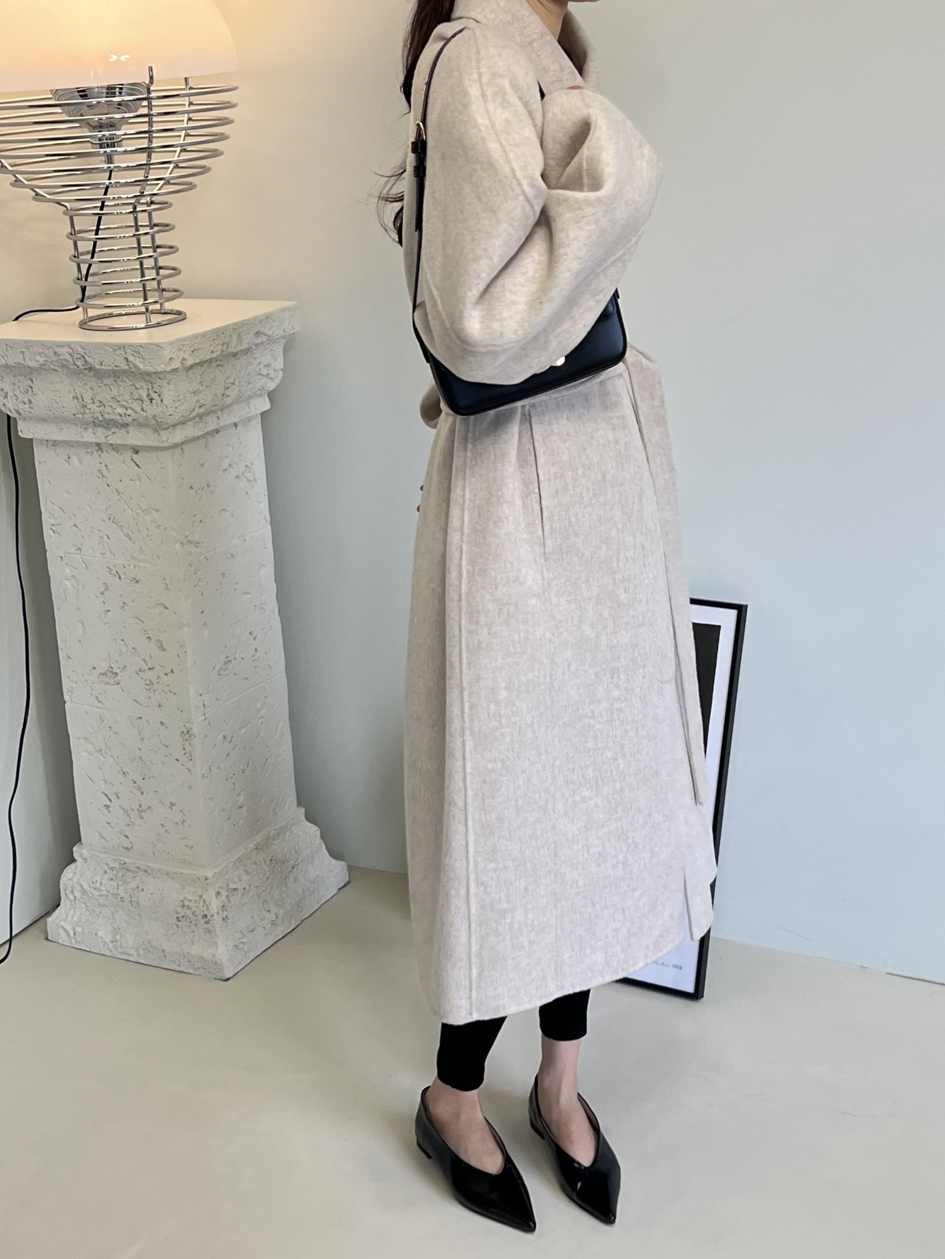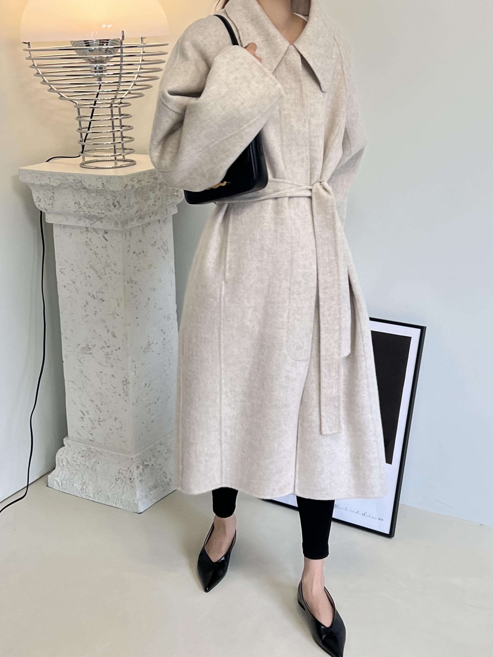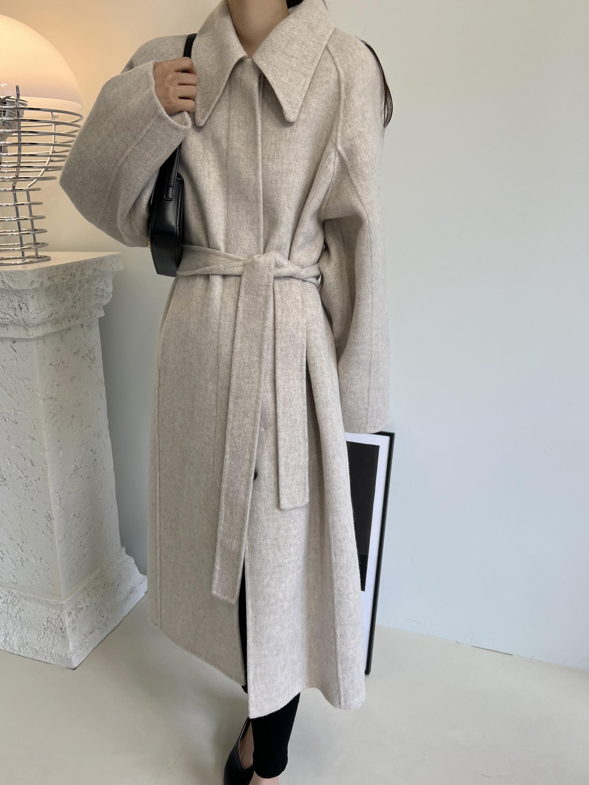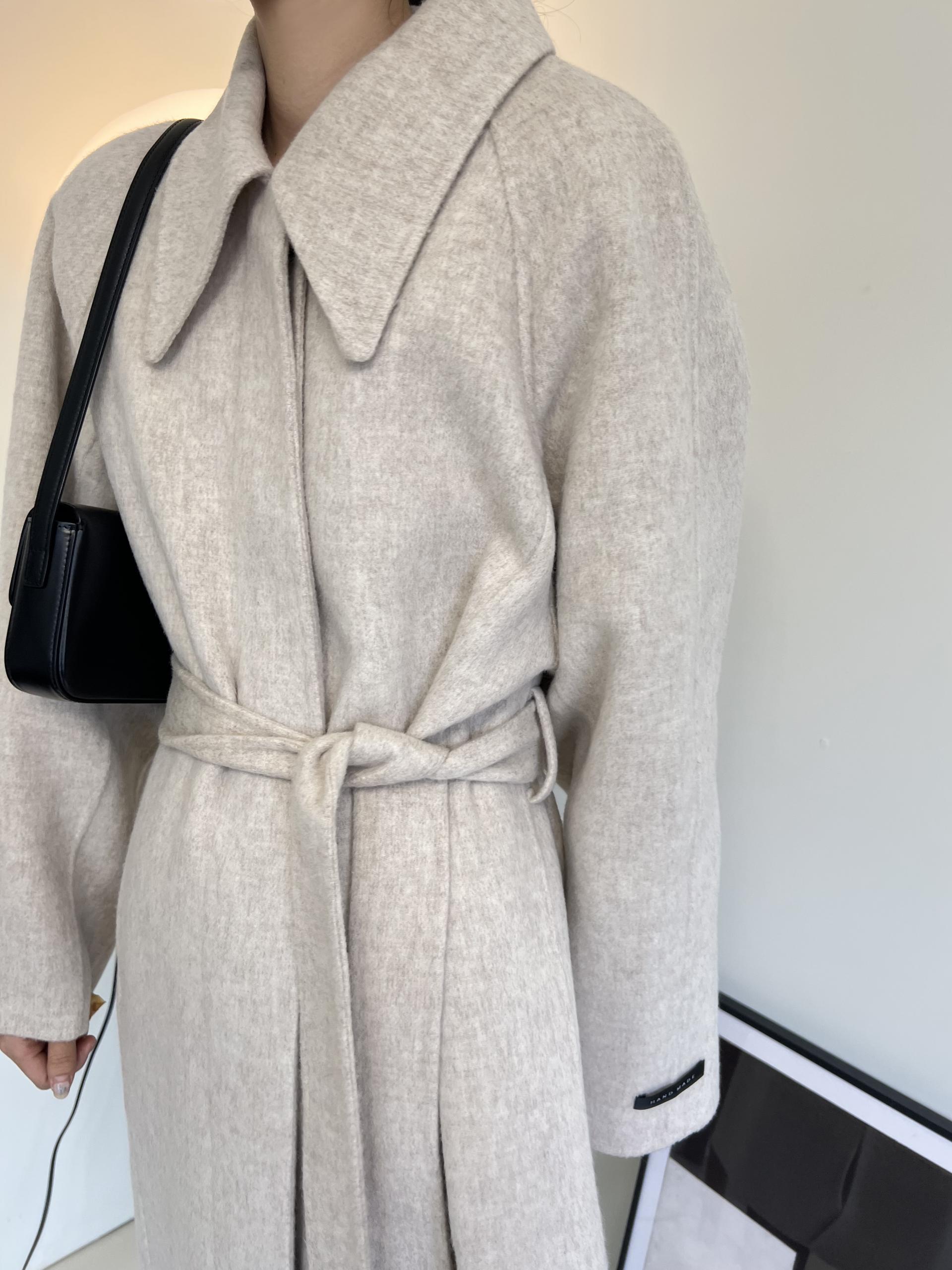 훌륭한 소재감의 프리미엄 울 90 핸드메이드 롱 코트입니다.