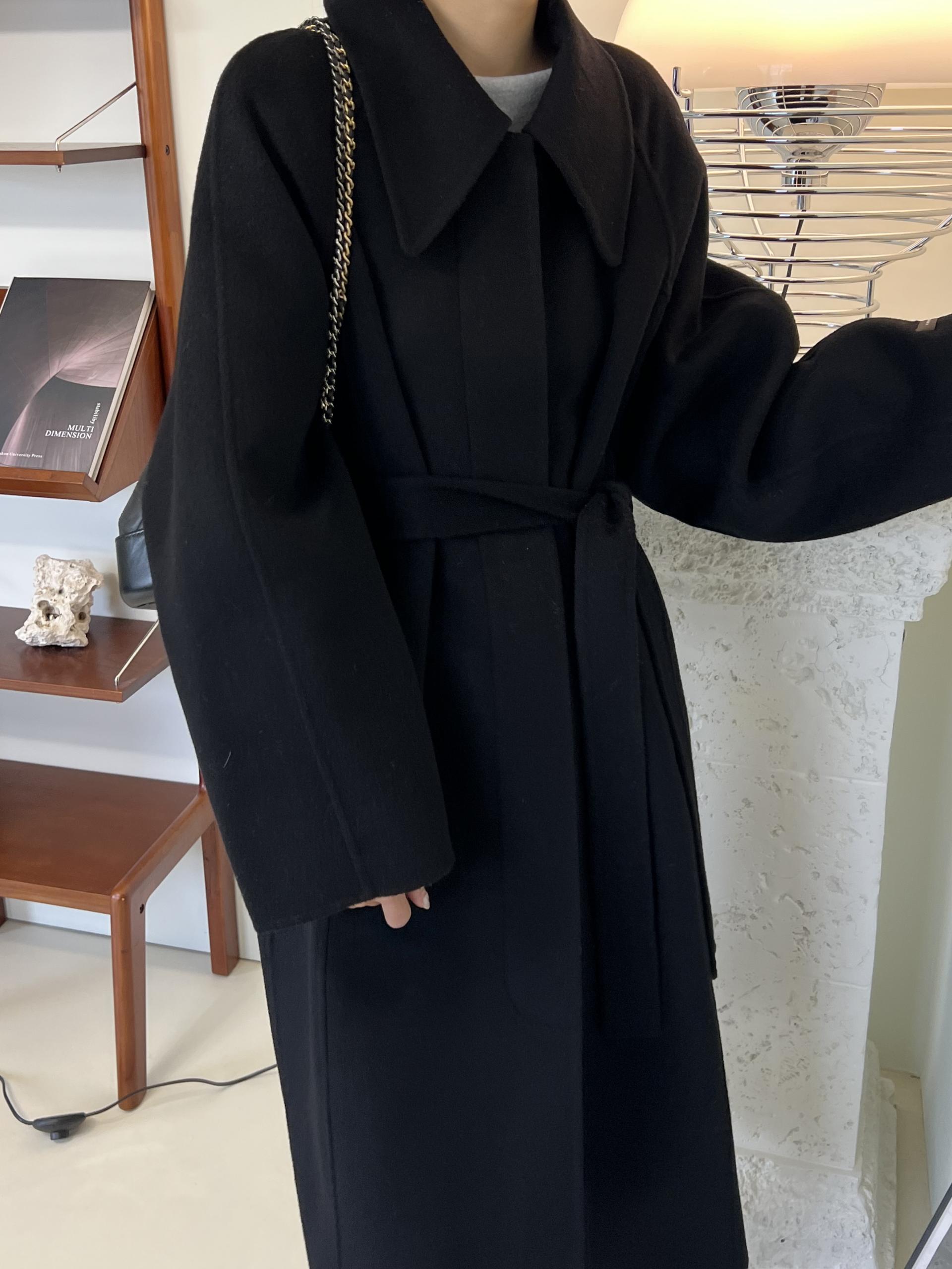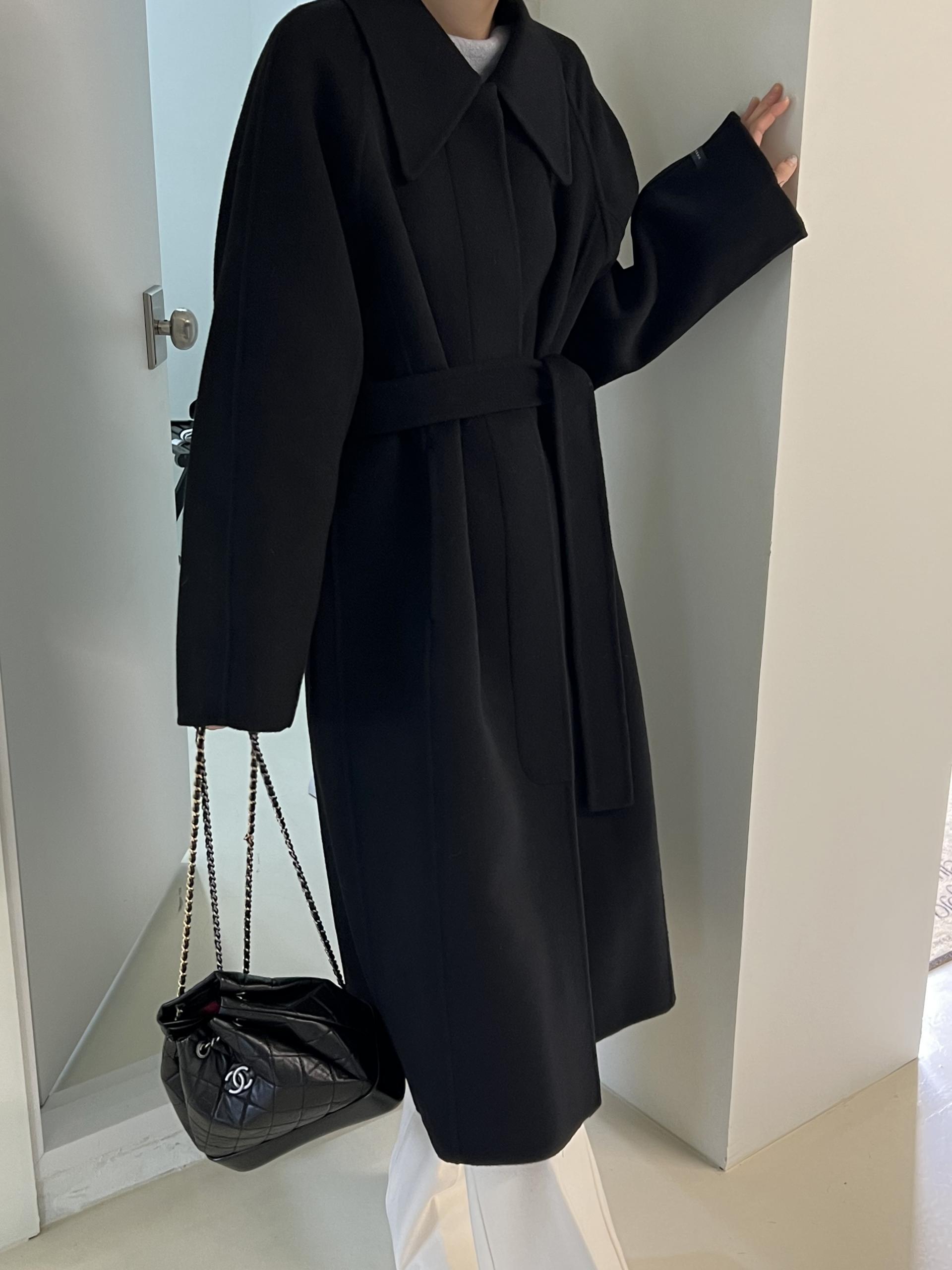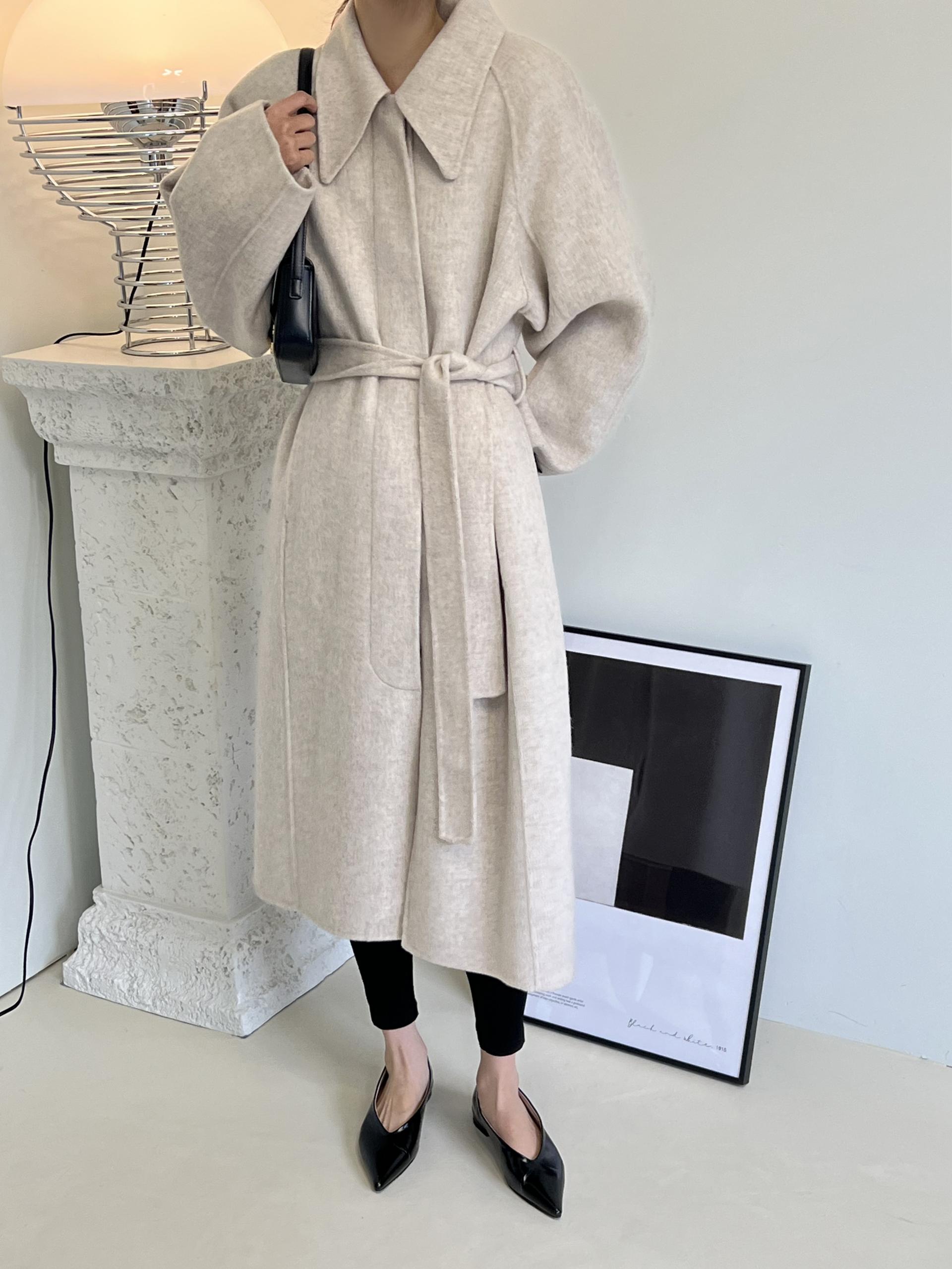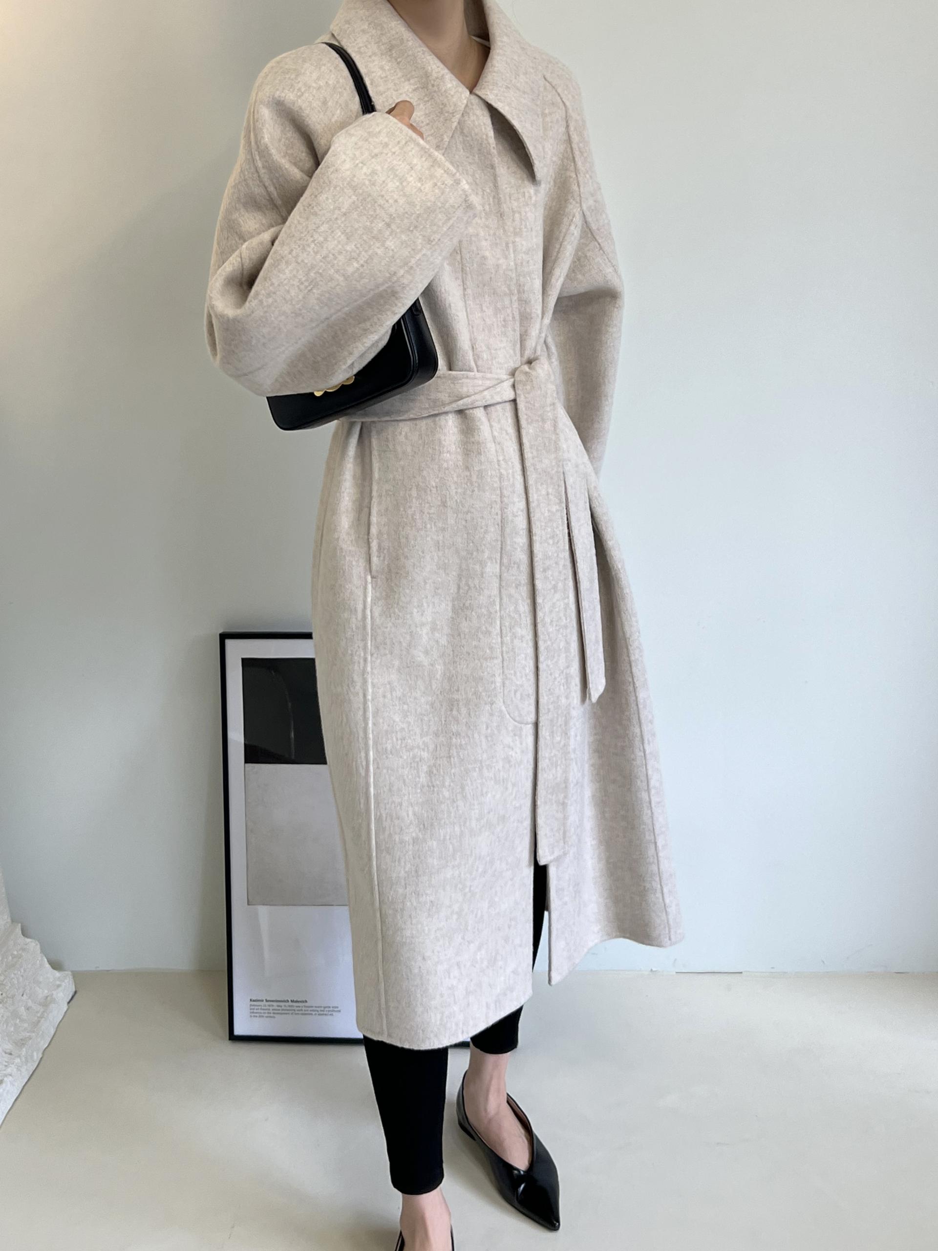훌륭한 소재감의 프리미엄 울 90 핸드메이드 롱 코트입니다.
