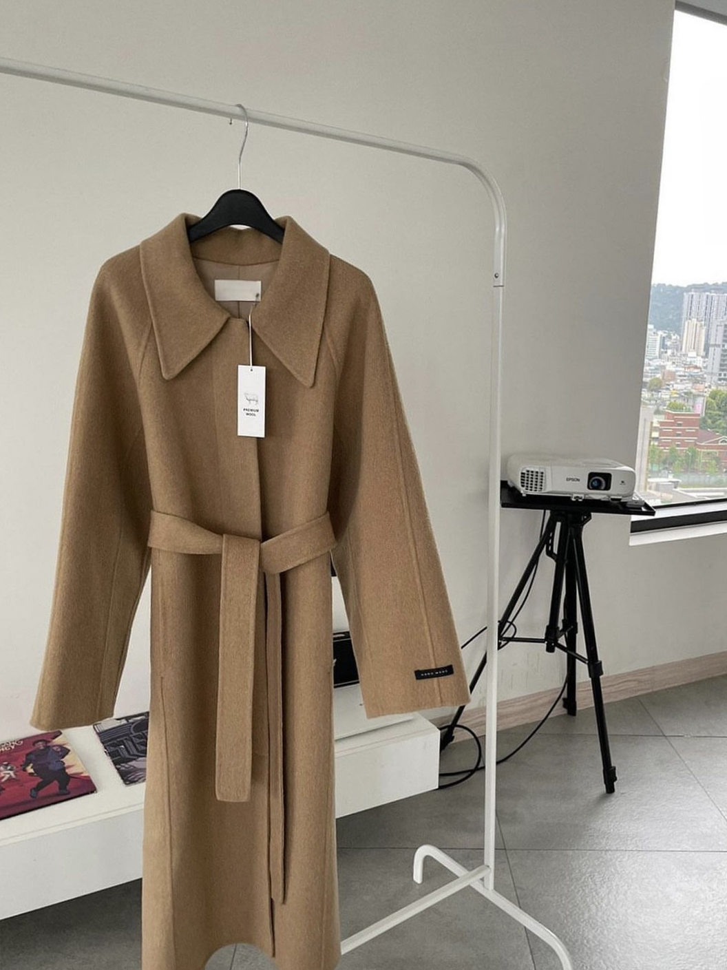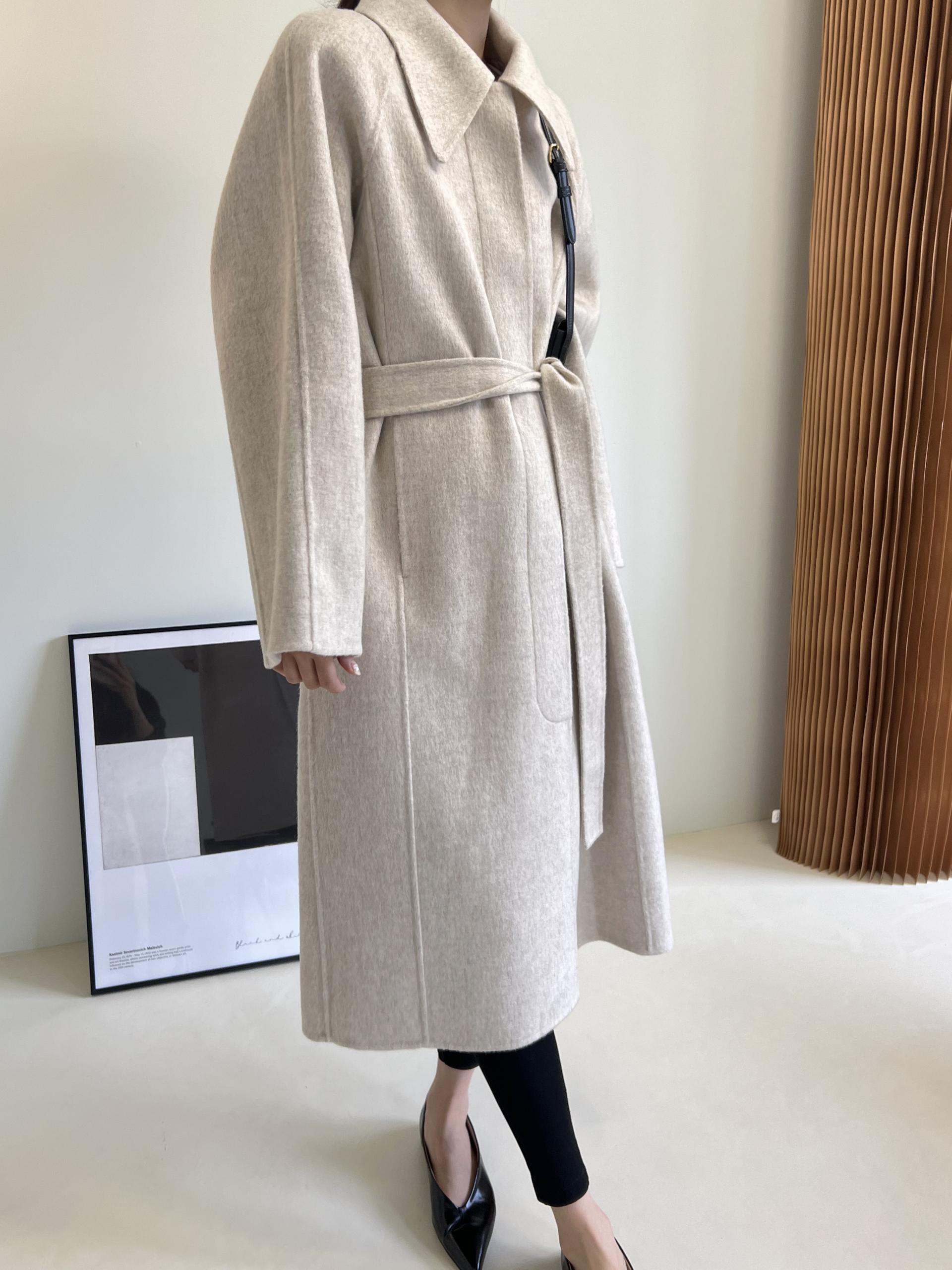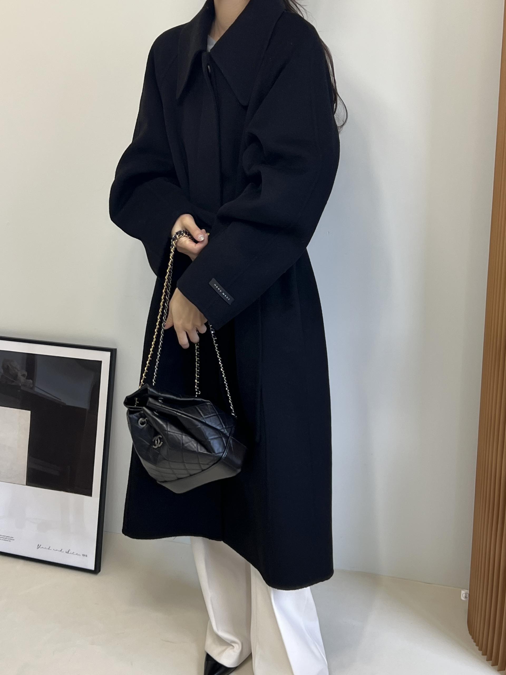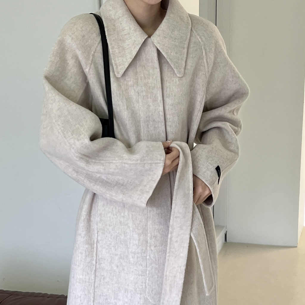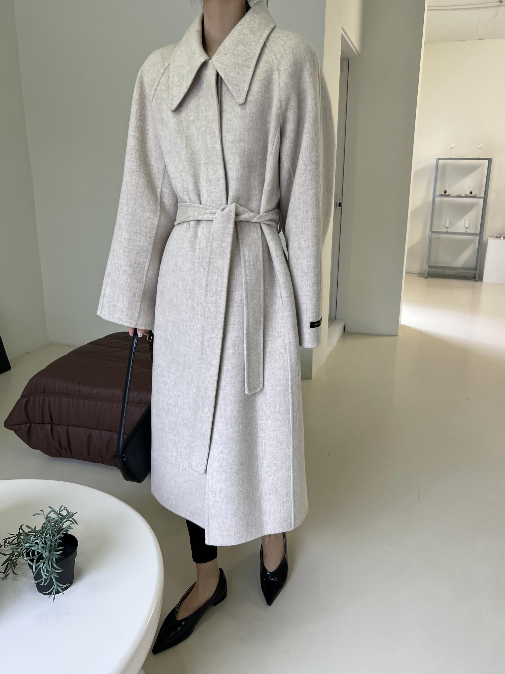 훌륭한 소재감의 프리미엄 울 90 핸드메이드 롱 코트입니다.