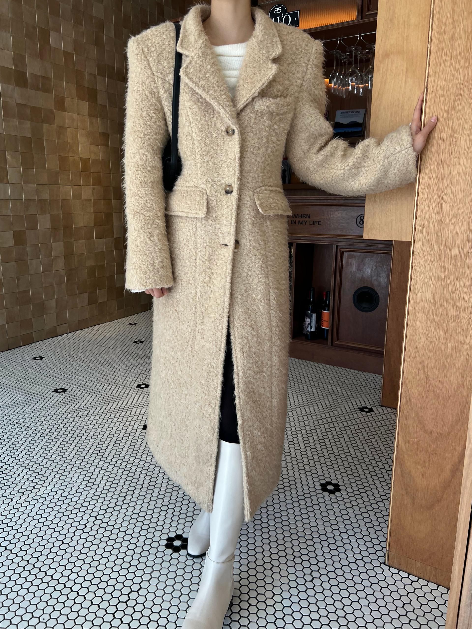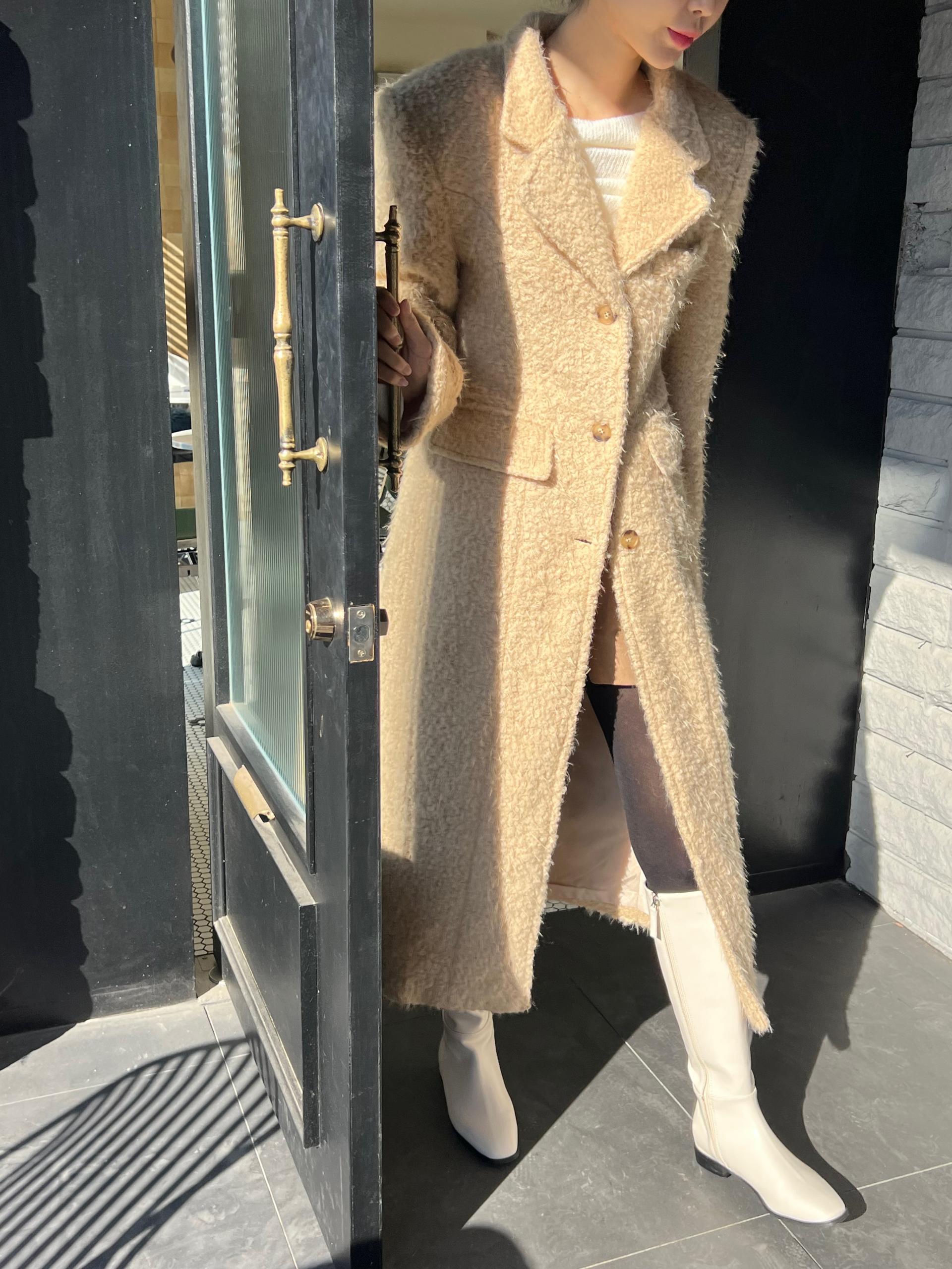 울 60의 부클 원단으로 한겨울에도 아주 따뜻하게 착용 가능합니다. 두께감이 있지만 라인이 잡혀 있어 전혀 부한 느낌 없이 착용할 수 있어 좋았고, 굉장히 클래식한 디자인으로 기본 티에 데님만 매치하셔도 세련되고 도시적인 스타일을 연출하실 수 있을 거예요.