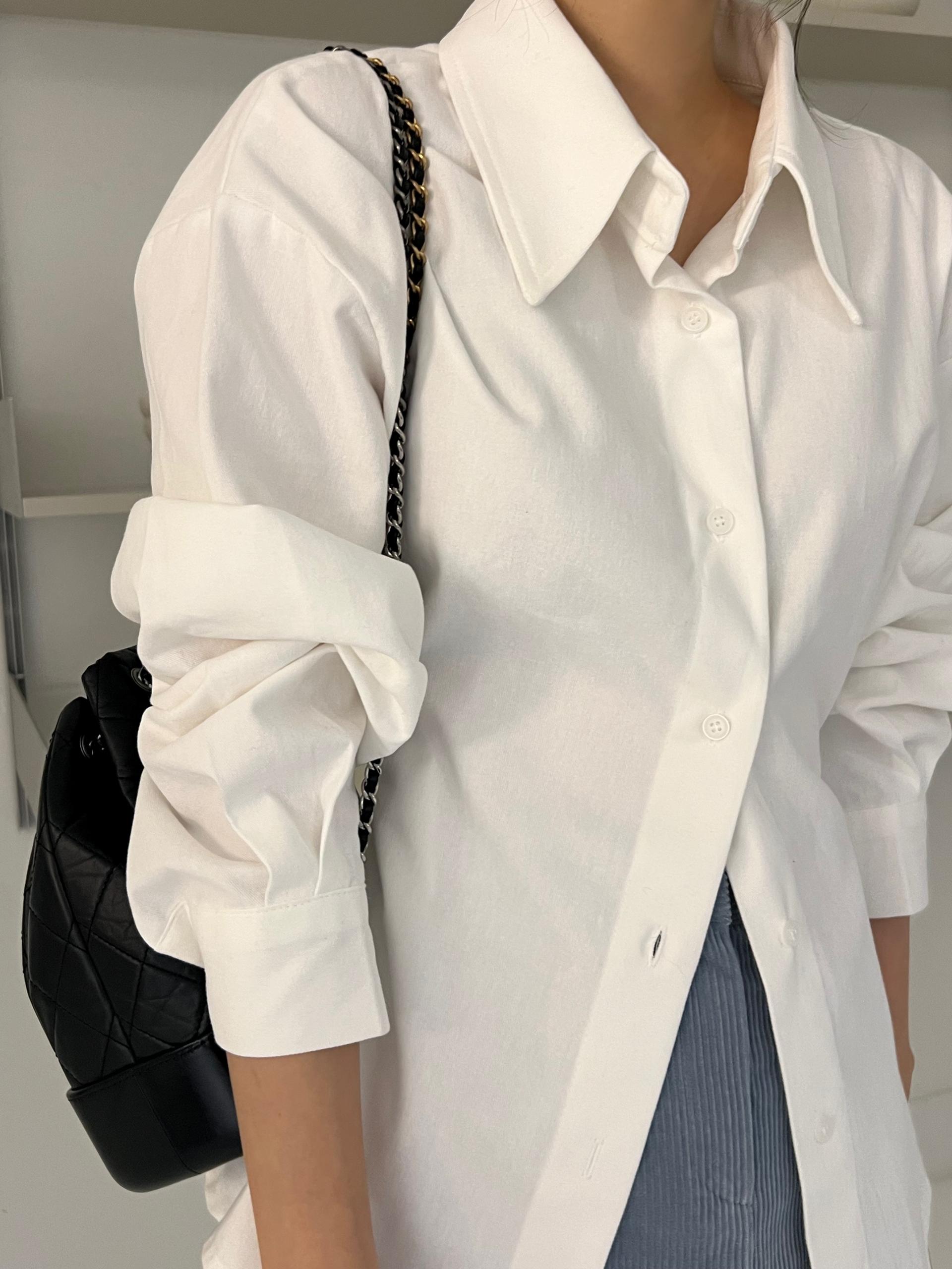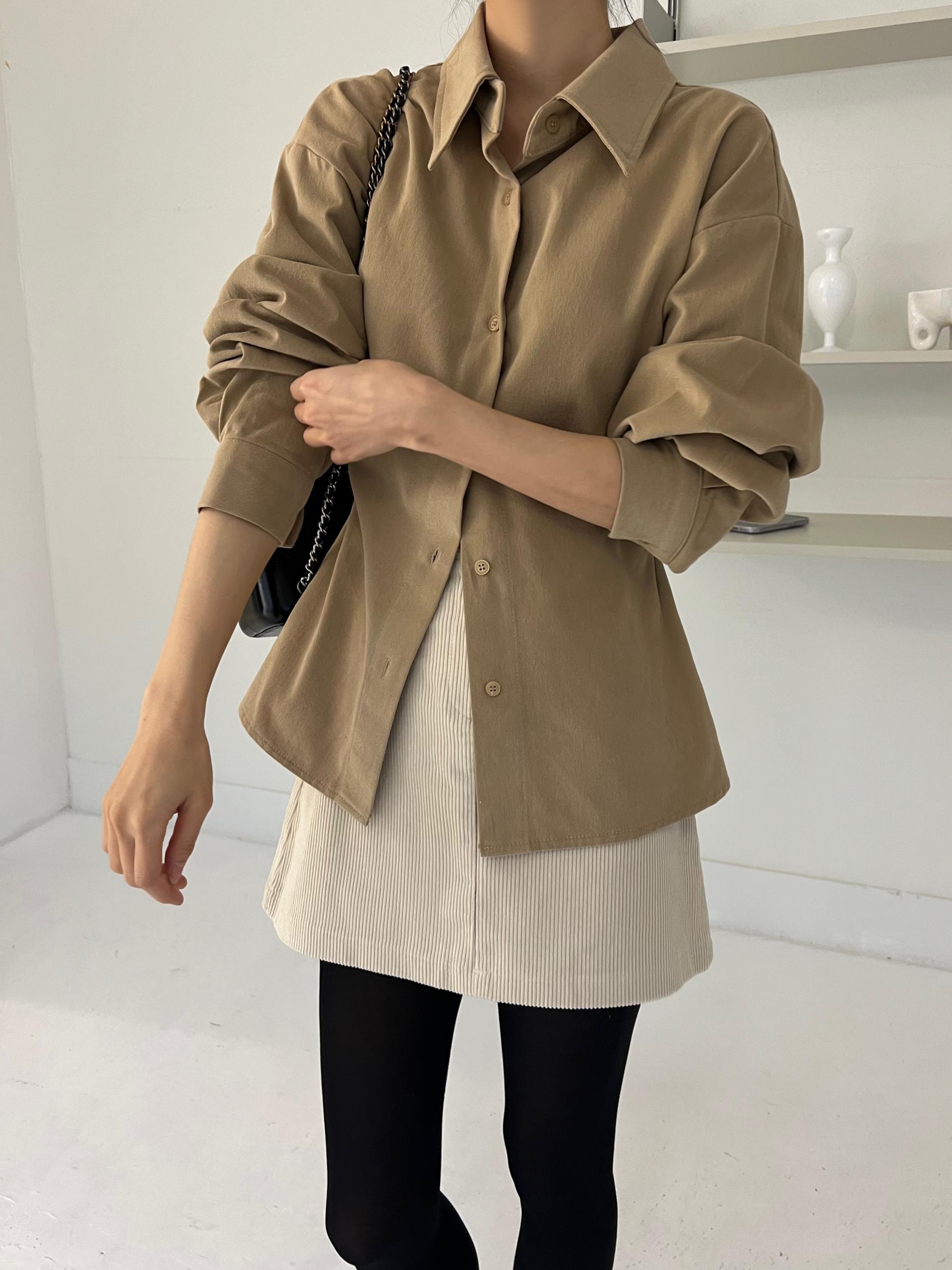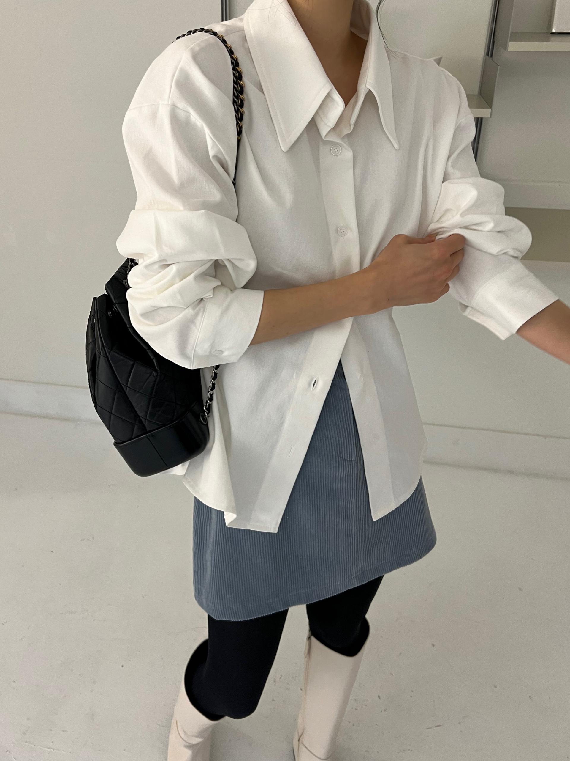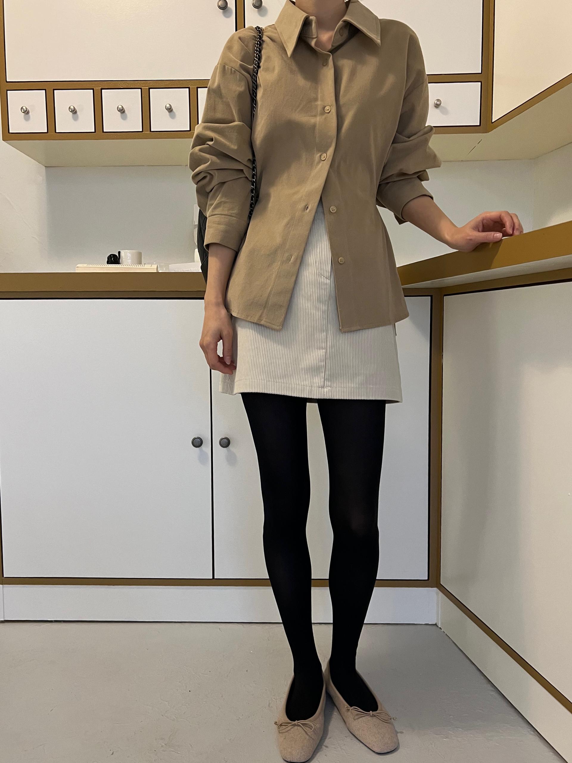 두께감이 있어 핏이 더 예쁘게 잡히고, 비침이 거의 없는 장점이 있습니다. 기모 가공이 된 듯 도톰한 소재로 겨울 내내 착용하기 좋아 데일리 셔츠로 추천드려요.