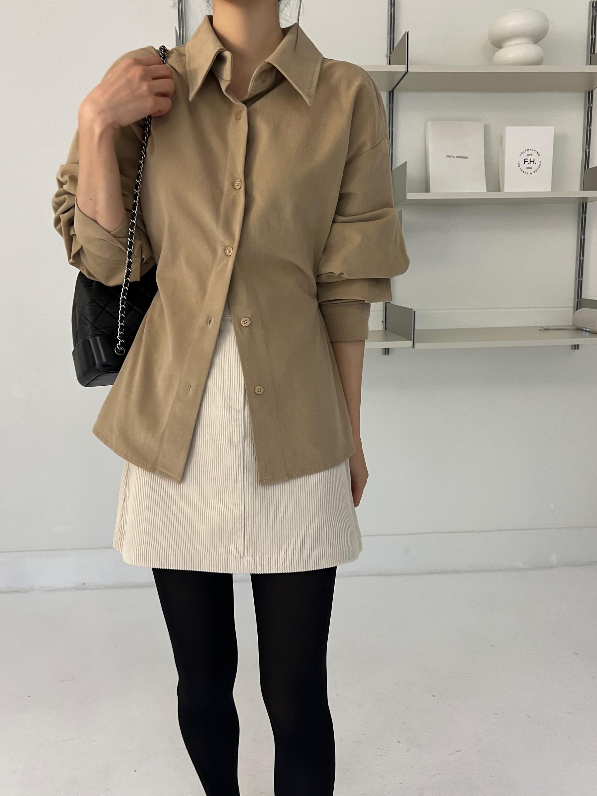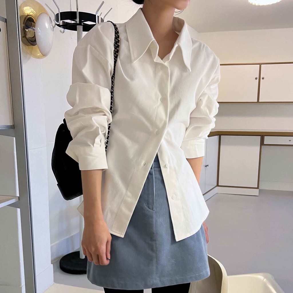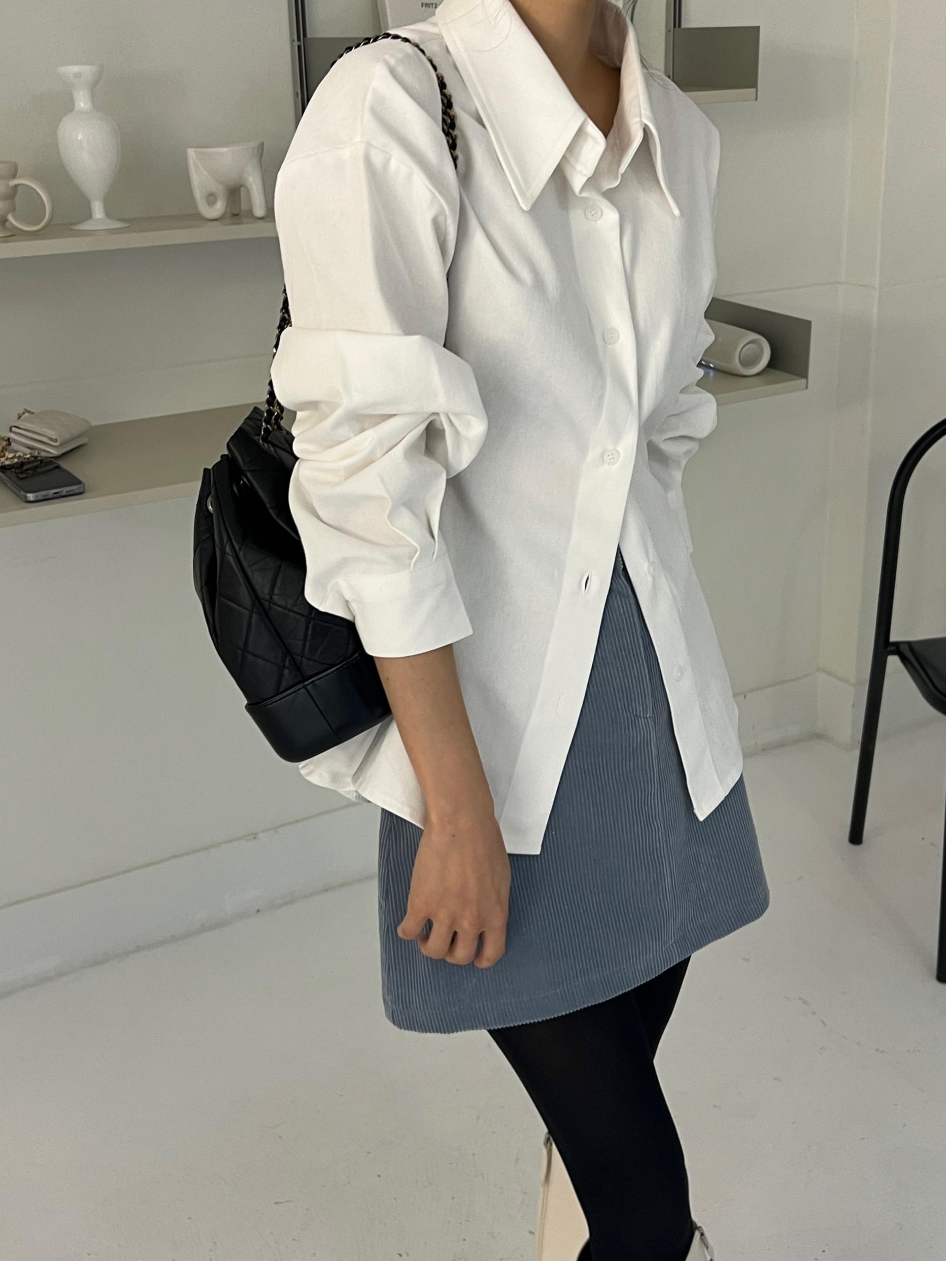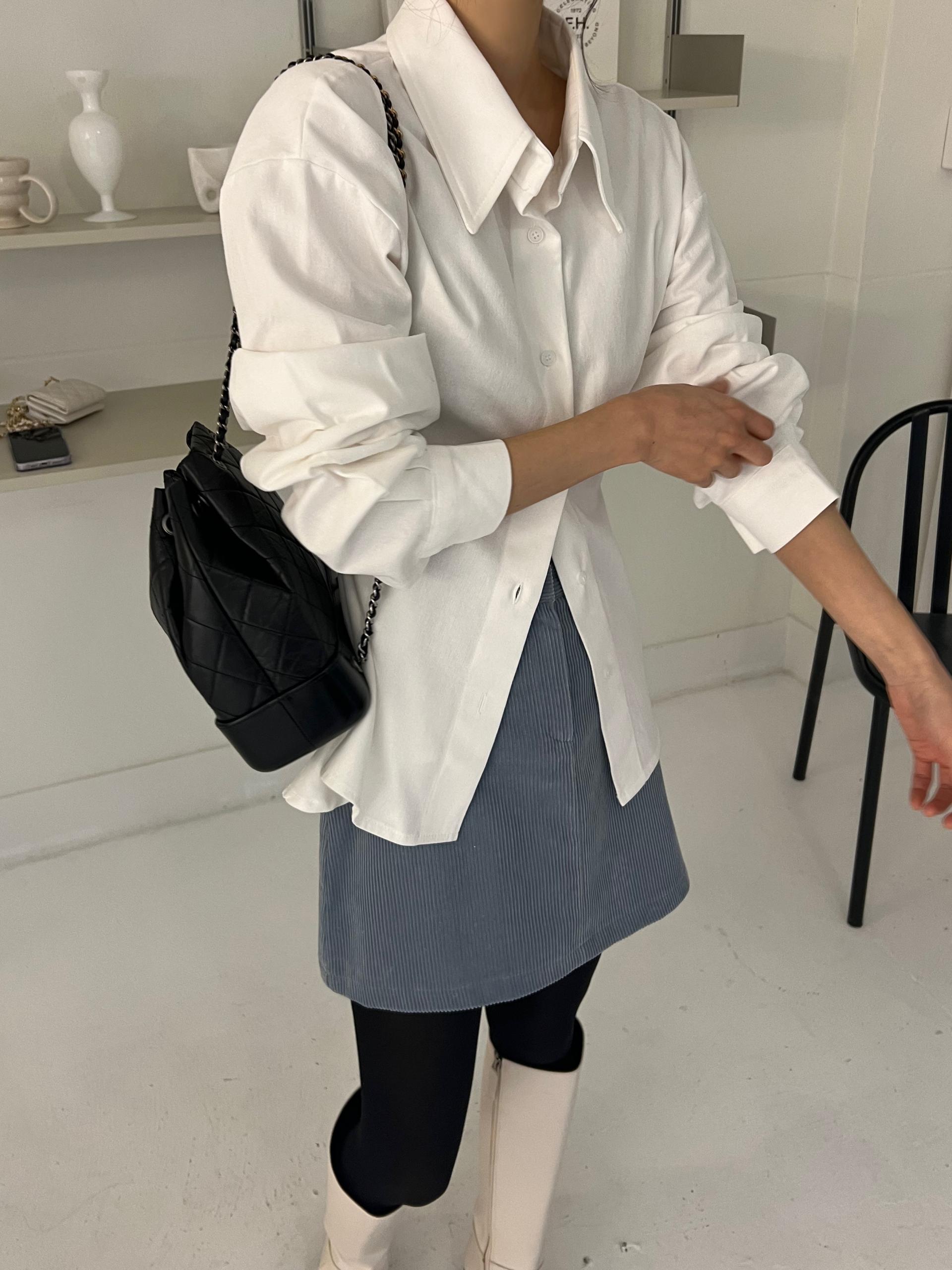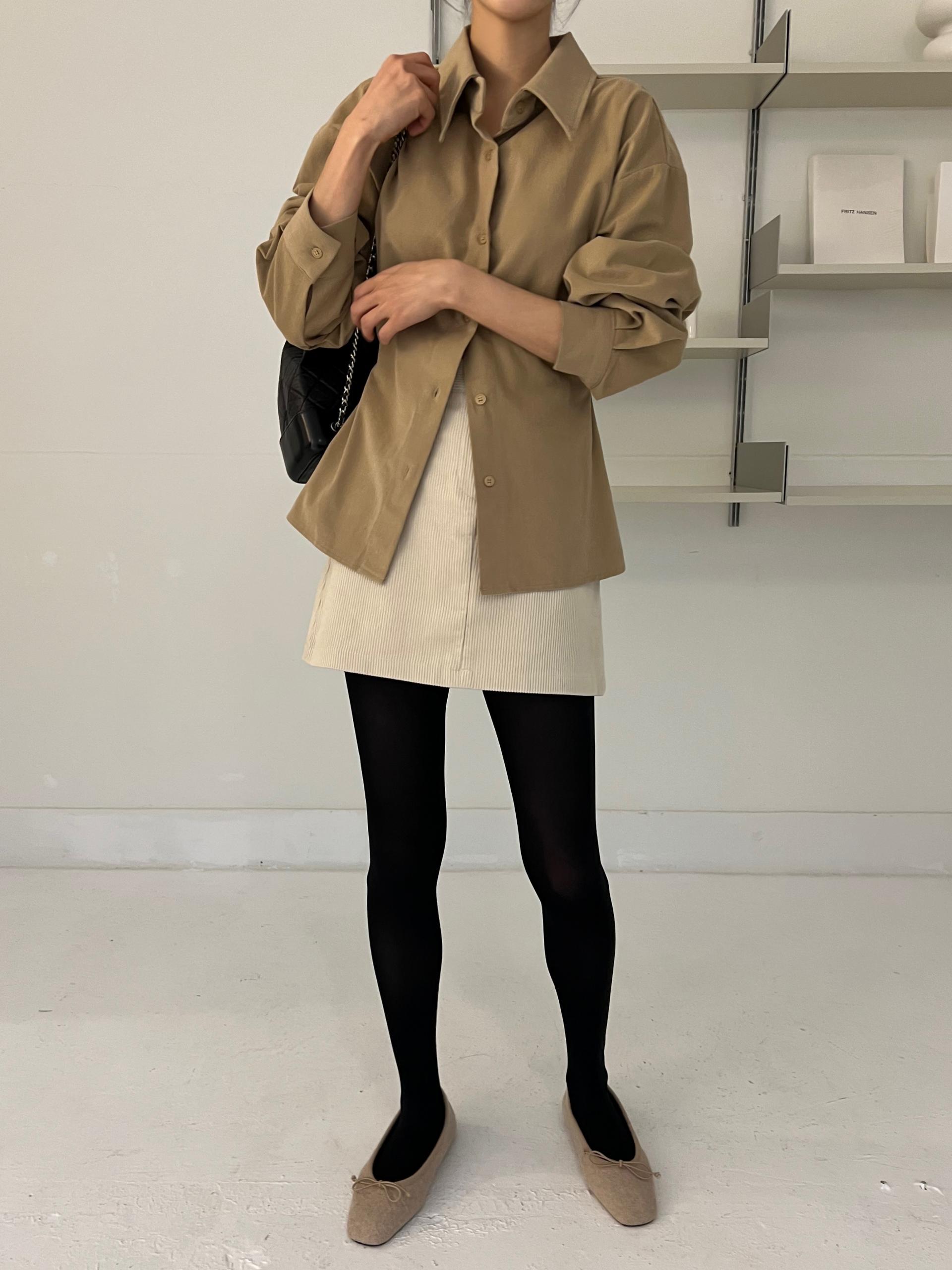 두께감이 있어 핏이 더 예쁘게 잡히고, 비침이 거의 없는 장점이 있습니다. 기모 가공이 된 듯 도톰한 소재로 겨울 내내 착용하기 좋아 데일리 셔츠로 추천드려요.