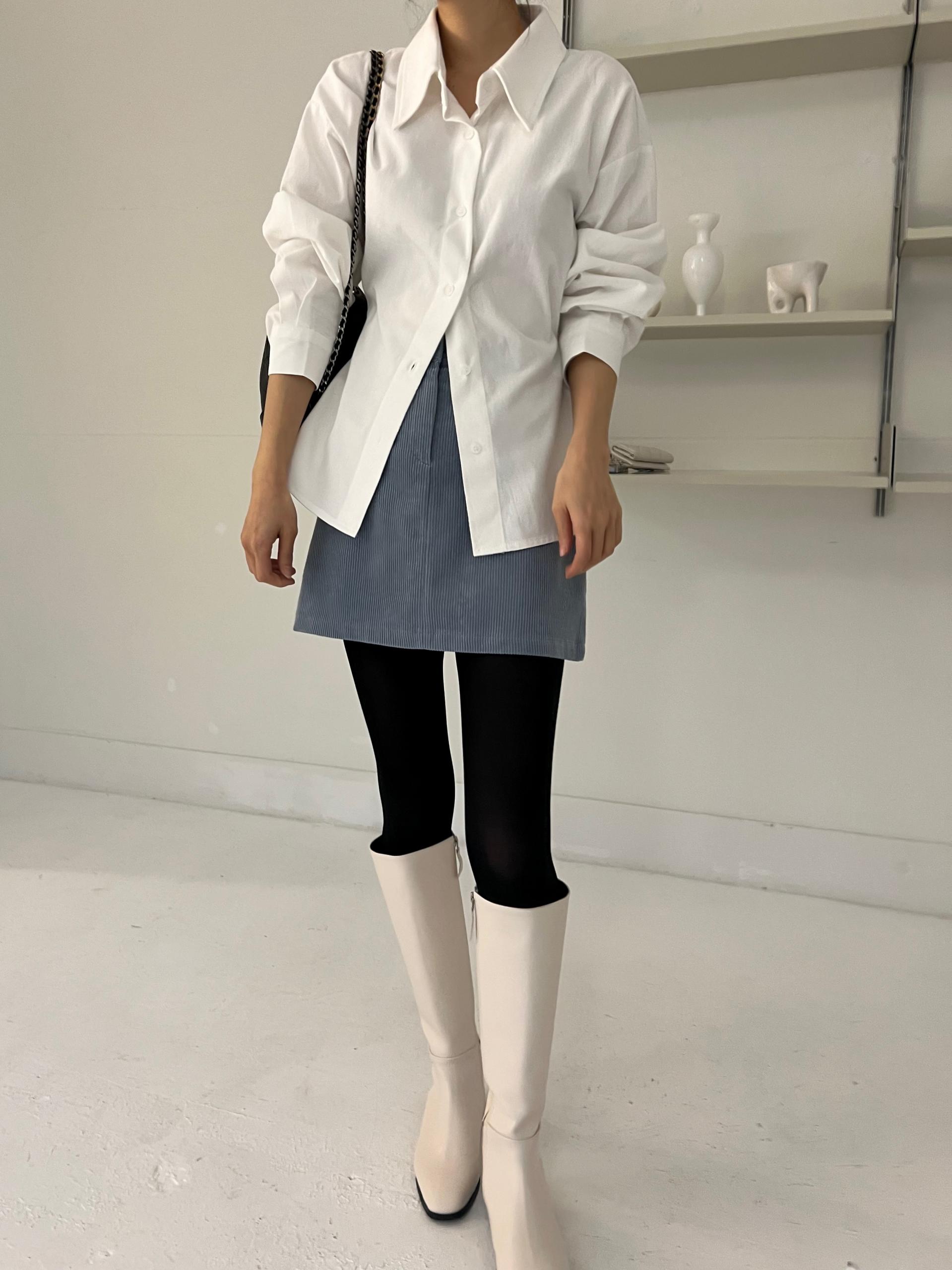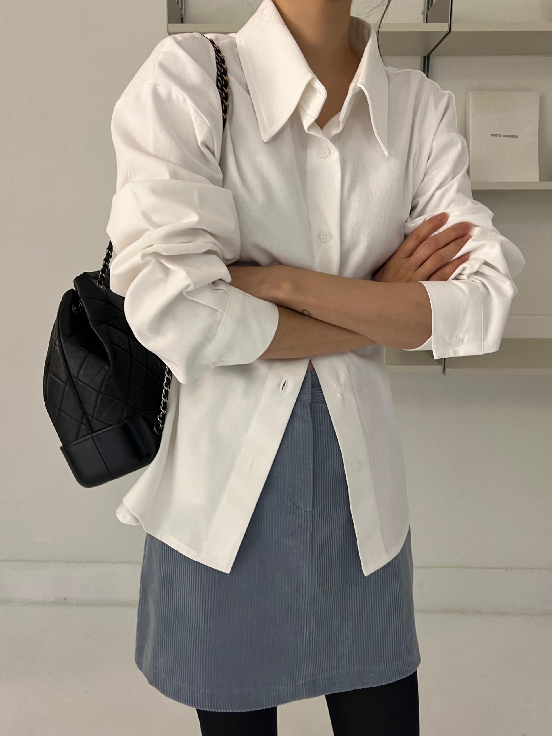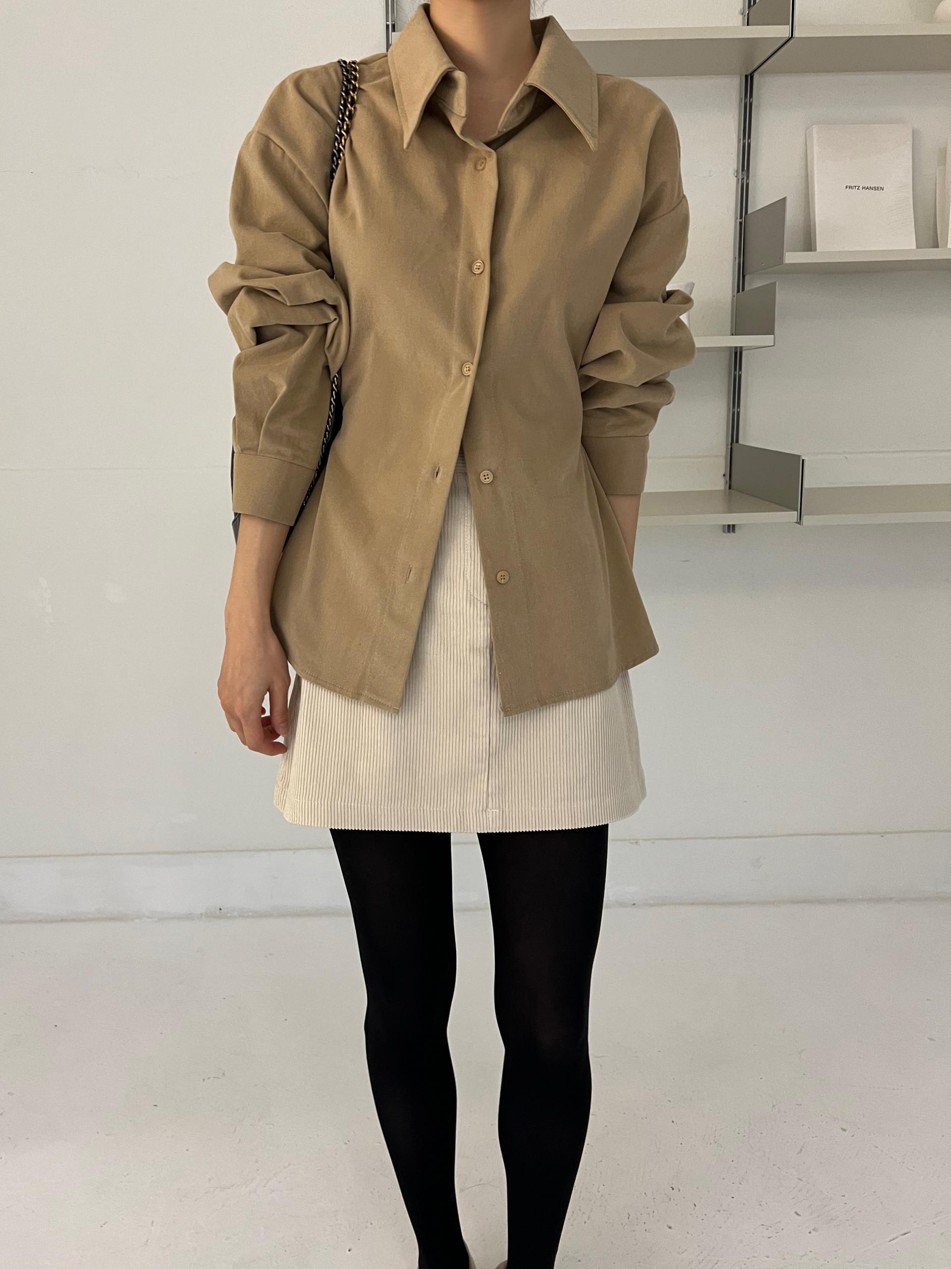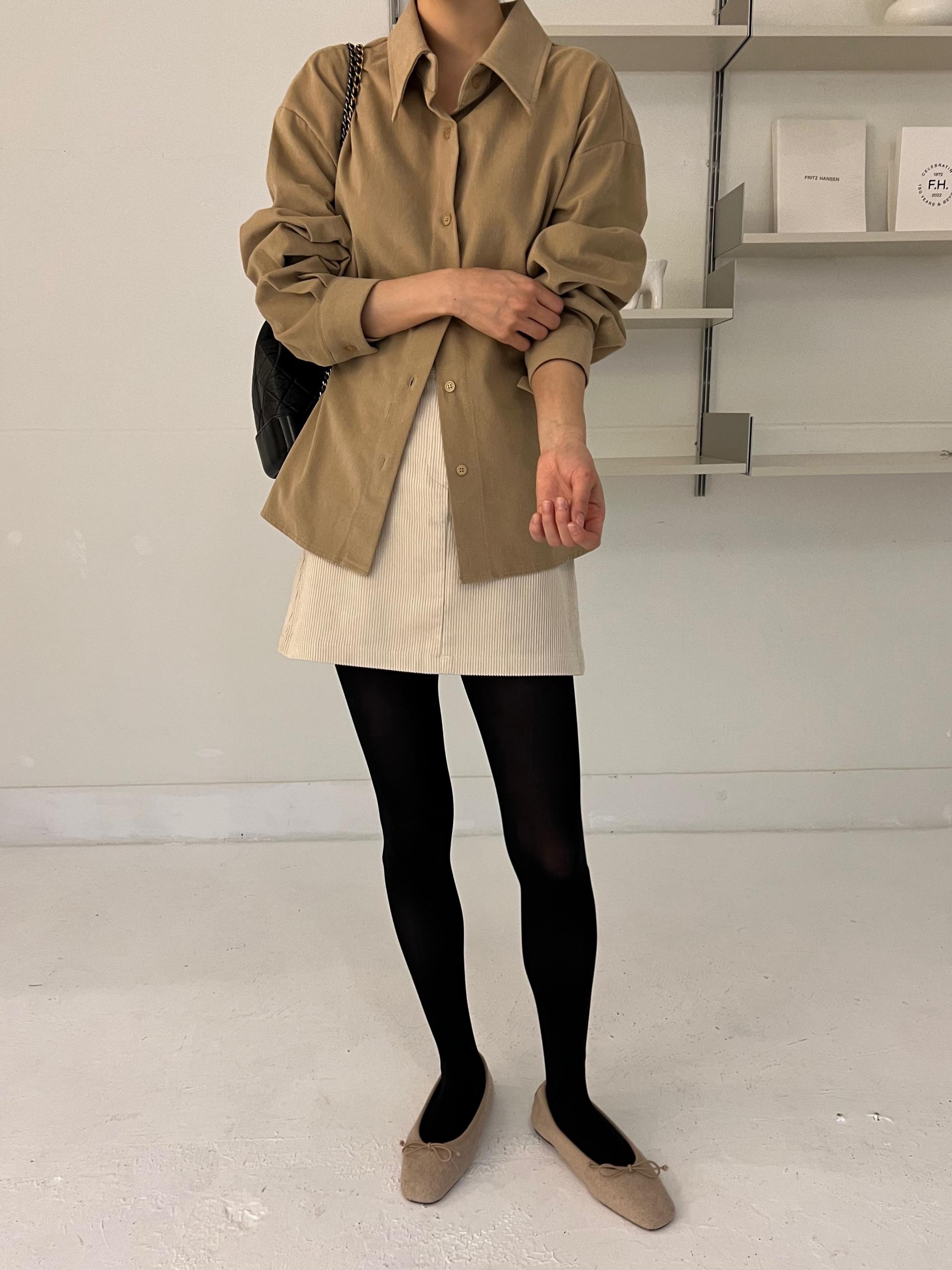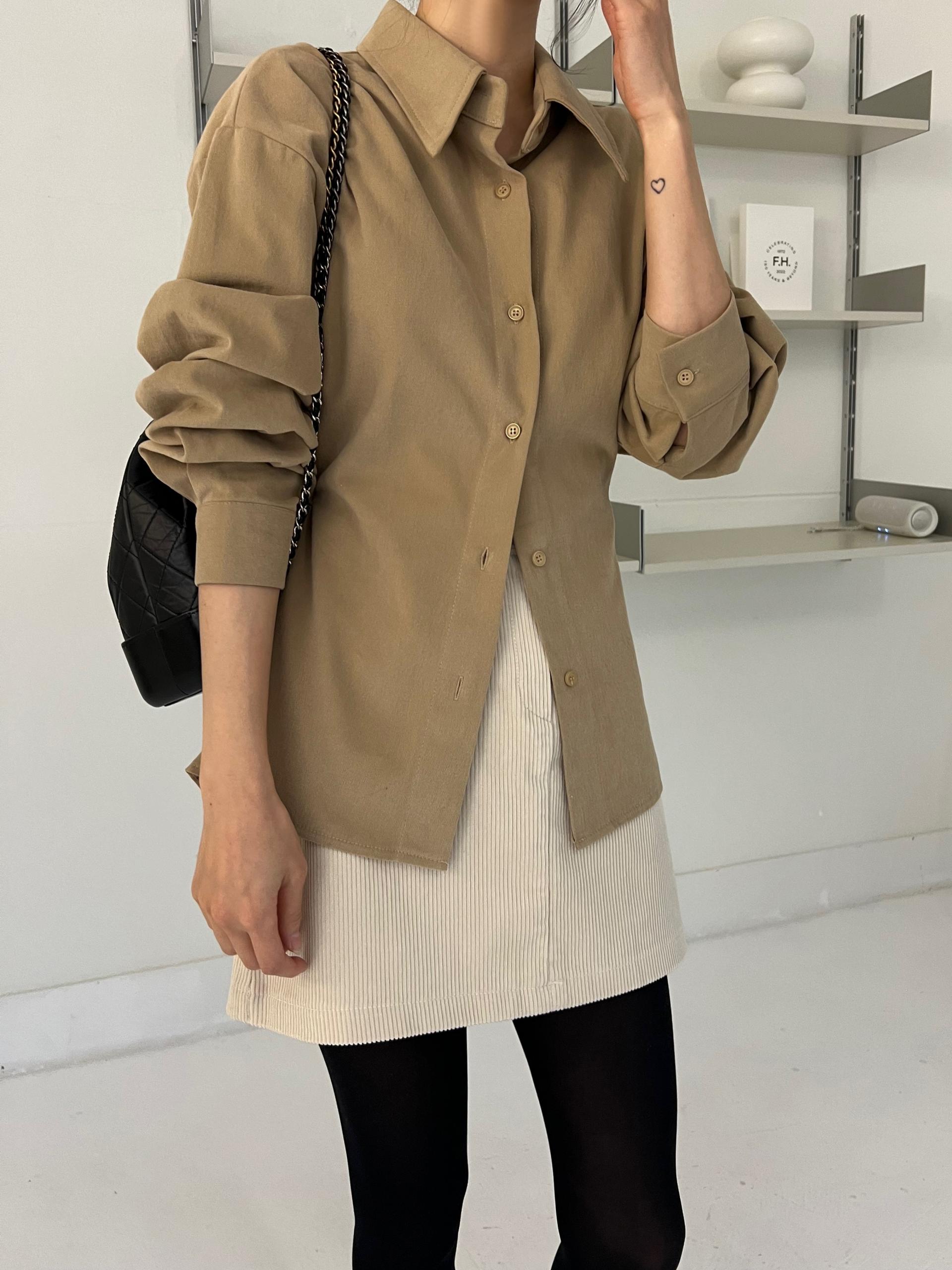 두께감이 있어 핏이 더 예쁘게 잡히고, 비침이 거의 없는 장점이 있습니다. 기모 가공이 된 듯 도톰한 소재로 겨울 내내 착용하기 좋아 데일리 셔츠로 추천드려요.