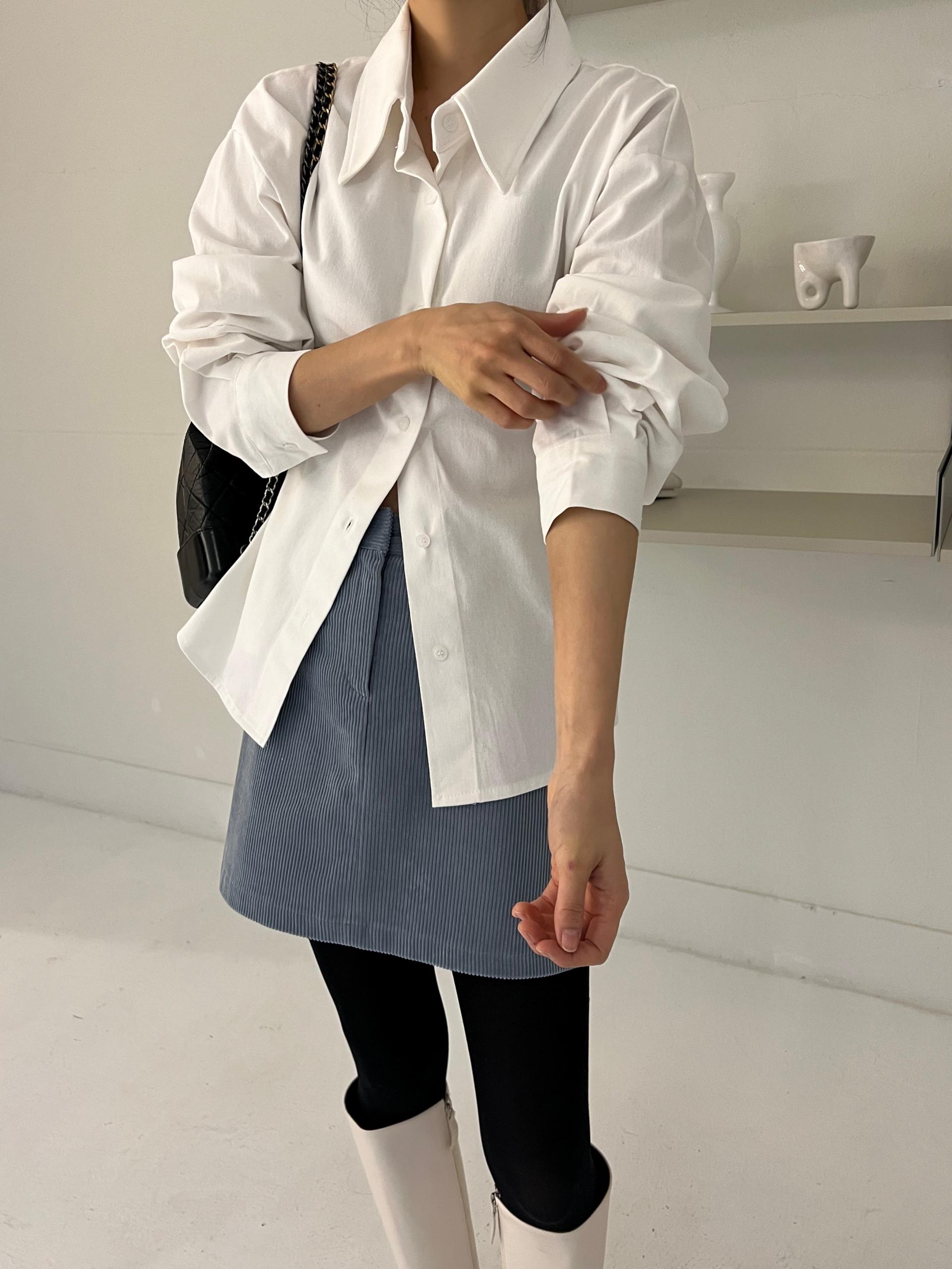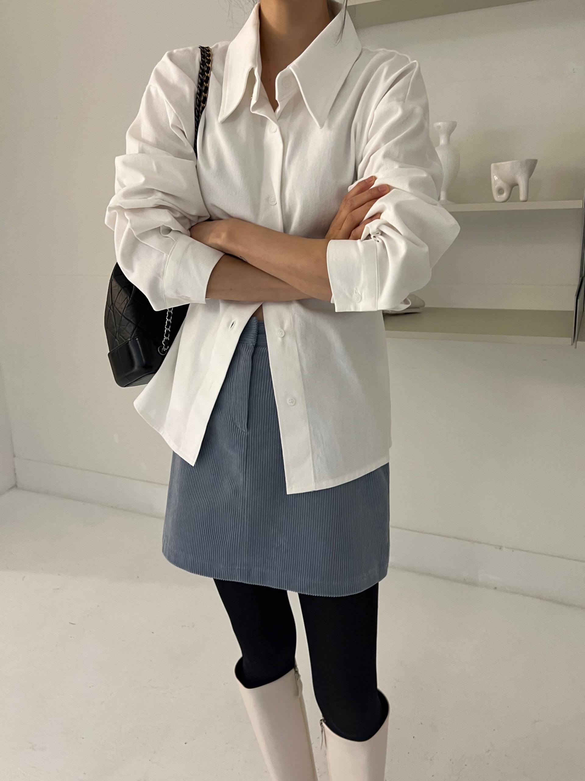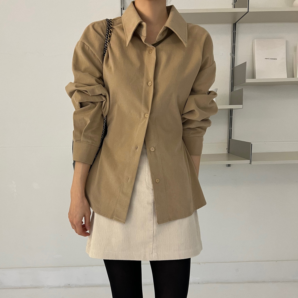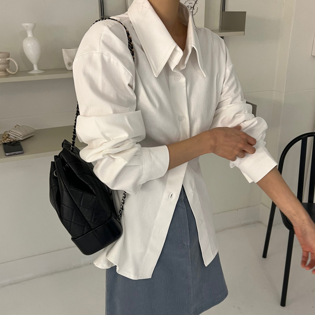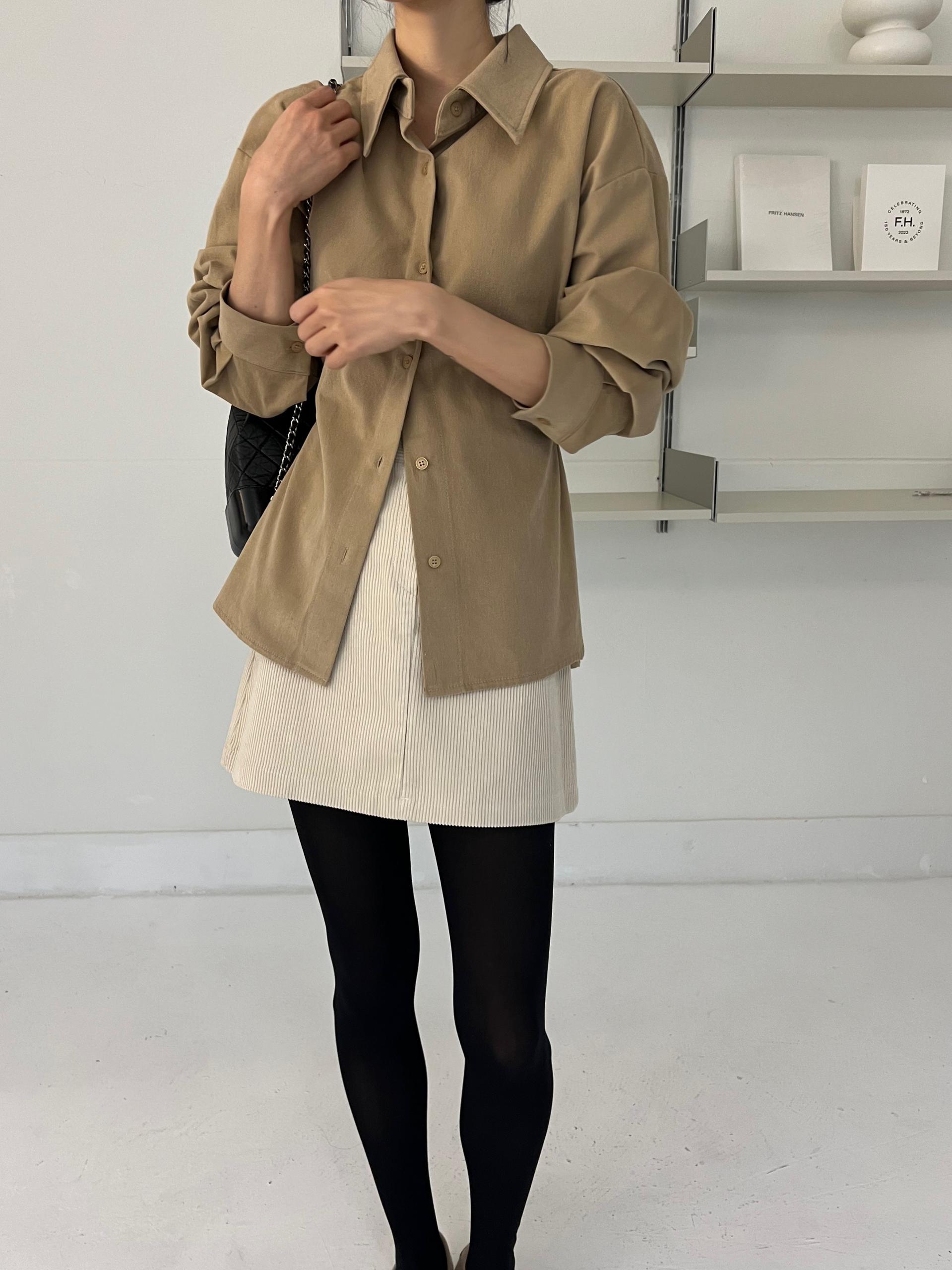 두께감이 있어 핏이 더 예쁘게 잡히고, 비침이 거의 없는 장점이 있습니다. 기모 가공이 된 듯 도톰한 소재로 겨울 내내 착용하기 좋아 데일리 셔츠로 추천드려요.