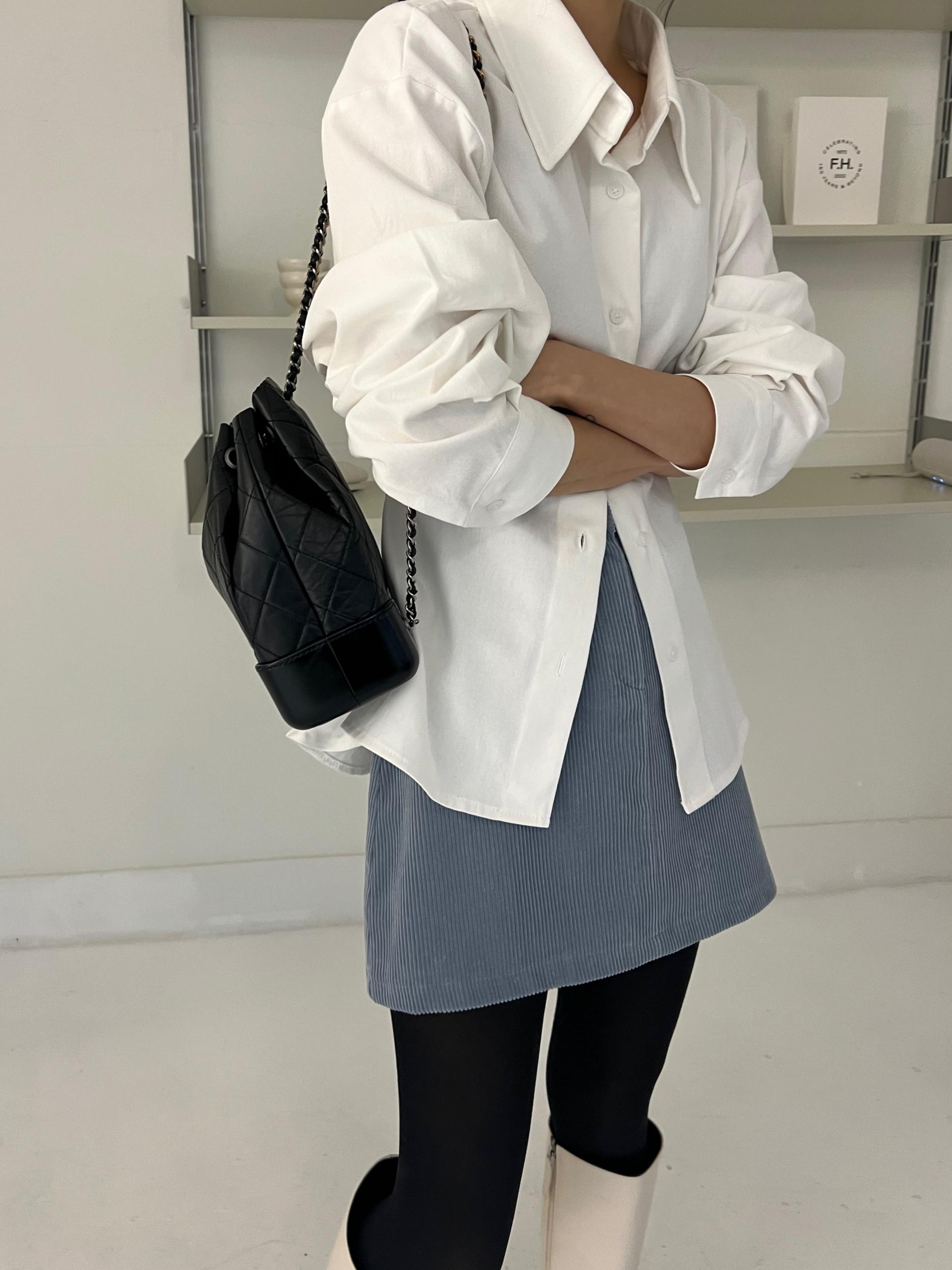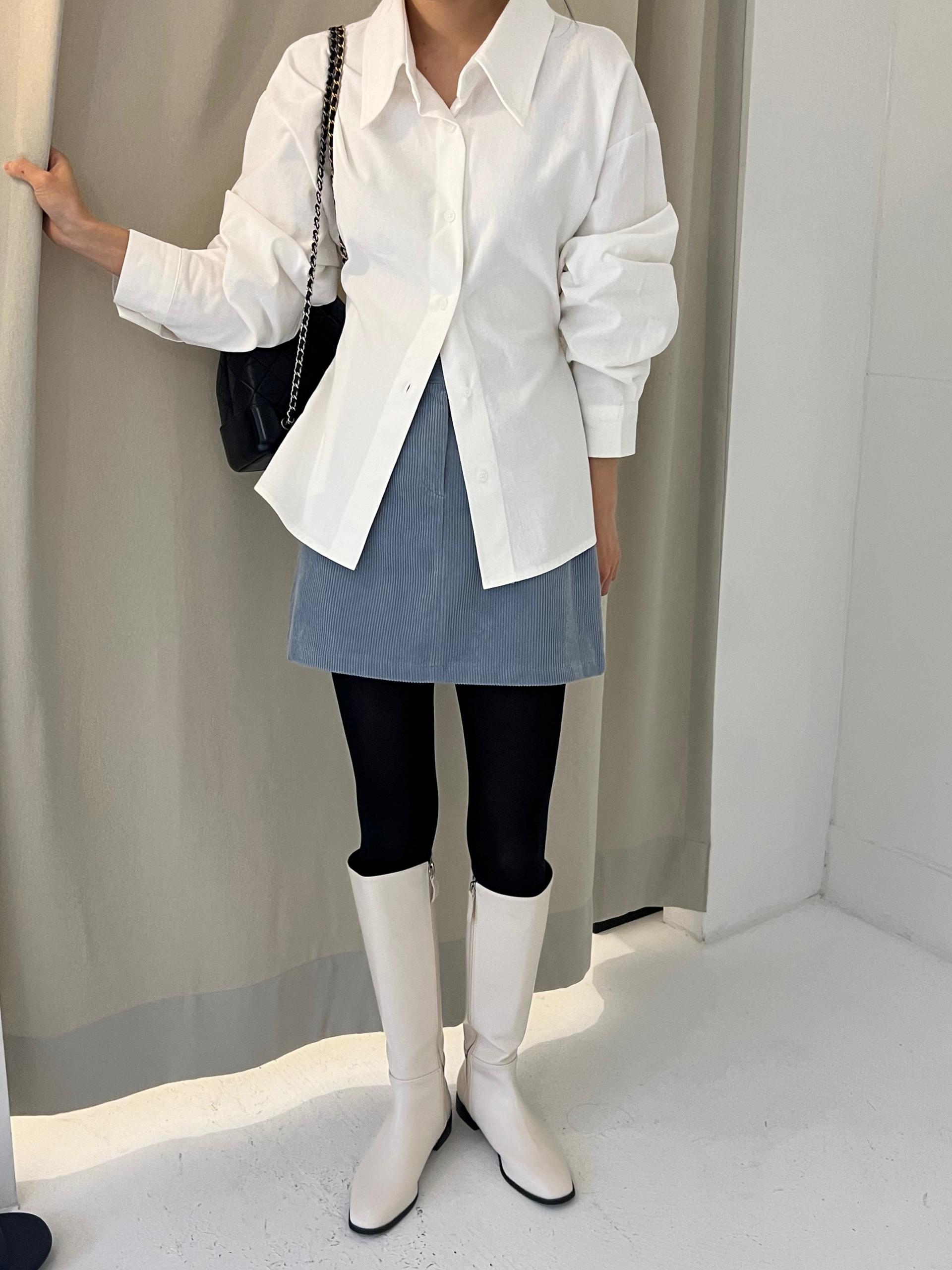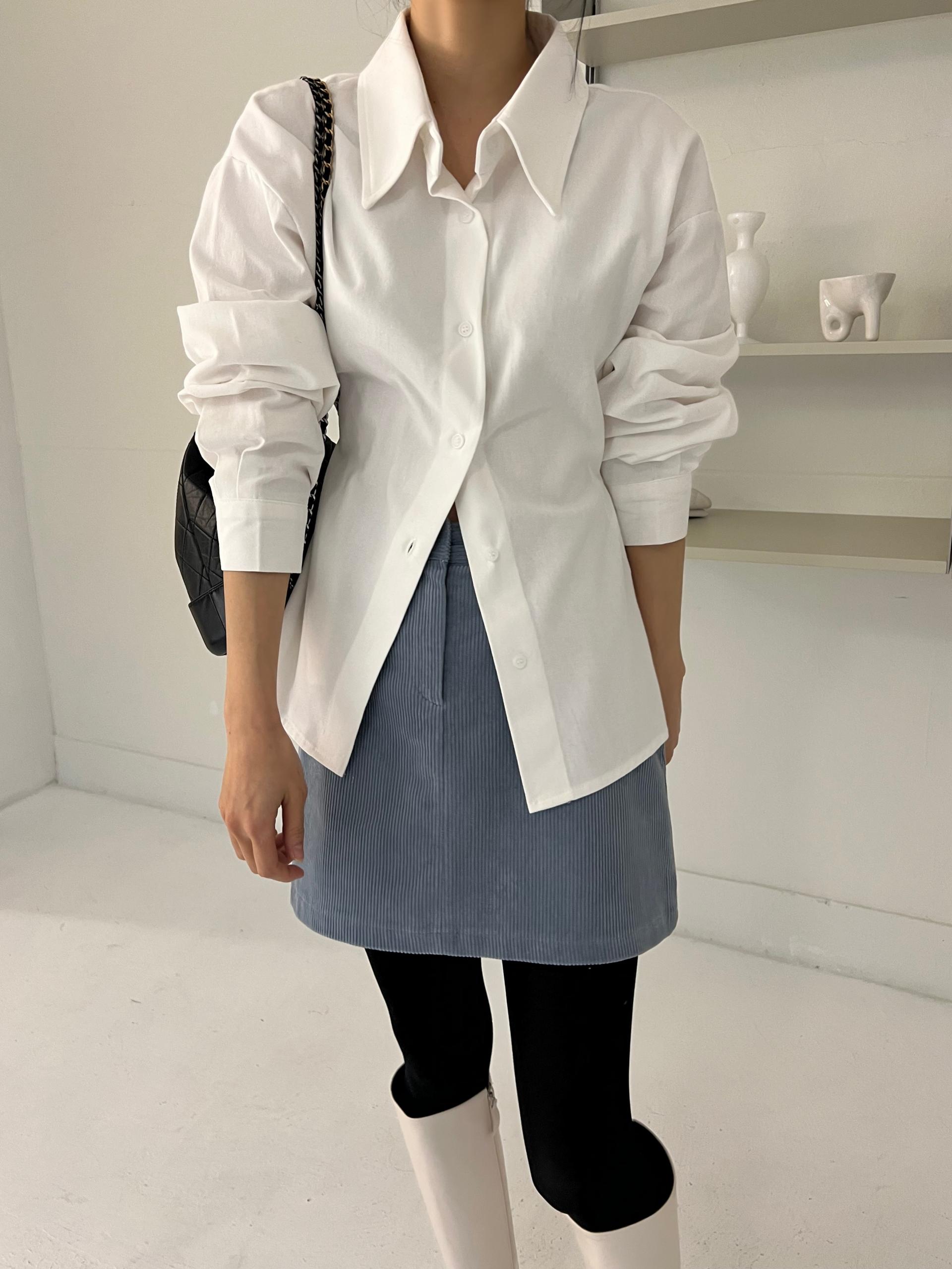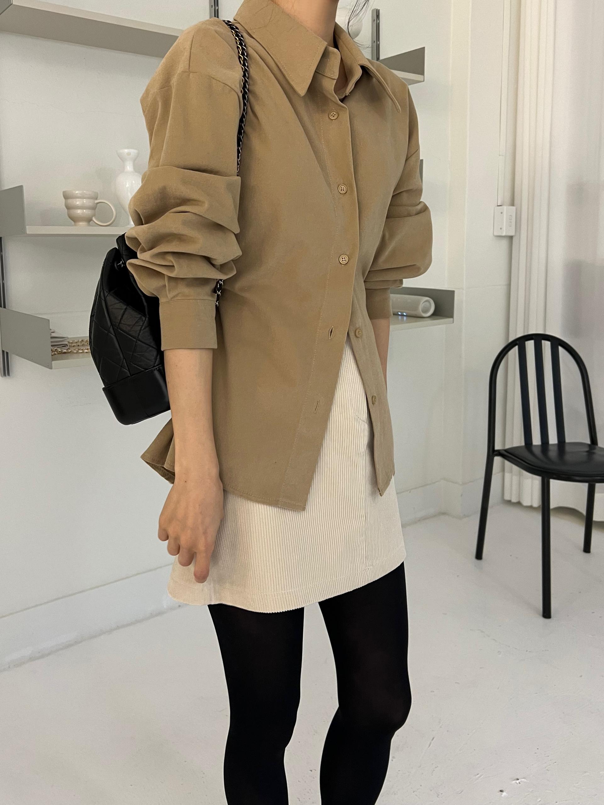 두께감이 있어 핏이 더 예쁘게 잡히고, 비침이 거의 없는 장점이 있습니다. 기모 가공이 된 듯 도톰한 소재로 겨울 내내 착용하기 좋아 데일리 셔츠로 추천드려요.