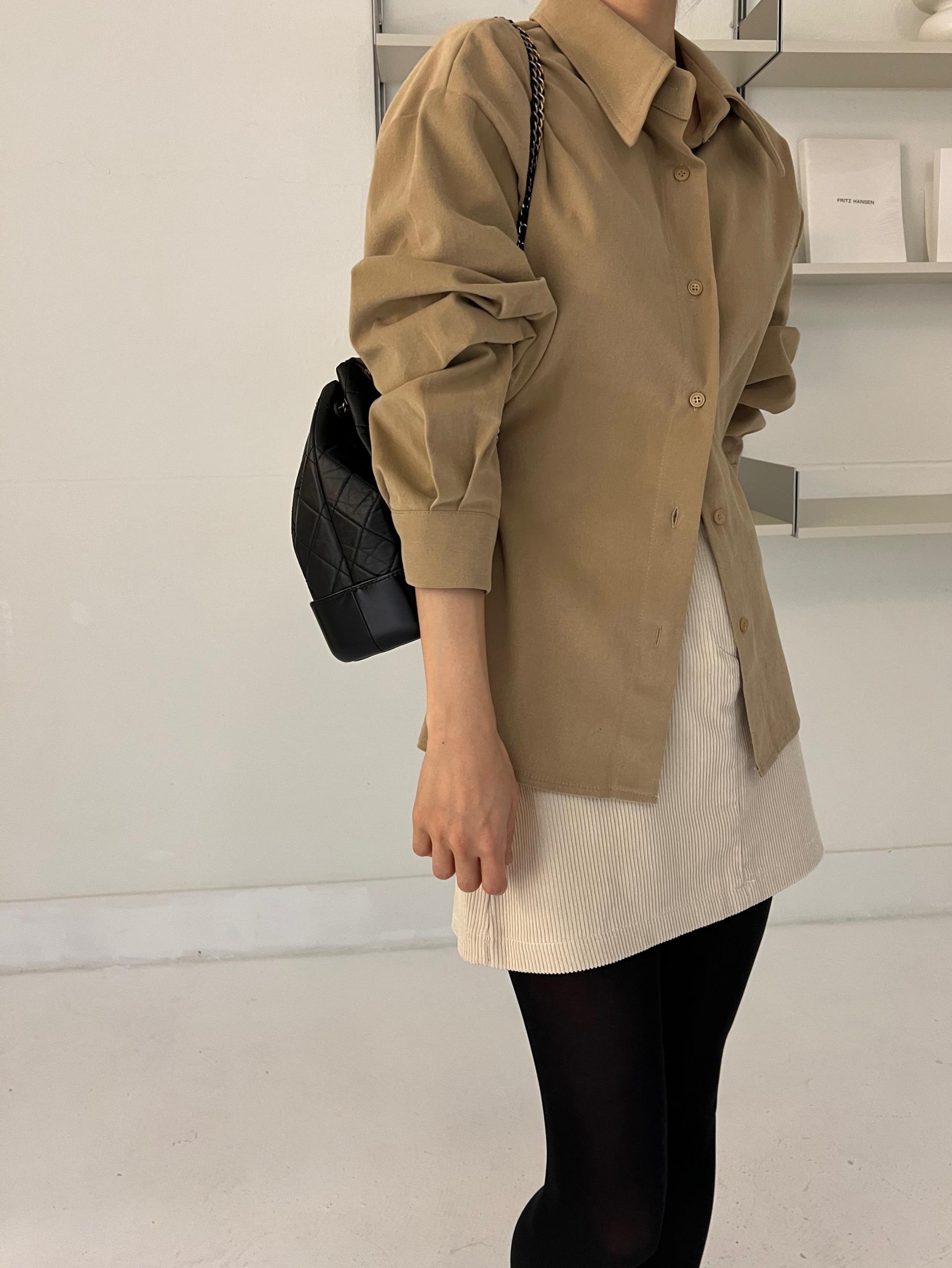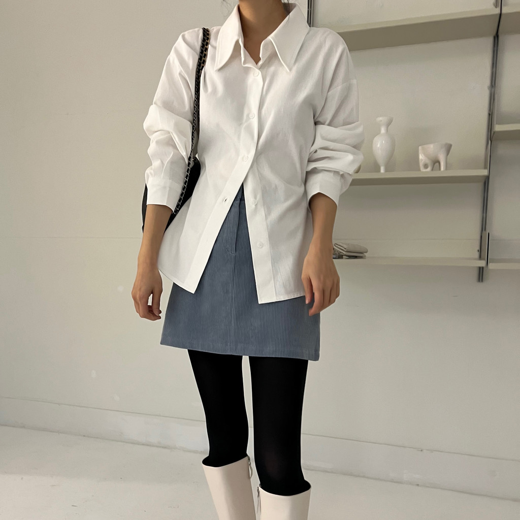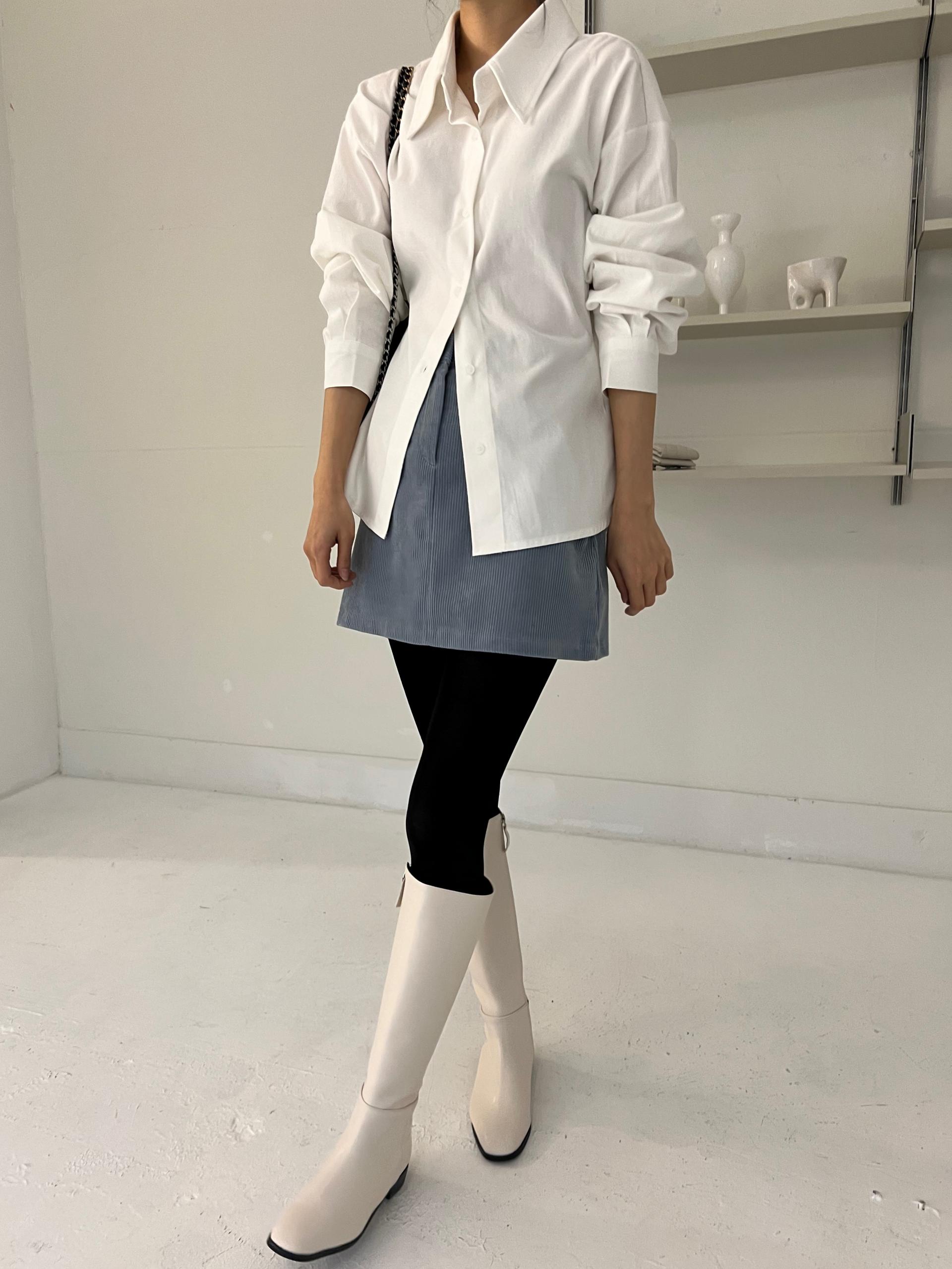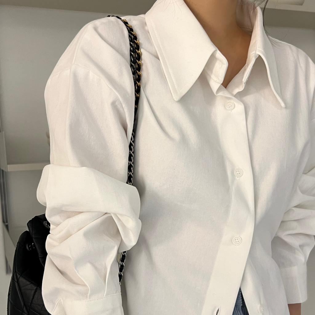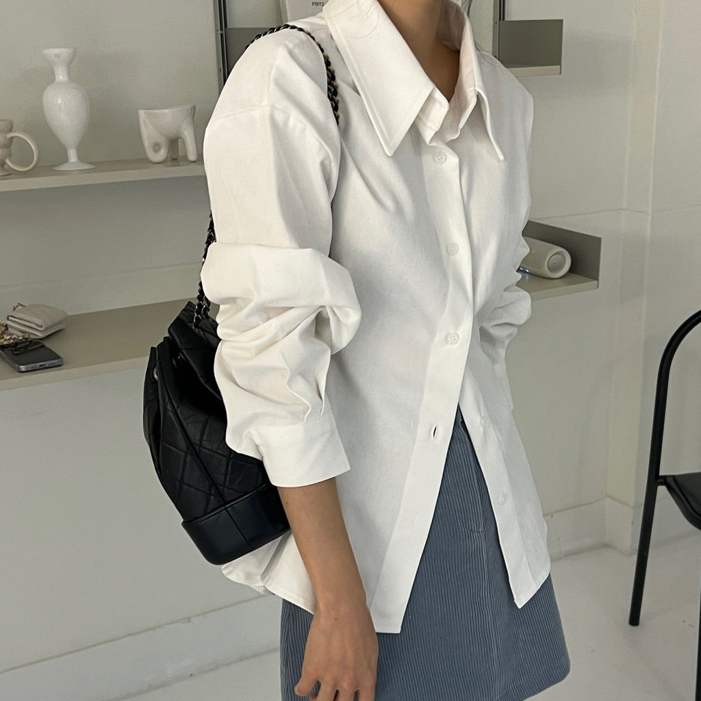 두께감이 있어 핏이 더 예쁘게 잡히고, 비침이 거의 없는 장점이 있습니다. 기모 가공이 된 듯 도톰한 소재로 겨울 내내 착용하기 좋아 데일리 셔츠로 추천드려요.