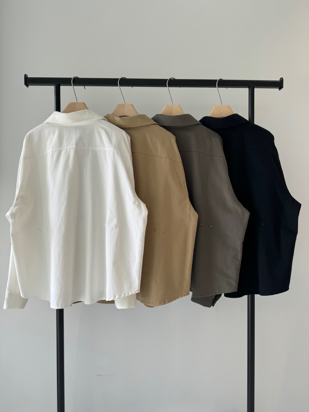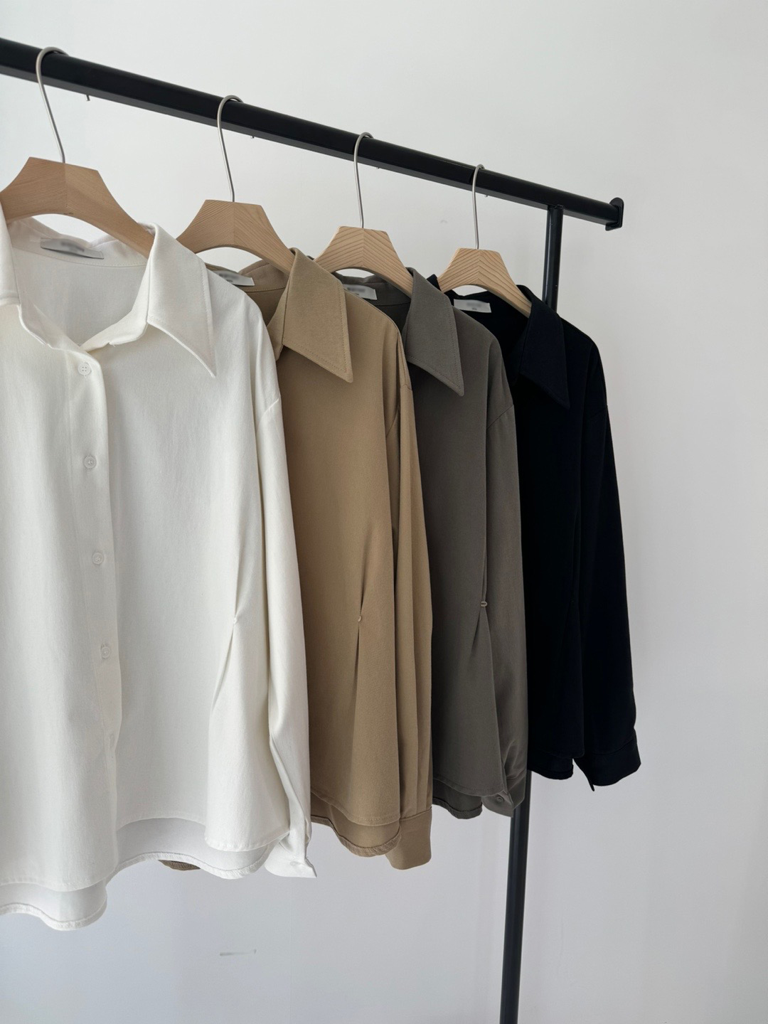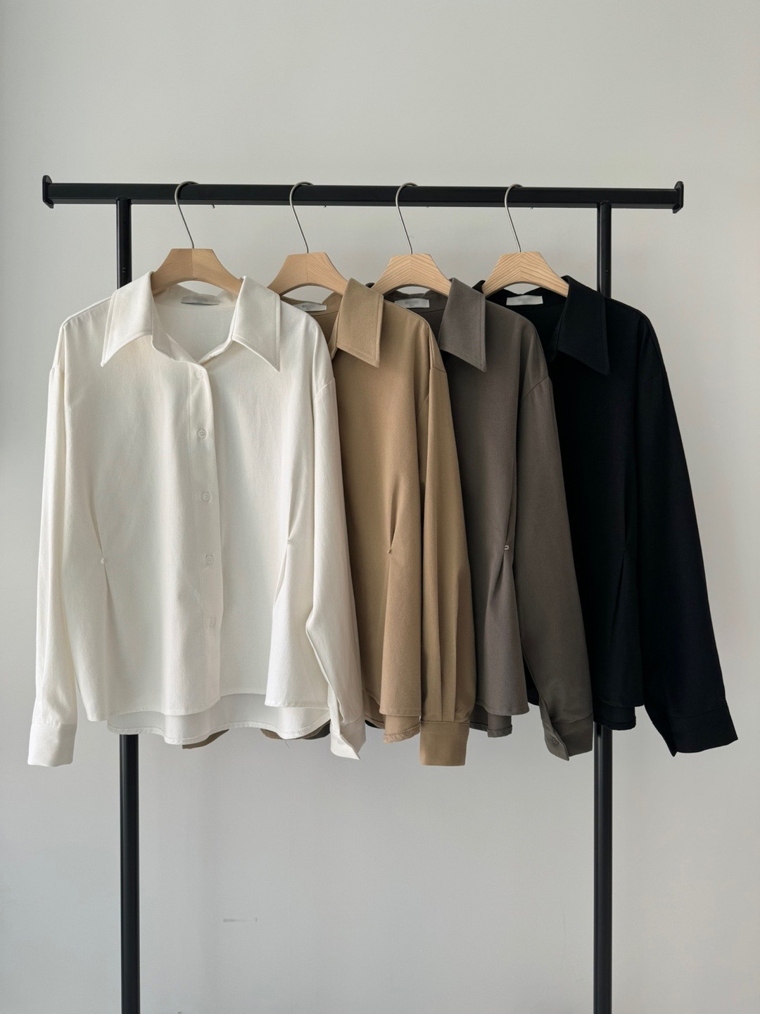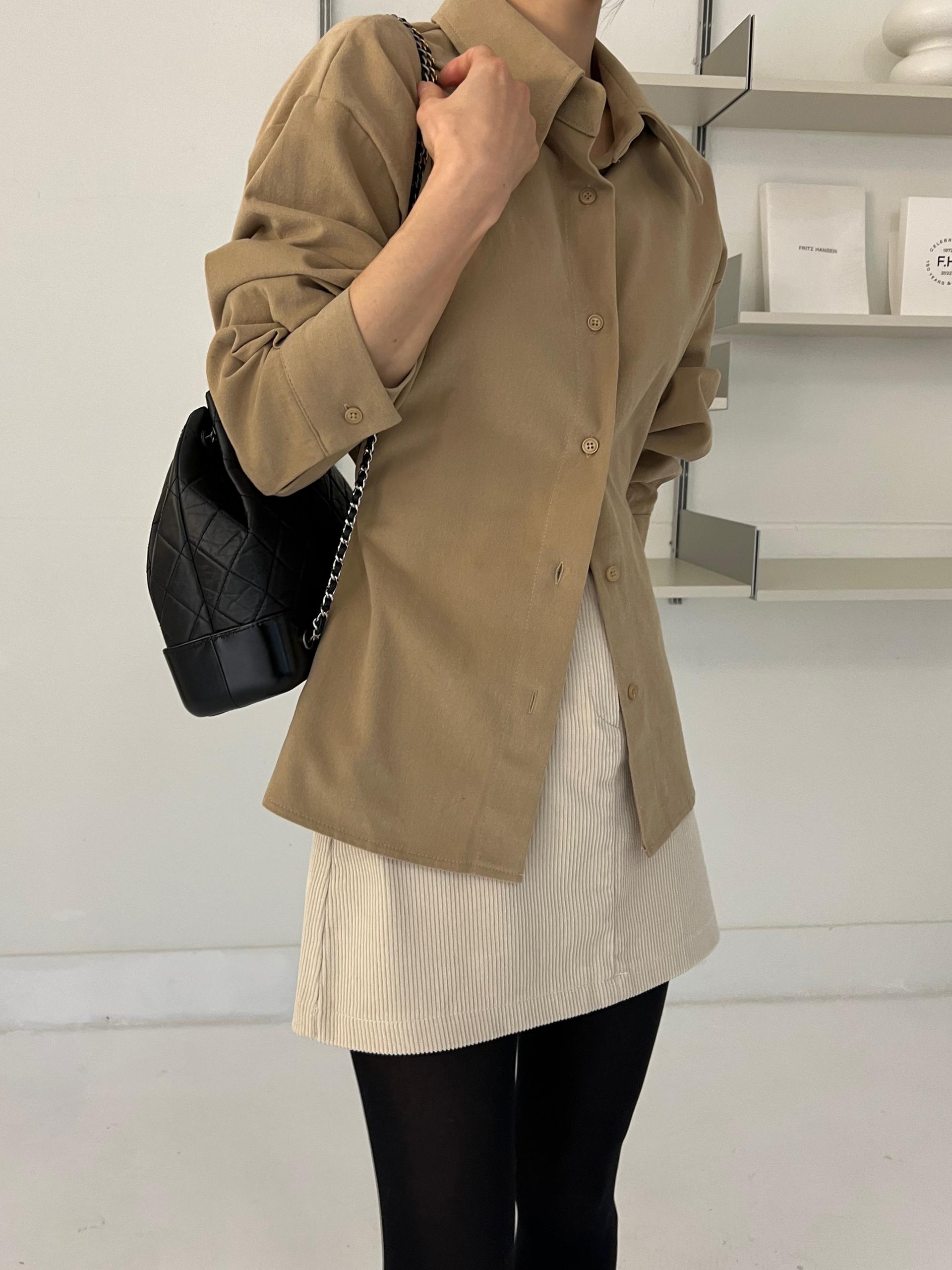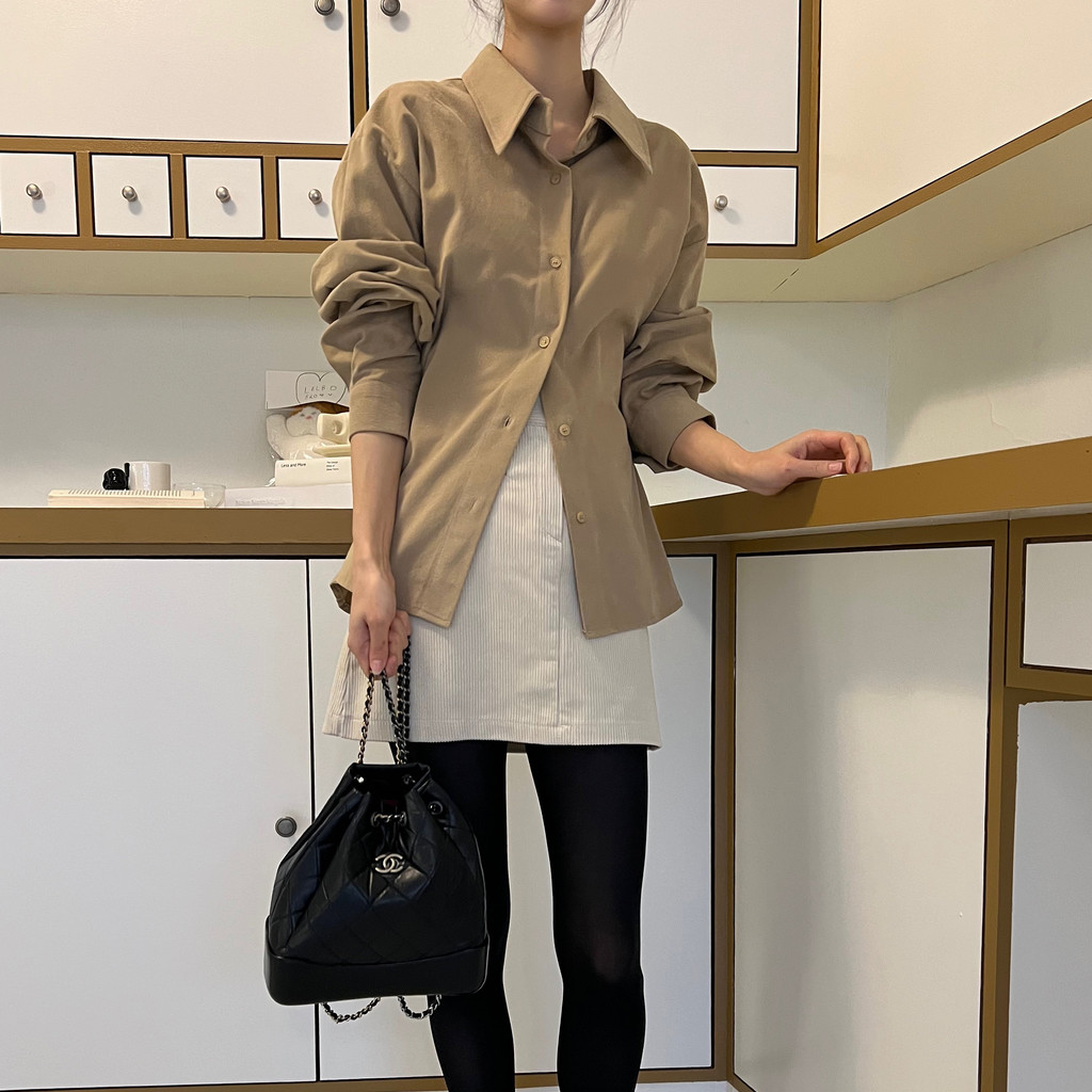 두께감이 있어 핏이 더 예쁘게 잡히고, 비침이 거의 없는 장점이 있습니다. 기모 가공이 된 듯 도톰한 소재로 겨울 내내 착용하기 좋아 데일리 셔츠로 추천드려요.