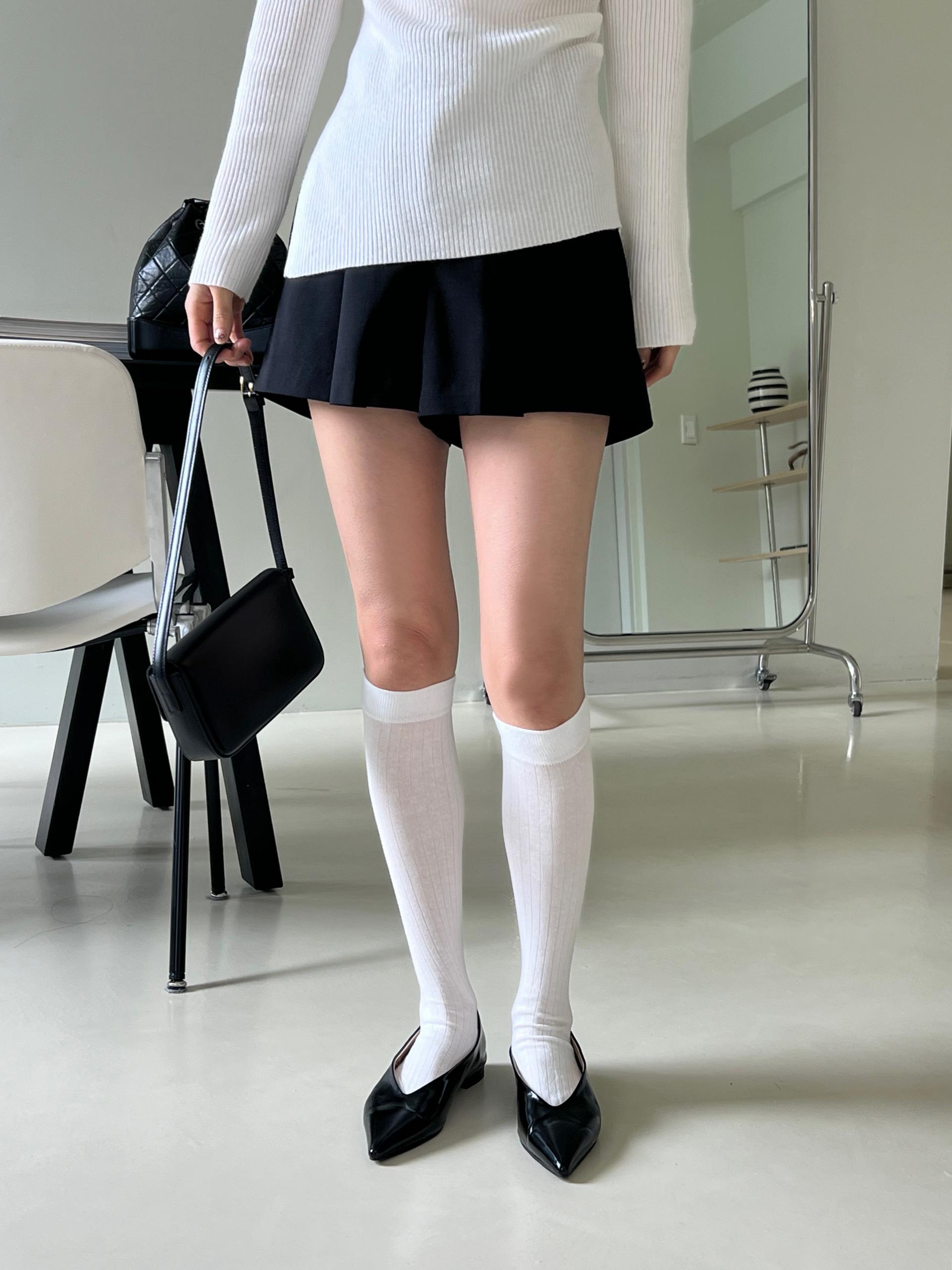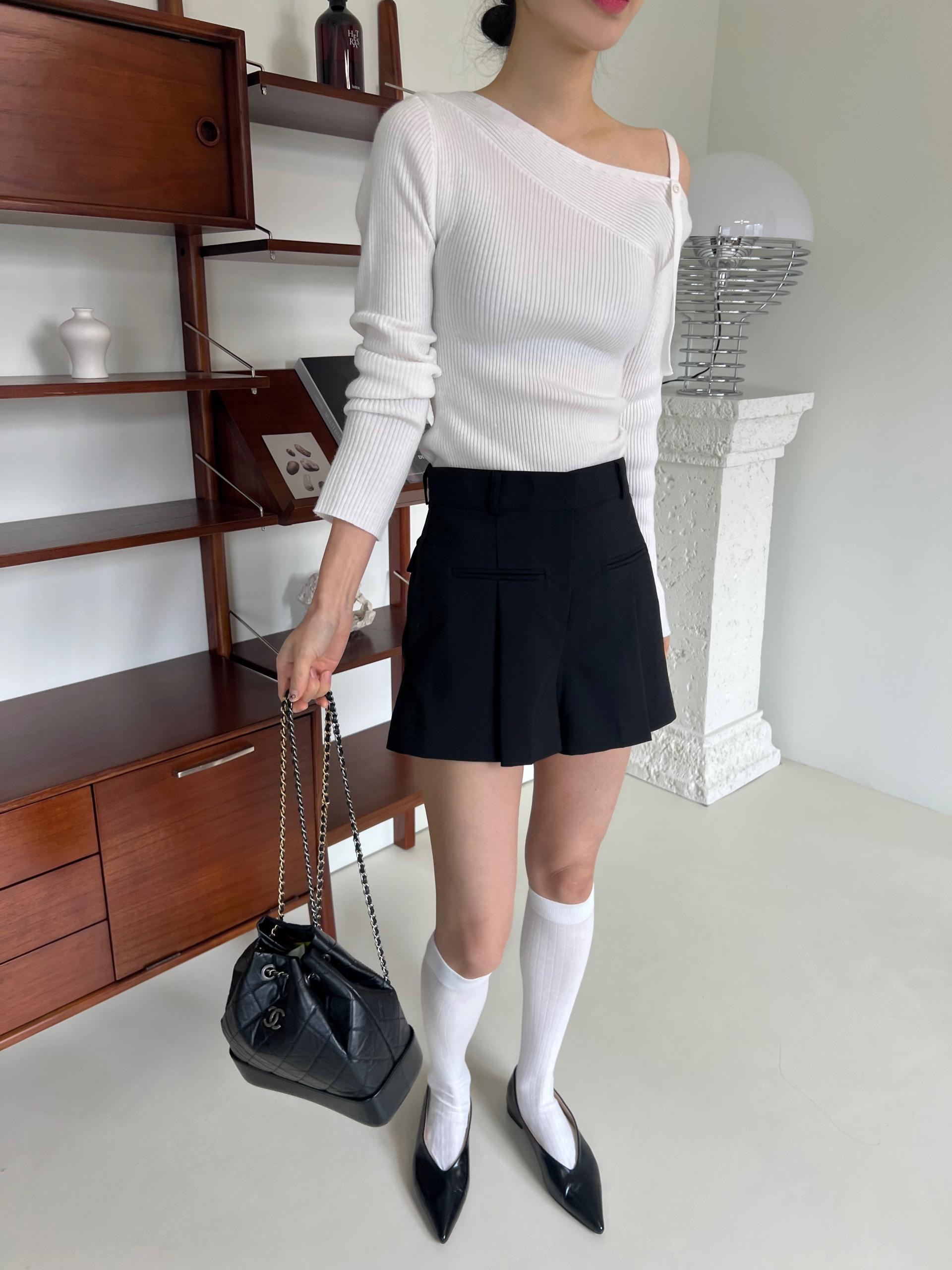 촘촘한 세로 골지로 날씬해 보이는 효과와 더불어 신축성 또한 아주 좋아 착용감이 편안합니다. 엉덩이를 살짝 덮는 하프 기장으로 흔하지 않으면서, 옆 부분은 길게 트임을 줘 답답한 느낌 없이 착용할 수 있어 좋았어요. 또, 허리는 셔링 디테일로 배 부분을 커버해 주기 때문에 체형 커버에도 좋은 아주 쫀쫀한 니트입니다.